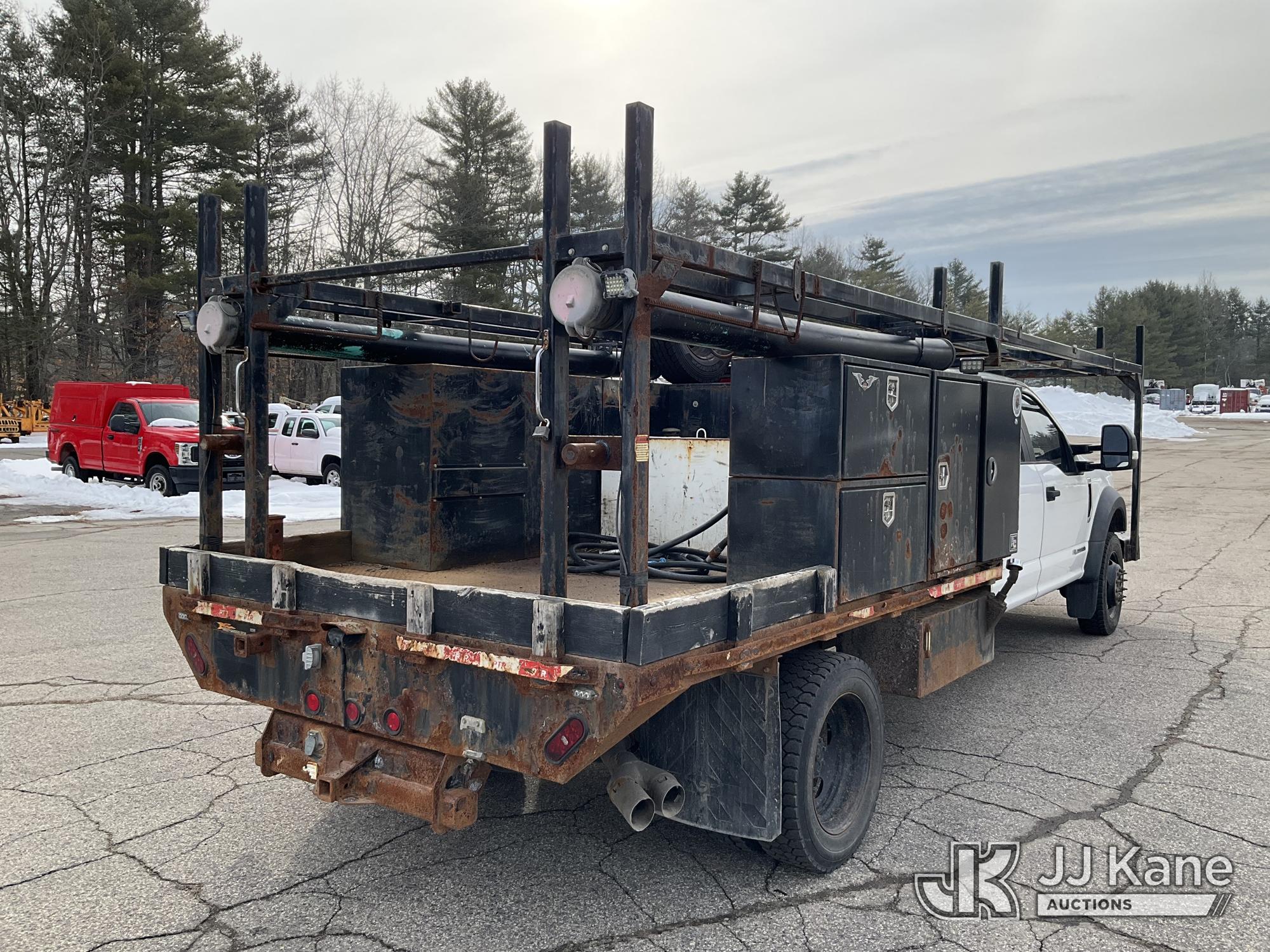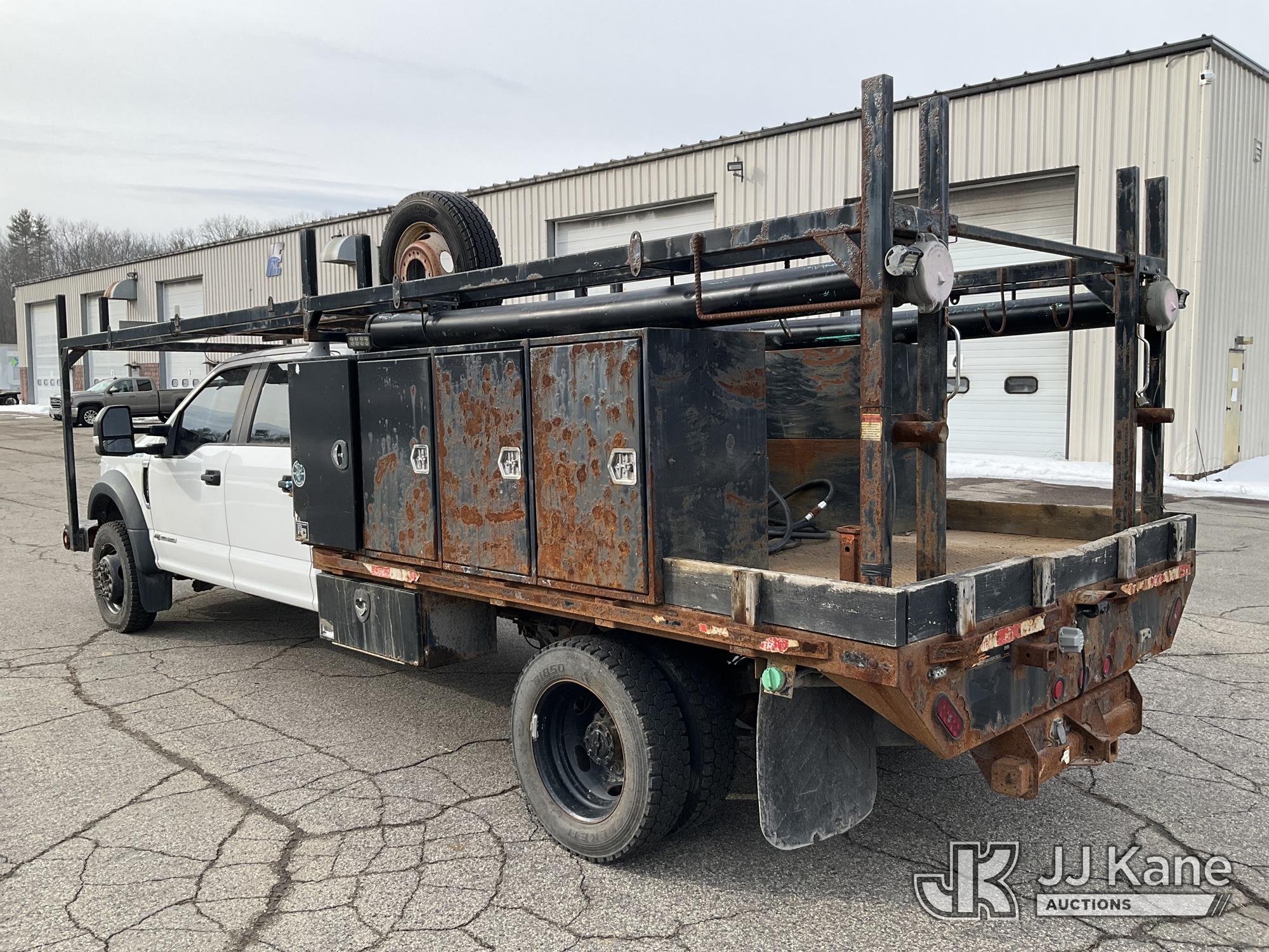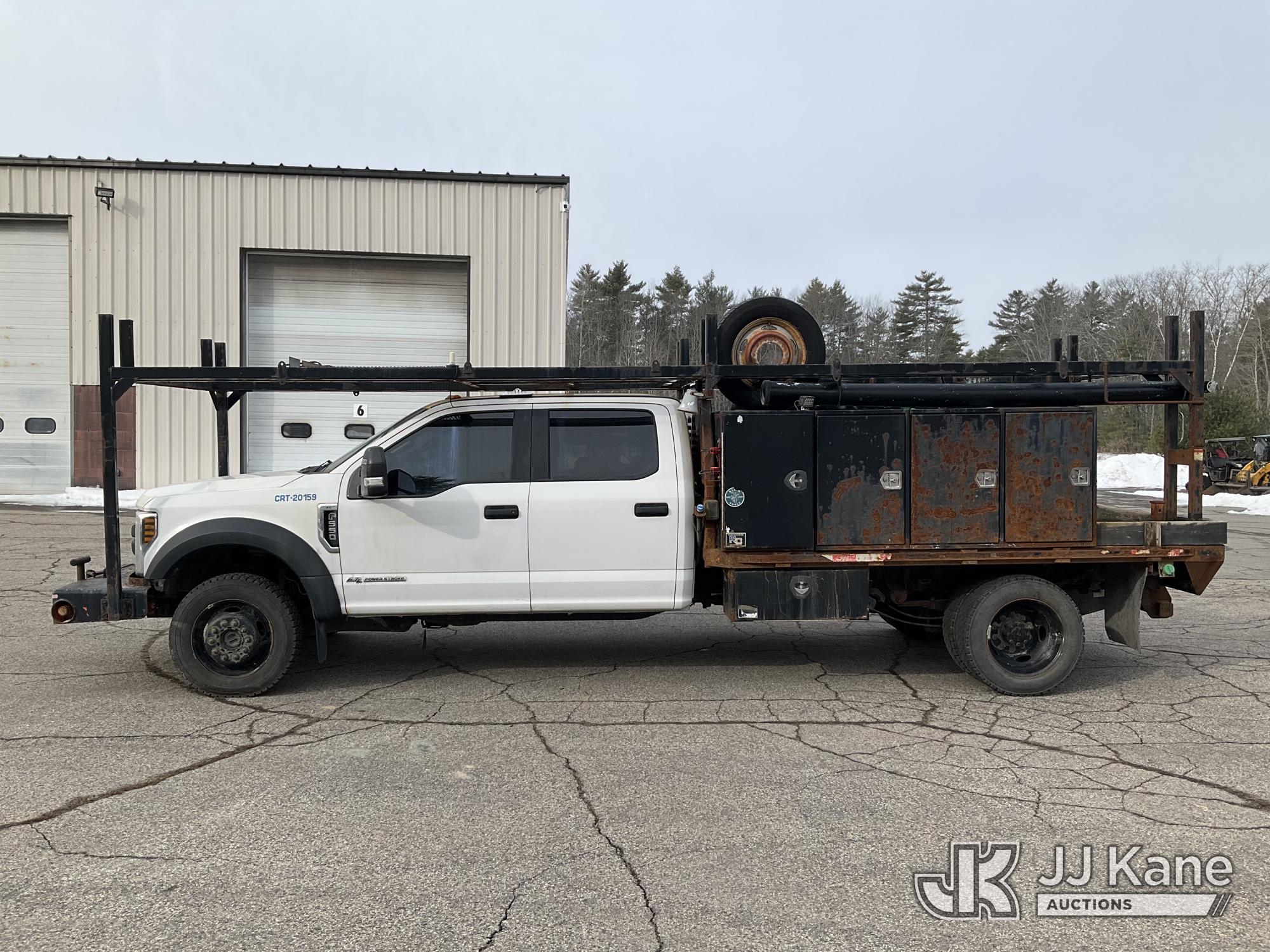2019 Ford F550 4x4 Crew-Cab Flatbed/Service Truck, 6.7L diesel, Auto, with front winch, aux fuel tank w/pump, (52,774 miles) (Runs & Moves) (Engine Noise, Check Engine Light On, Exhaust Filter Over Limit Service Light On) This is a Titled Item*