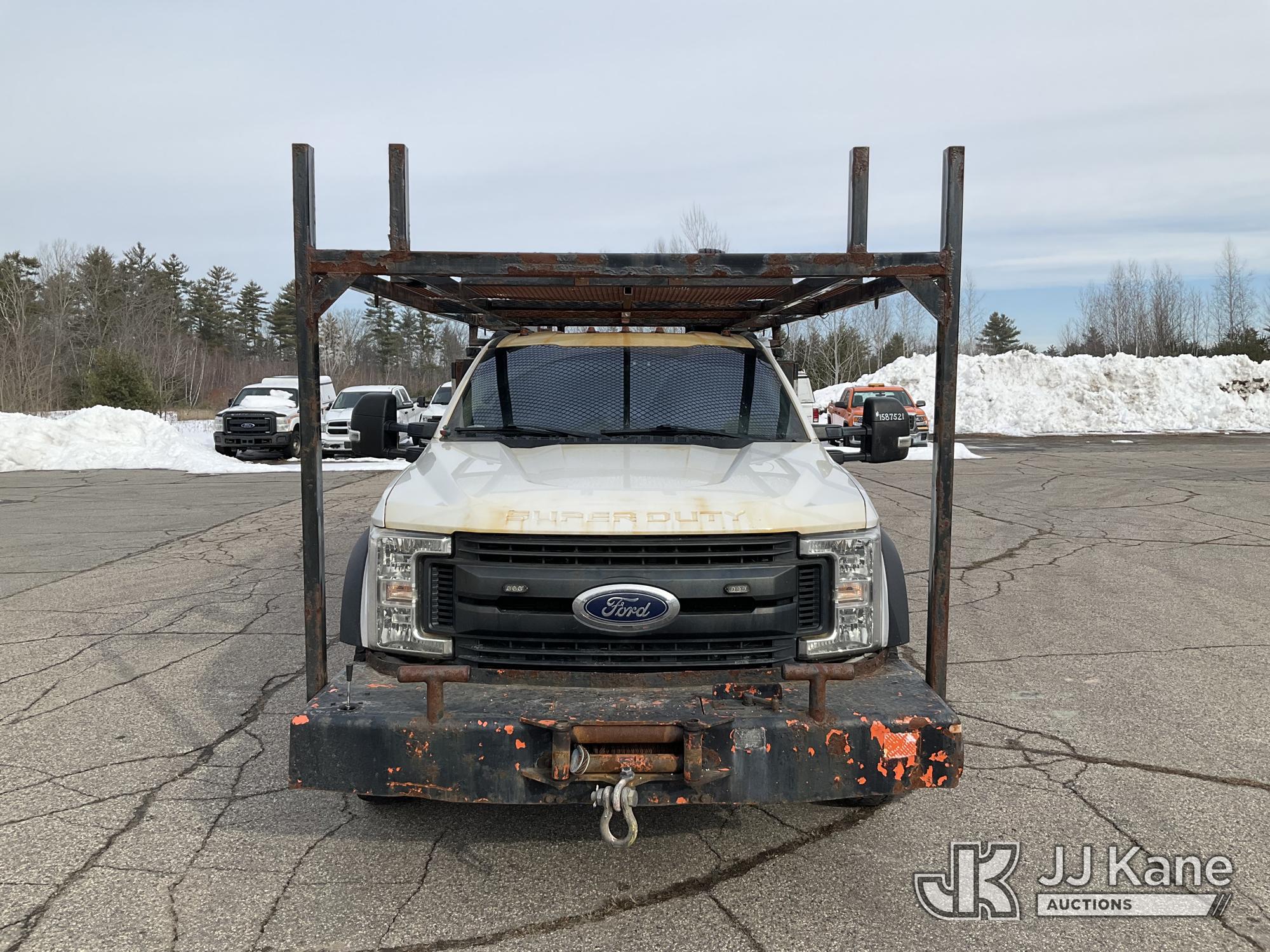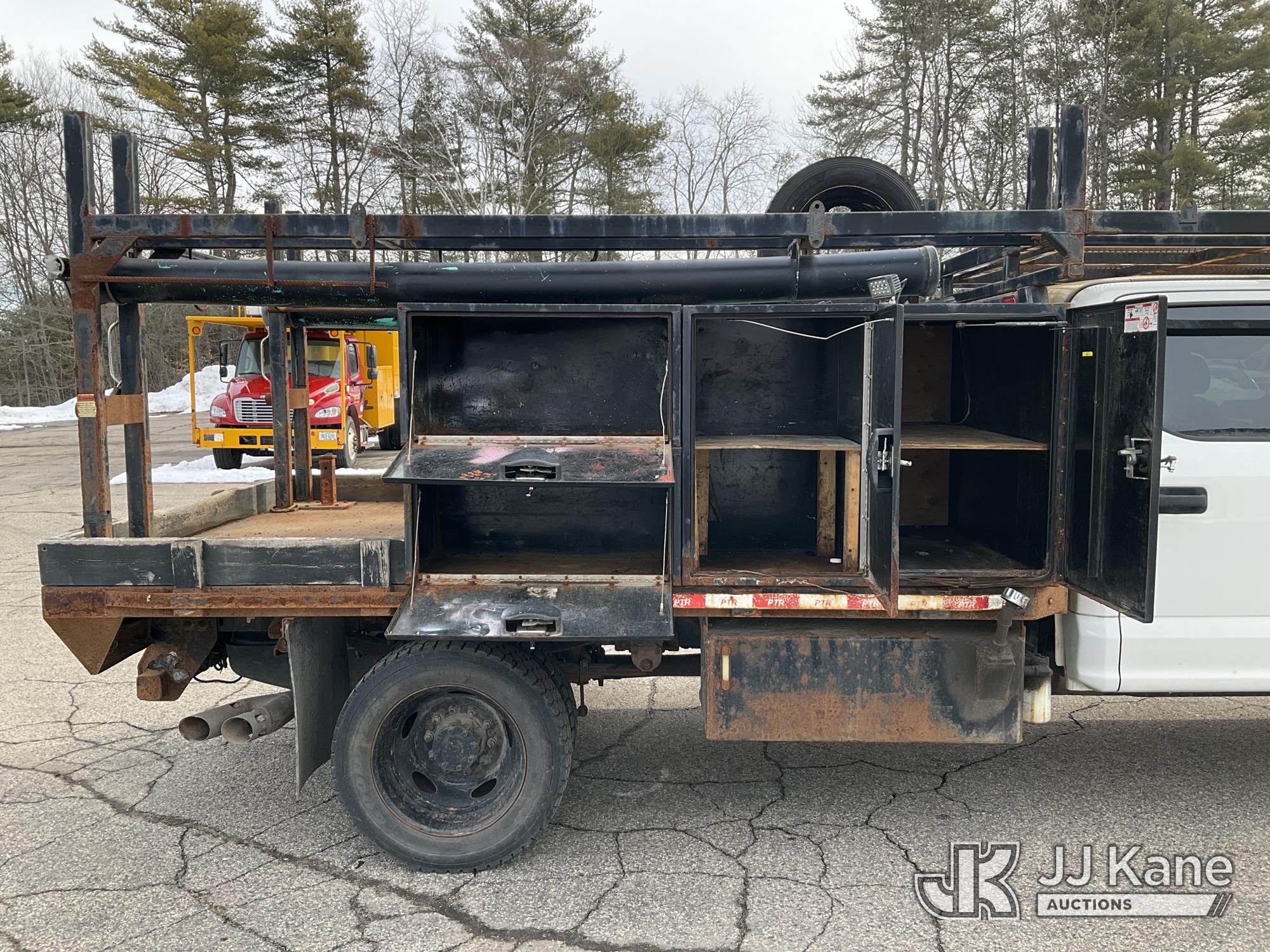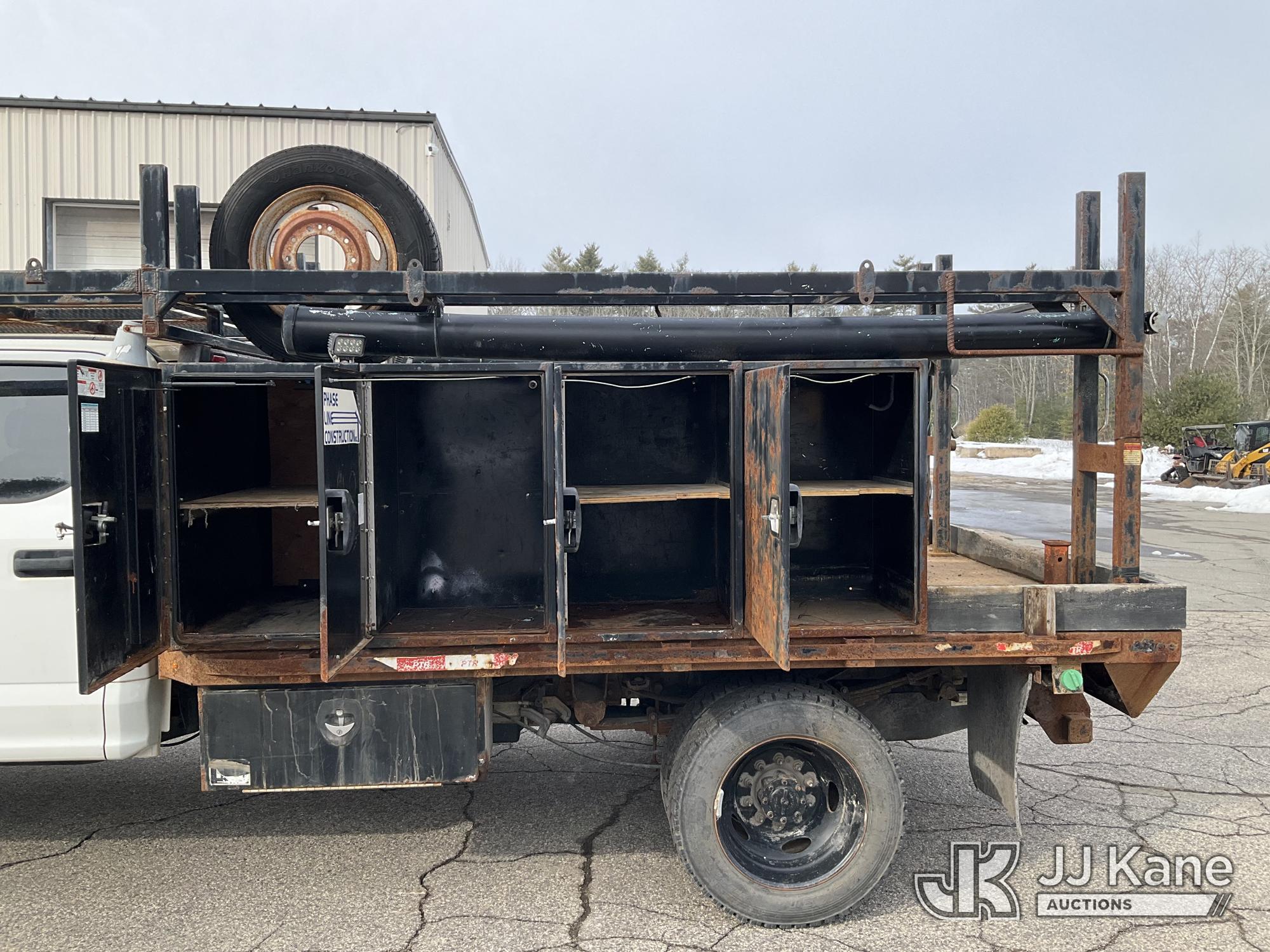 2019 Ford F550 4x4 Crew-Cab Flatbed/Service Truck, 6.7L diesel, Auto, with front winch, aux fuel tank w/pump, (52,774 miles) (Runs & Moves) (Engine Noise, Check Engine Light On, Exhaust Filter Over Limit Service Light On) This is a Titled Item*