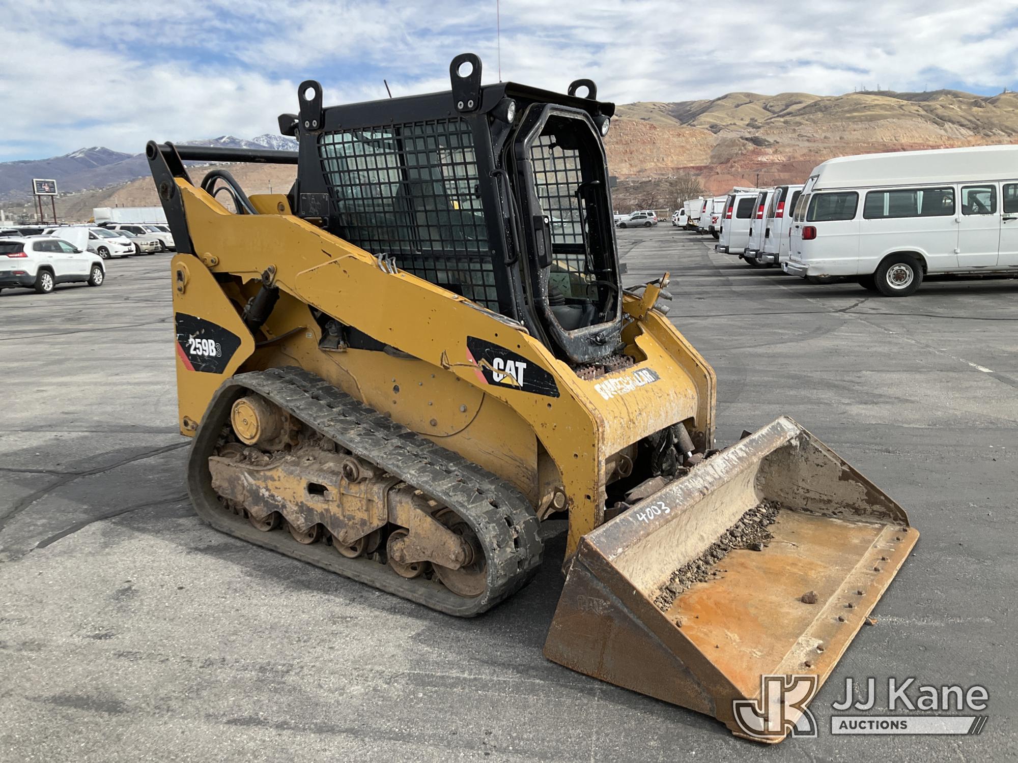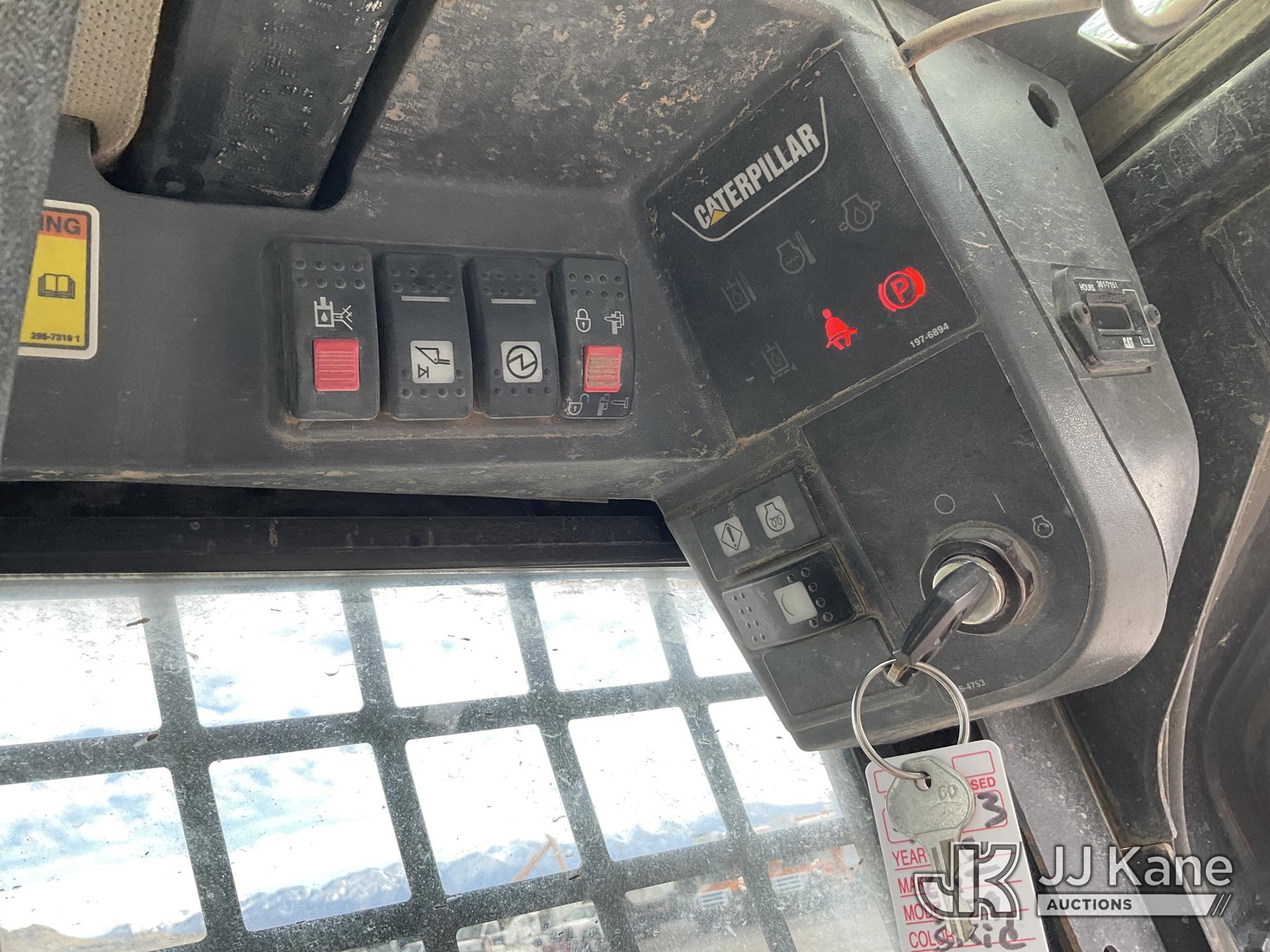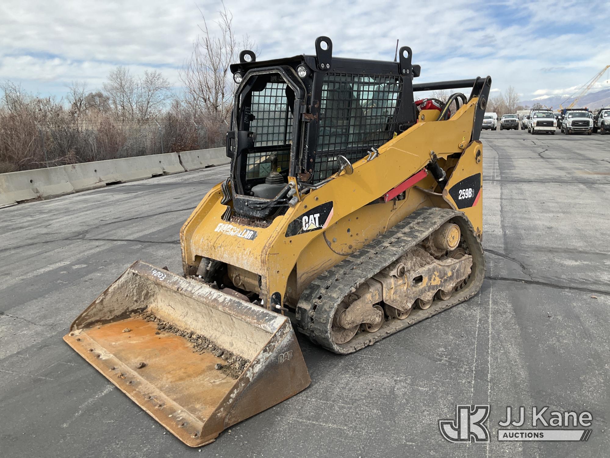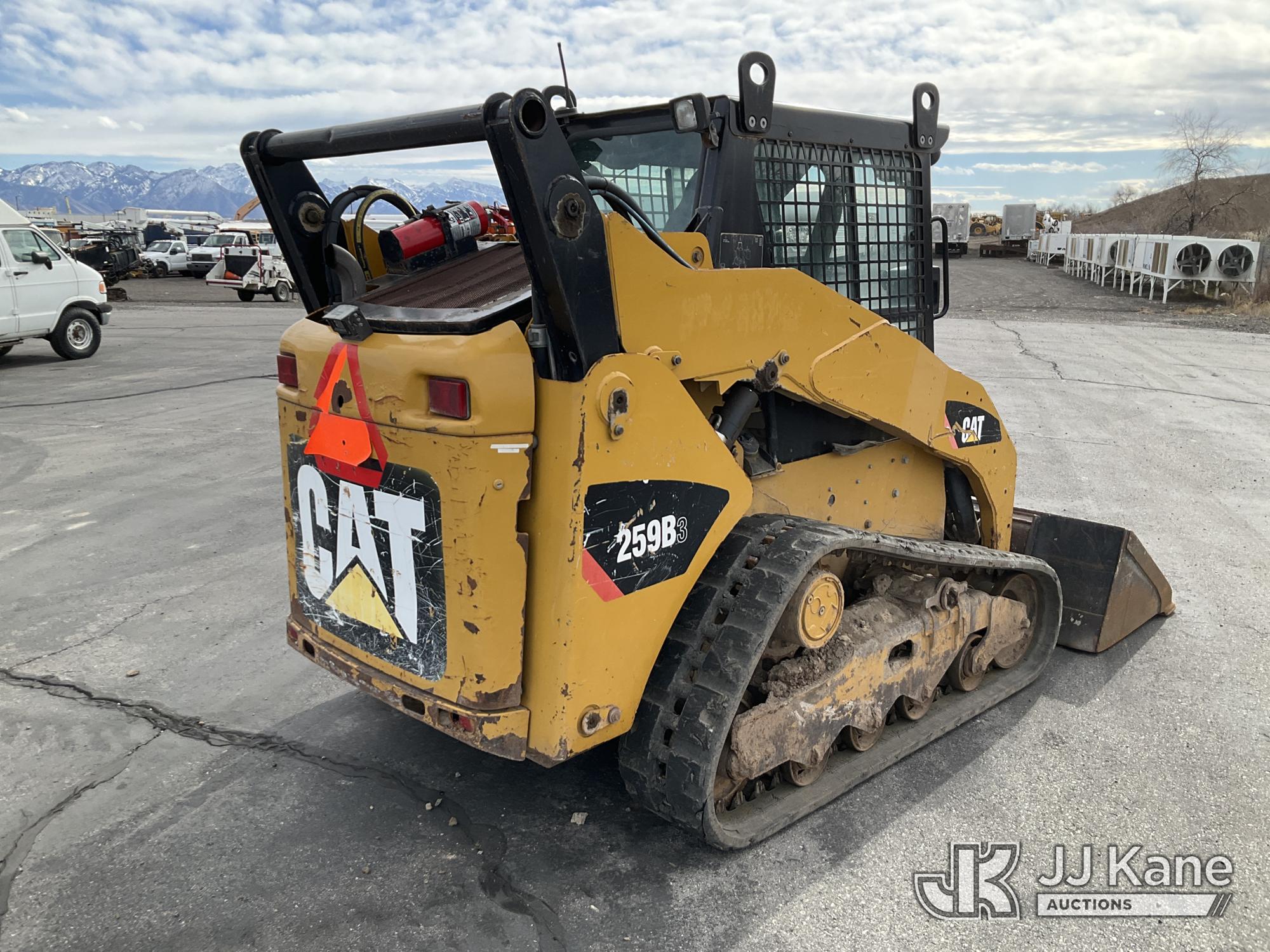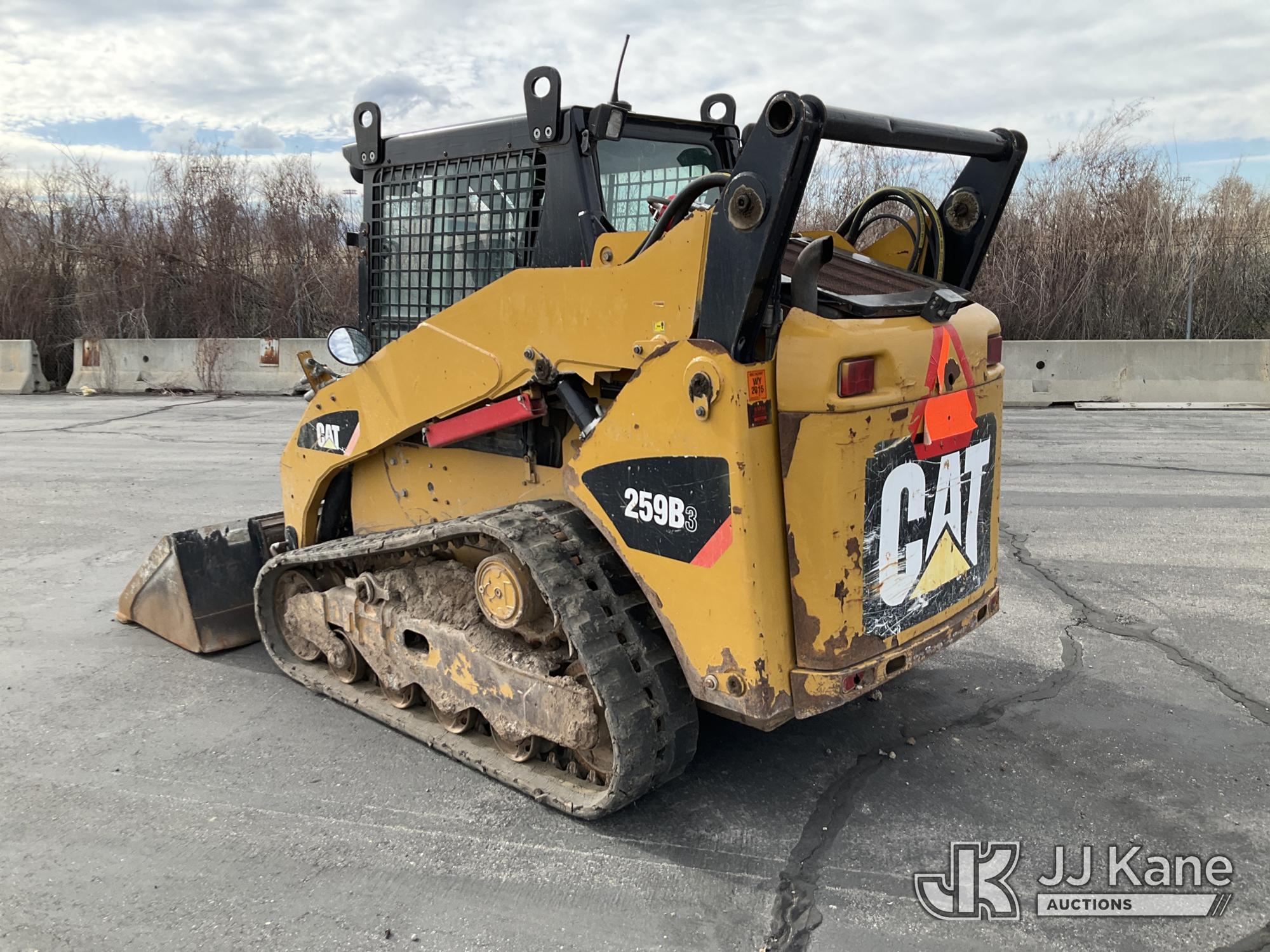 2013 Cat 259B3 Tracked Skid Steer Loader, s/n CAT0259BHYYZ04674, 4-cyl, diesel, Hydrostatic, A/C, with GP bucket, aux hyd, joystick controls, rubber tracks & EROPS w/A/C, (Runs, Moves & Operates) (Broken Window) (Reads 4,970 hours)*