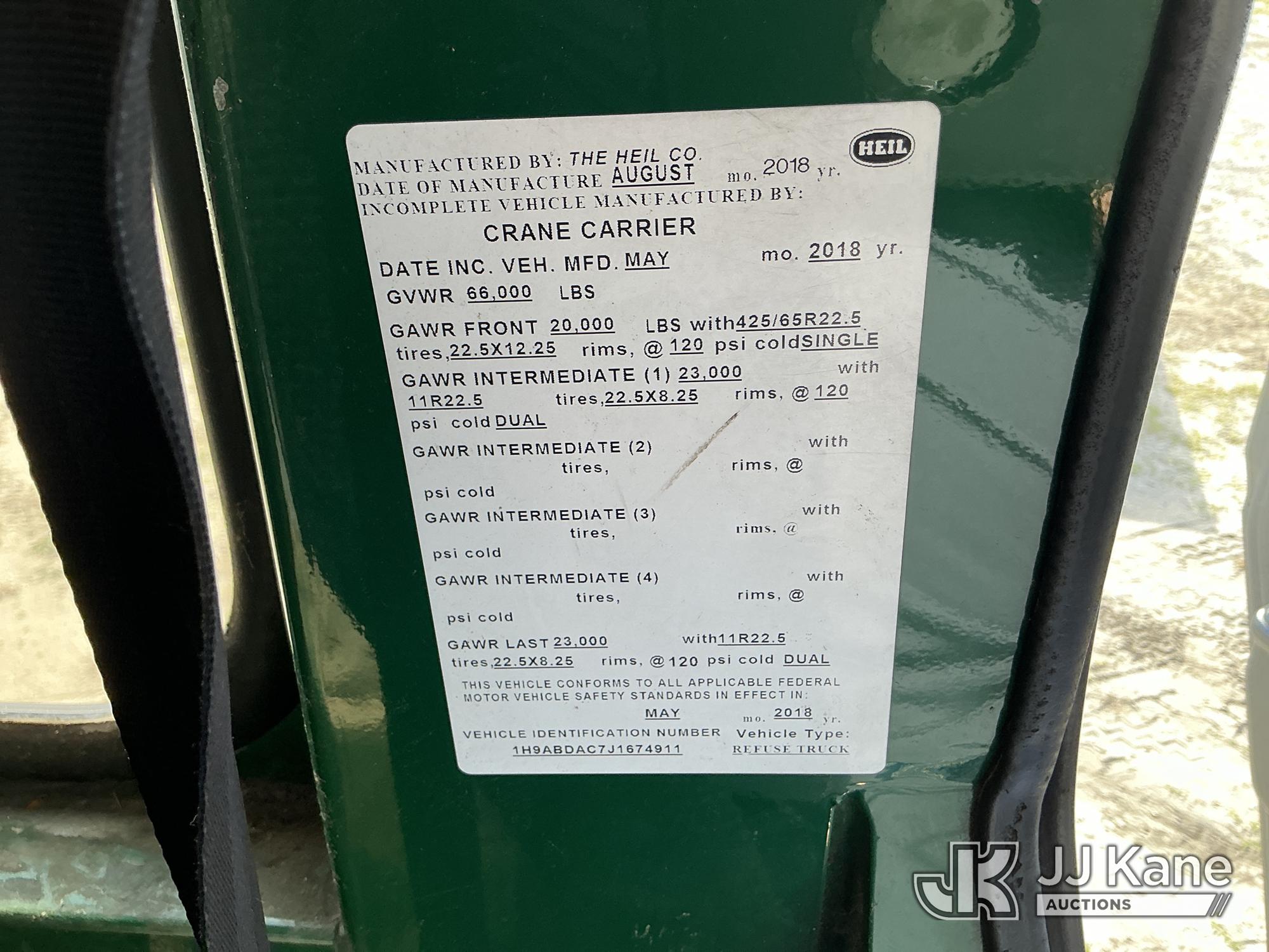 2018 Hines LDT2CC T/A Garbage/Compactor Truck, Cummins 8.9L diesel, Auto, A/C, with 27 yard body, dual steering, (34,182 miles) (Not Running, Condition Unknown, Check Engine Light On) (FL Residents Purchasing Titled Items – tax, title & registration fees will be collected at the maximum rate of $400.00 under 25,999 and $800.00 for Over 26,000 and $250.00 trailers – Proof of insurance is mandatory; Out of State Residents Purchasing Title Items – tax will be collected based upon your state rate.) (Reads 6,152 hours) This is a Titled Item*
