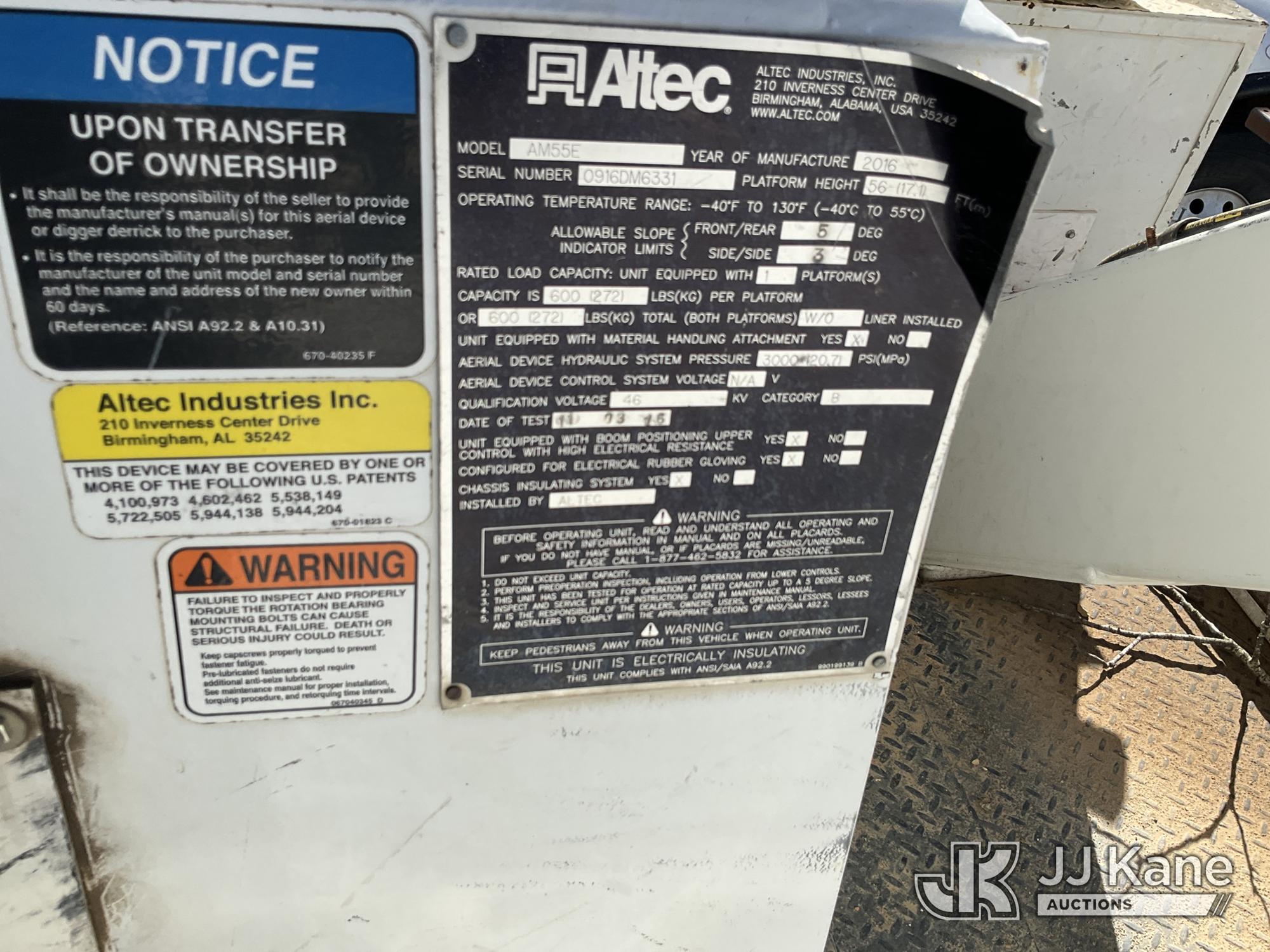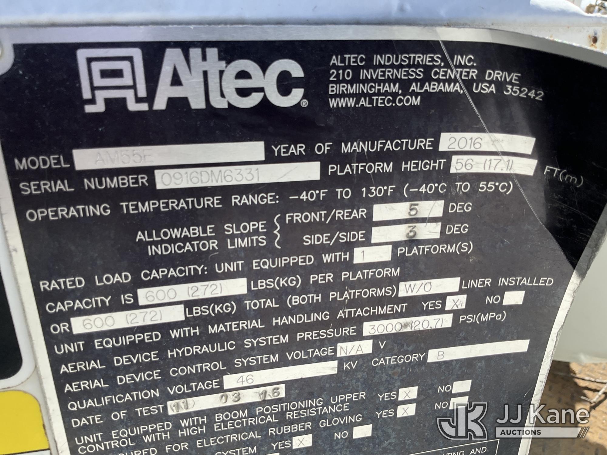 Altec AM55E, 61 ft, Over-Center Material Handling Bucket Truck s/n 0916DM6331, with Two-Man Bucket & 4 Hydraulic Outriggers, rear mounted on 2017 Freightliner M2 106 Service Truck, 6.7L L6 DIESEL 4X2, Auto, A/C, with Front Bumper Winch, (99,153 miles) (Runs, Moves & Upper Operates) (Reads 10,850 hours) This is a Titled Item*