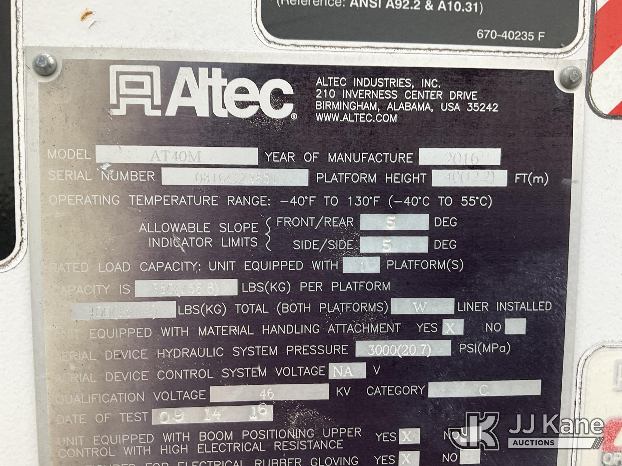 Altec AT40-MH, 45 ft, Articulating & Telescopic Material Handling Bucket Truck s/n 0816CZ2851, with single-man bucket, mounted behind cab on 2016 Ford F550 4x4 Service Truck, 6.7L diesel, Auto, A/C, (47,201 miles) (Runs, Moves & Upper Operates) This is a Titled Item*