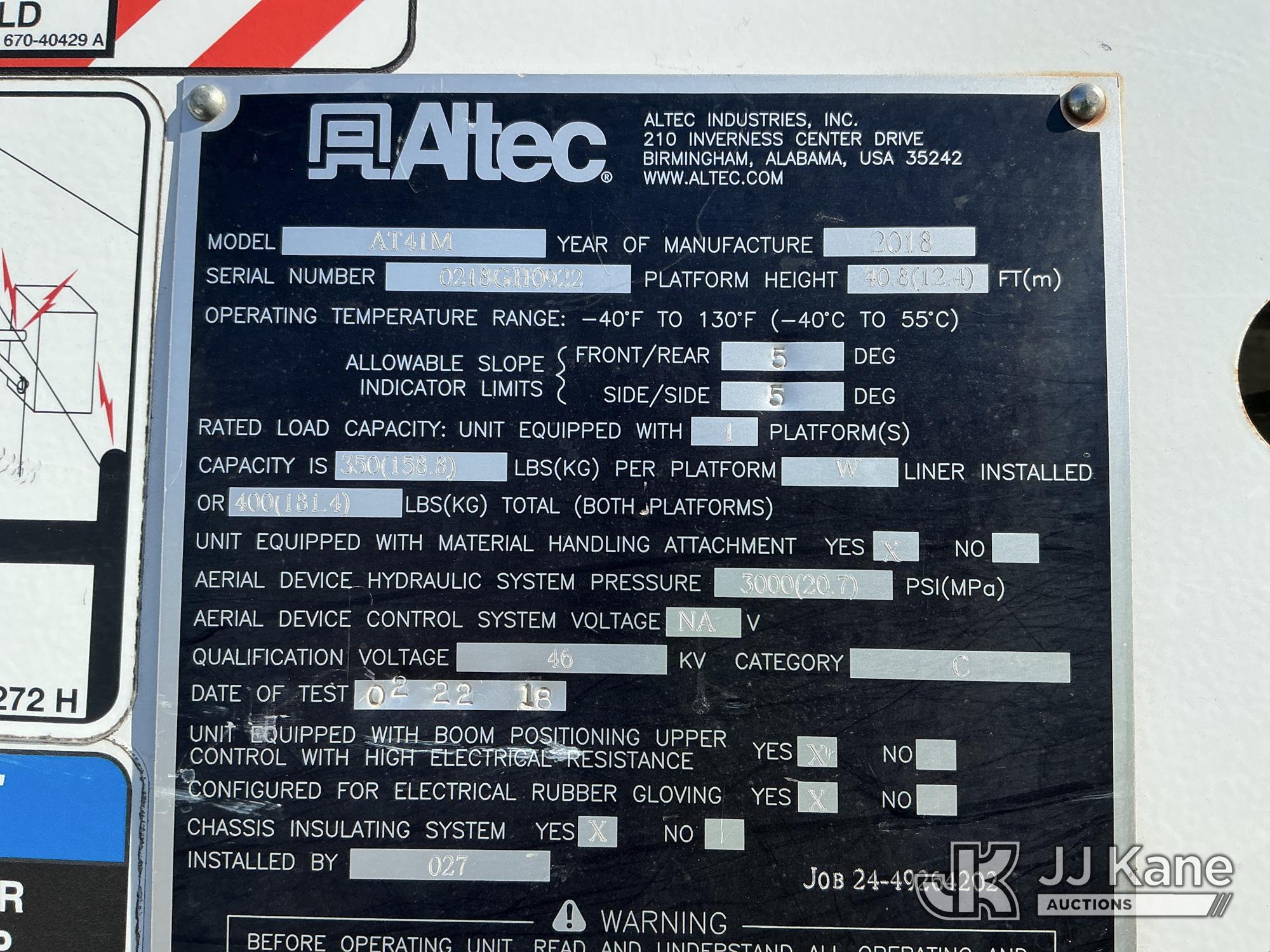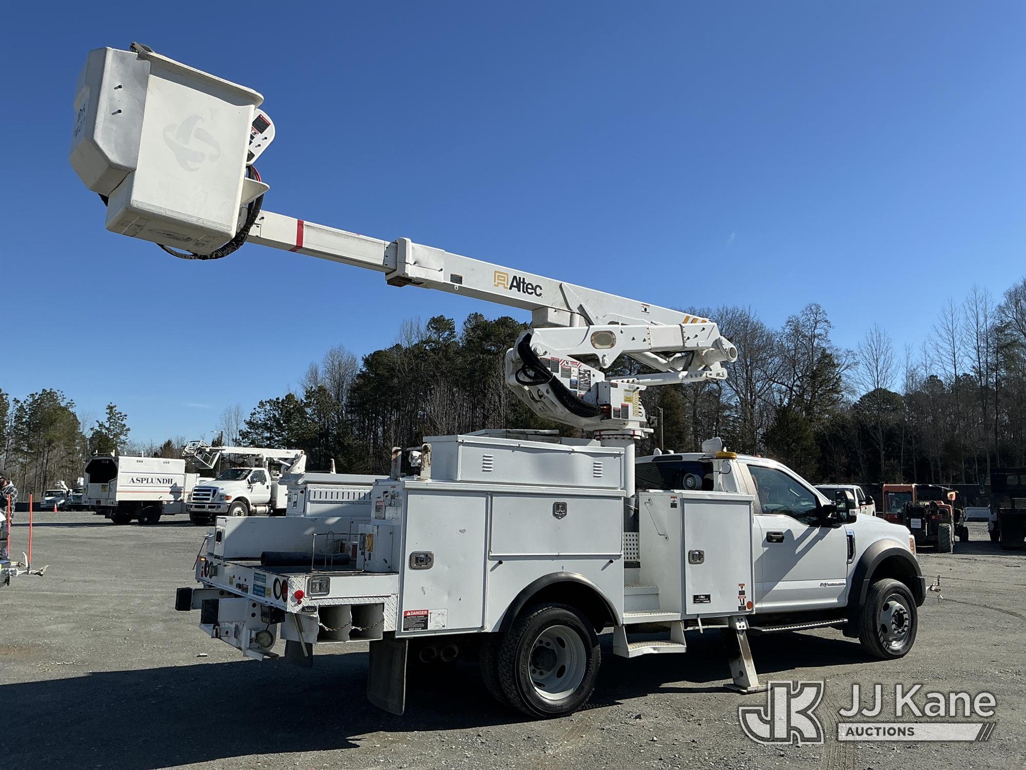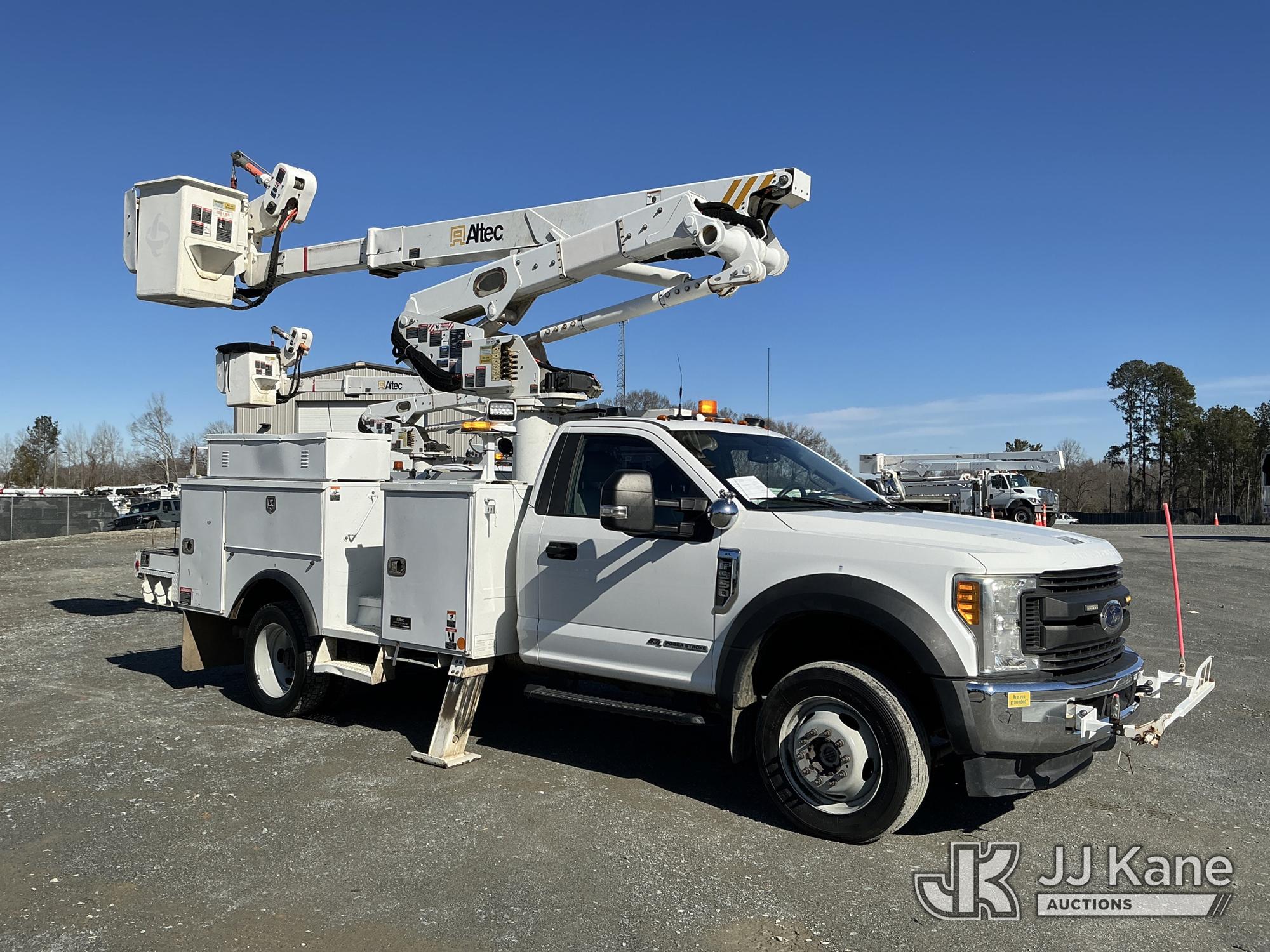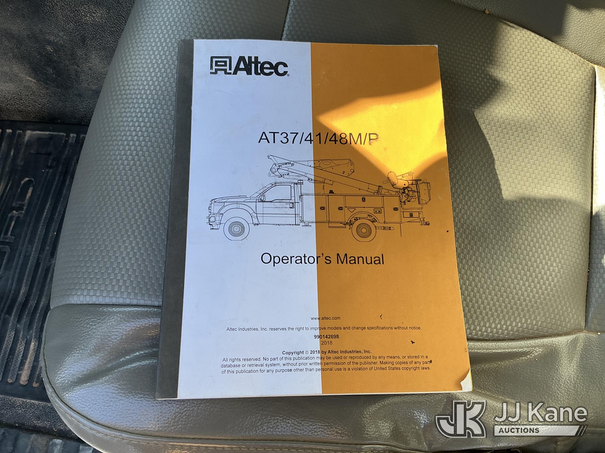 Altec AT41M, 46 ft, Articulating & Telescopic Material Handling Bucket Truck s/n 0218GH0922, with single man bucket & 2 hyd outriggers, mounted behind cab on 2017 Ford F550 4X4 Service Truck, 6.7L diesel, Auto, A/C, (147,060 miles) (Runs, Moves & Upper Operates ) This is a Titled Item*