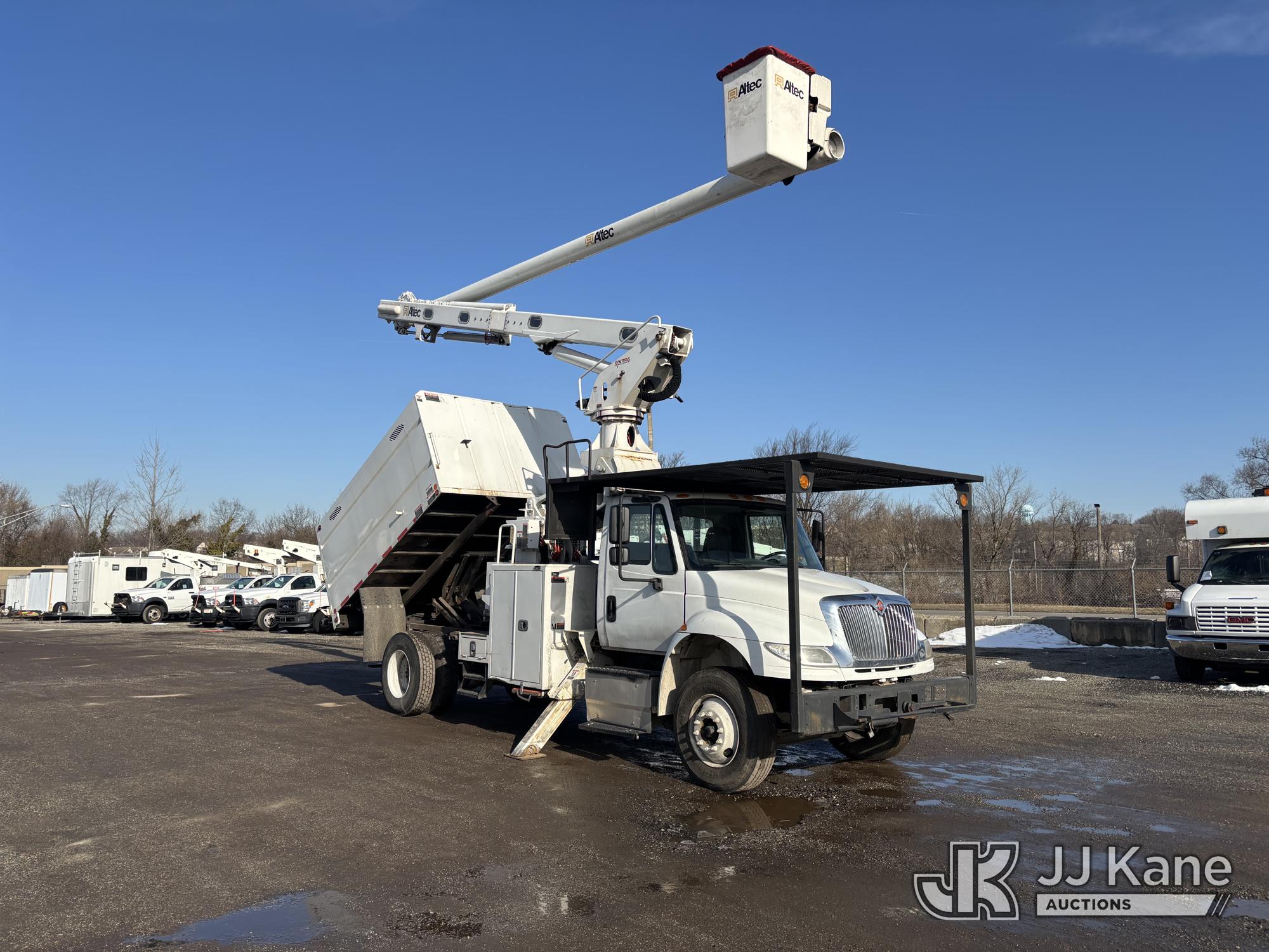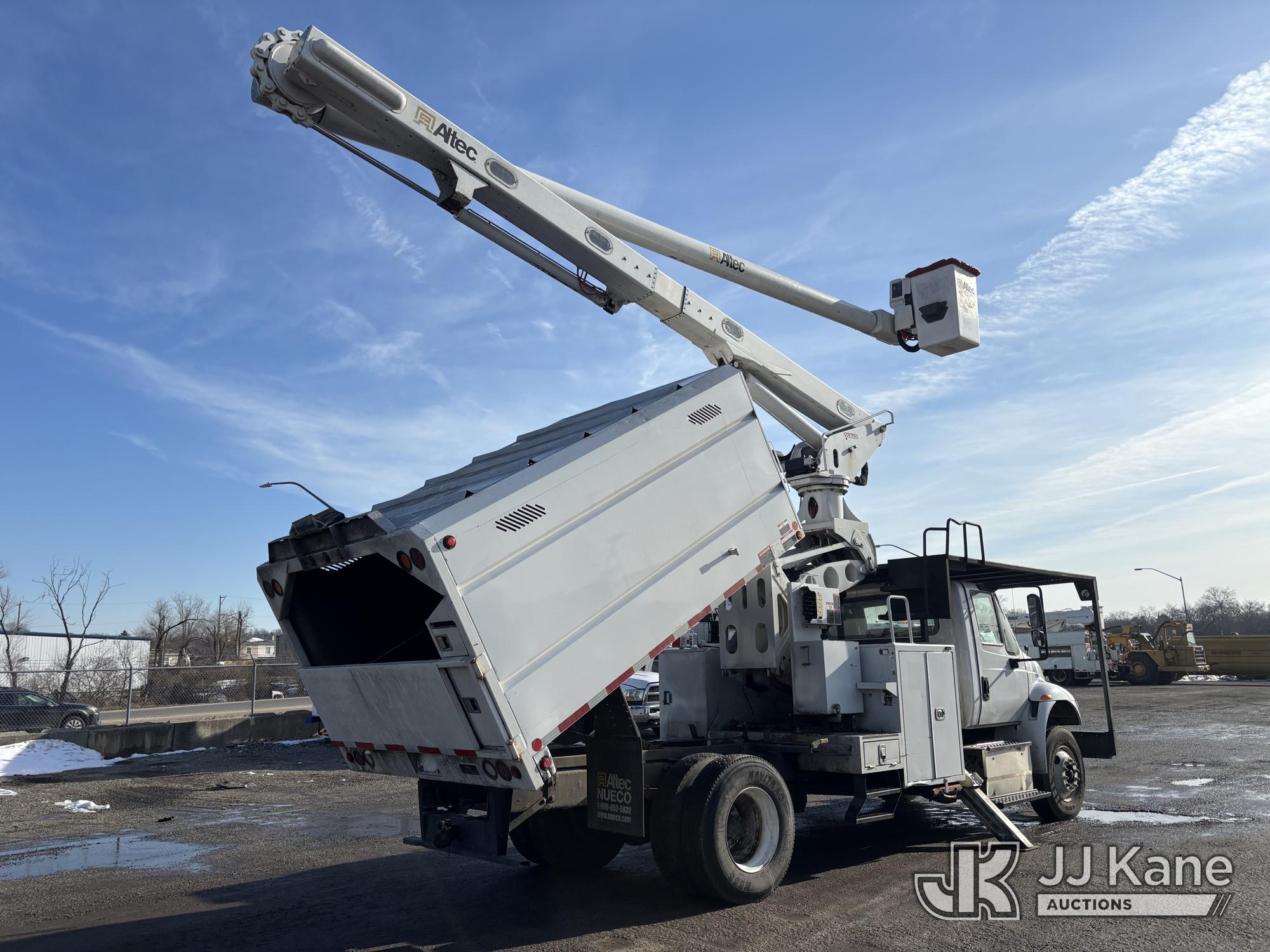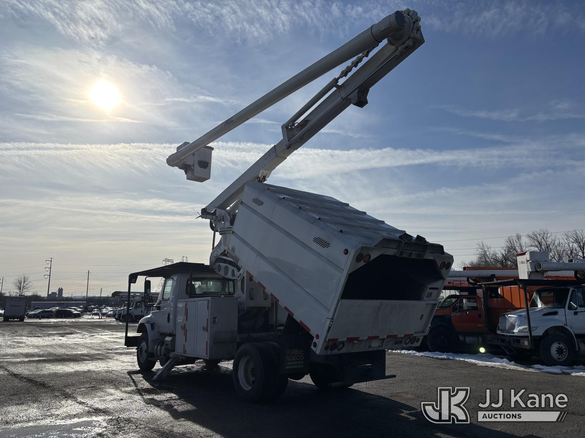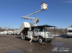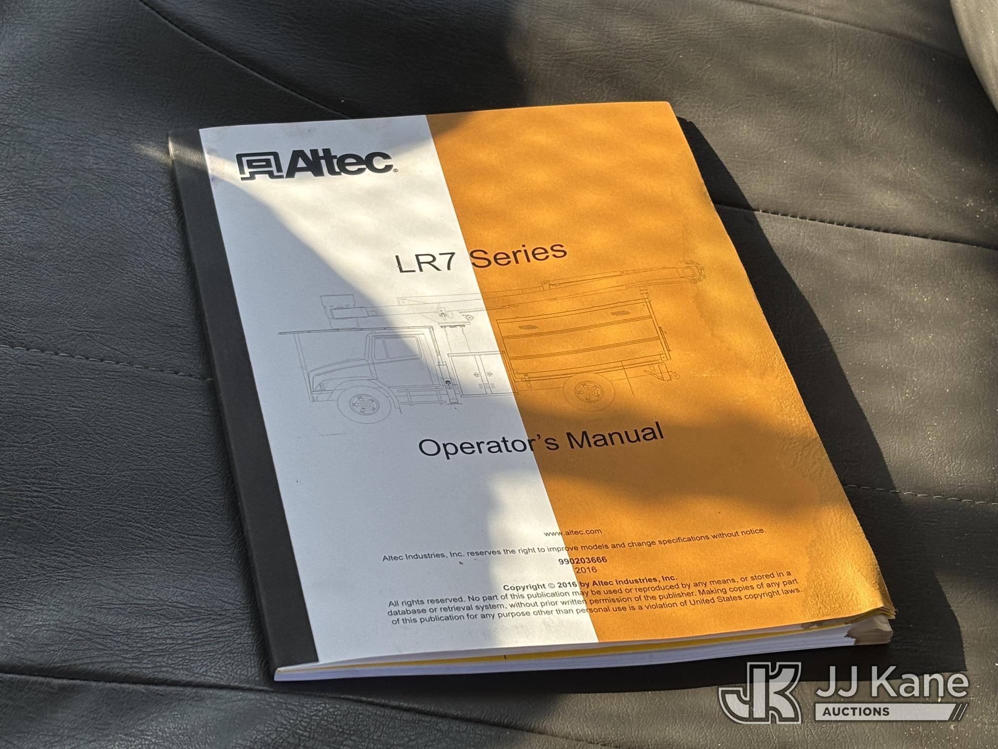Altec LR7-60E70, 75 ft, Over-Center Elevator Bucket Truck s/n 1116FF5778, with Single-Man Bucket & 2 Outriggers, mounted behind cab on 2017 International 4300 Chipper Dump Truck, 6.7L diesel, Auto, A/C, with 11ft Body, (38,782 miles) (Runs, Moves & Upper Operates, Low Fuel, Side Steps Bent, Side Bin Dented) This is a Titled Item*