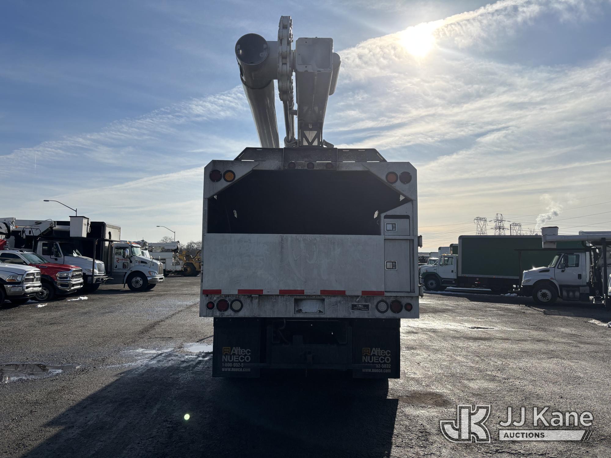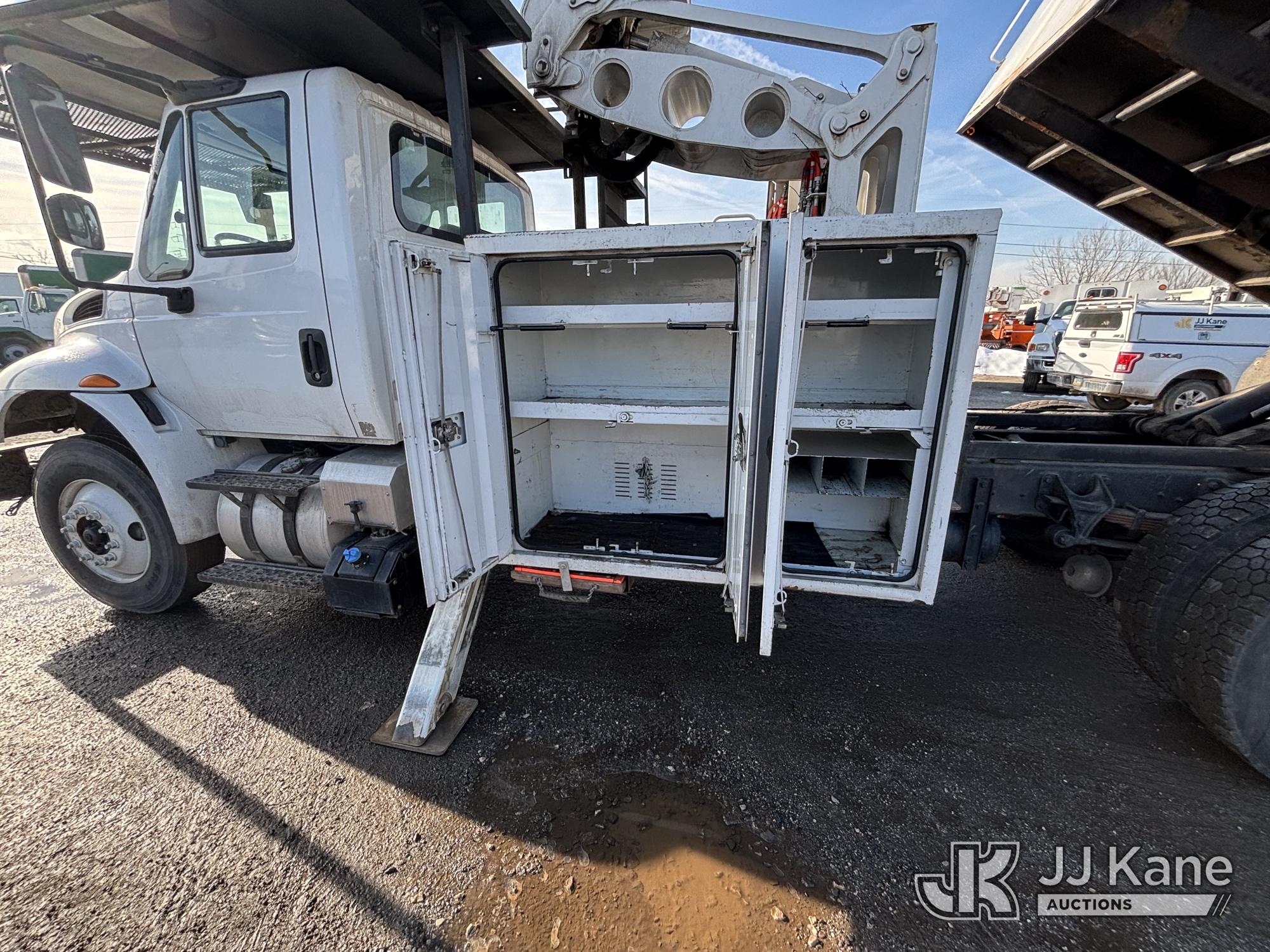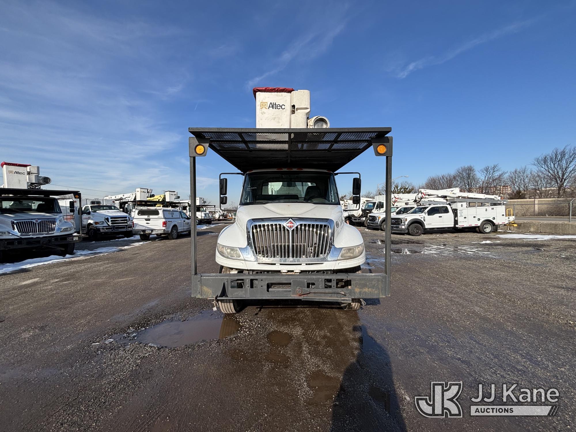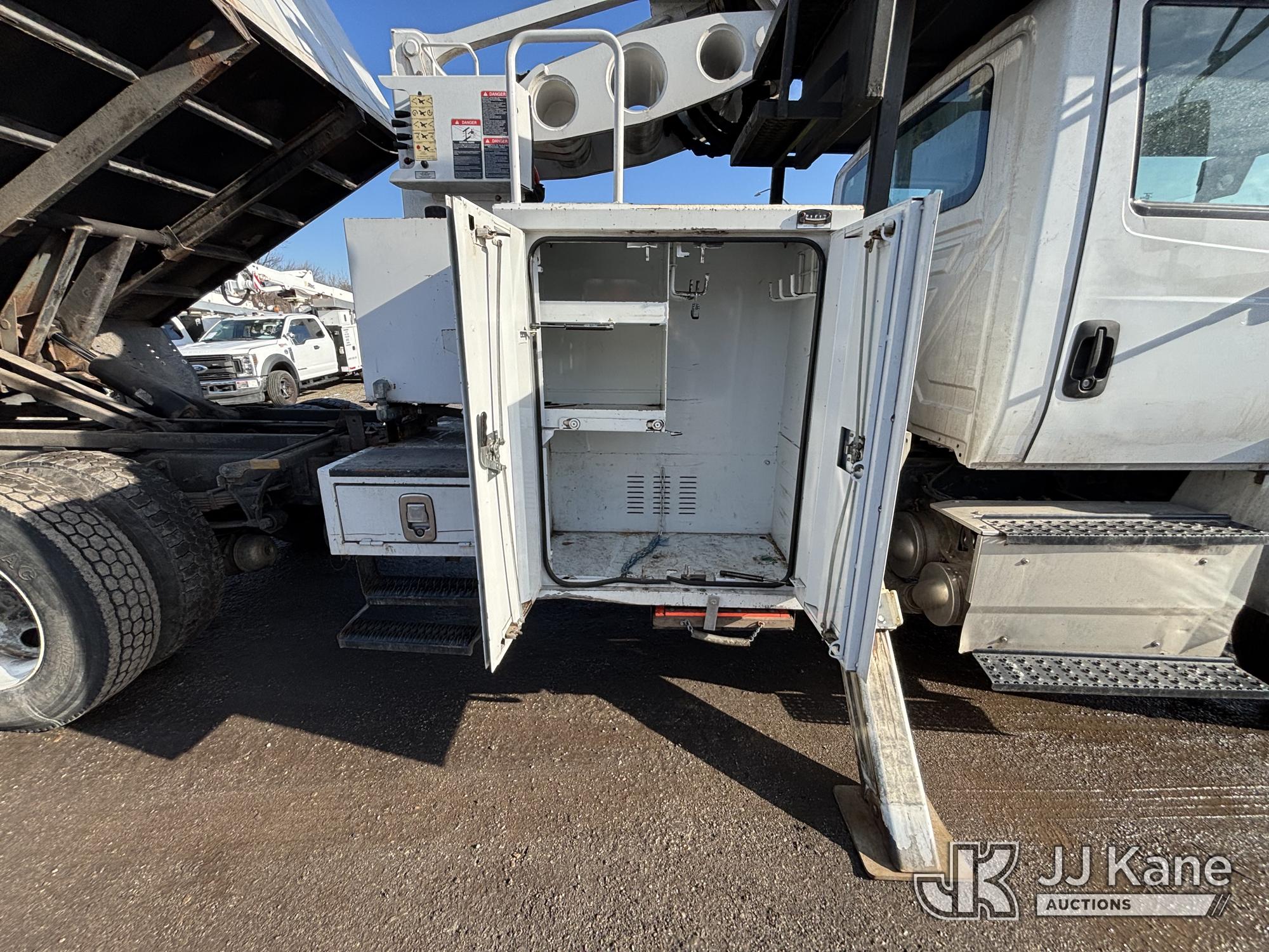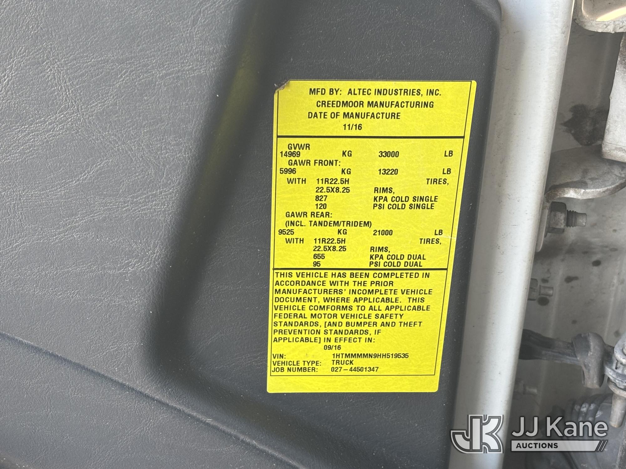 Altec LR7-60E70, 75 ft, Over-Center Elevator Bucket Truck s/n 1116FF5778, with Single-Man Bucket & 2 Outriggers, mounted behind cab on 2017 International 4300 Chipper Dump Truck, 6.7L diesel, Auto, A/C, with 11ft Body, (38,782 miles) (Runs, Moves & Upper Operates, Low Fuel, Side Steps Bent, Side Bin Dented) This is a Titled Item*