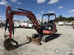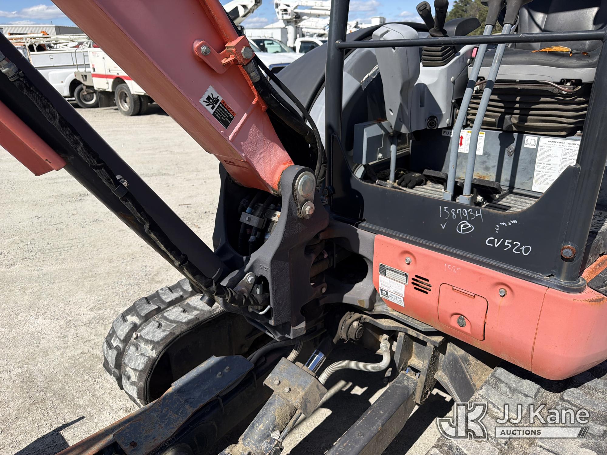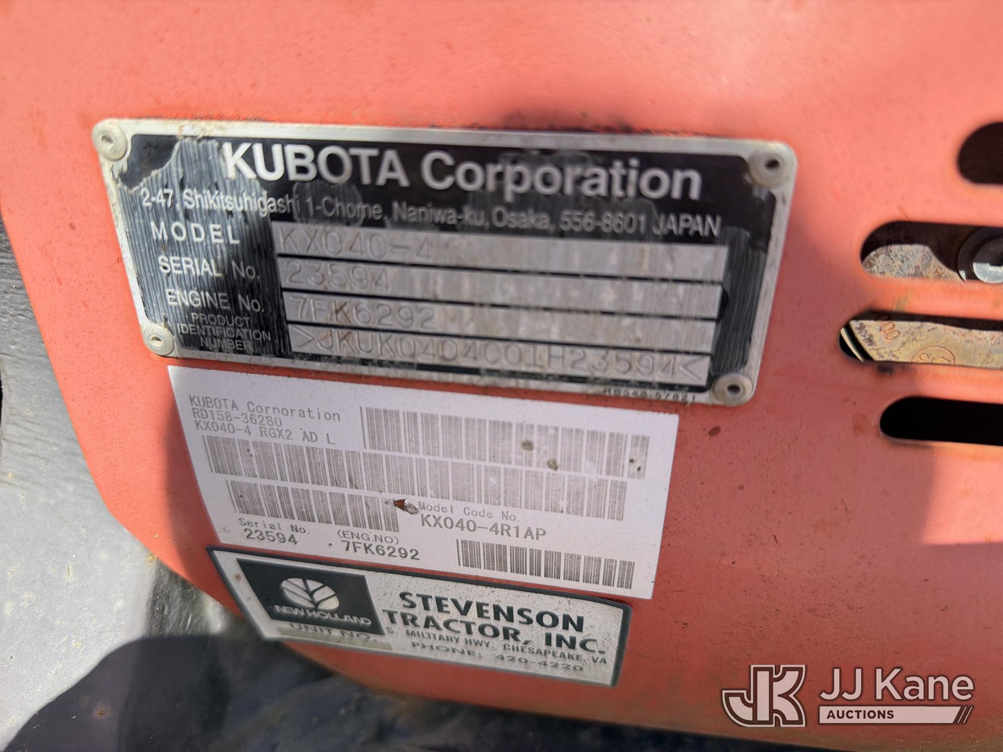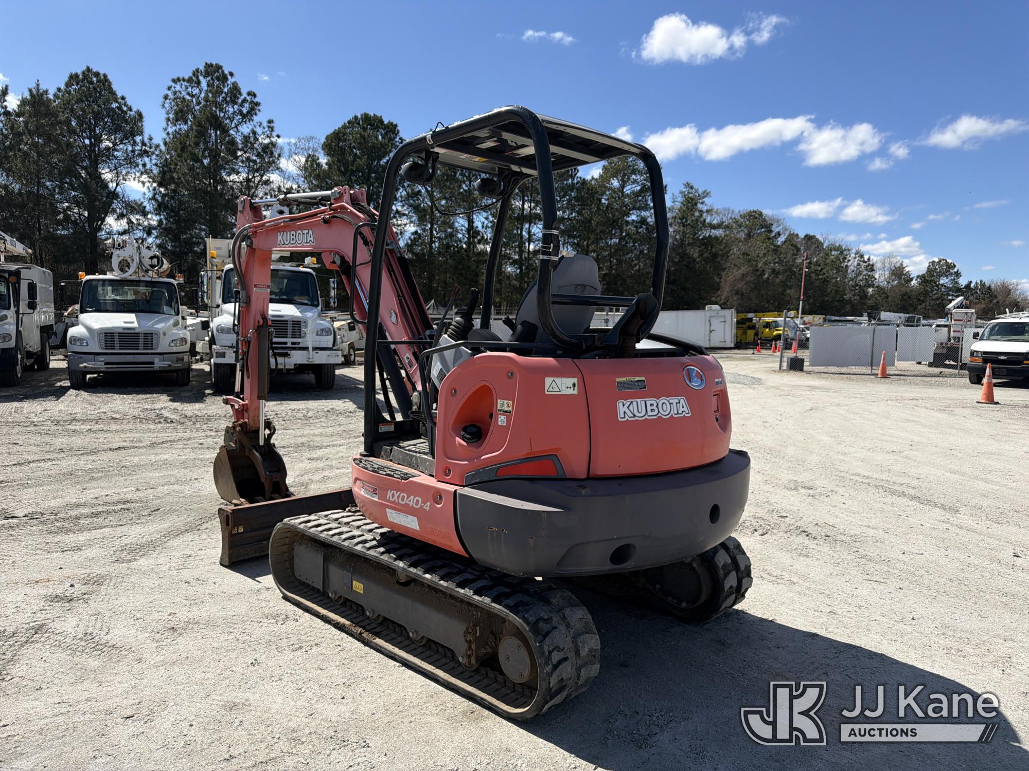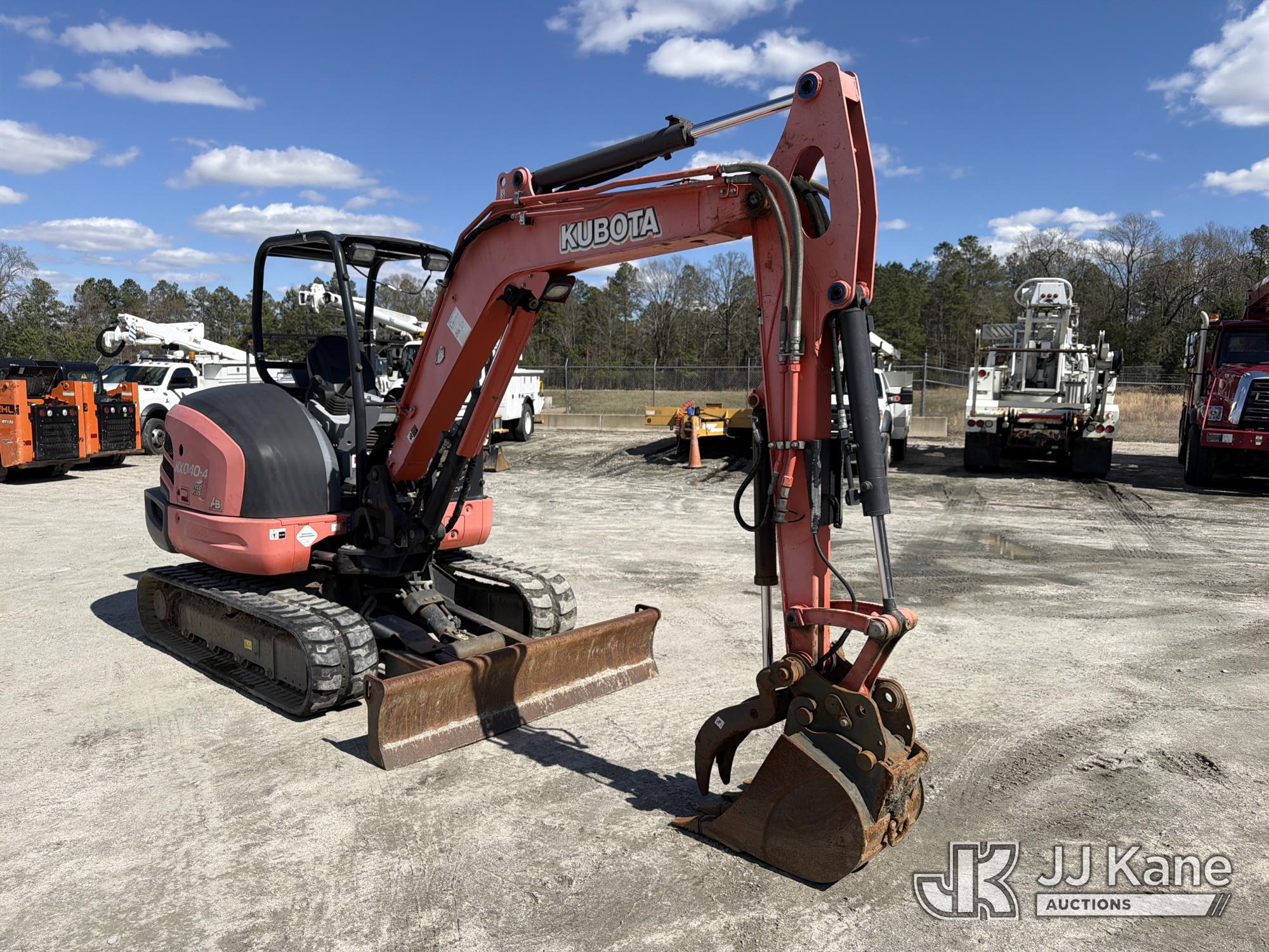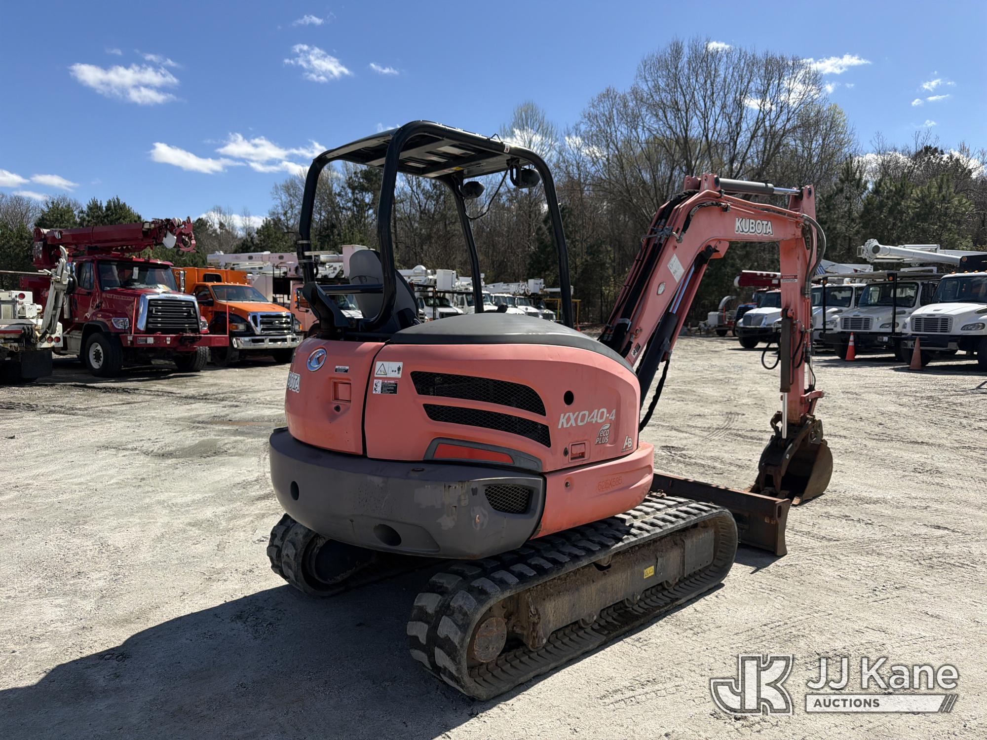 2015 Kubota KX040-4 Mini Hydraulic Excavator, s/n 23594, Kubota diesel, Hydraulic Drive, with 5 ft 3 in stick, 18 in digging bucket, hyd thumb, aux hyd, backfill blade, rubber tracks & ROPS, (Runs, Moves & Operates) (Jump To Start, Hyd Thumb Inop, Exhaust Temp Rise Operate Carefully Message) (Reads 1,226 hours)*