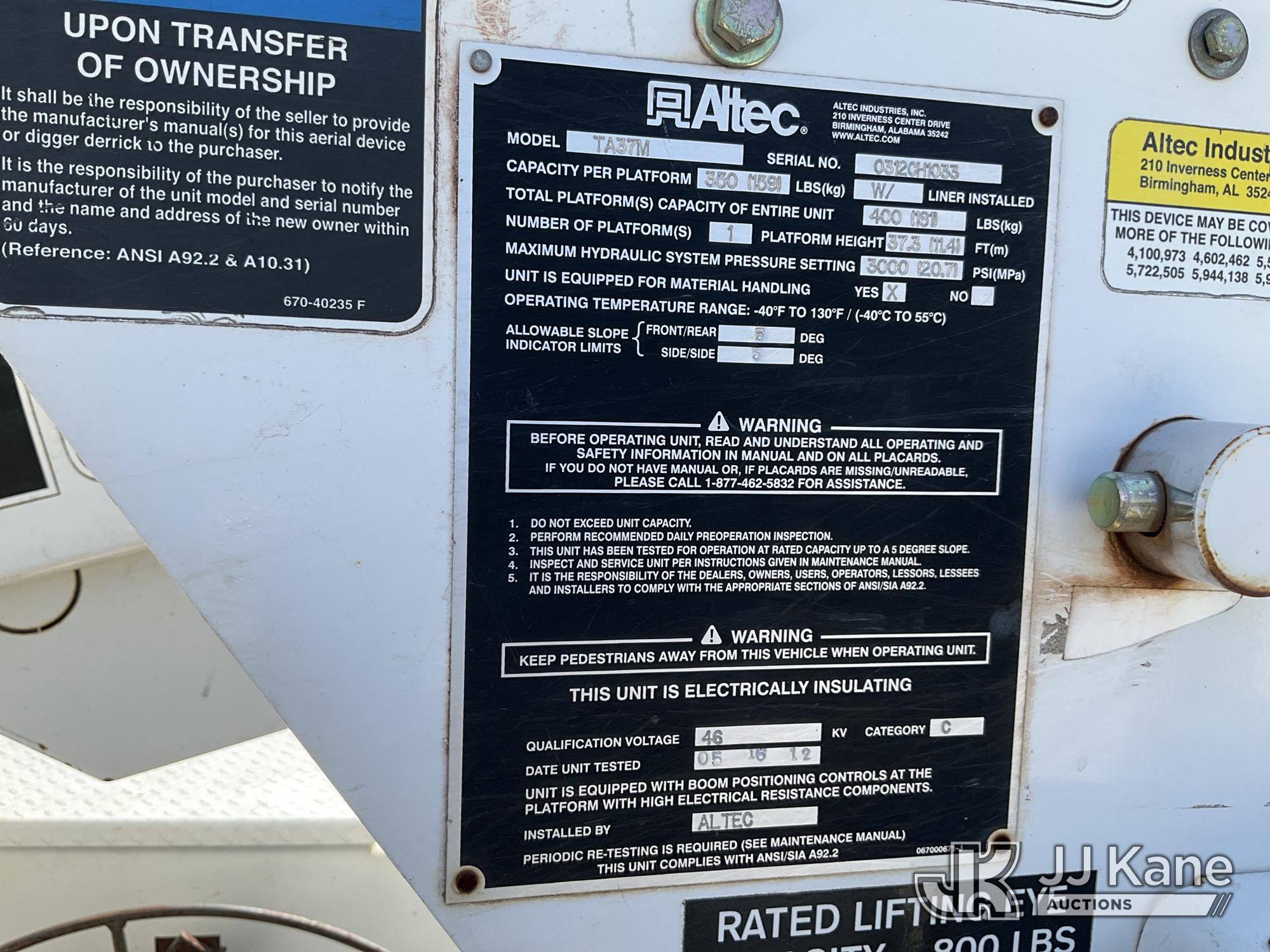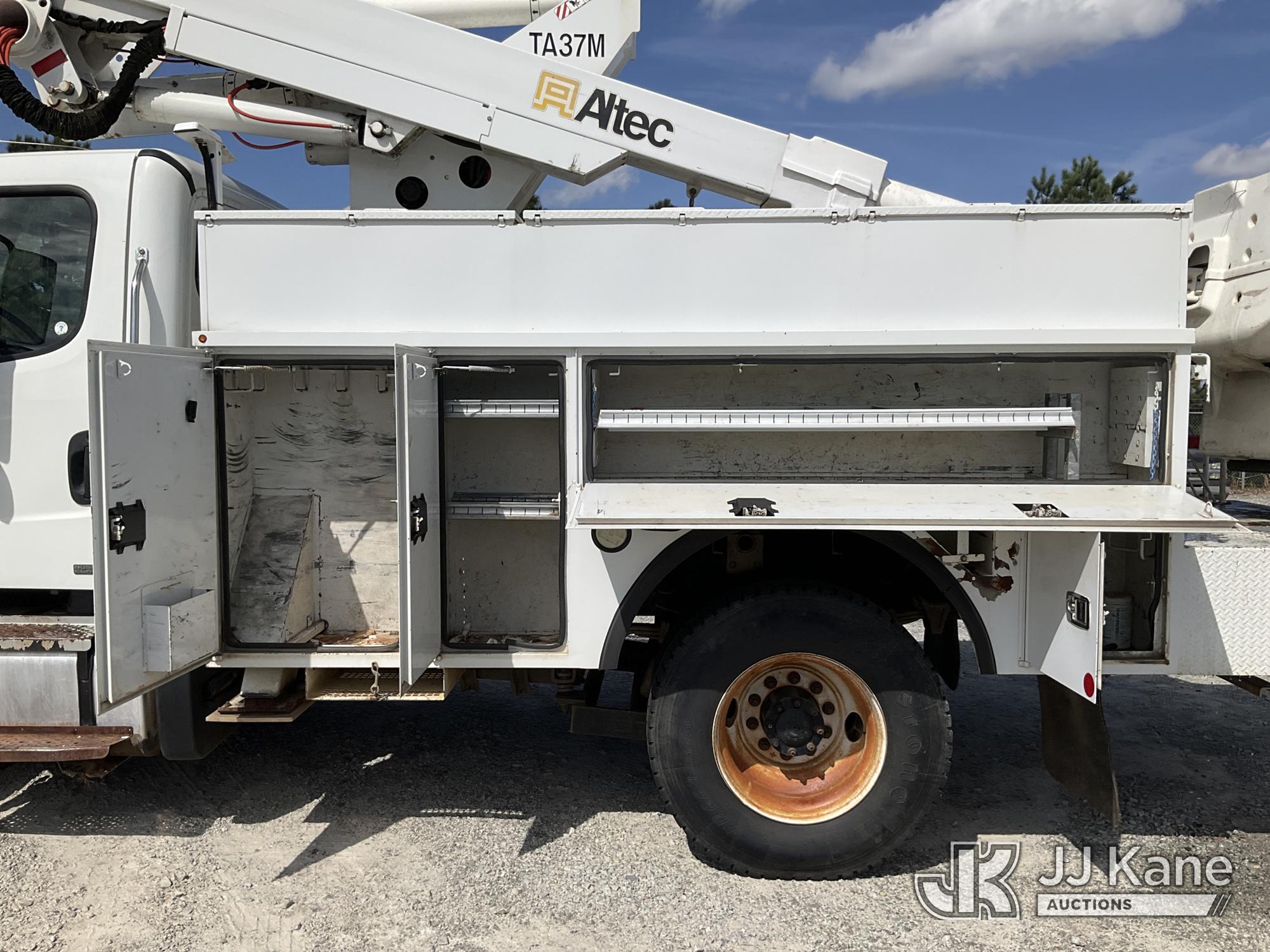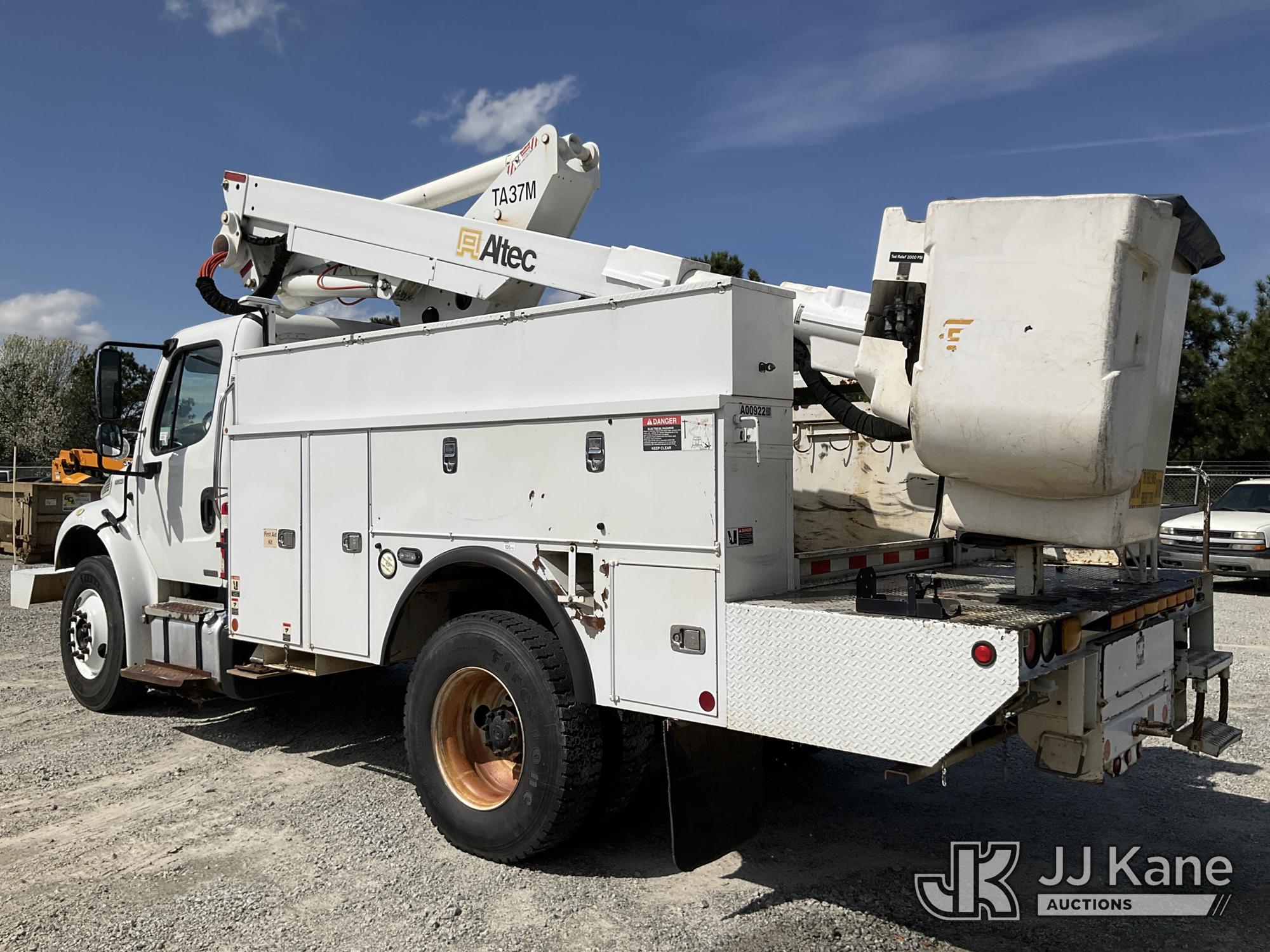 Altec TA37-MH, 42 ft, Articulating & Telescopic Material Handling Bucket Truck s/n 0312CH1033, with single-man bucket, mounted behind cab on 2012 Freightliner M2 106 Utility Truck, 6.7L L6 Diesel, 4X2, Auto, A/C, (197,789 miles) (GA Power Unit) (Runs, Moves & Upper Operates) (Jump To Start, Out Riggers Will Not Work, ABS Light On The manufacturer has notified JJ Kane that this equipment is subject to an open recall. CSN 643 TA Winch Brake Inspection The equipment should not be operated until this is addressed. Buyer is responsible for reviewing the recall notice and contacting the manufacturer to schedule the recommended corrective actions. Associated costs may be covered by the manufacturer in some cases.) (Reads 10,591 hours) This is a Titled Item*
