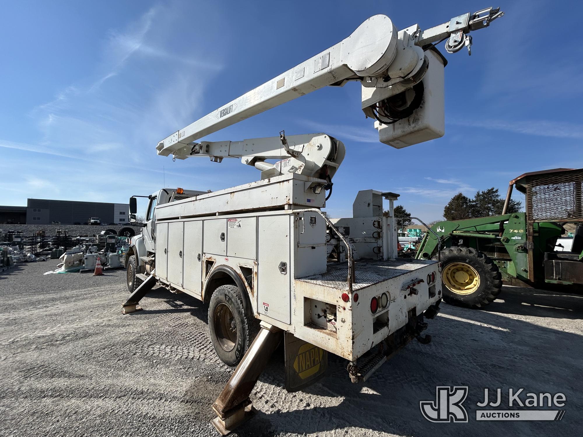 Versalift V0355MHI, Over-Center Material Handling Bucket Truck s/n DN090008, with single man bucket, rear mounted on 2010 Freightliner M2 Utility Truck, Cummins ISC 8.3L diesel, 4wd, Auto, A/C, with front winch, (148,246 miles) (Runs, Moves & Upper Operates) This is a Titled Item*