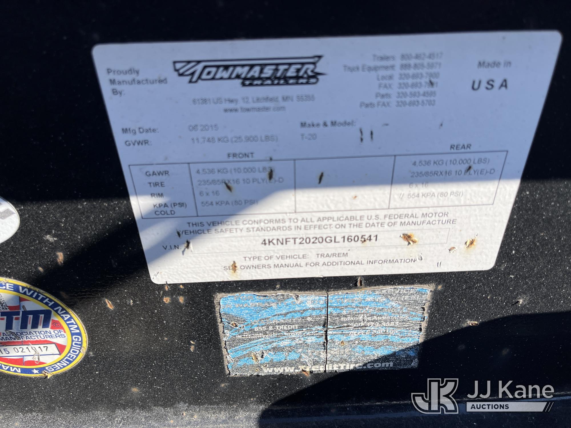 2016 Towmaster T/A Tagalong Equipment Trailer, with 20 foot trailer bed., (Hole In Trailer Deck) This is a Titled Item*