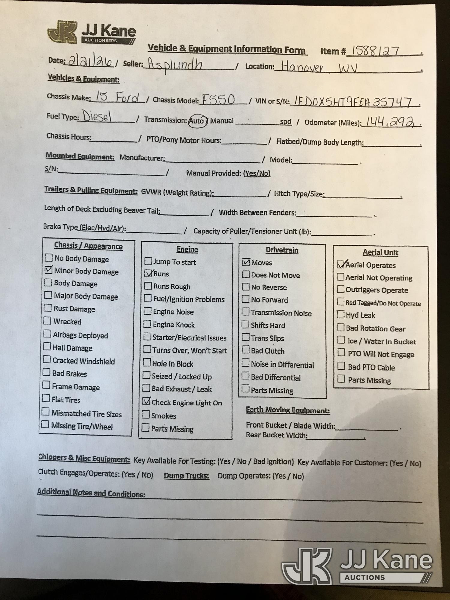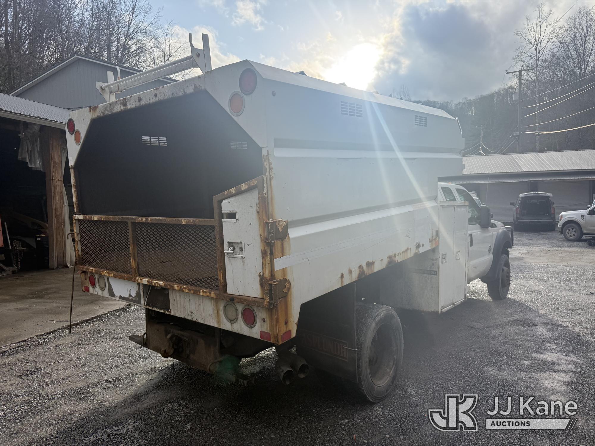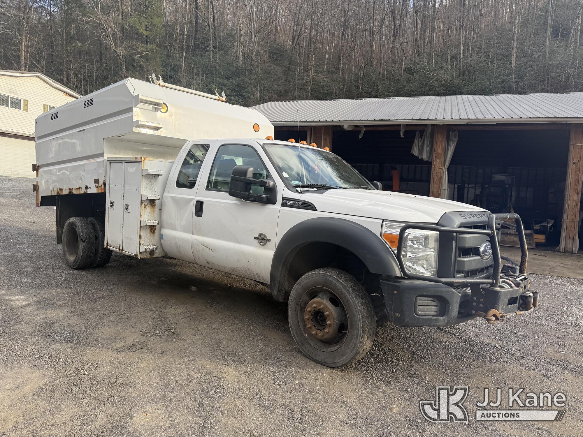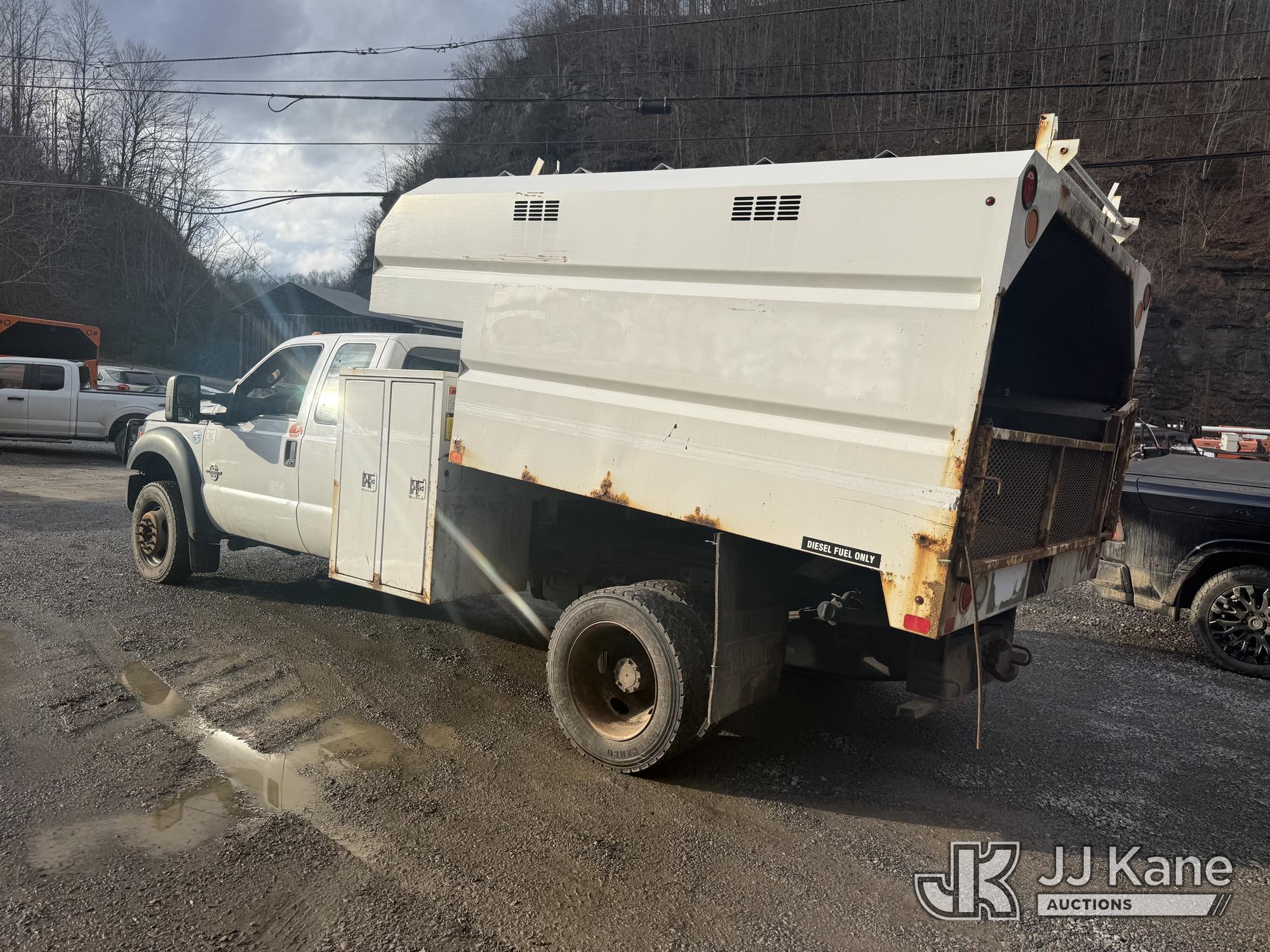 2015 Ford F550 4x4 Extended-Cab Chipper Dump Truck, 6.7L V8 OHV 16V diesel, Auto, with front winch, (144,292 miles) (Runs, Moves & Dump Operates) (Check Engine Light On) This is a Titled Item*