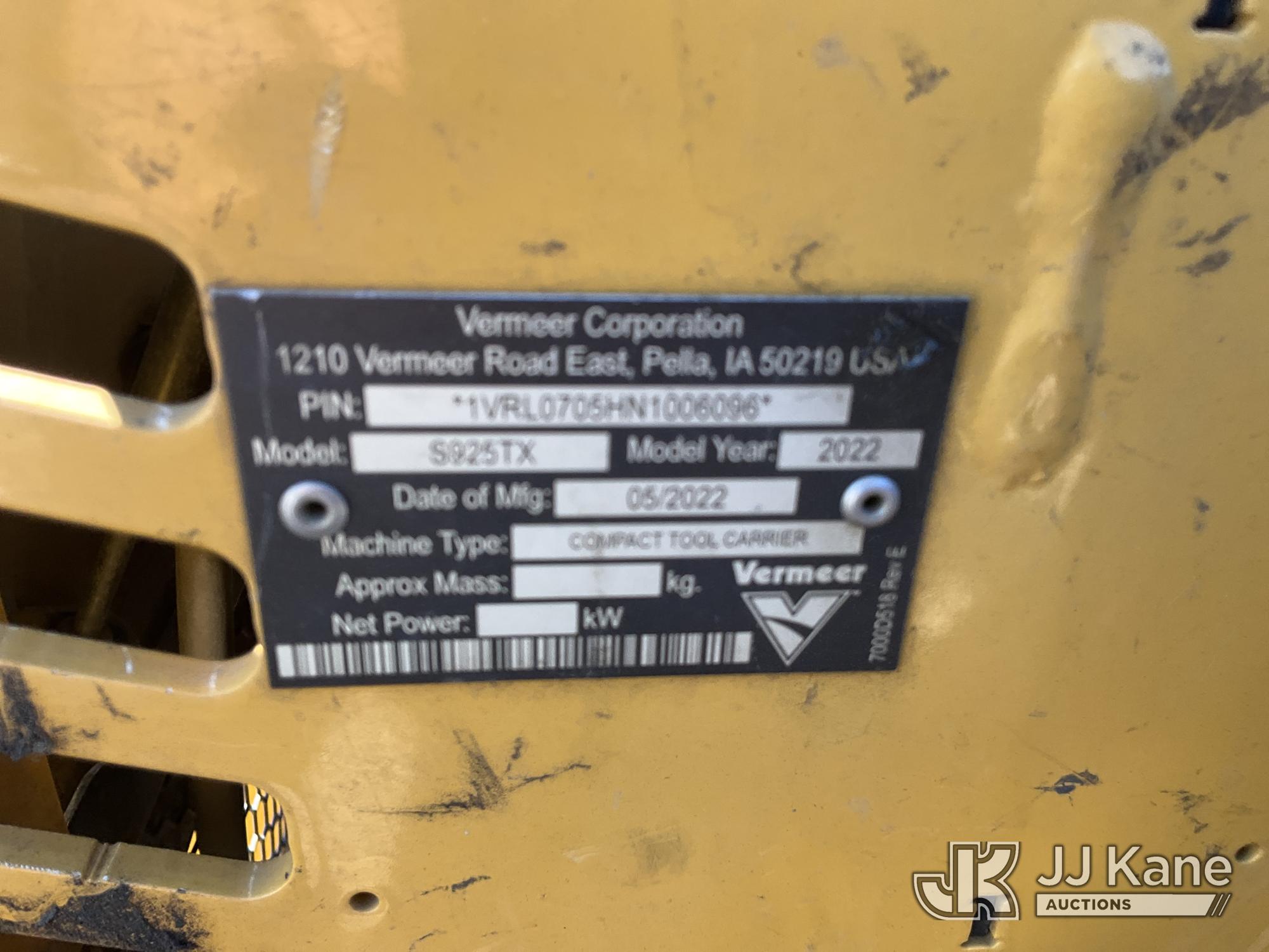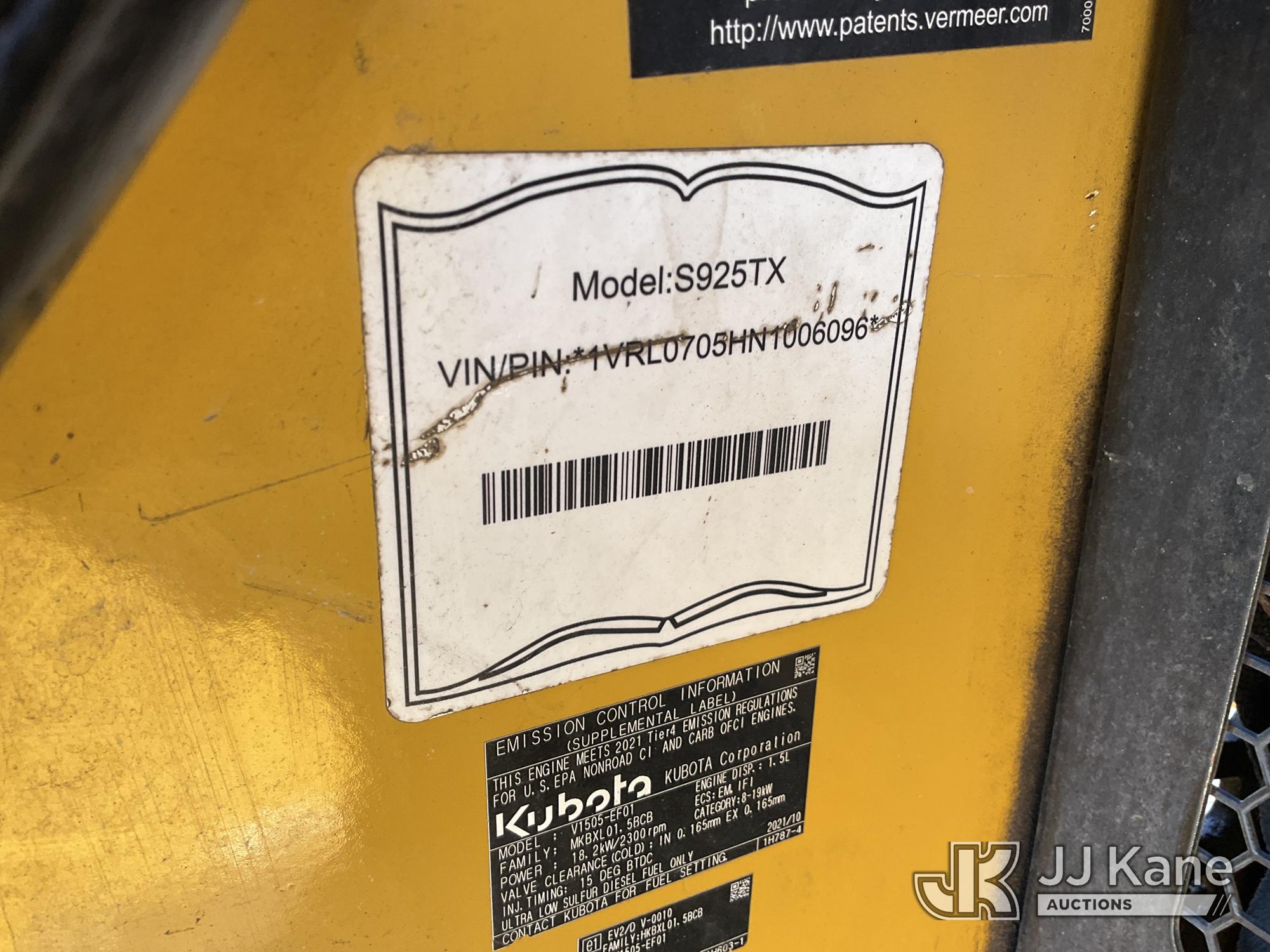 2022 Vermeer S925TX Stand-Up Crawler Skid Steer Loader, s/n 1VRL0705HN1006096, Kubota diesel, Hydraulic Drive, with Rubber Tracks, Grapple Attachment, Aux. Hyd. Outlets, (Runs & Moves) (Reads 1,581 hours)*