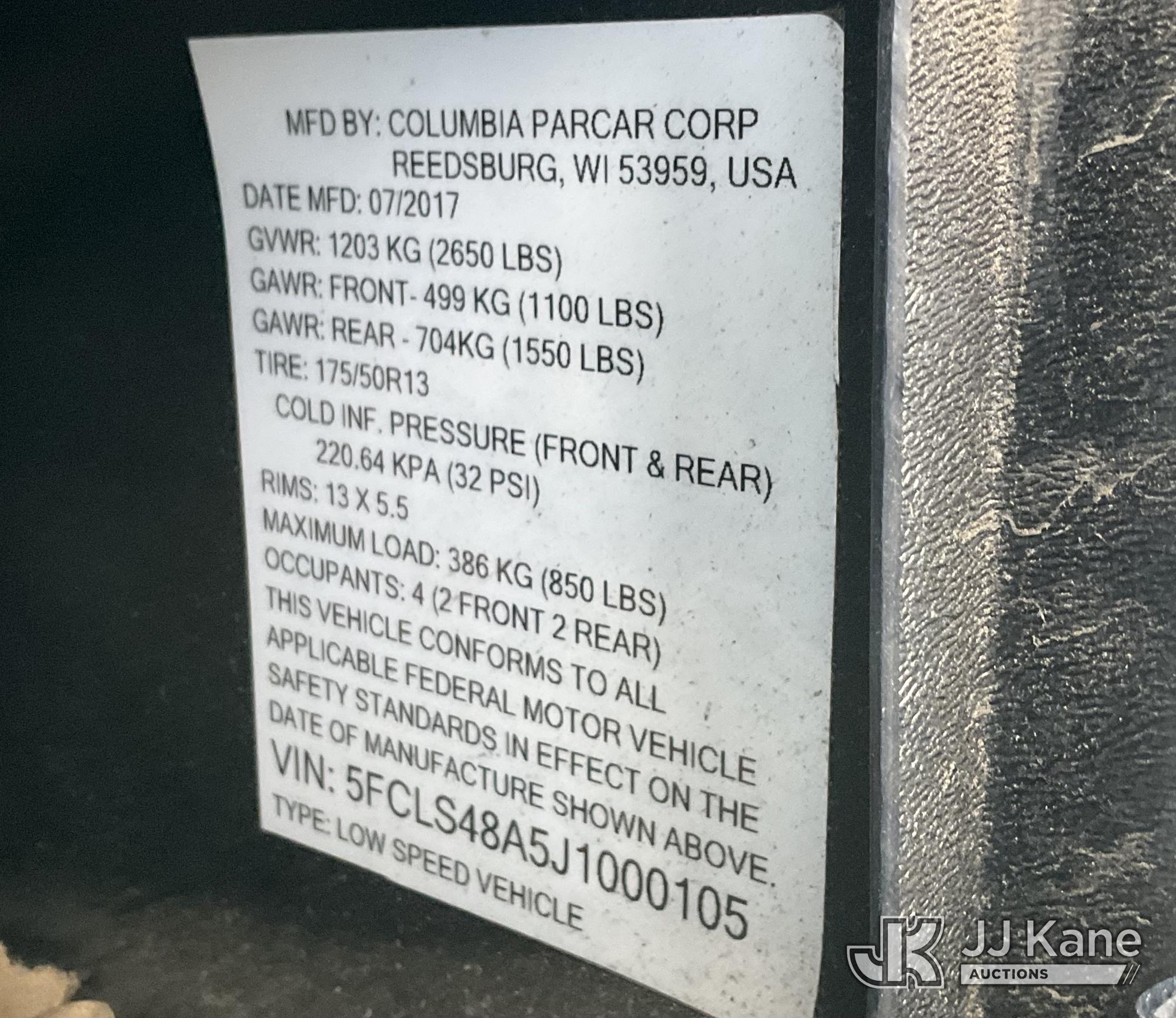 2018 Columbia Utility Cart, s/n 5FCLS48A5J1000105, Battery electric, (3,587 miles) (Runs & Moves) This is a Titled Item*