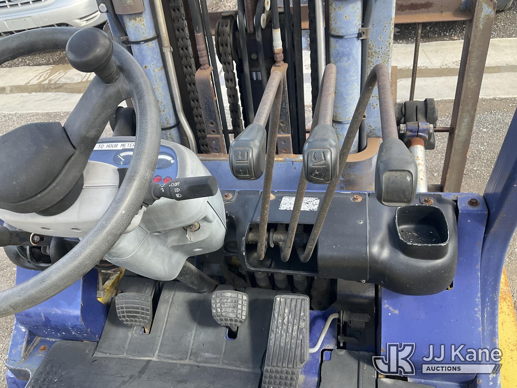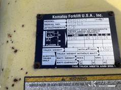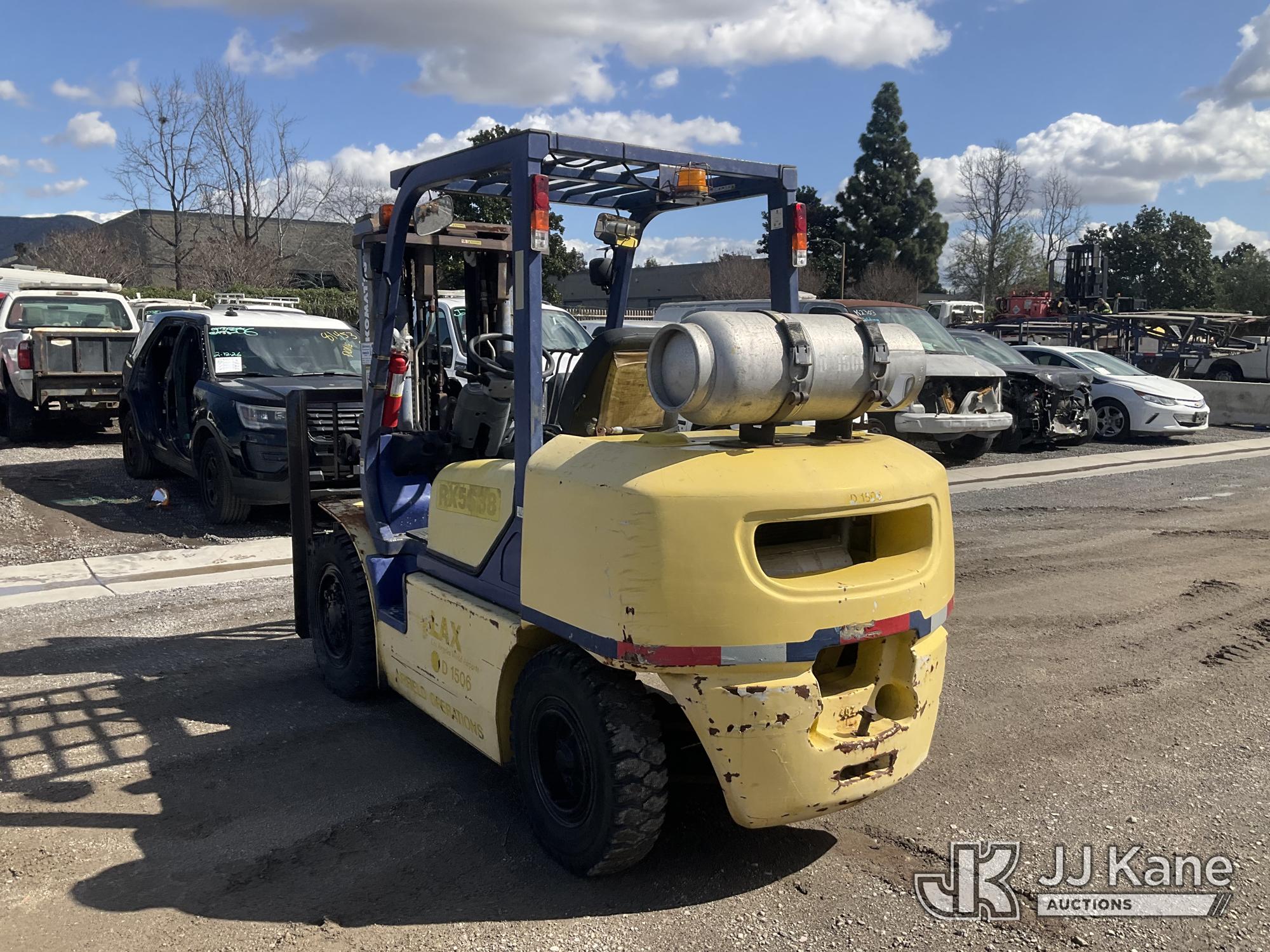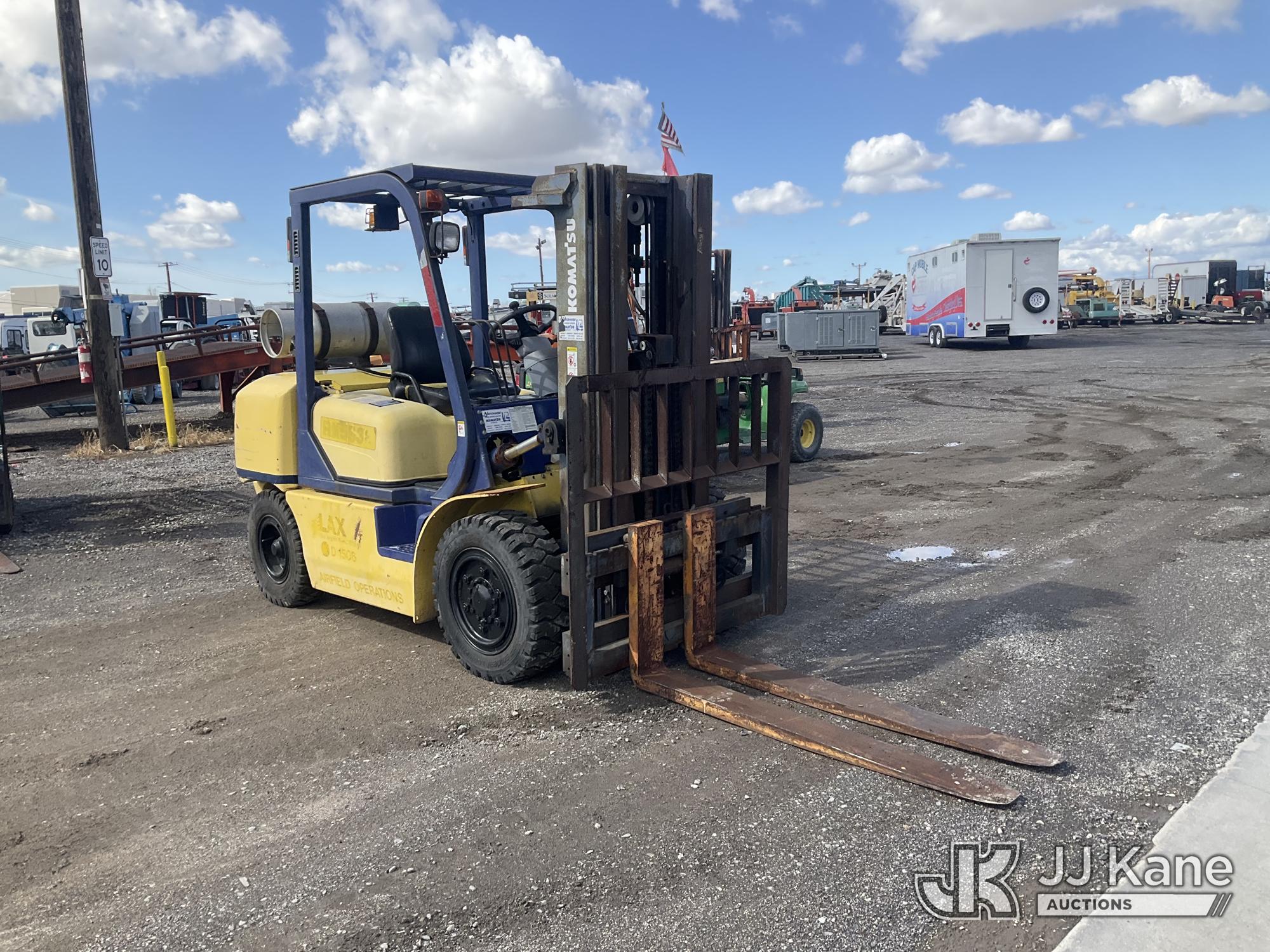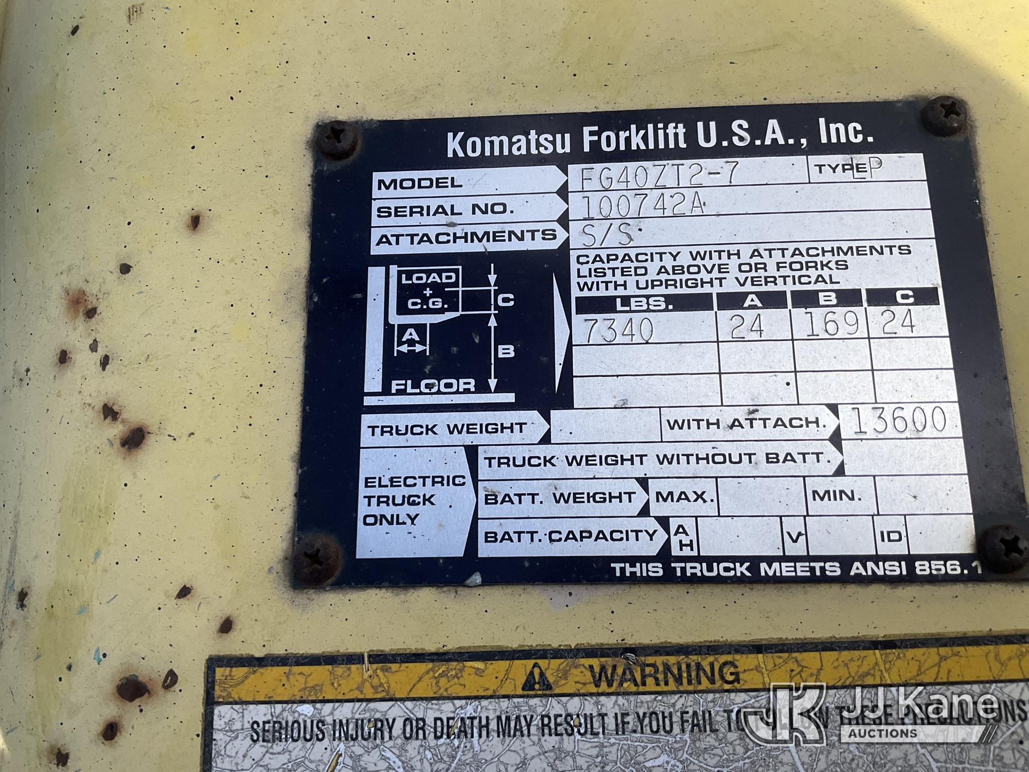 1999 KOMATSU FG40ZT2-7 Rubber Tired Forklift, s/n 100742A, 6-cyl, LPG, with 3 stage mast, fork length 5ft, mast H= 6ft 5” W2ft 5”, capacity is 7340, (Runs, Moves & Operates ) (Reads 156 hours)*