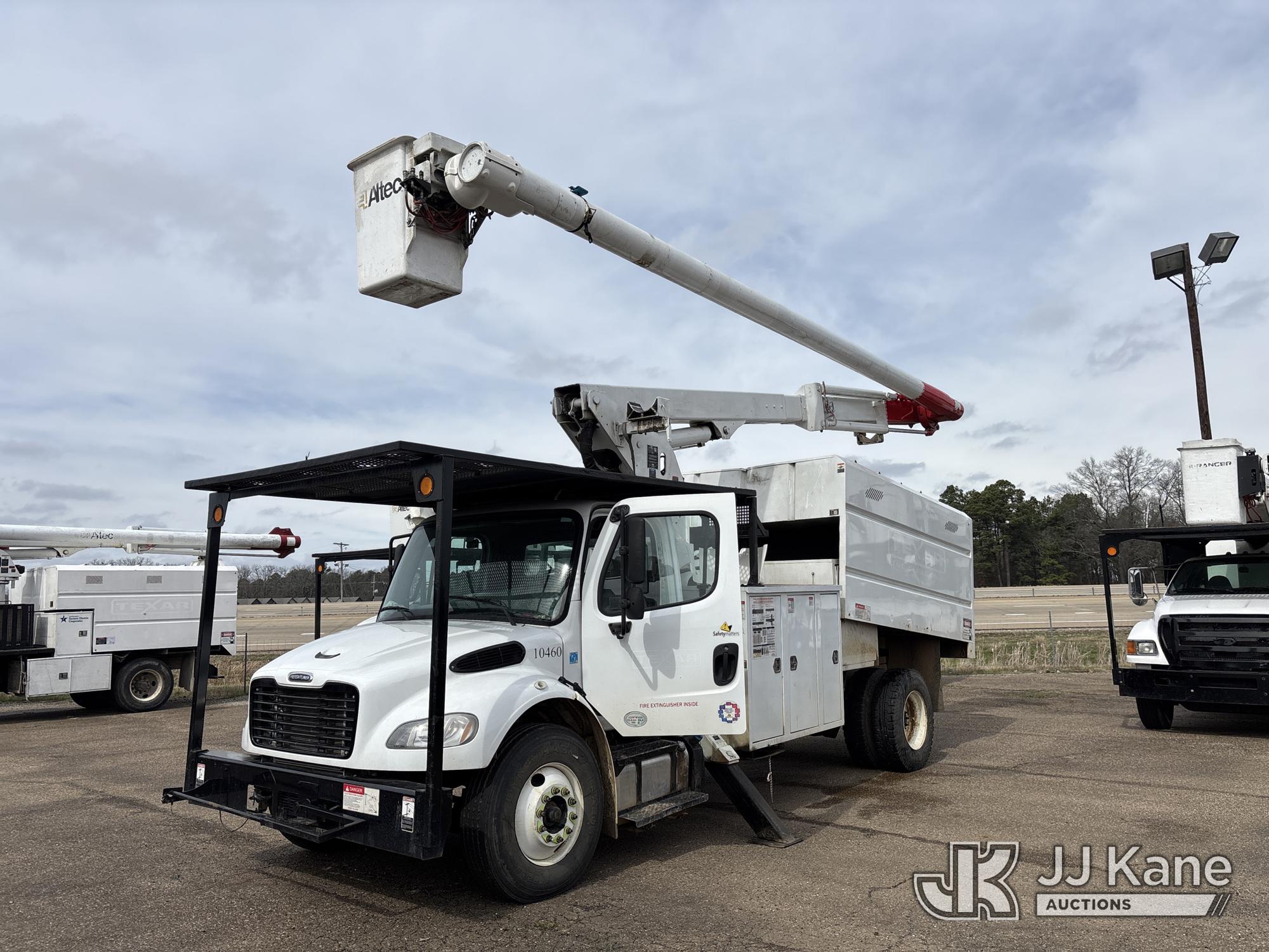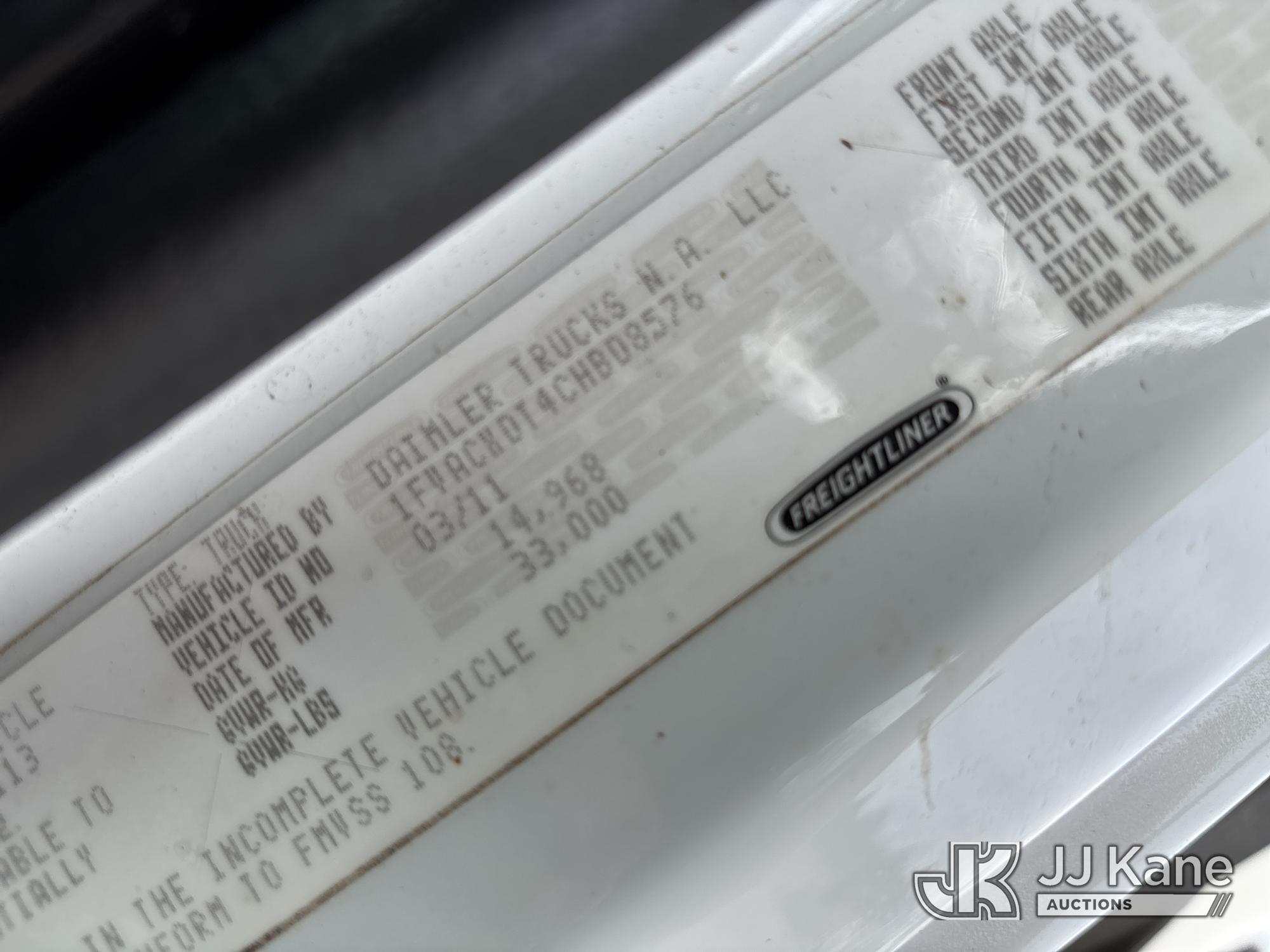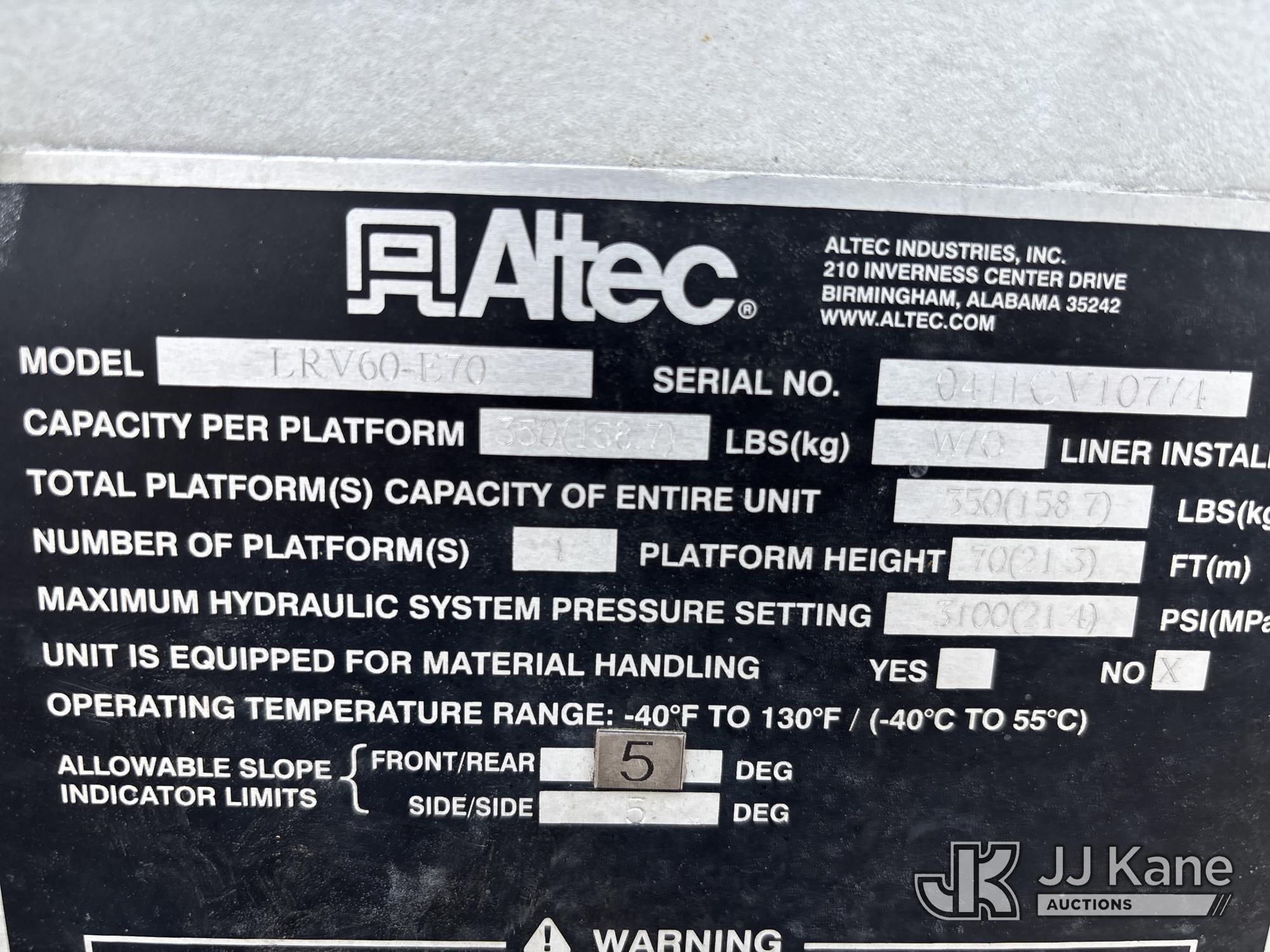 Altec LRV-60E70, 75 ft, Over-Center Elevator Bucket Truck s/n 0411CV10774, with Single-Man Bucket, mounted behind cab on 2012 Freightliner M2 106 Chipper Dump Truck, 6.7L L6 DIESEL 4X2, manual, (96,047 miles) (Runs, Moves & Upper Operates) (Jump to Start, Check Engine Light On The manufacturer has notified JJ Kane that this equipment is subject to an open recall. CSN 546 Body Door Latch Inspection CSN 571 Chassis Air Brake Hose Replacement CSN 672 LRV/LR7 Leveling Yoke Inspection The equipment should not be operated until this is addressed. Buyer is responsible for reviewing the recall notice and contacting the manufacturer to schedule the recommended corrective actions. Associated costs may be covered by the manufacturer in some cases.) (Reads 18,642 hours) This is a Titled Item*