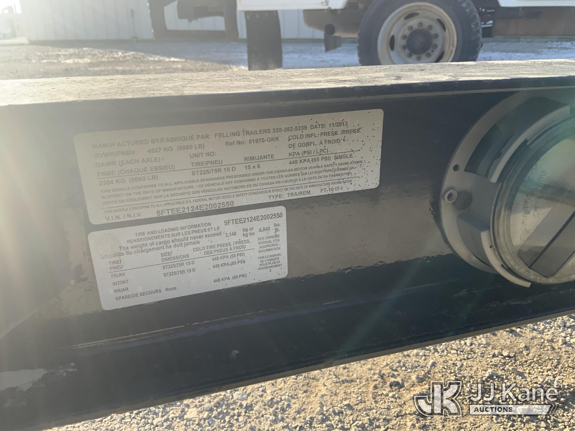 2014 Felling FT-10 T/A Equipment Trailer, s/n 5FTEE2124E2002550, with 15 ft. tilt deck between wheels & dovetail, This is a Titled Item*