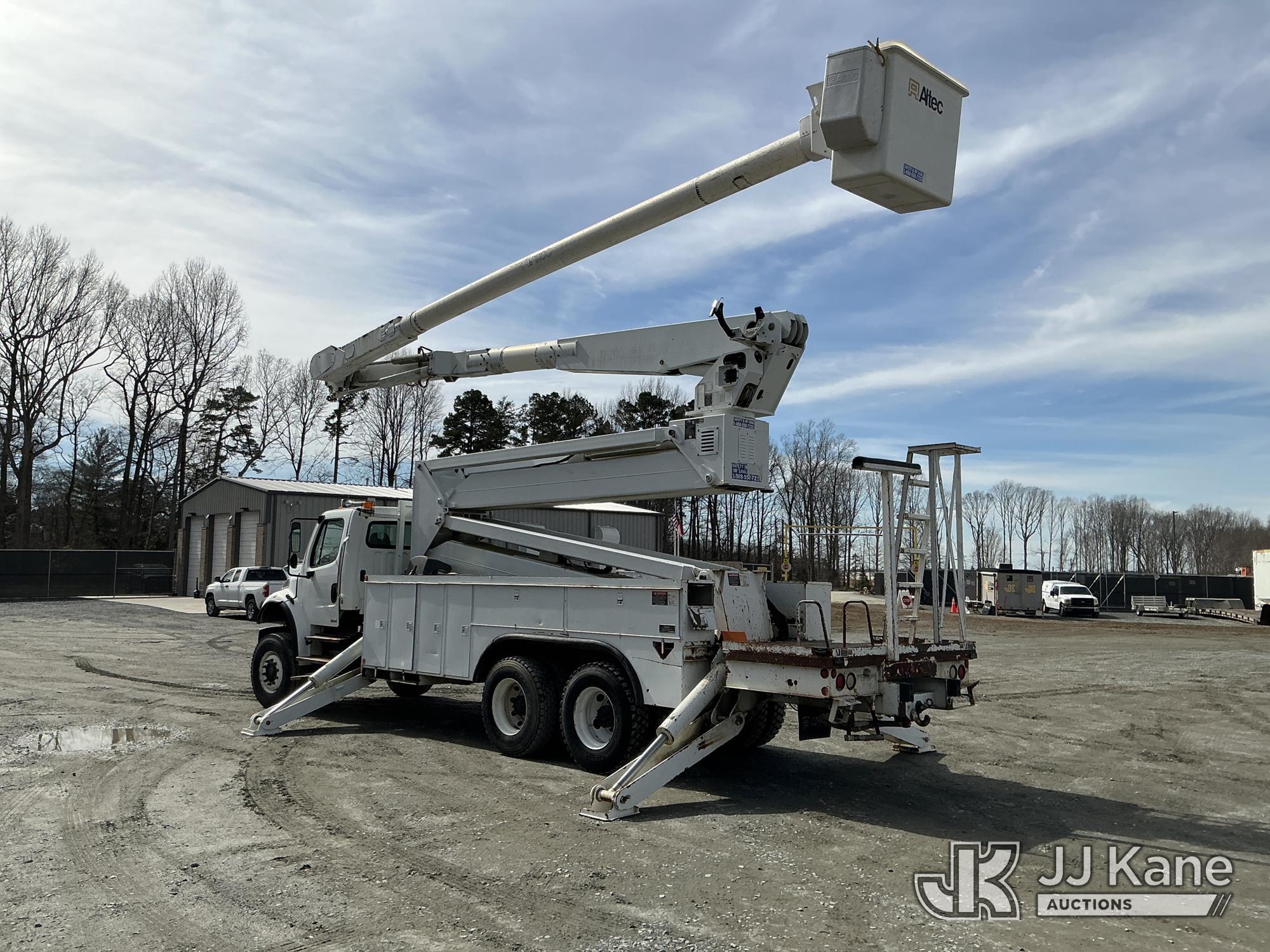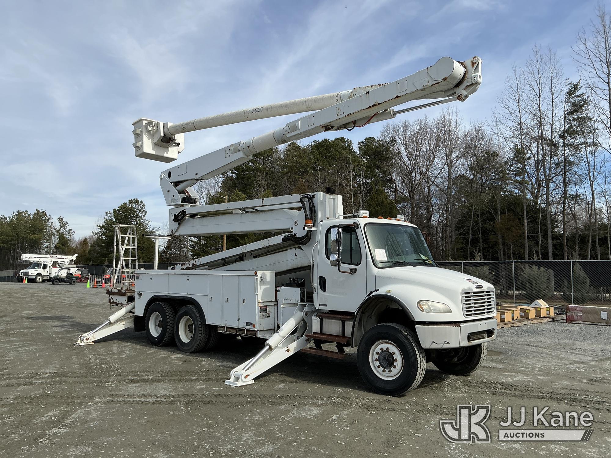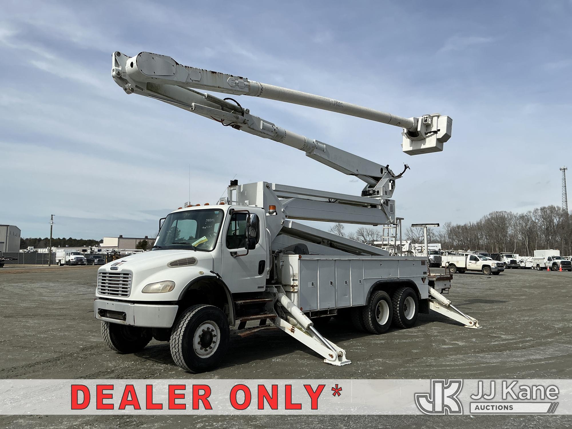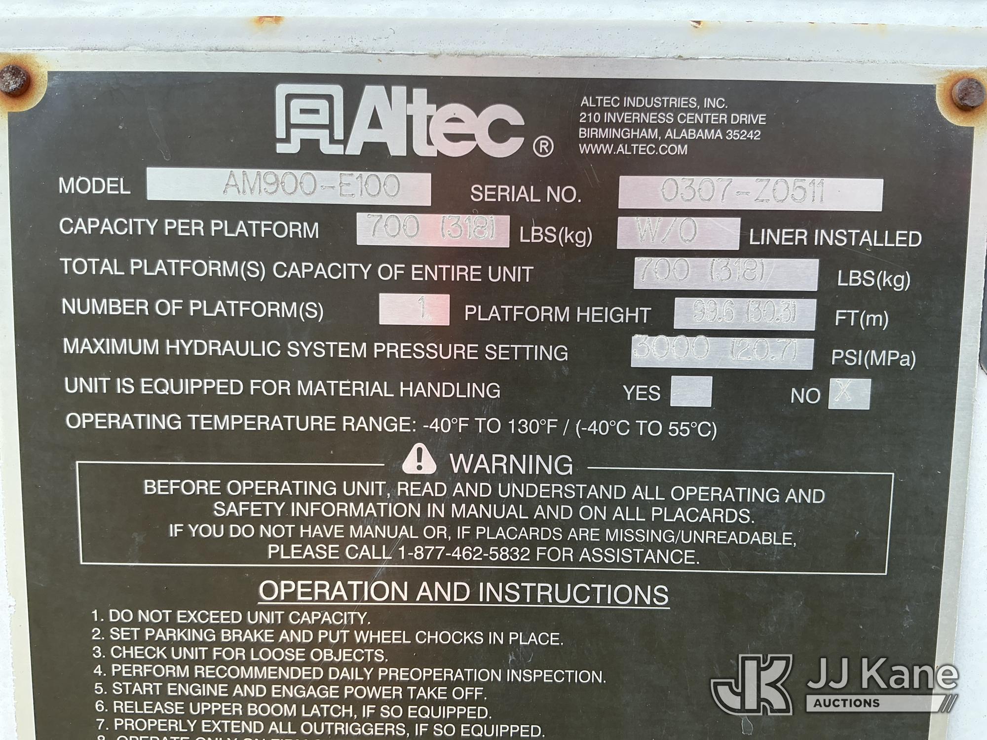 Altec AM900-E100, 105 ft, Double-Elevator Bucket Truck s/n 0307-Z0511, with two man bucket & 4 hyd outriggers, rear mounted on 2007 Freightliner M2 106 6X6 T/A Utility Truck, Cat C7 diesel, Auto, A/C, (37,571 miles) (**Dealer Only** Runs, Moves & Upper Operates) (Jump to Start)(**Note** This item has been removed from service due to the listed safety repairs that were not completed. The safety items below must be completed by an approved upper OEM facility before the unit can return to service: LEVELING CABLES OUT OF DATE, REPLACE ELEVATOR ARM ASSEMBLY; COMPLETE ANSI INSPECTION; COMPLETE ANY REQUIRED TESTING AND REPAIRS AFTER INSPECTIONS ARE COMPLETED.) (Bidding Restricted to Licensed Vehicle Dealers Only), This is a Titled Item*
