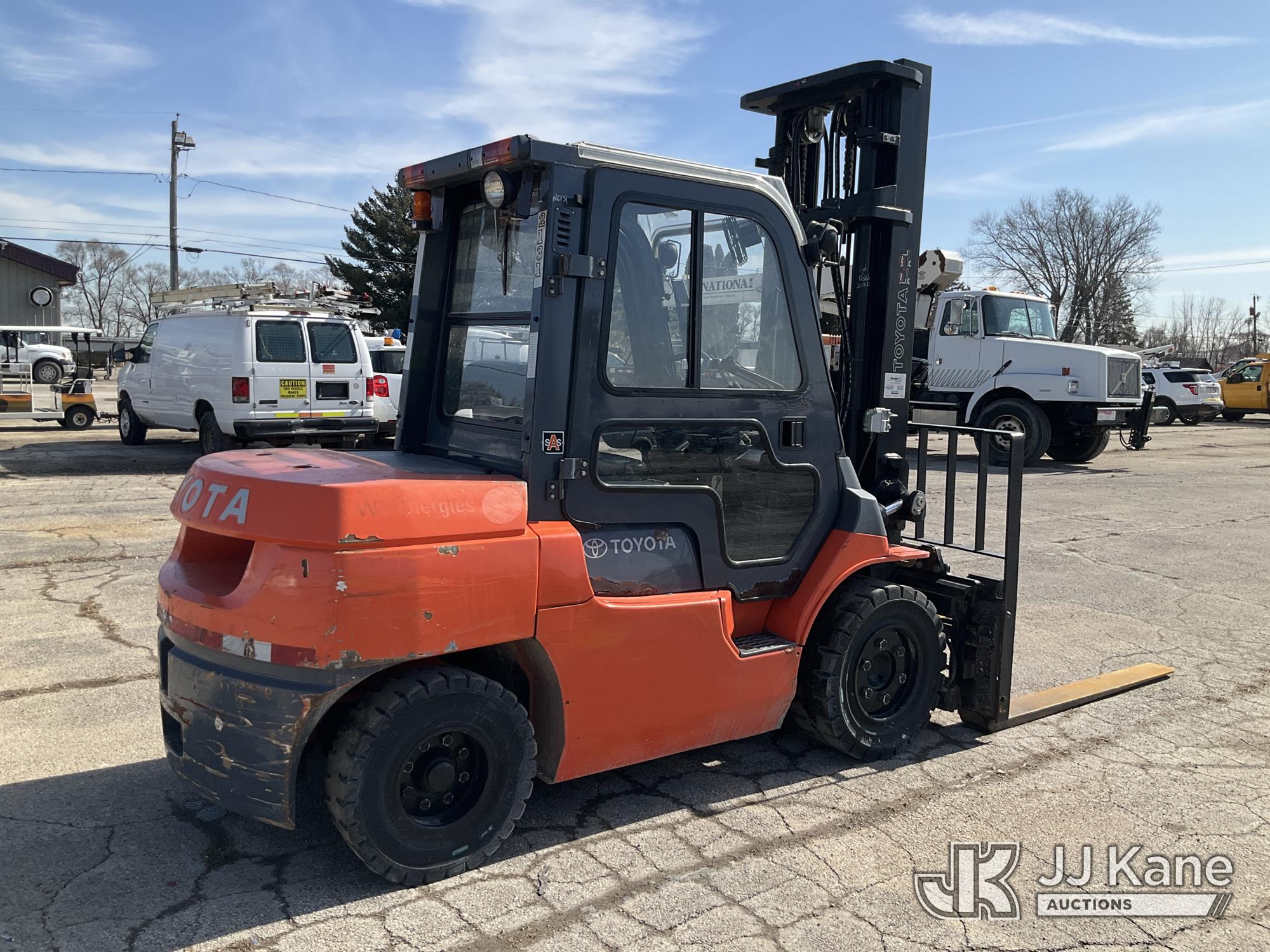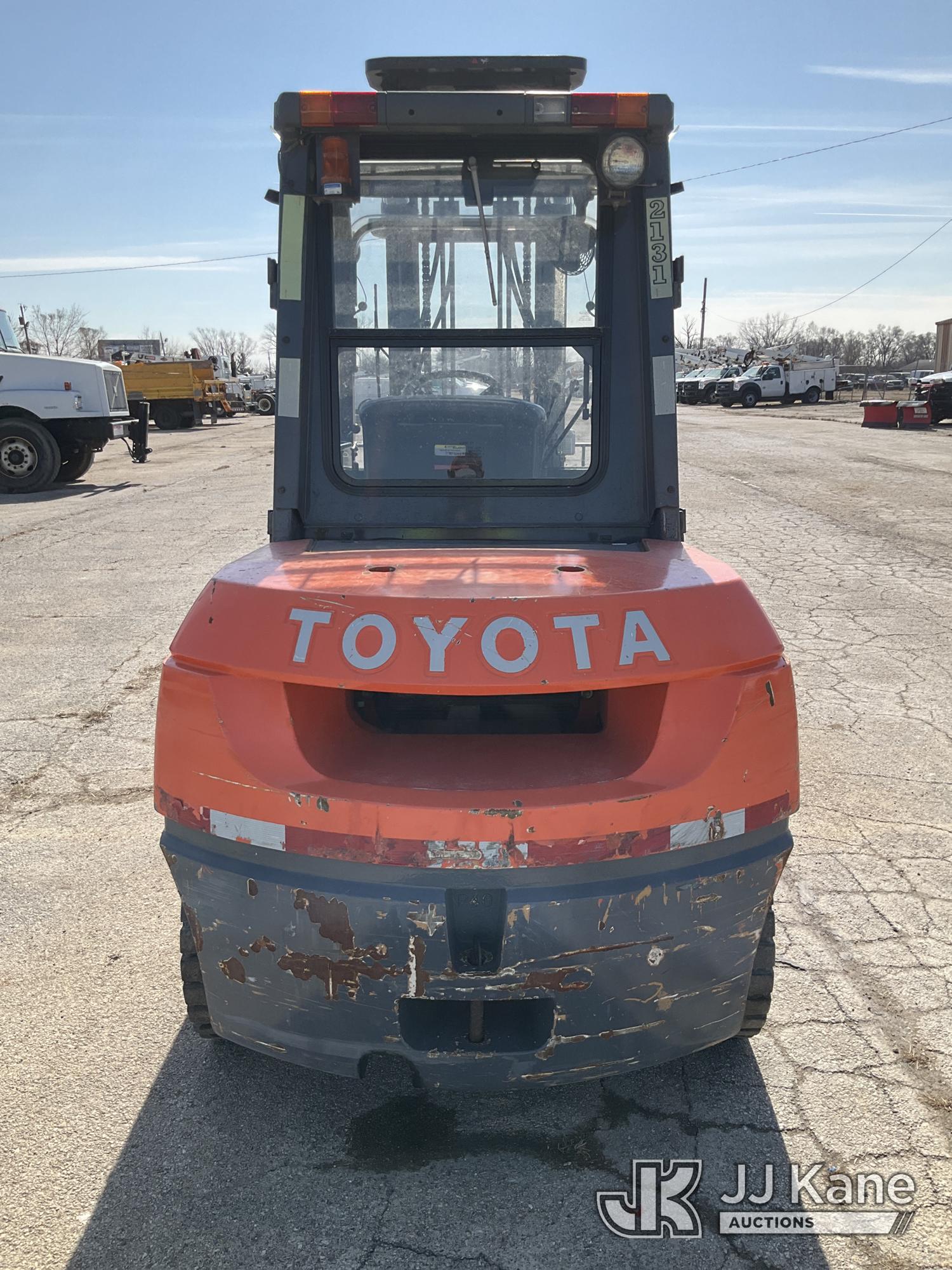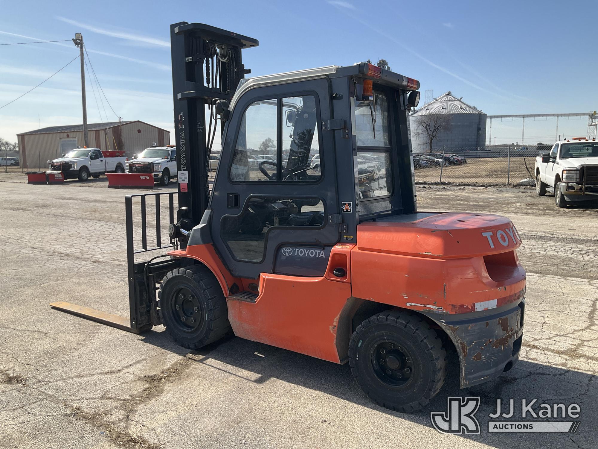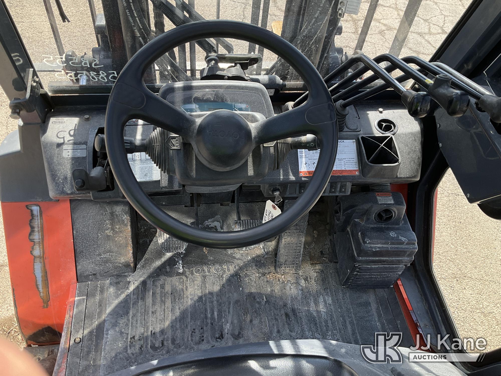 2010 Toyota 7FGKU40 Solid Tired Forklift, s/n 70602, 4-cyl gas, Shuttle, with 7,700lbs. capacity, 159in. mast height, hyd open/close, hyd side shift, 60in. forks & EROPS, (Runs, Moves, Operates) (Reads 3,678 hours)*