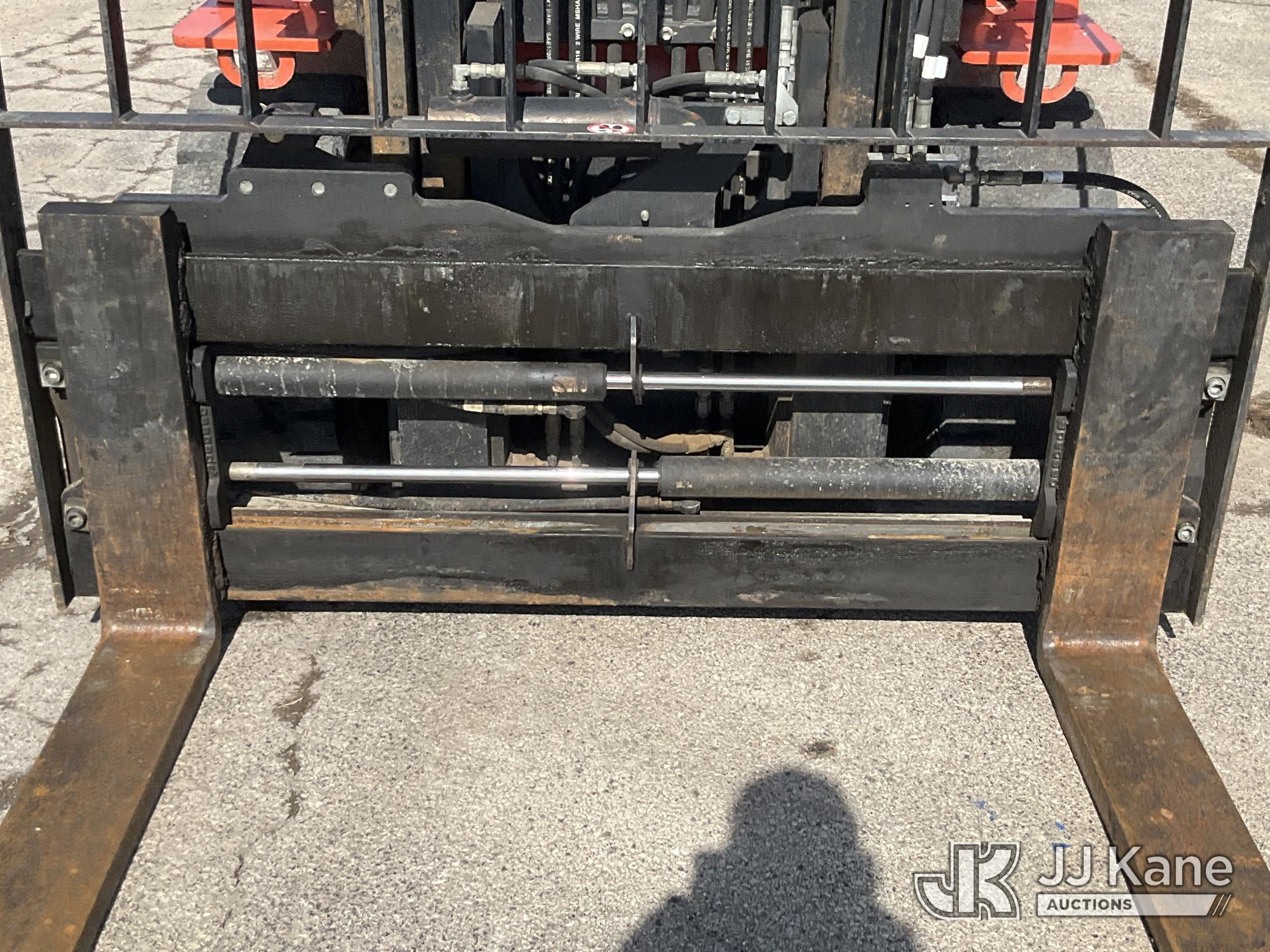 | Optional Equipment: | 7,700lbs. capacity, 159in. mast height, hyd open/close, hyd side shift, 60in. forks & EROPS |
