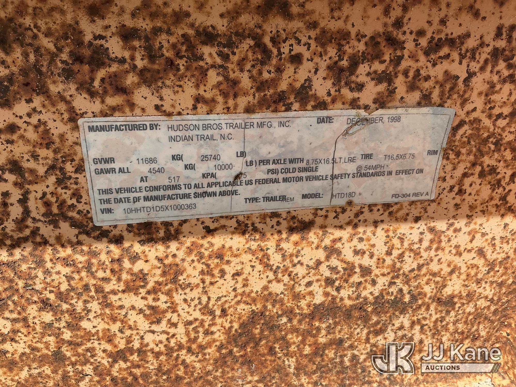 1999 Hudson HTD18D 10-Ton Tagalong Utiliy Trailer, This is a Titled Item*
