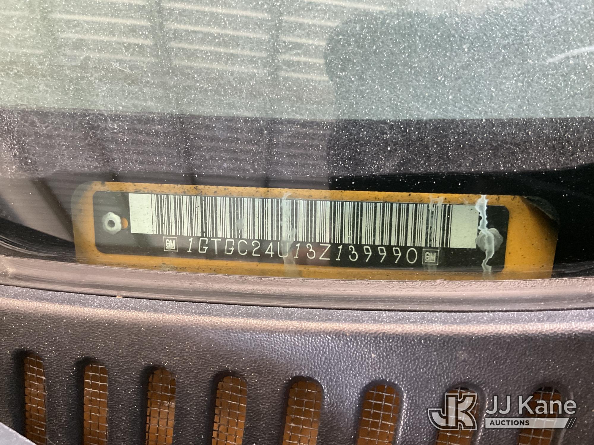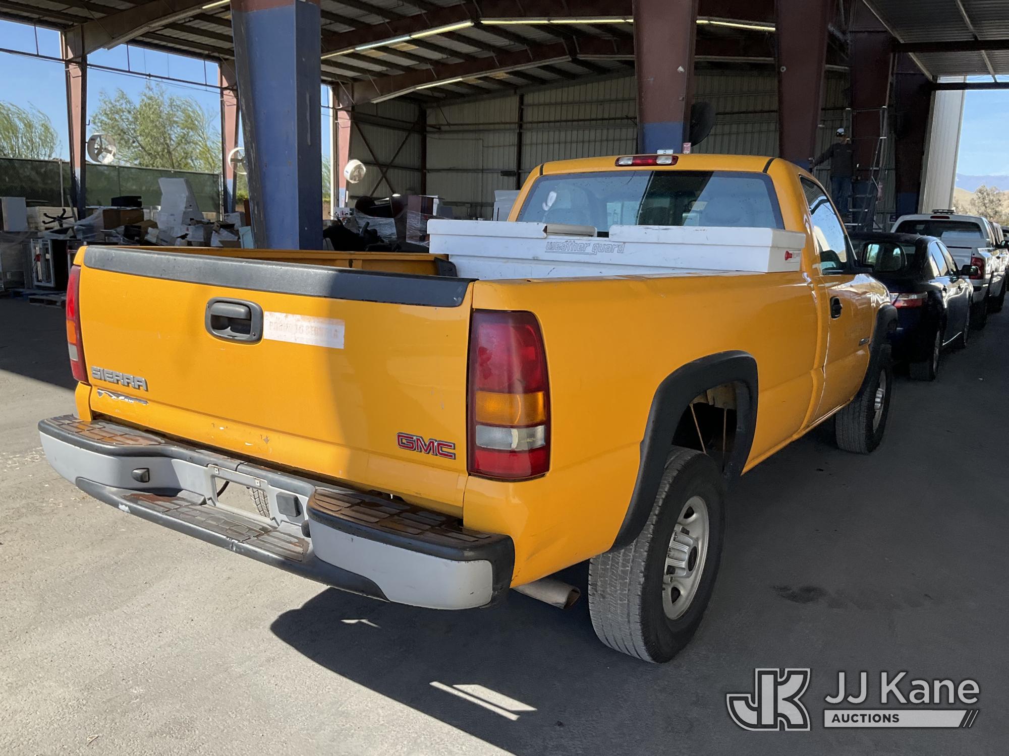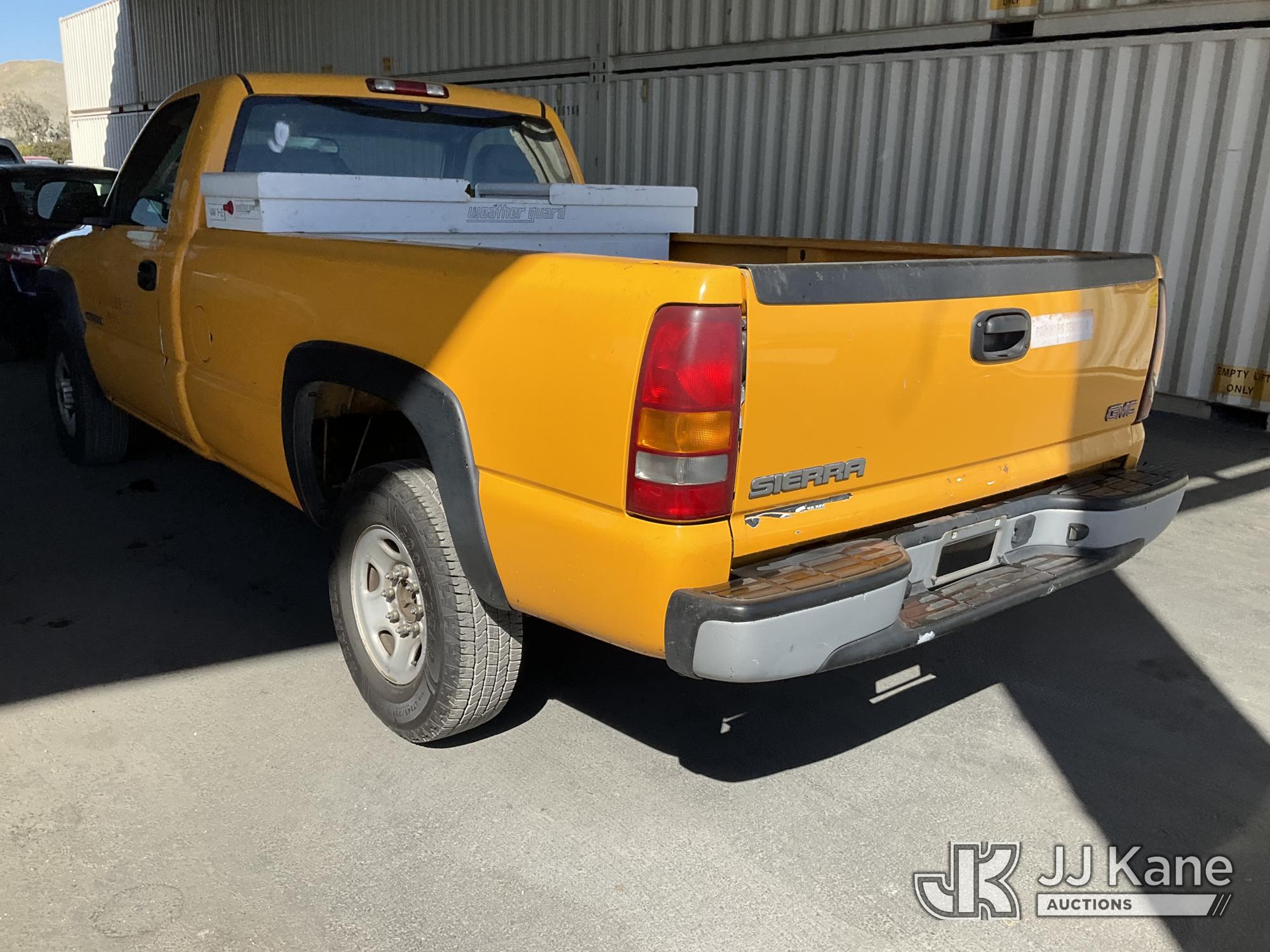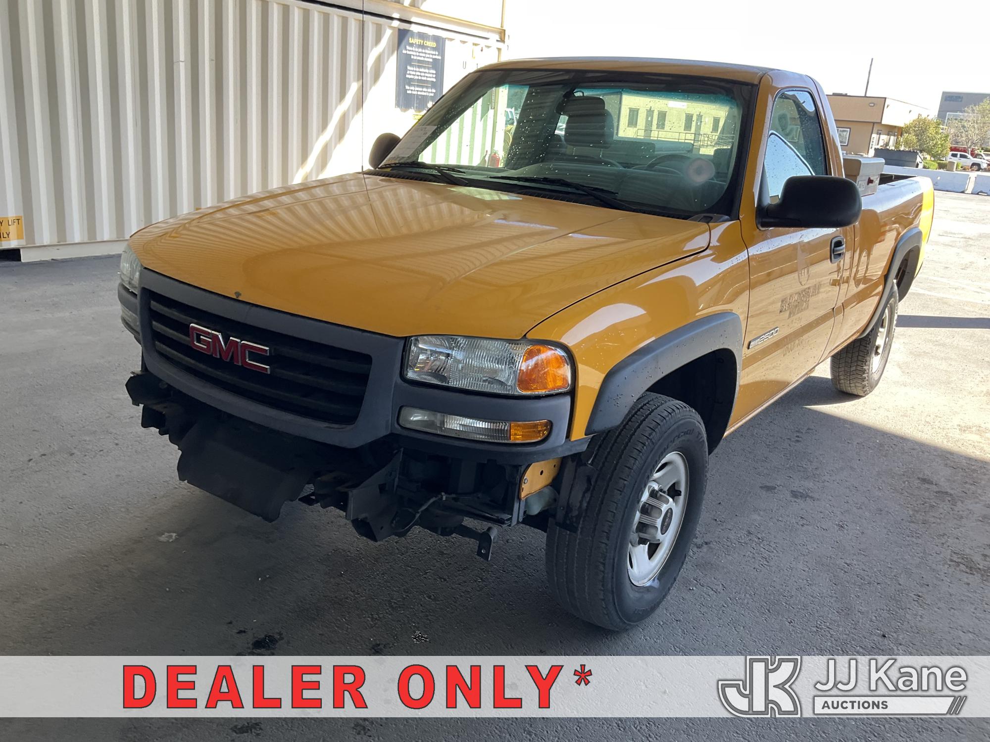 2003 GMC Sierra 2500 2WD Pickup Truck, s/n 1GTGC24U13Z139990, 6.0L V8 OHV 16V RWD, GAS, 4-Speed Automatic, A/C, with Toolbox, (Exempt from Odometer Disclosure - Reads 59,116 miles) (Runs & Moves, Missing Battery, Missing Front Bumper, Service Airbag Light On) (Bidding Restricted to Licensed Vehicle Dealers Only), This is a Titled Item*