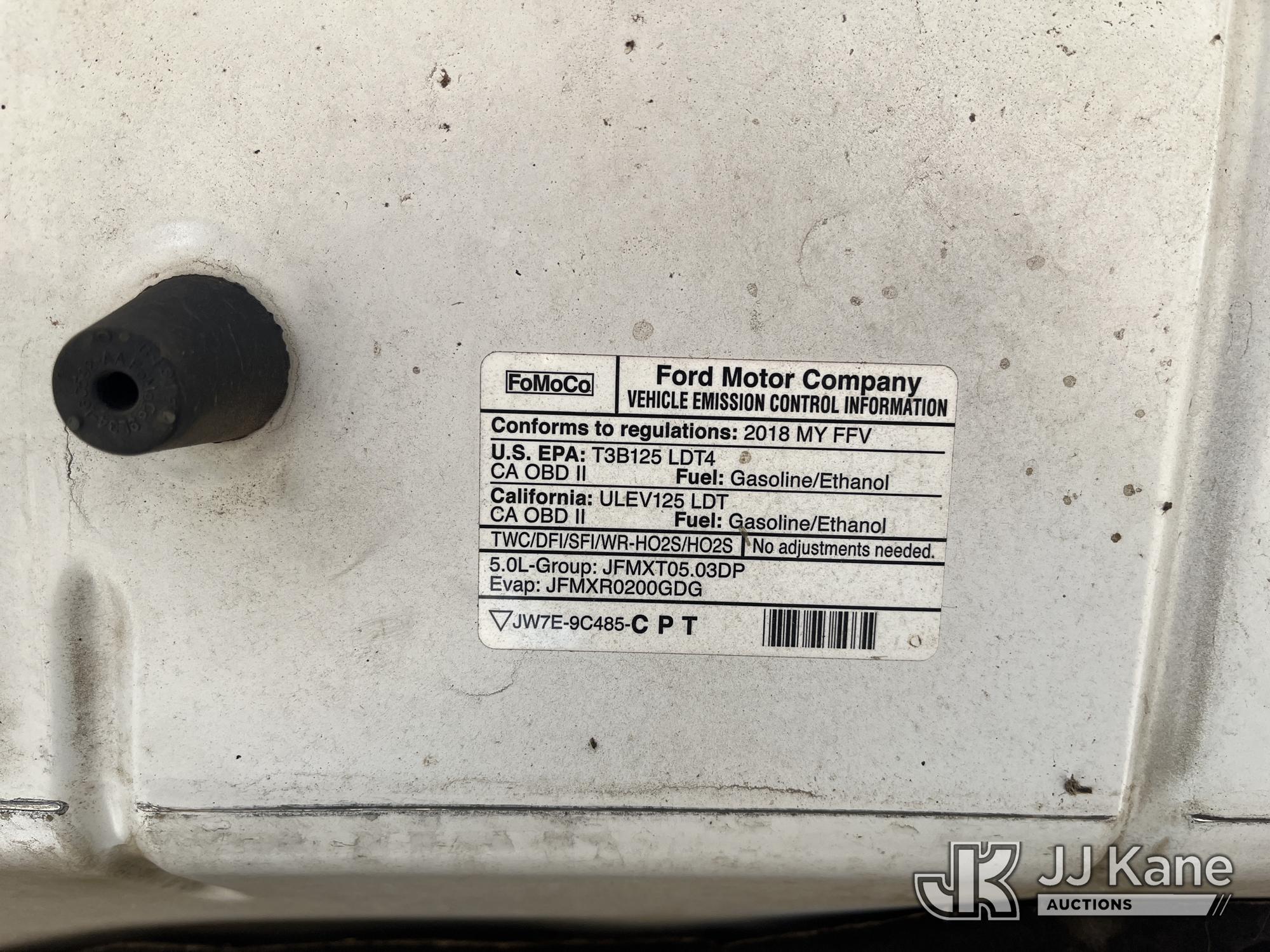 2018 Ford F-150 Pickup Truck, 5.0L V8 OHV 16V RWD, GAS, 6-Speed Automatic, A/C, with service cap, (181,985 miles) (Runs & Moves. Check Engine Light. Light Smoke From Engine Bay. Low Tire Pressure Light. Seller States Transmission Issue.) (Reads 4,801 hours) This is a Titled Item*