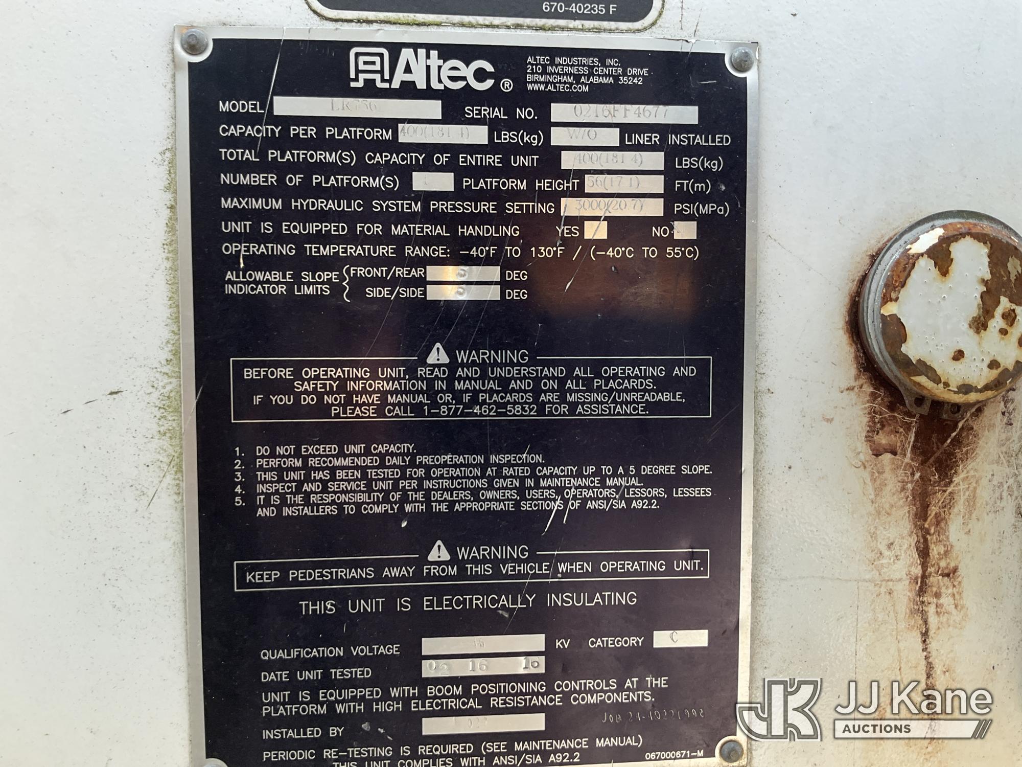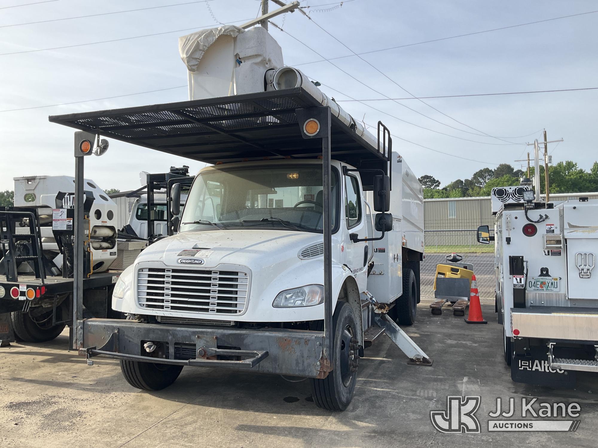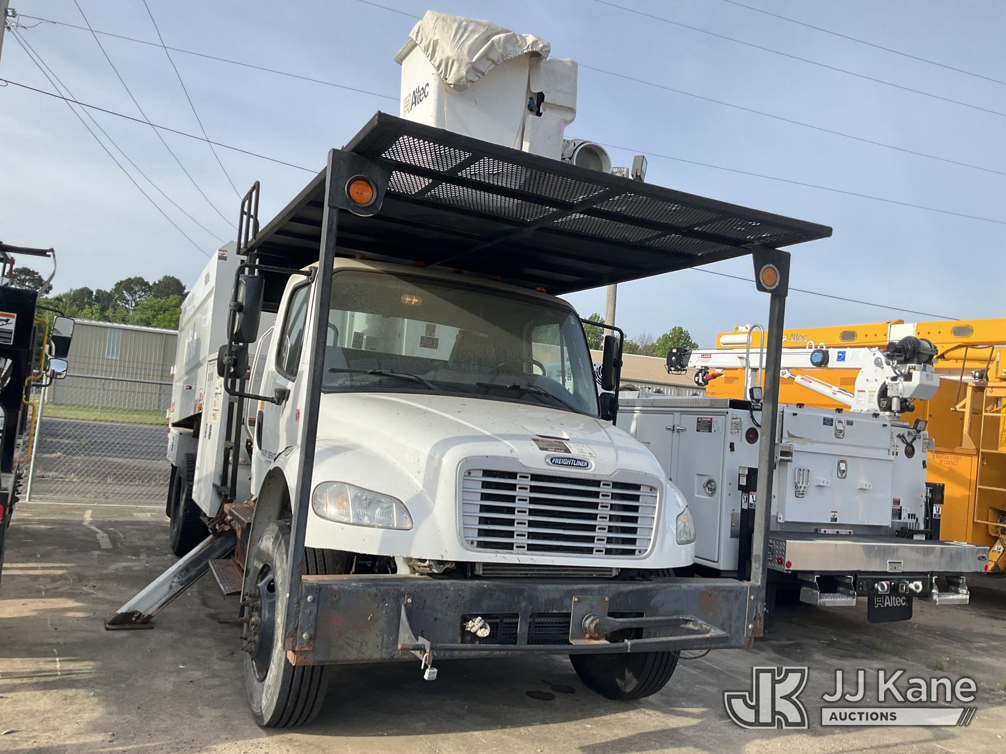 Altec LR756, 61 ft, Over-Center Bucket Truck s/n 0216FF4677, with Single-Man Bucket, mounted behind cab on 2016 Freightliner M2 106 Chipper Dump Truck, 6.7L L6 DIESEL 4X2, manual, (55,659 miles) Chip box not lifting, bent at base. Cracked windshield. Front brakes are bad; leaks, loss of pressure, rotors stress marks. (Runs & Moves, Cannot Switch to Upper, Upper Conditions Unknown) (Dash Warning Indicators On, Windshield Defects, Brakes Inoperable Per Seller “Chip box not lifting, bent at base. Cracked windshield. Front brakes are bad; leaks, loss of pressure, rotors stress marks.”) (Reads 9,934 hours) This is a Titled Item*