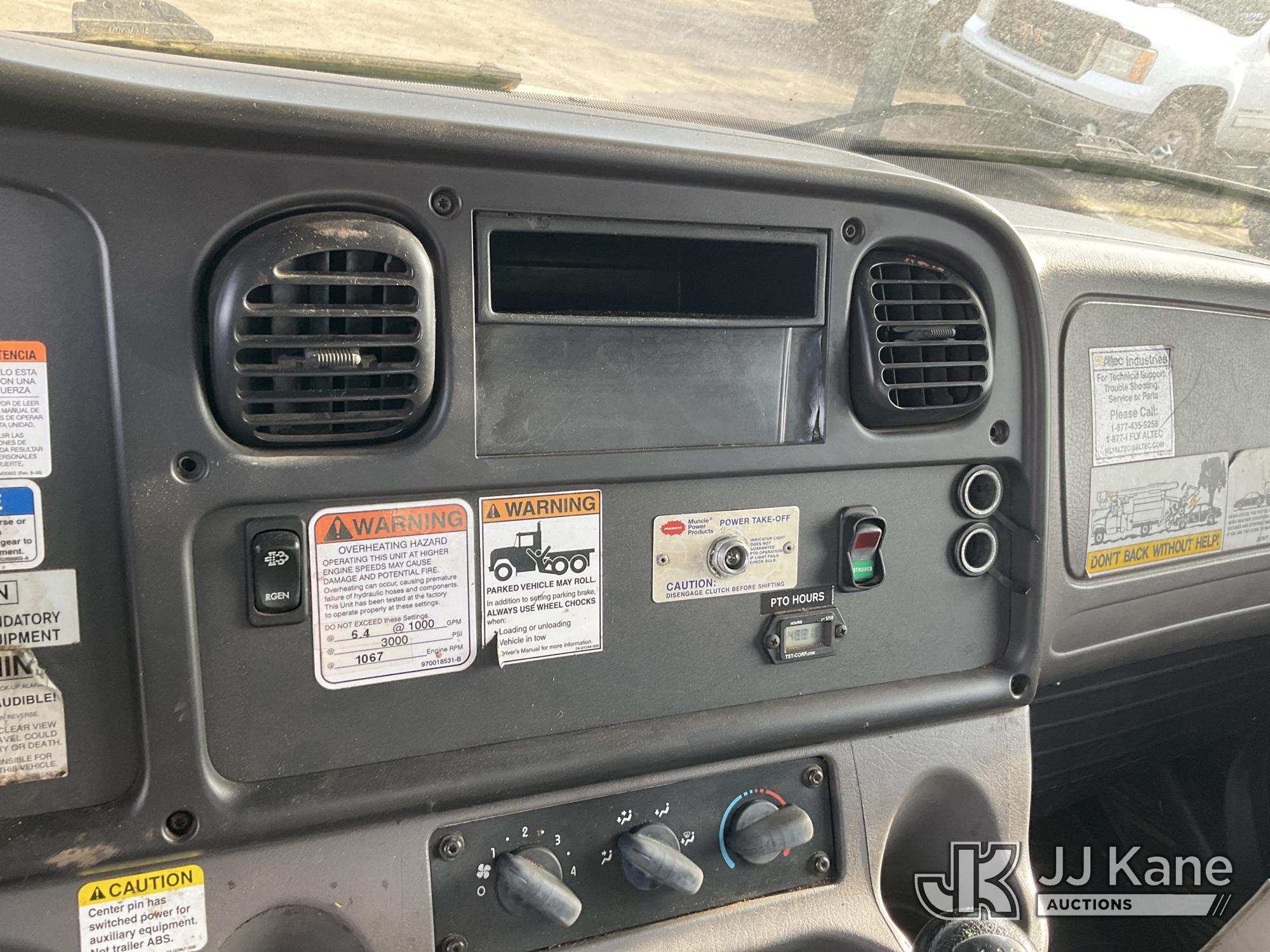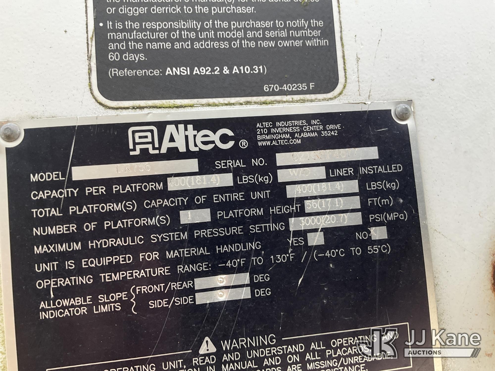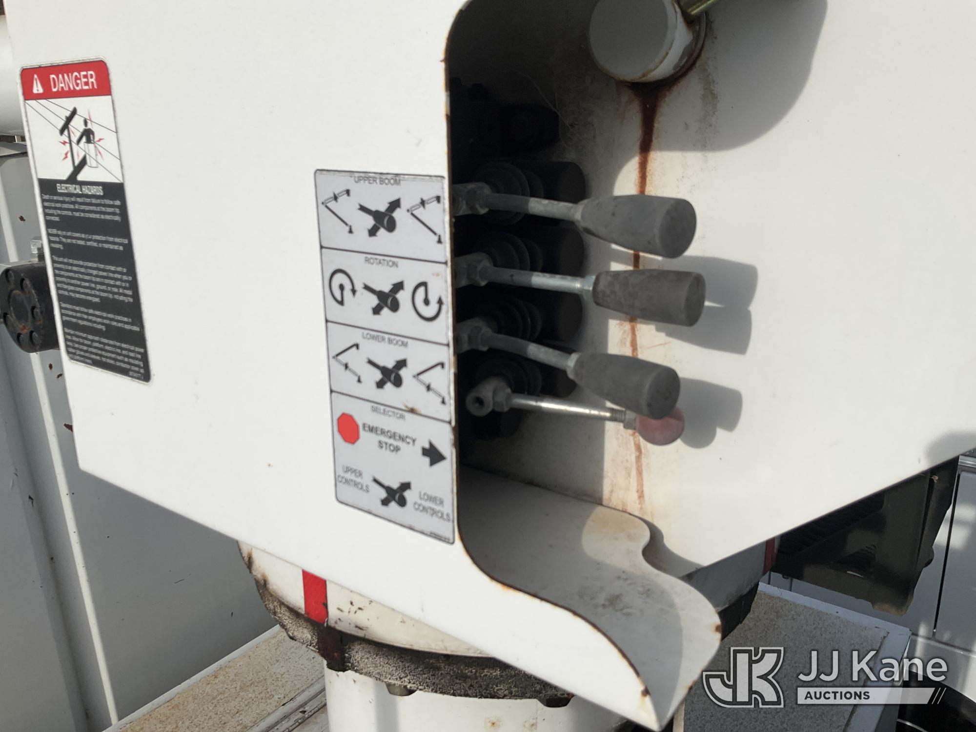 Altec LR756, 61 ft, Over-Center Bucket Truck s/n 0216FF4677, with Single-Man Bucket, mounted behind cab on 2016 Freightliner M2 106 Chipper Dump Truck, 6.7L L6 DIESEL 4X2, manual, (55,659 miles) Chip box not lifting, bent at base. Cracked windshield. Front brakes are bad; leaks, loss of pressure, rotors stress marks. (Runs & Moves, Cannot Switch to Upper, Upper Conditions Unknown) (Dash Warning Indicators On, Windshield Defects, Brakes Inoperable Per Seller “Chip box not lifting, bent at base. Cracked windshield. Front brakes are bad; leaks, loss of pressure, rotors stress marks.”) (Reads 9,934 hours) This is a Titled Item*