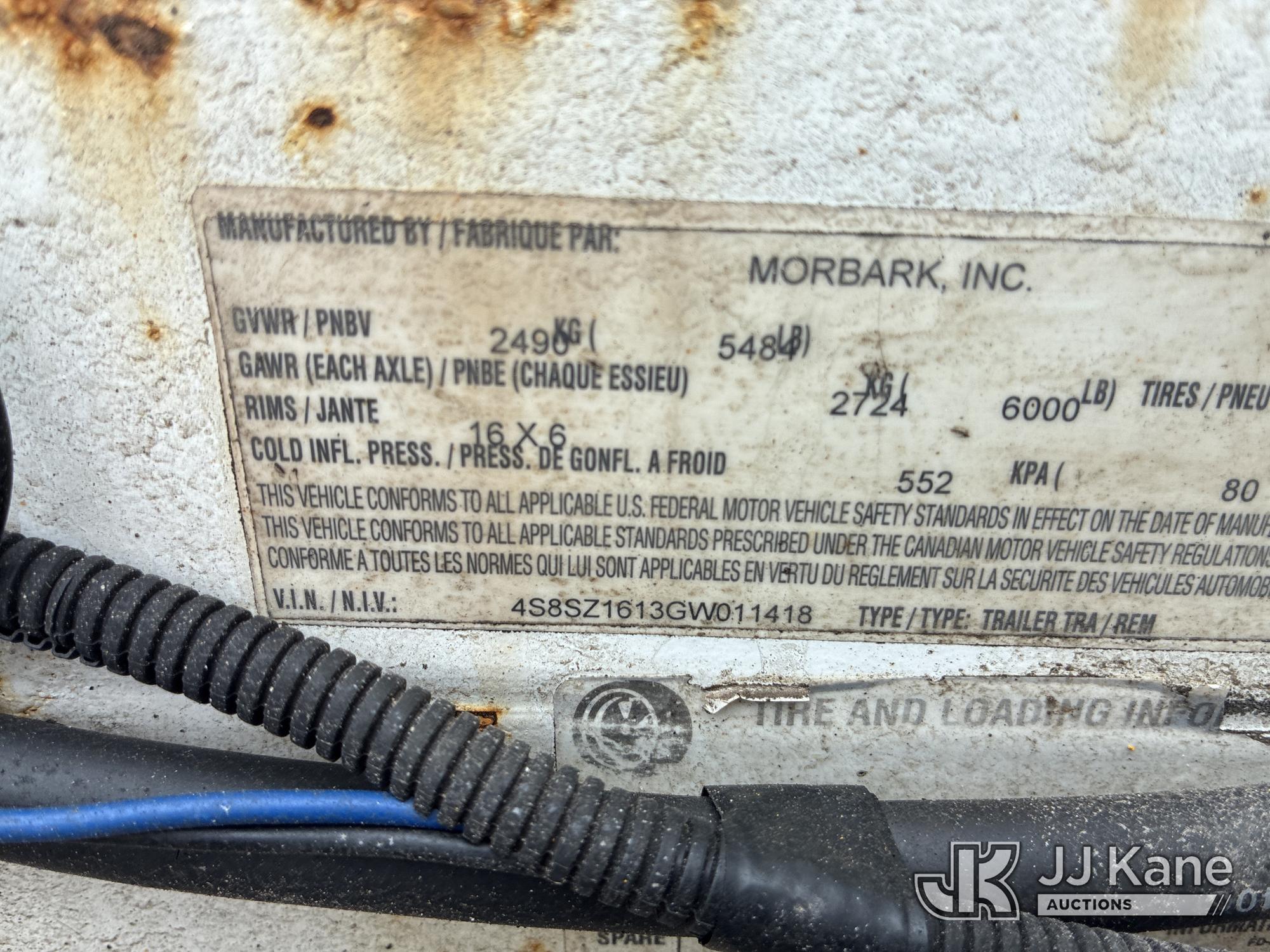 2016 Morbark M12D Chipper (12in Drum), 3.0L Gas, trailer mtd (Runs) (Paint & Rust Damage, Seller States Needs Clutch Replacement, Hour Meter Issue Hours Unkown) This is a Titled Item*