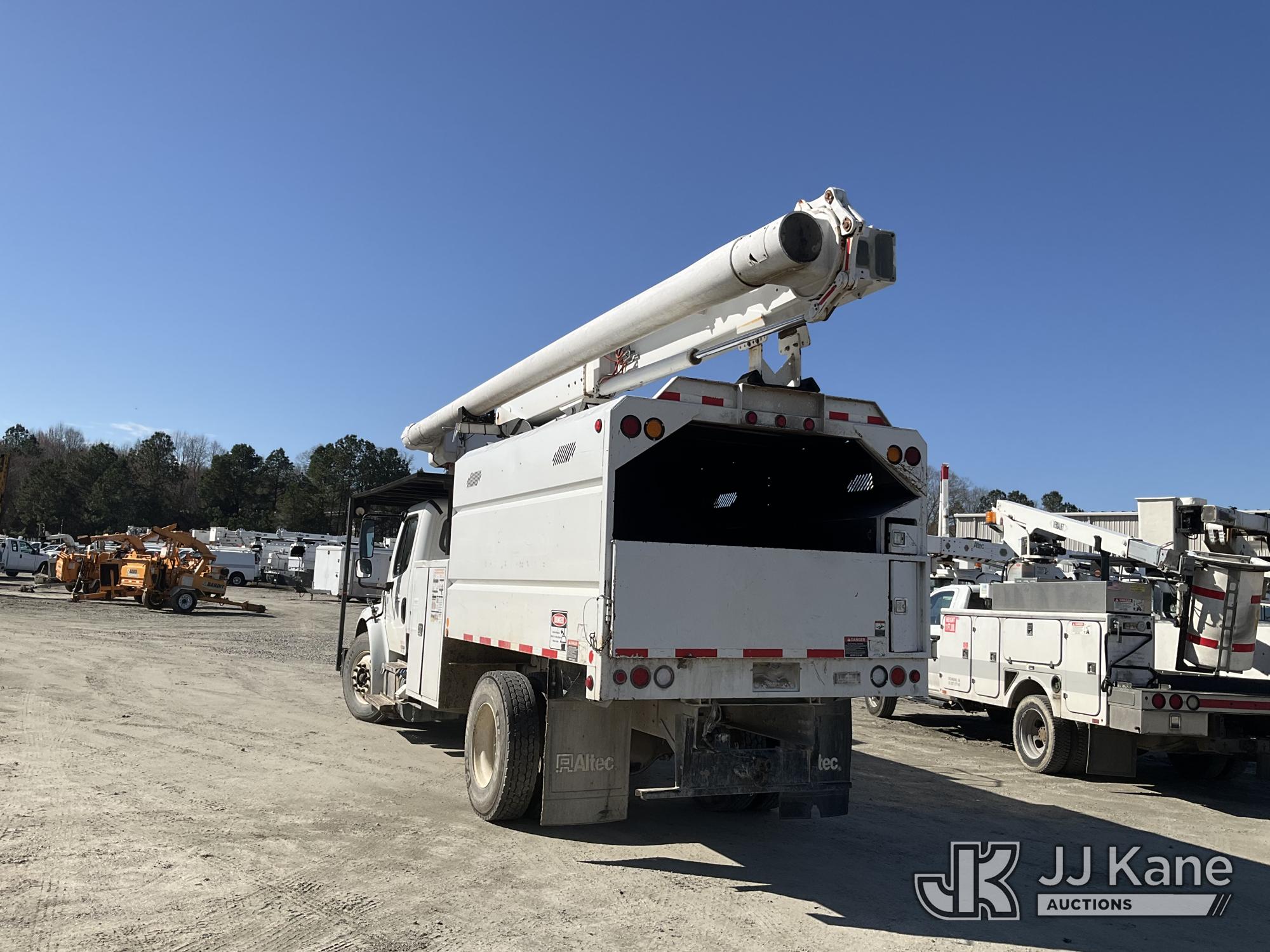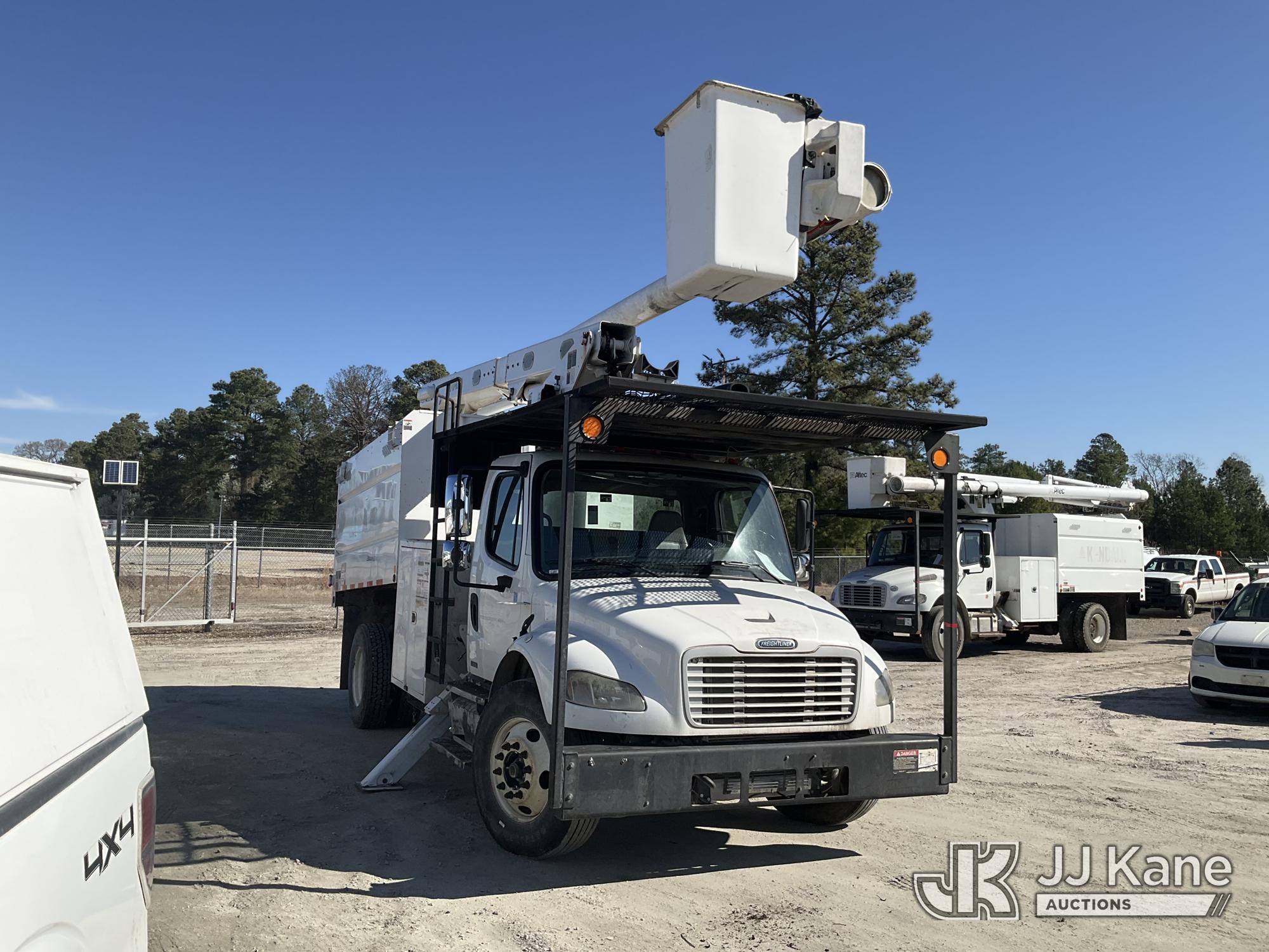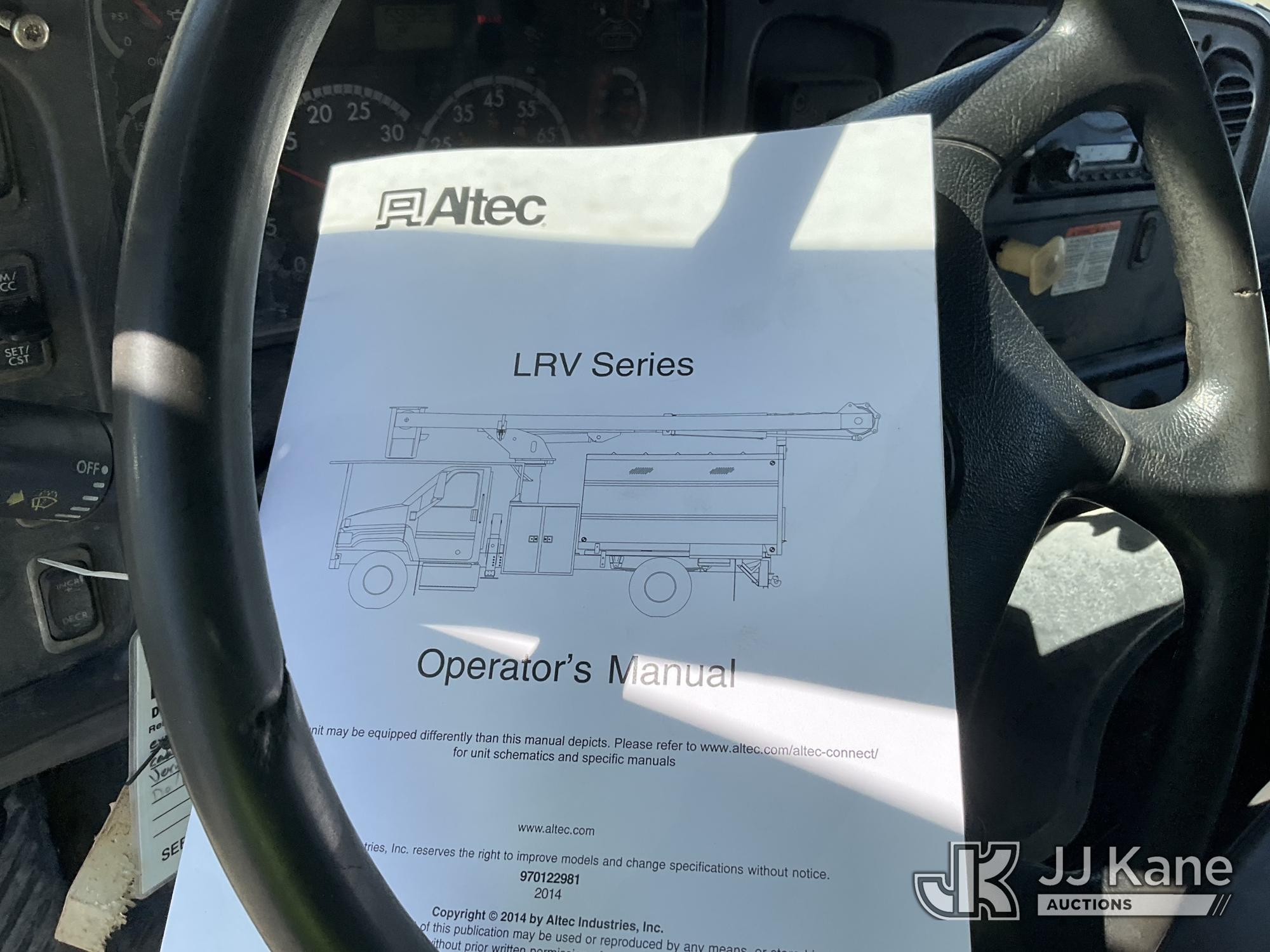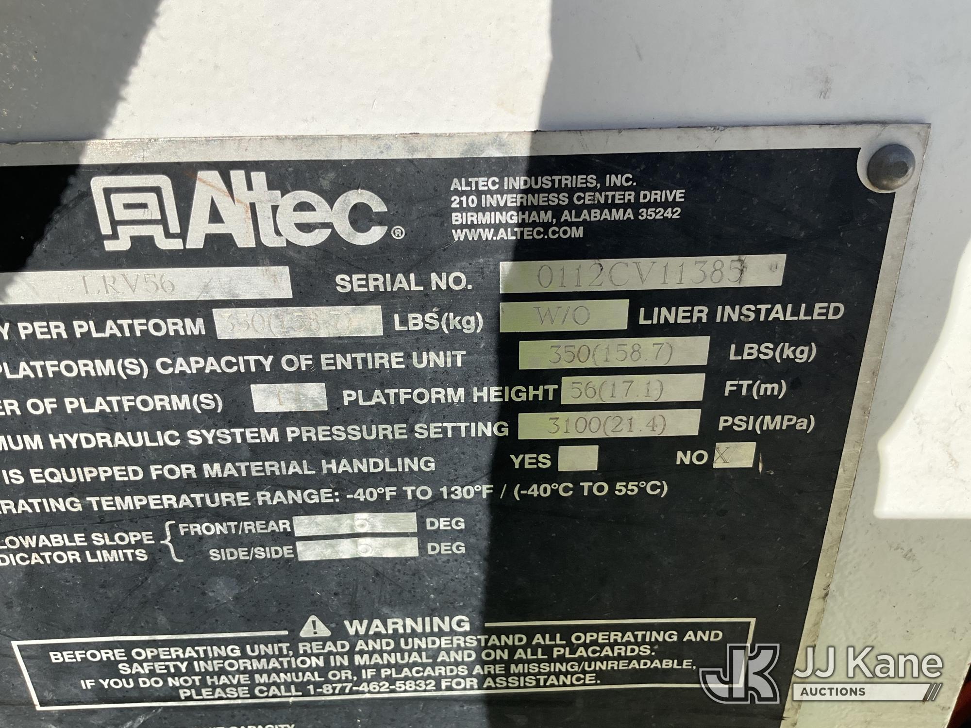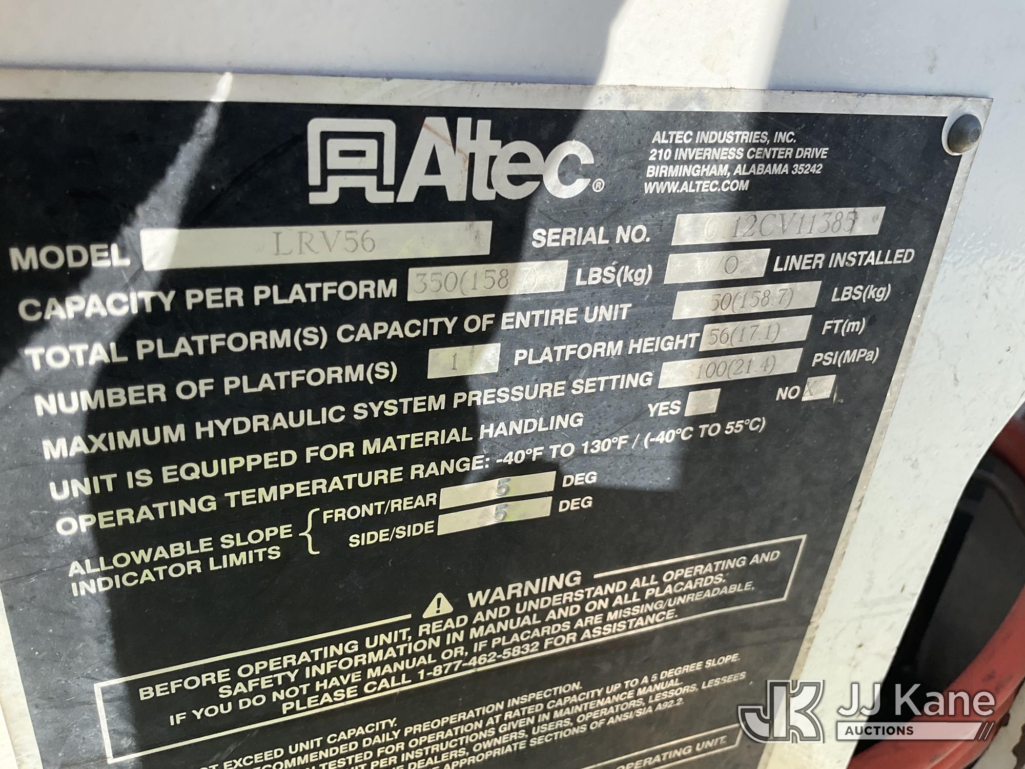 Altec LRV-56, 61 ft, Over-Center Bucket Truck s/n 0112CV11385, with single-man bucket, mounted behind cab on 2012 Freightliner M2 106 Utility Truck, Cummins 6.7L diesel, Auto, A/C, (68,929 miles (unverified)) (Runs, Moves & Upper Operates) (Seller Red Tagged: Lower Boom Impacted Causing Boom To Twist) (Windshield Cracked) **Dealer Only** Seller states this item has been removed from service due to the listed safety repairs that were not completed. The safety items below must be completed by an approved OEM facility before the unit can return to service: LOWER BOOM DAMAGED FROM IMPACT; REQUIRES ANSI INSPECTION FOR REPAIR/REPLACEMENT REQUIREMENTS, COMPLETE ANY REQUIRED TESTING AND REPAIRS AFTER INSPECTIONS ARE COMPLETED) (Bidding Restricted to Licensed Vehicle Dealers Only), This is a Titled Item*