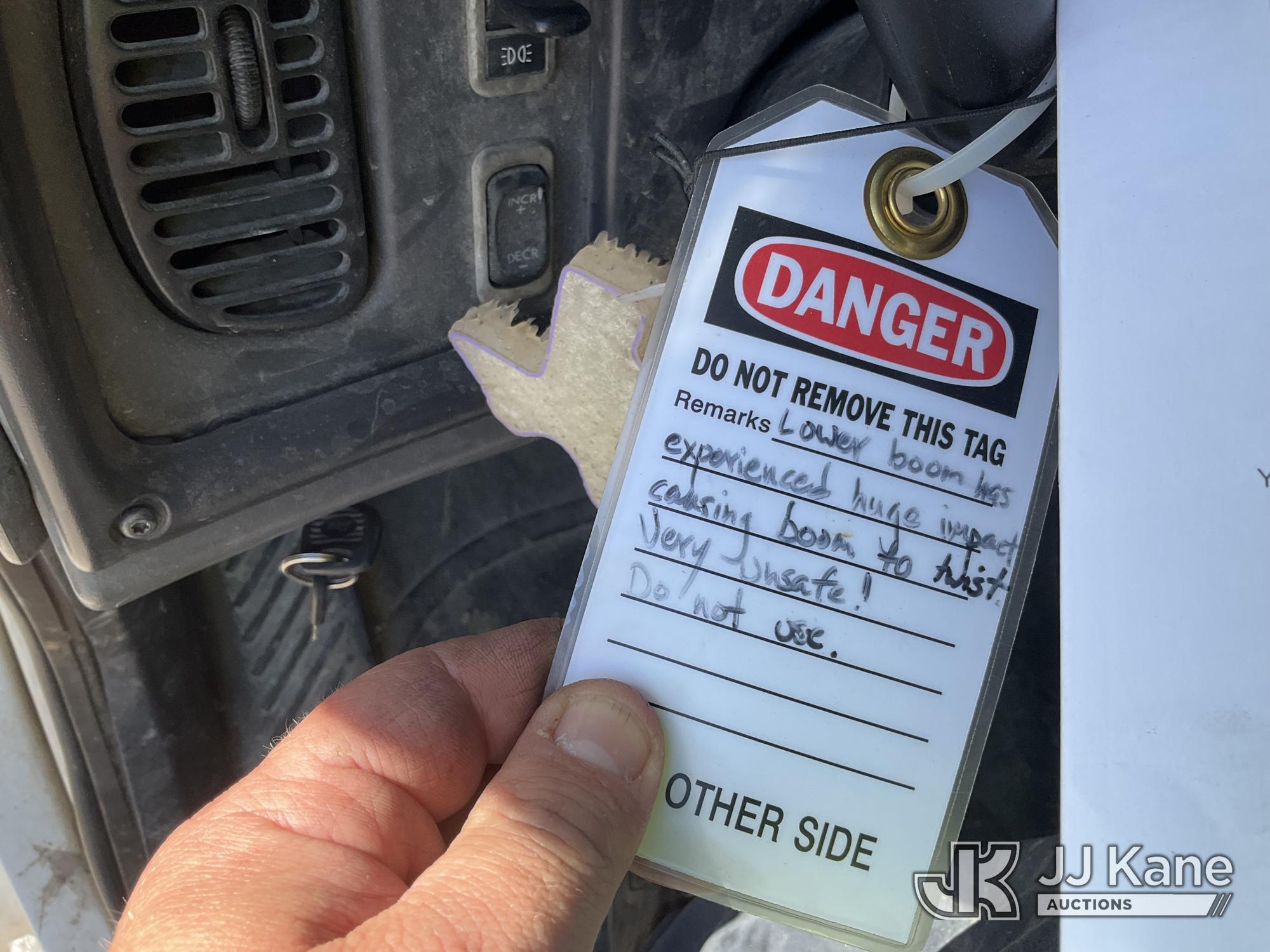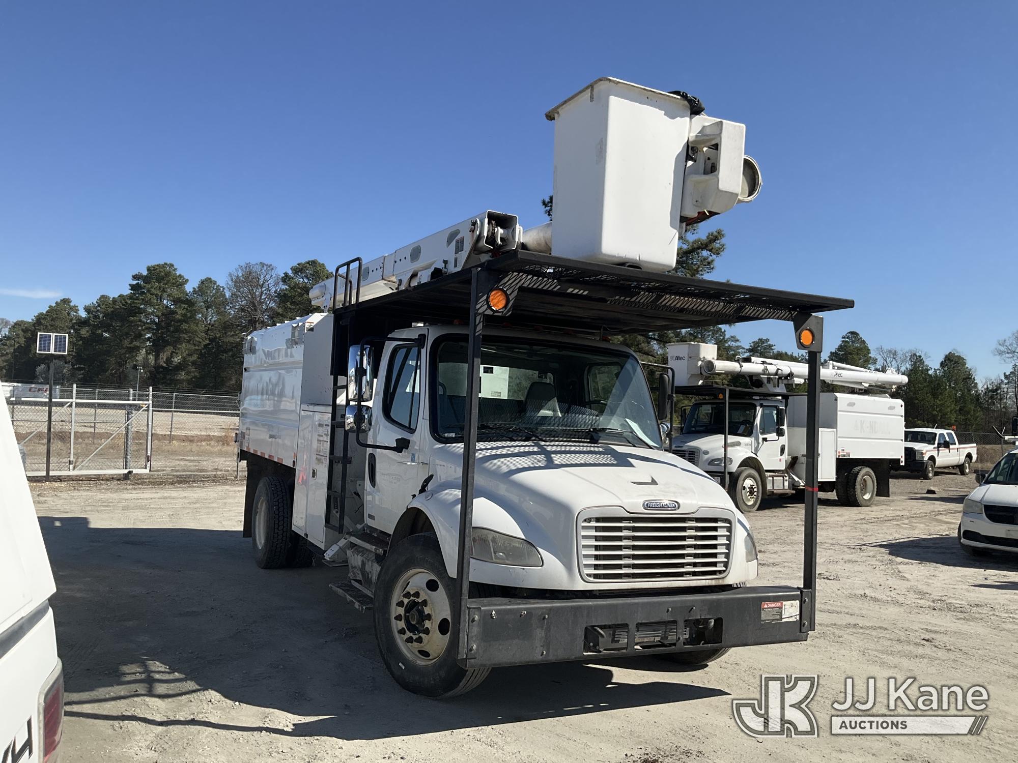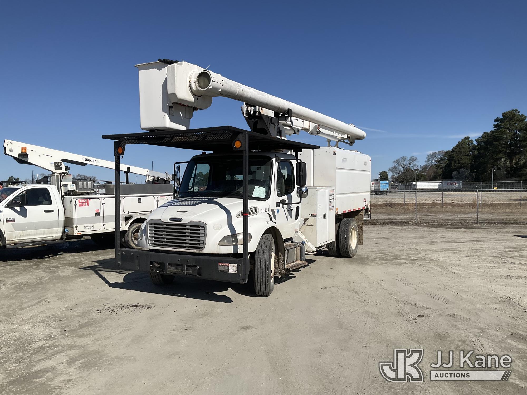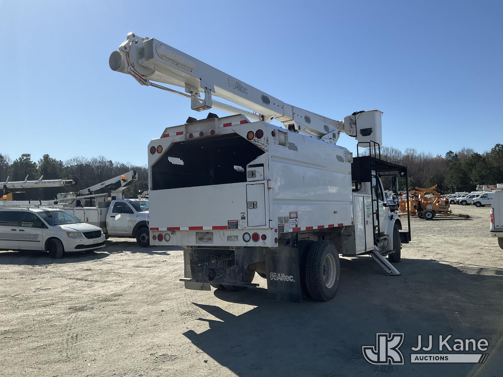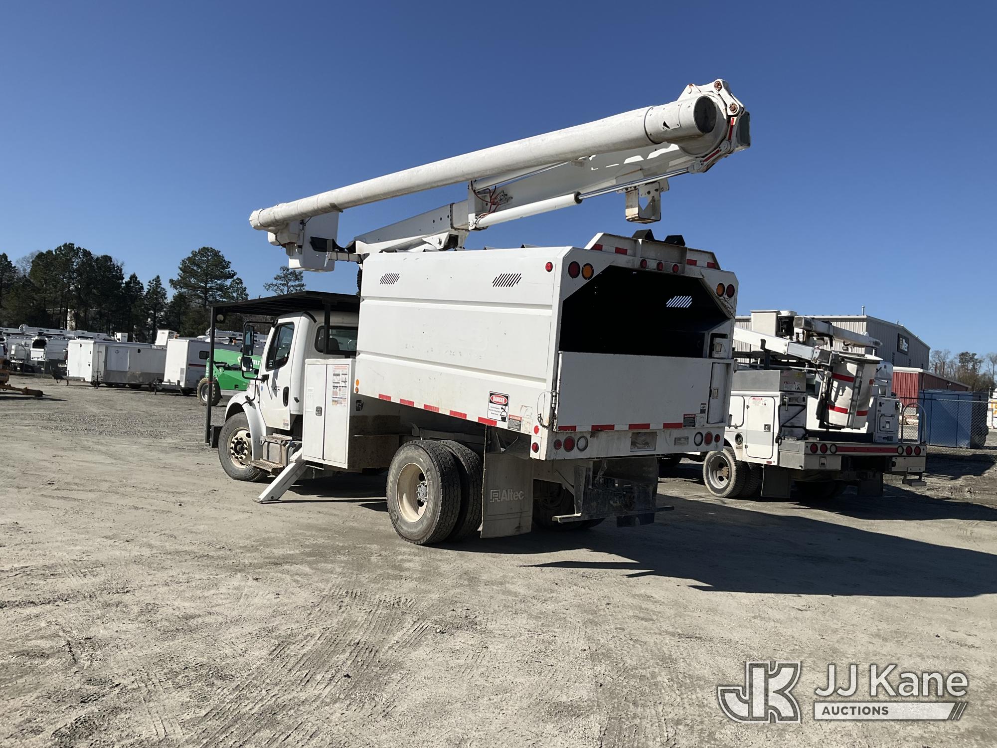 Altec LRV-56, 61 ft, Over-Center Bucket Truck s/n 0112CV11385, with single-man bucket, mounted behind cab on 2012 Freightliner M2 106 Utility Truck, Cummins 6.7L diesel, Auto, A/C, (68,929 miles (unverified)) (Runs, Moves & Upper Operates) (Seller Red Tagged: Lower Boom Impacted Causing Boom To Twist) (Windshield Cracked) **Dealer Only** Seller states this item has been removed from service due to the listed safety repairs that were not completed. The safety items below must be completed by an approved OEM facility before the unit can return to service: LOWER BOOM DAMAGED FROM IMPACT; REQUIRES ANSI INSPECTION FOR REPAIR/REPLACEMENT REQUIREMENTS, COMPLETE ANY REQUIRED TESTING AND REPAIRS AFTER INSPECTIONS ARE COMPLETED) (Bidding Restricted to Licensed Vehicle Dealers Only), This is a Titled Item*