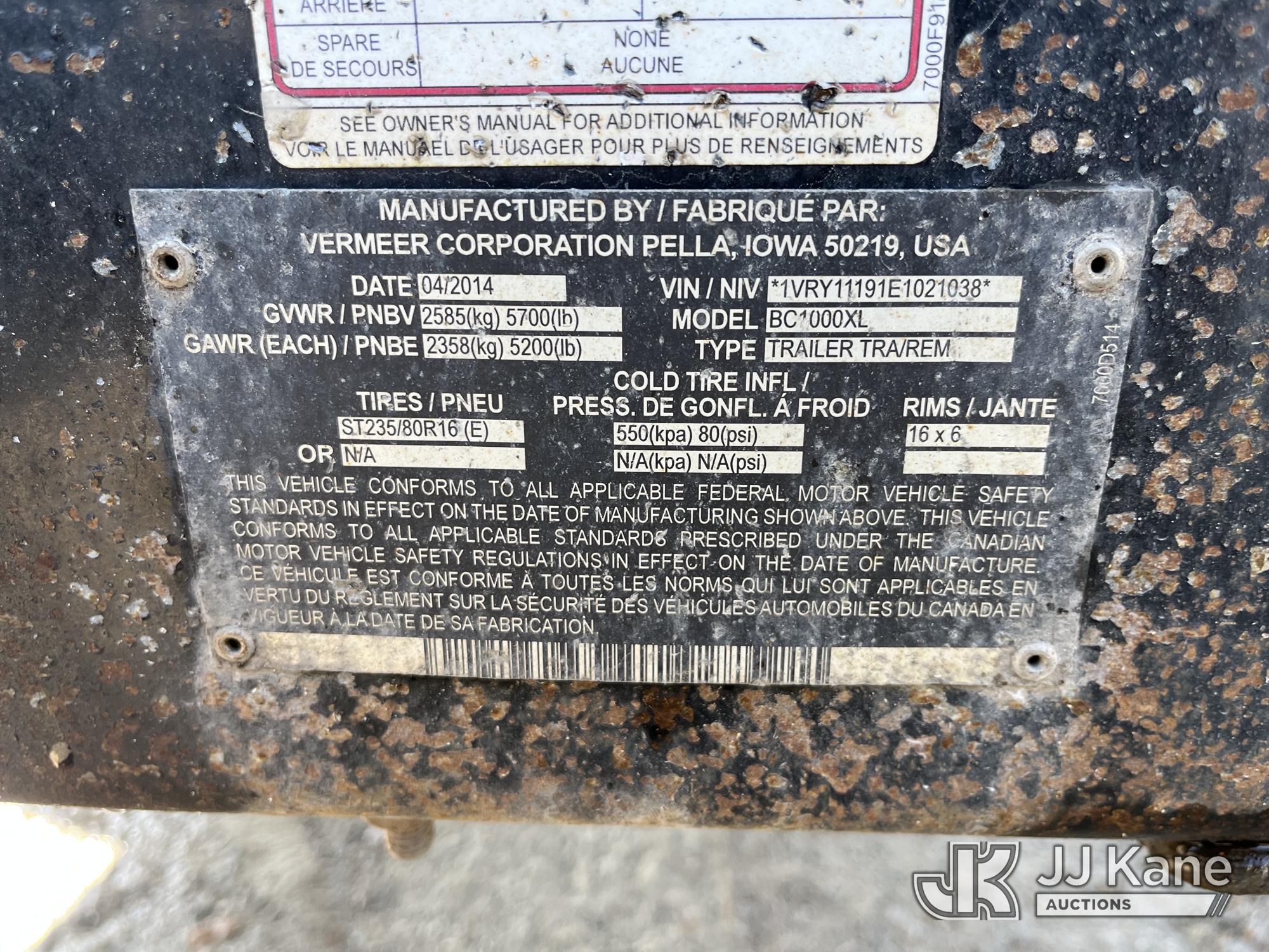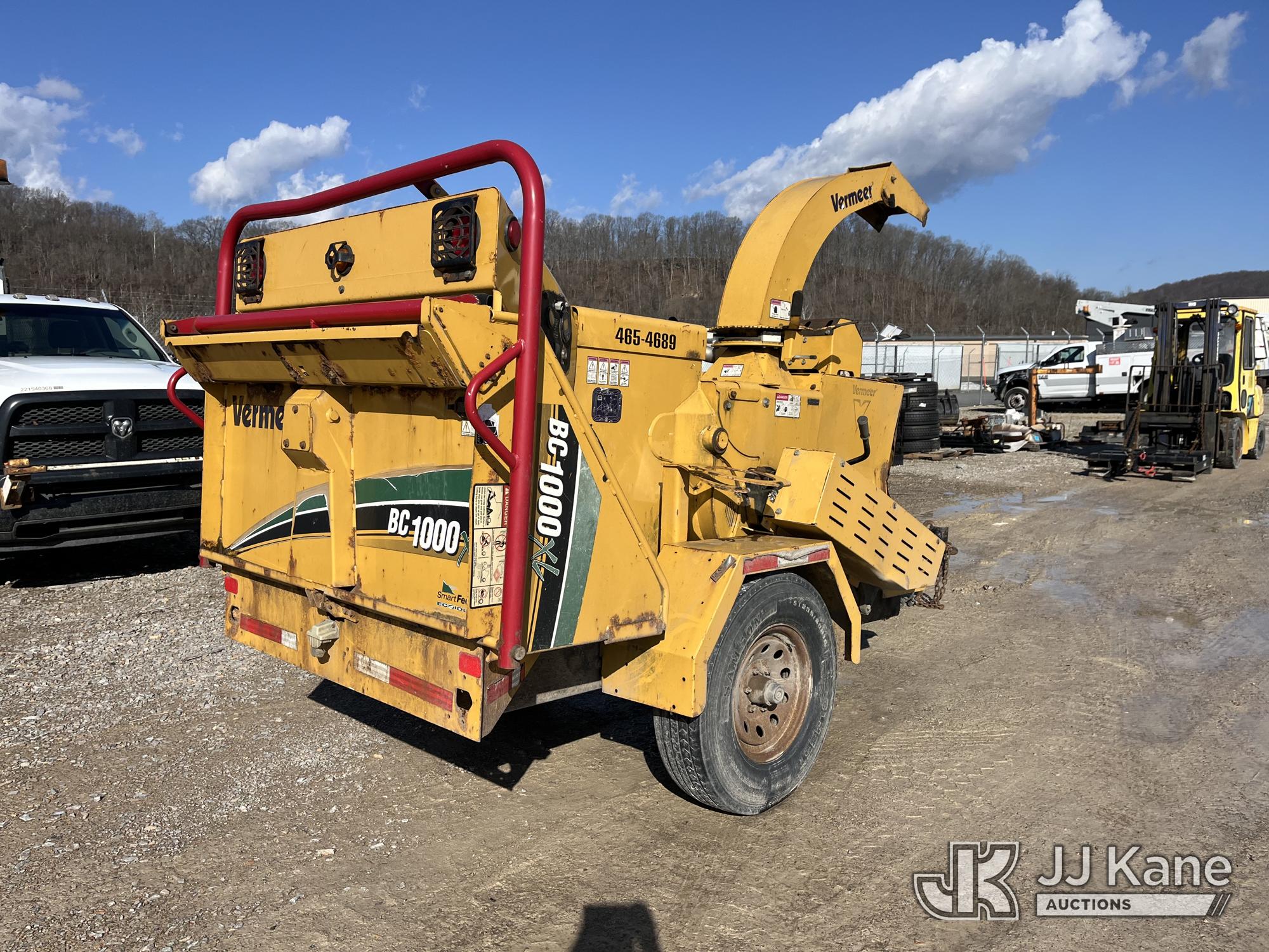 2014 Vermeer BC1000XL Portable Chipper (12in Drum), s/n 1VRY11191E1021038, Deutz Diesel, trl mtd (Certificate of Origin only) (Not Running, Cranks, Condition Unknown, Body Damage, Seller States: Wiring & Safety Switch Shorted, Needs Engine Work, Knocks) (Reads 1,375 hours)*