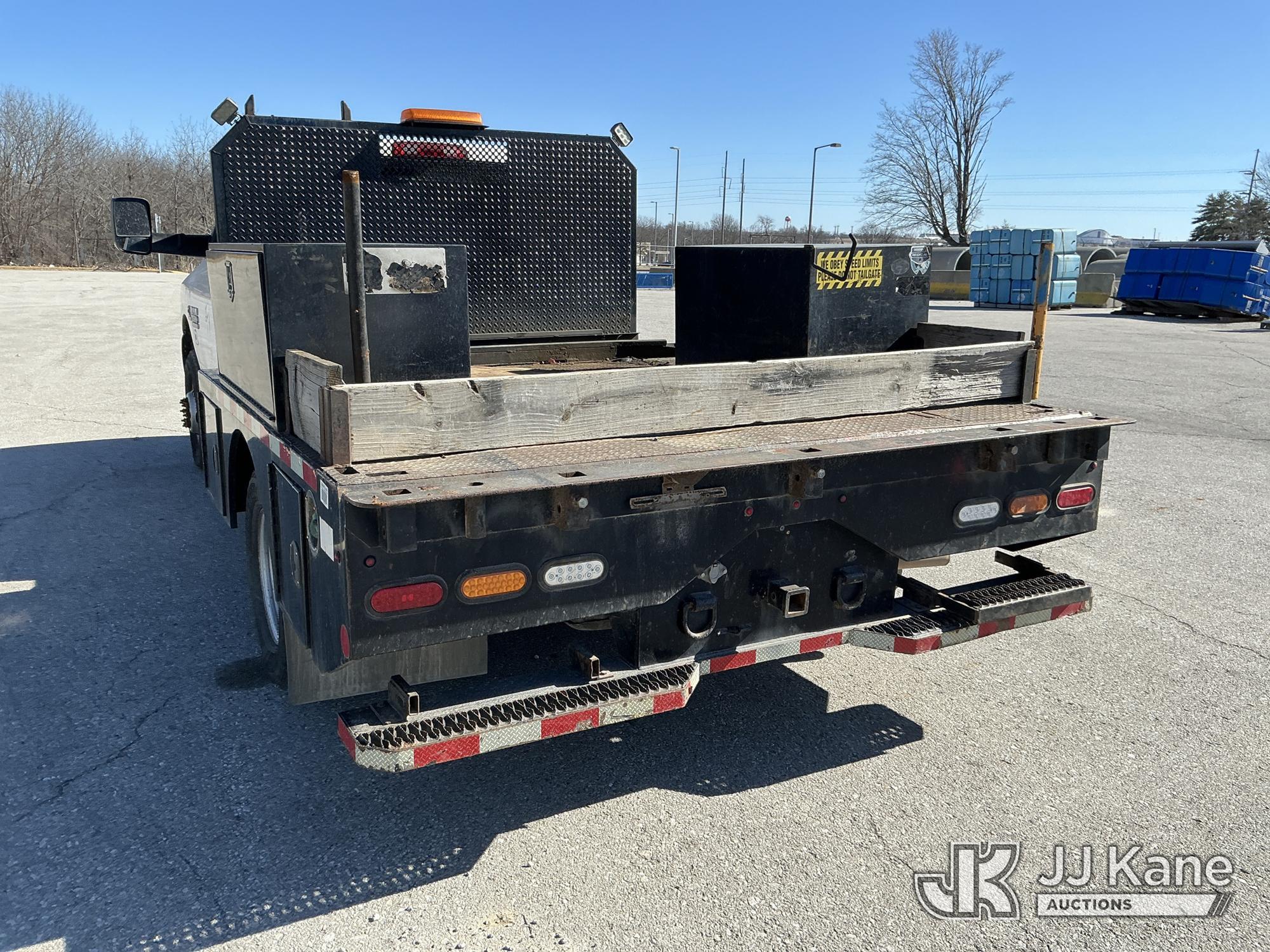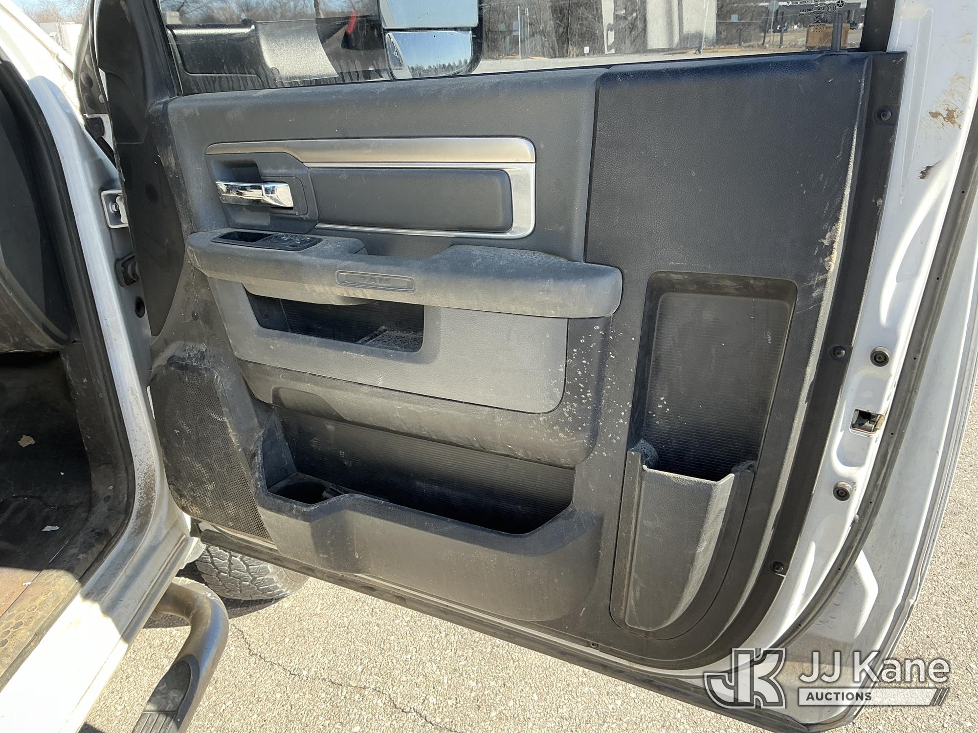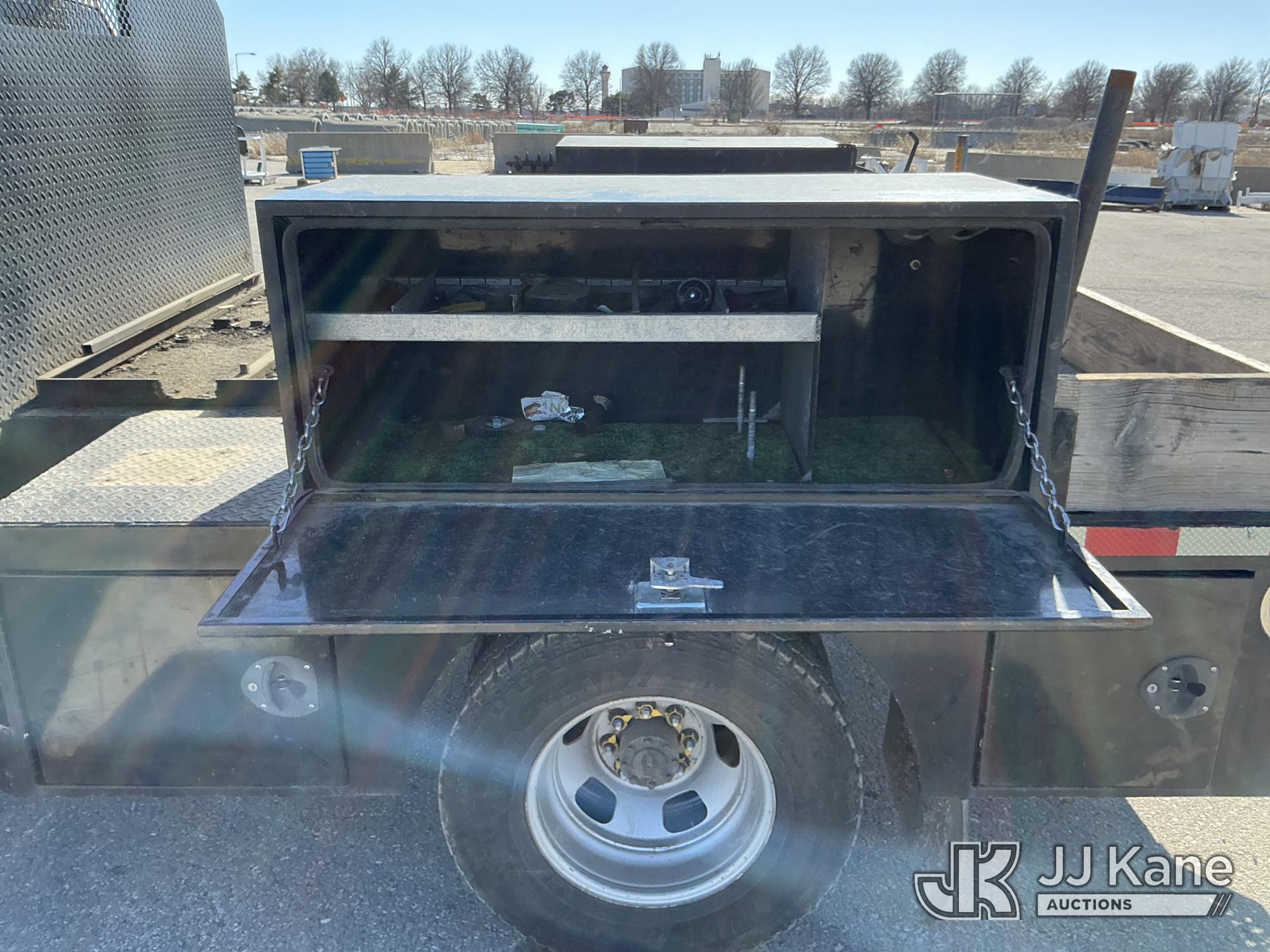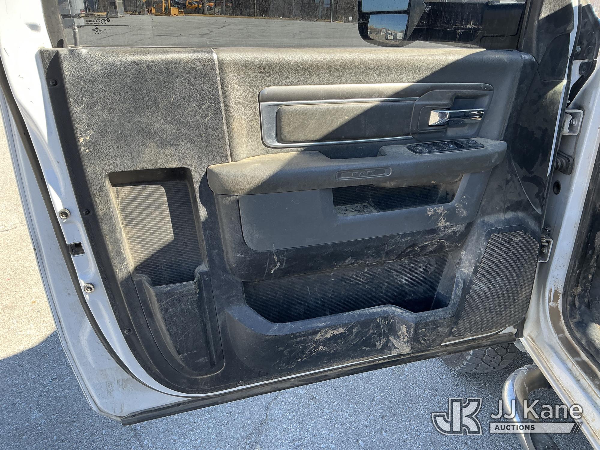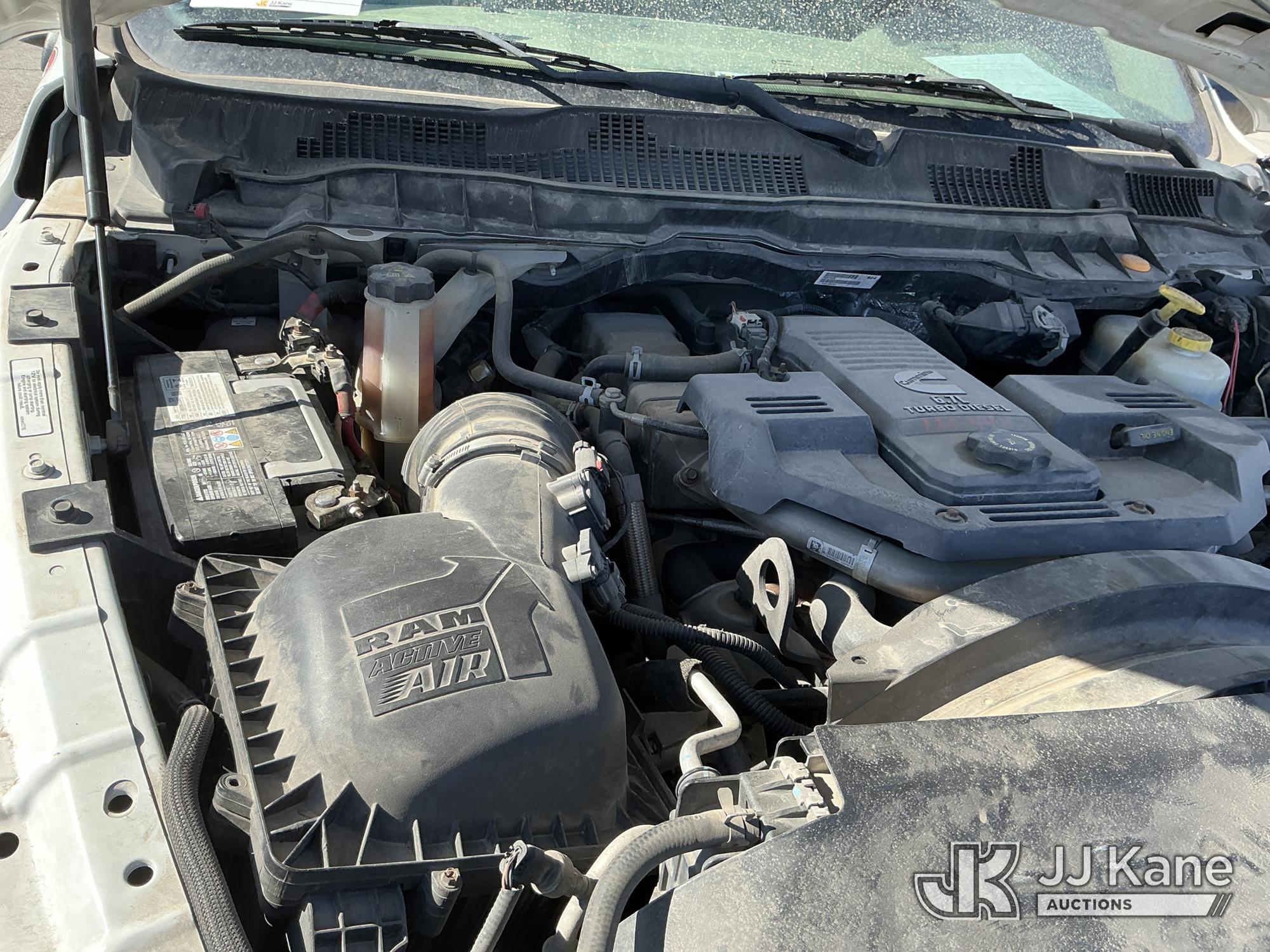 2016 RAM 3500 Flatbed/Service Truck, 6.7L Turbo Diesel 6-Speed Automatic, A/C, (123,736 miles) (Runs & Moves) (Check Engine Light On, Traction Control Light, Jump To Start, Small Dent On Edge Of Driver Door, Latches Missing On Lower Bed Boxes) (Reads 5,307 hours) This is a Titled Item*
