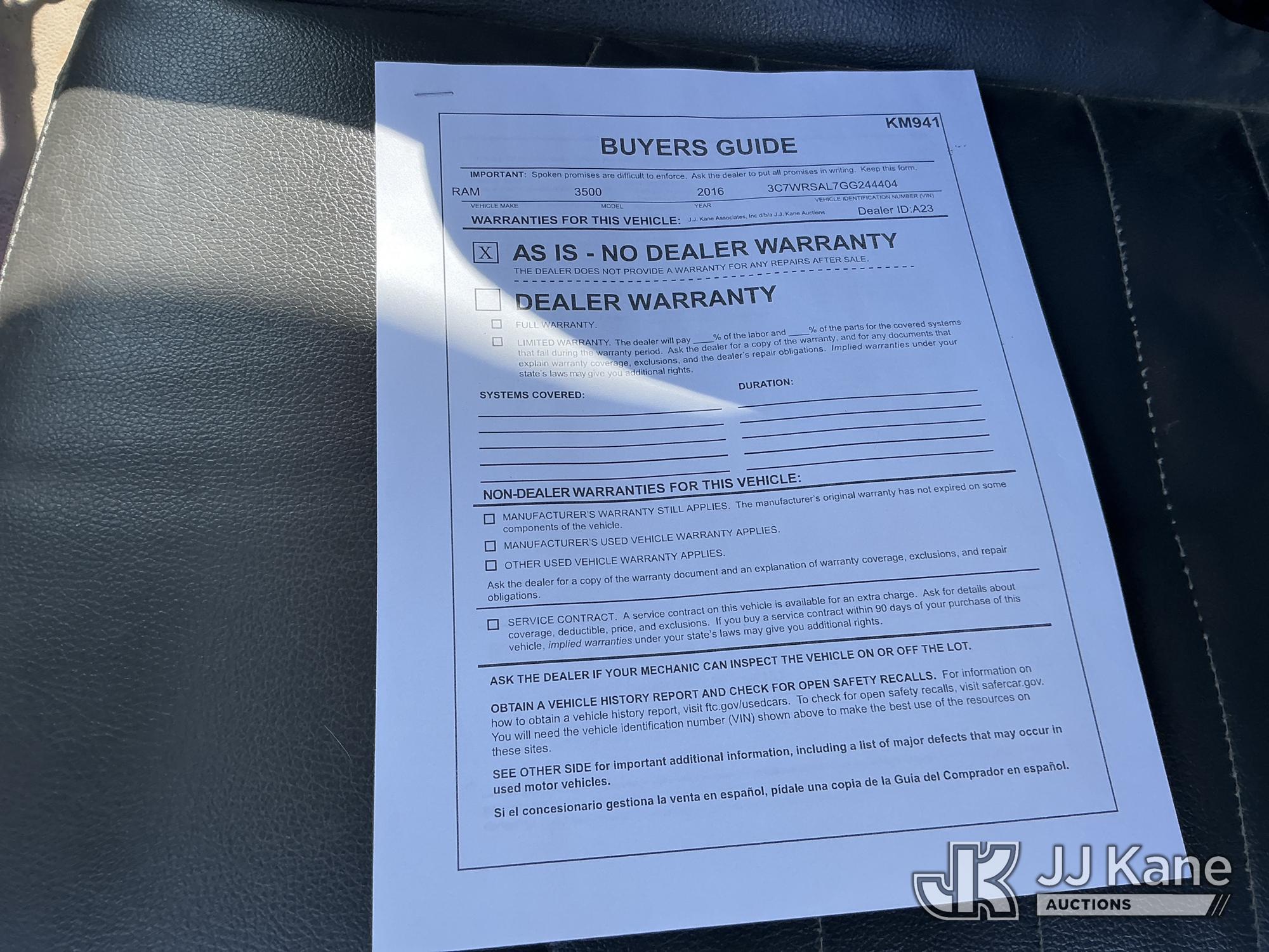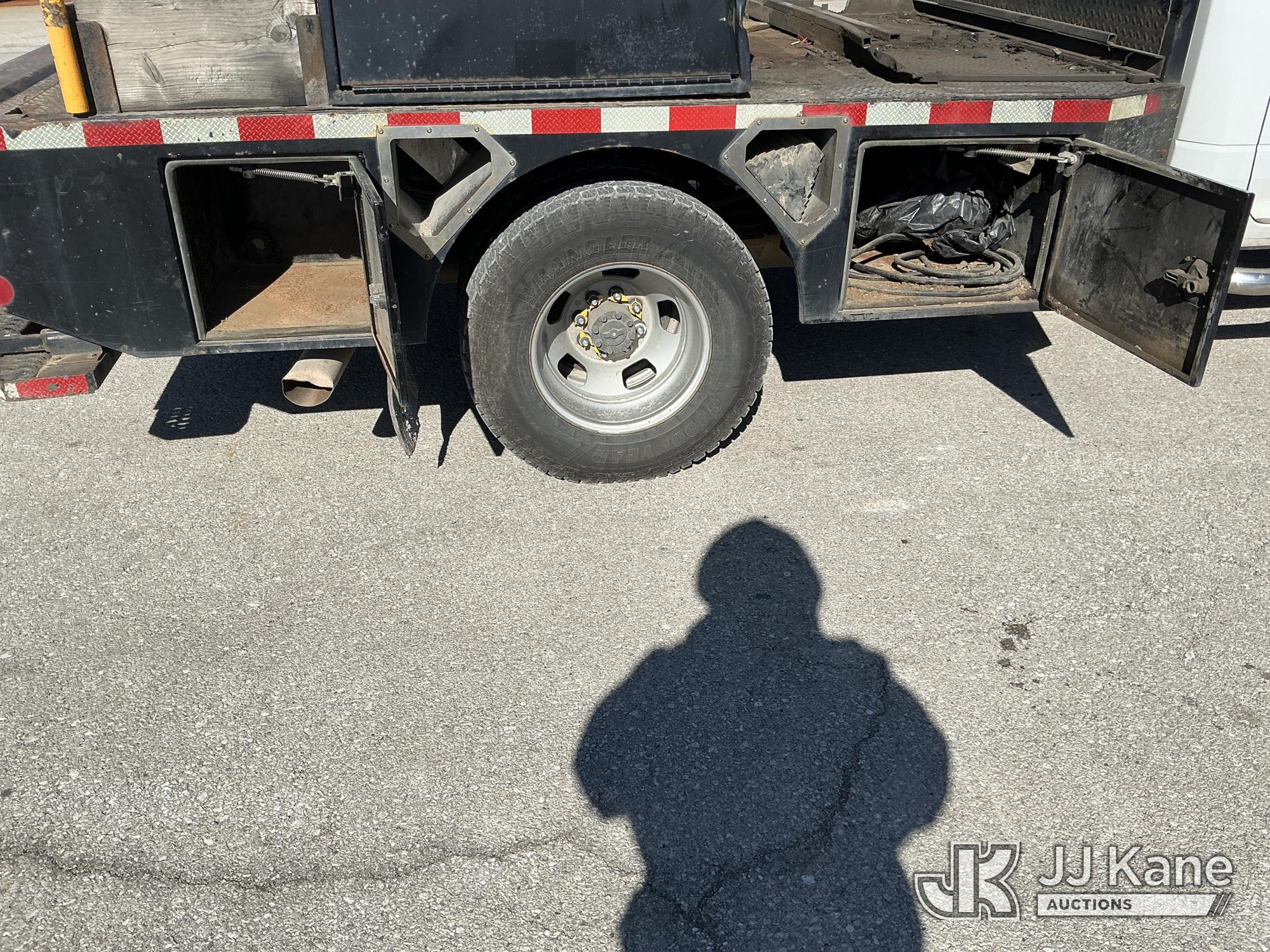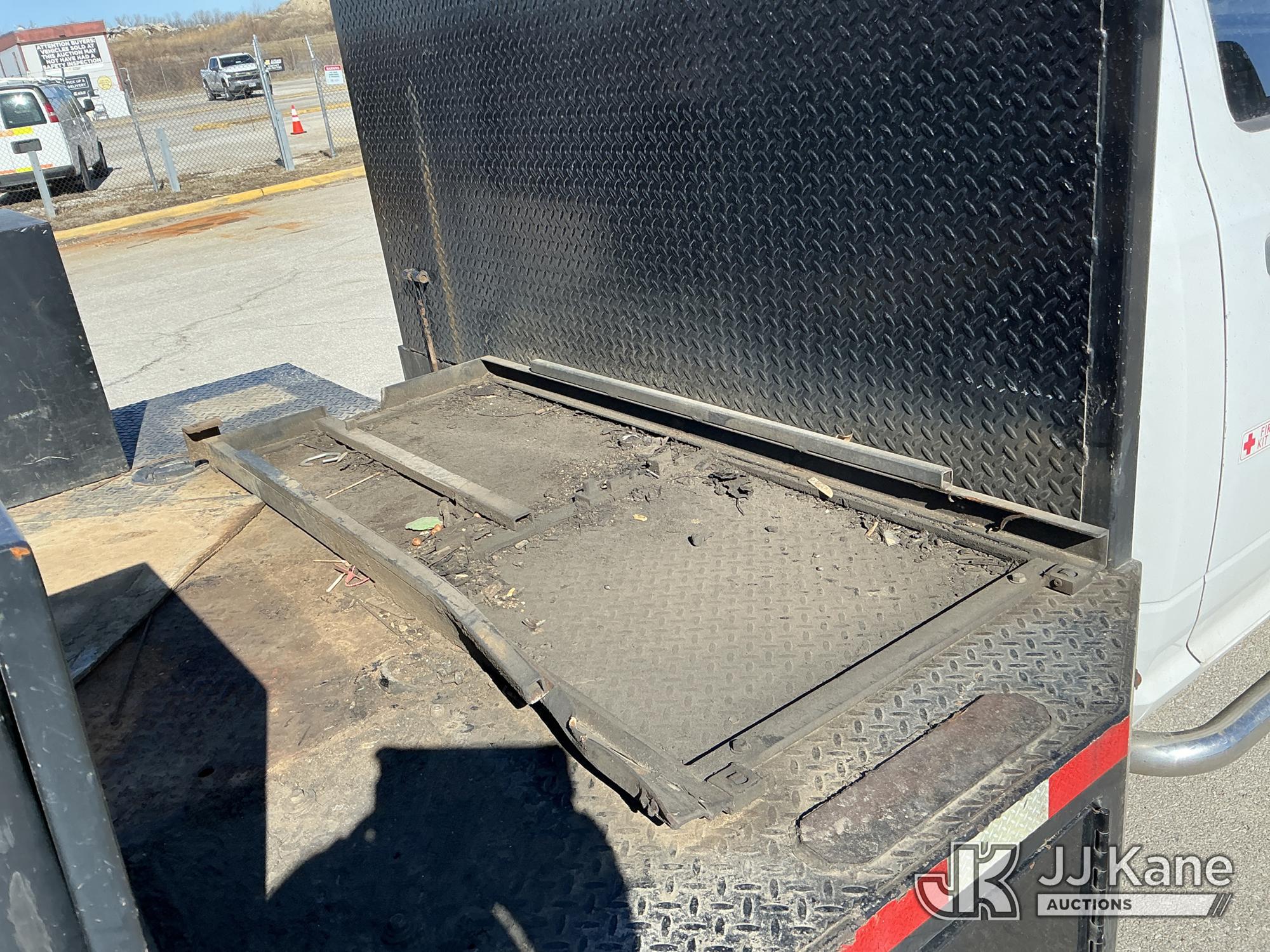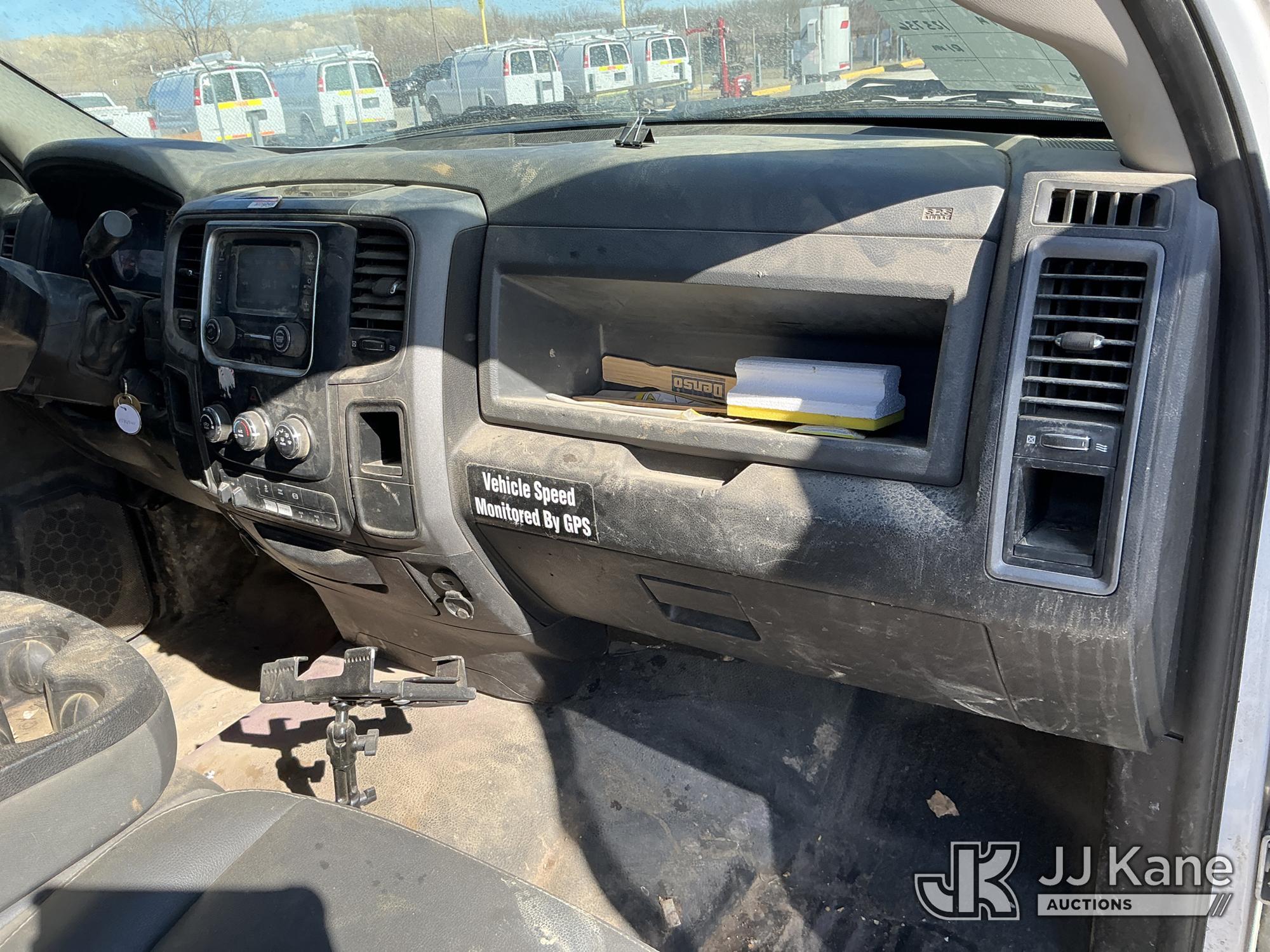 2016 RAM 3500 Flatbed/Service Truck, 6.7L Turbo Diesel 6-Speed Automatic, A/C, (123,736 miles) (Runs & Moves) (Check Engine Light On, Traction Control Light, Jump To Start, Small Dent On Edge Of Driver Door, Latches Missing On Lower Bed Boxes) (Reads 5,307 hours) This is a Titled Item*