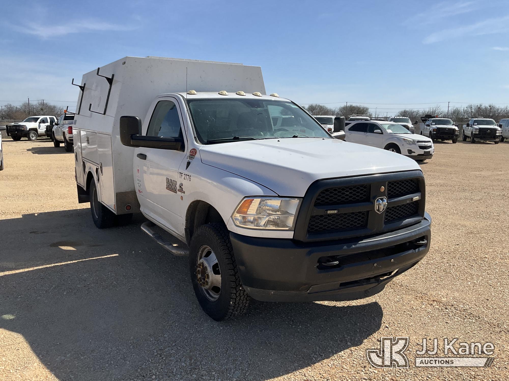 2016 RAM 3500 Enclosed Service Truck, 6.7L Turbo Diesel, 6-Speed Automatic, A/C, with aux fuel tank w/ pump, (136,556 miles) (Runs & Moves) (Cracked Windshield) This is a Titled Item*
