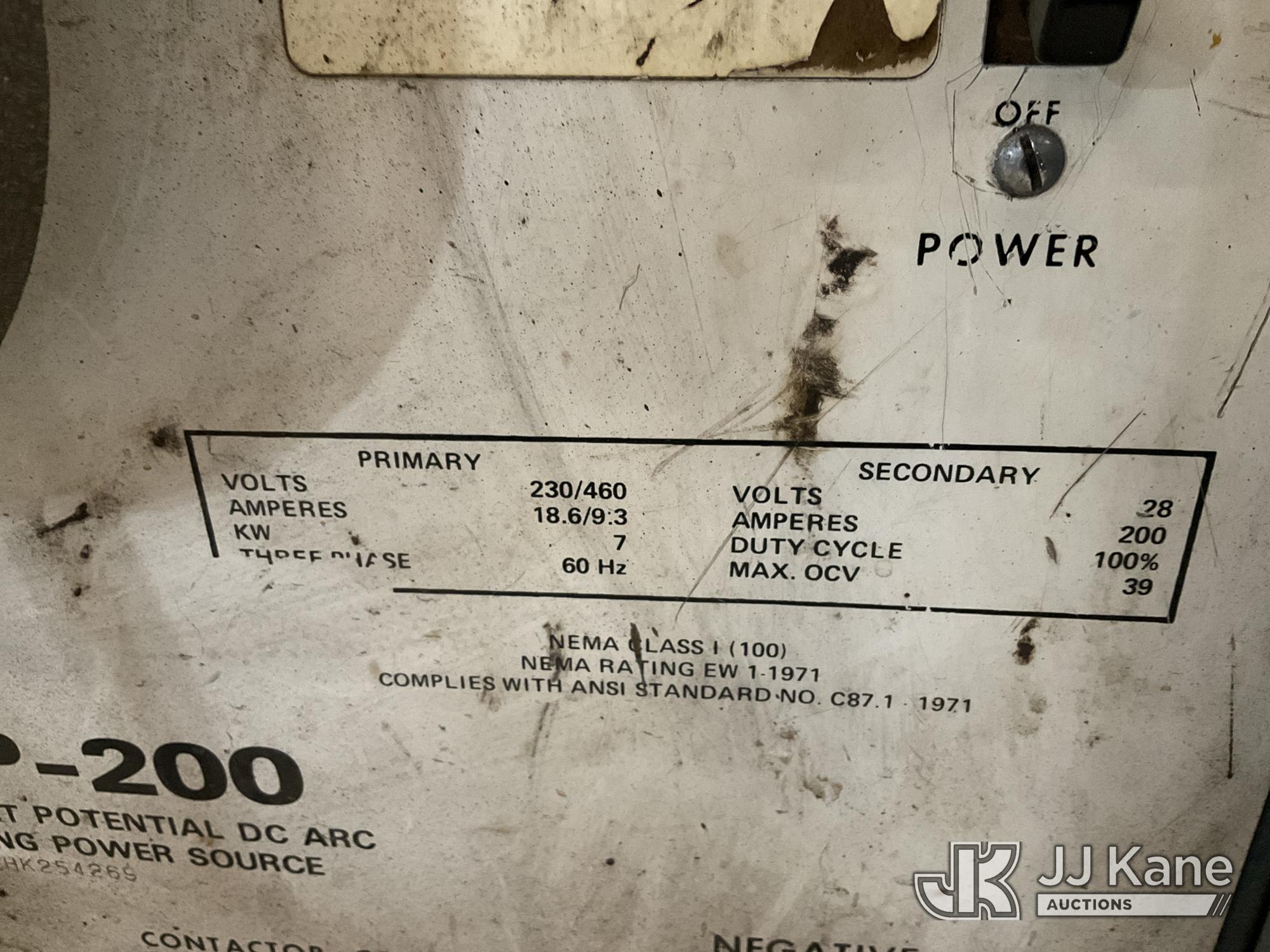 | Conditions / Miscellaneous: | Miller CP-200 constant potential DC arc welding power source, ser#HK254269 w/ Miller Matic 70A suitcase wire feeder |