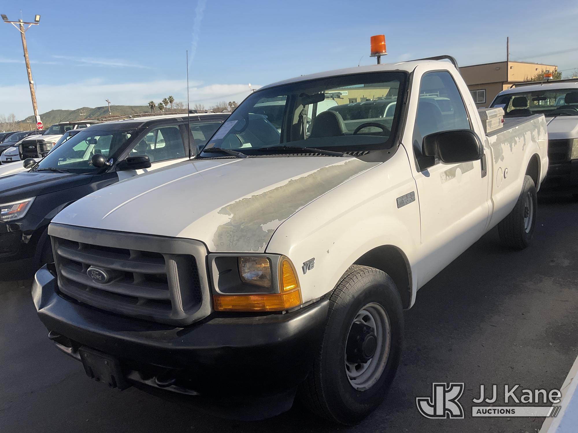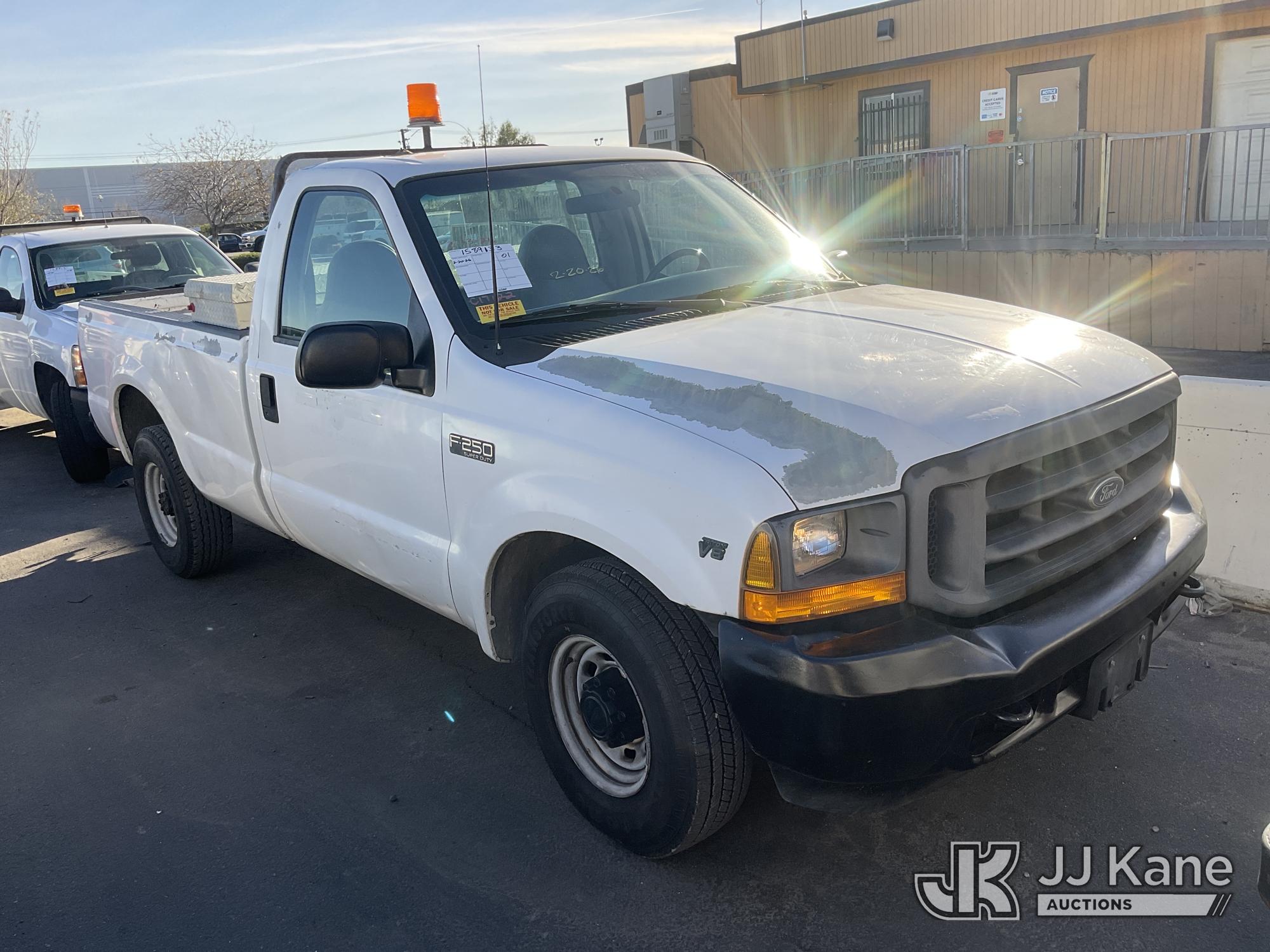 2001 Ford F-250 SD Pickup Truck, s/n 1FTNF20L31EC17122, 8-cyl gas, Auto, A/C, with Tool Box, Tow Package, (Exempt from Odometer Disclosure - Reads 83,851 miles) (Runs & Moves) (Paint Damage, Passenger Side Body Damage) This is a Titled Item*