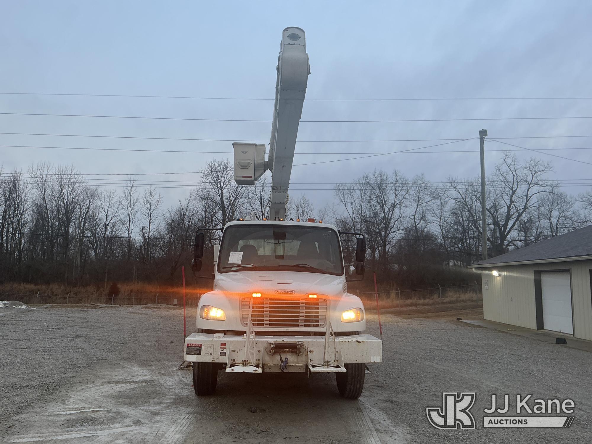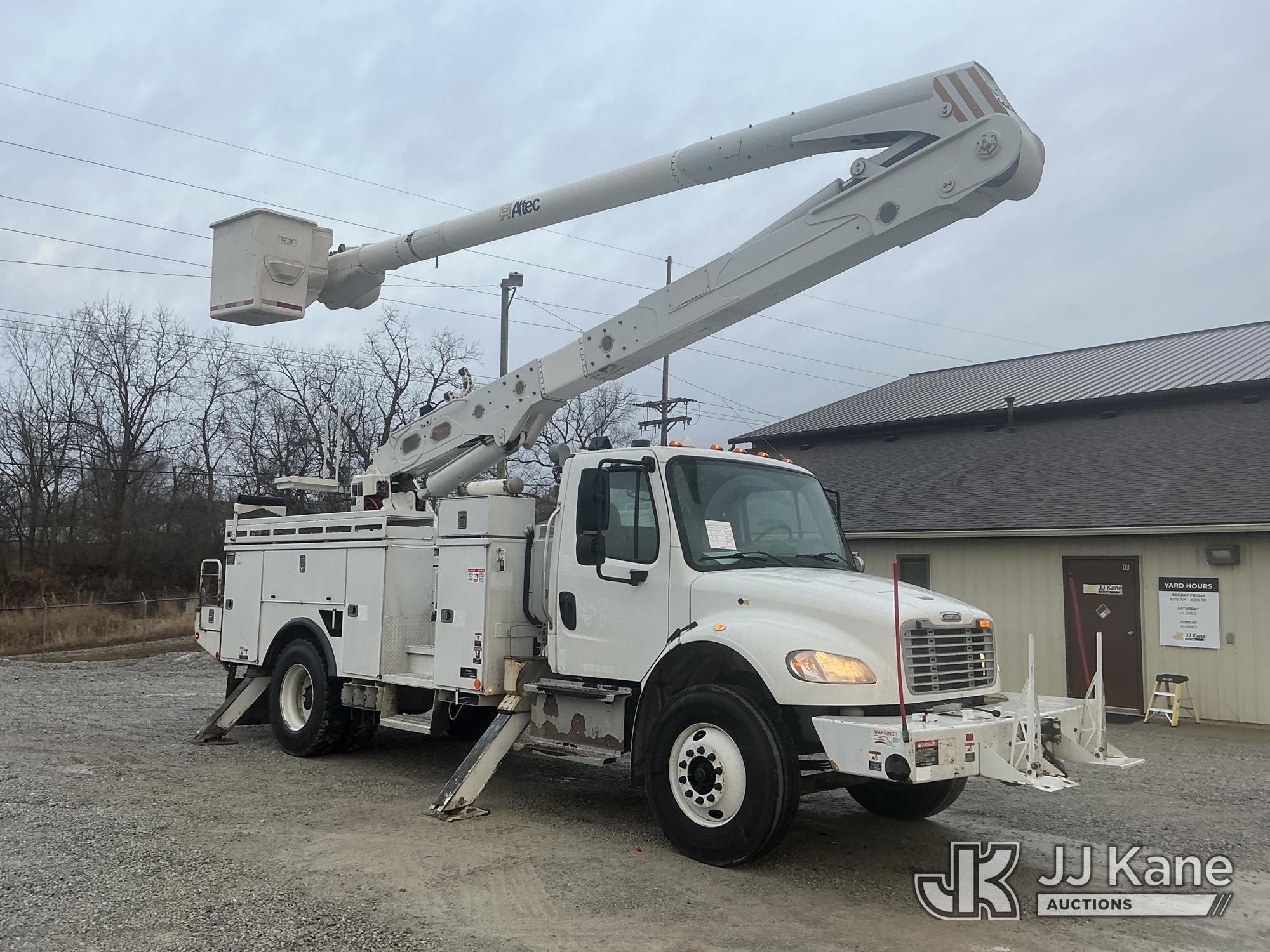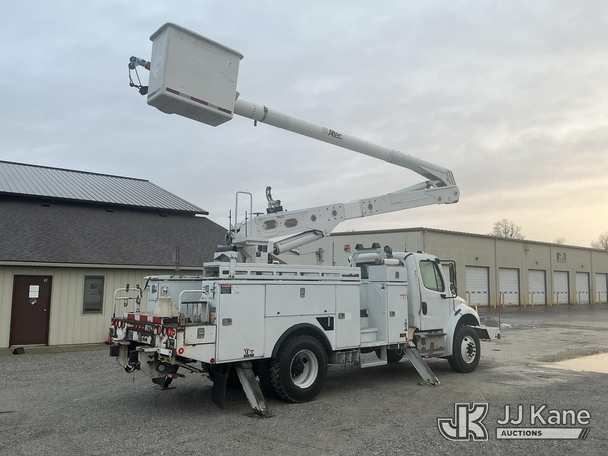 Altec AN55, 60 ft, Articulating Material Handling Bucket Truck s/n 0414FJ0139, with two-man bucket & 4 hyd outriggers, rear mounted on 2014 Freightliner M2 106 Utility Truck, 6.7L L6 DIESEL 4X2, Auto, A/C, with inverter, capstan & front winch, (99,646 miles) (Runs, Moves & Upper Operates) (Paint Damage) This is a Titled Item*