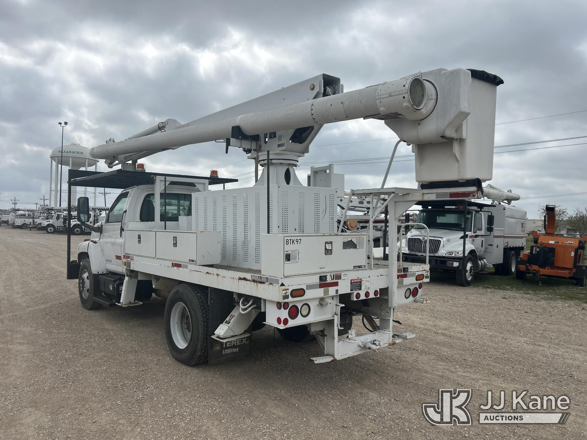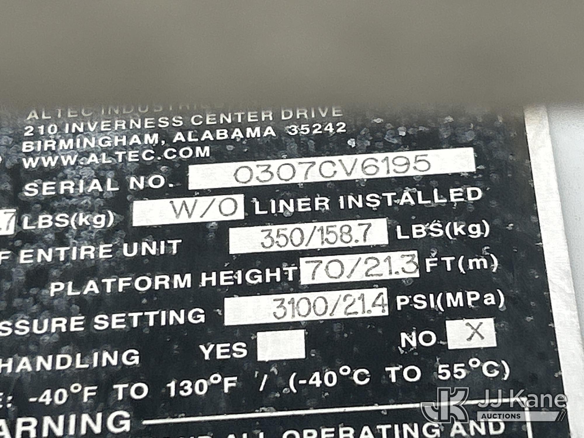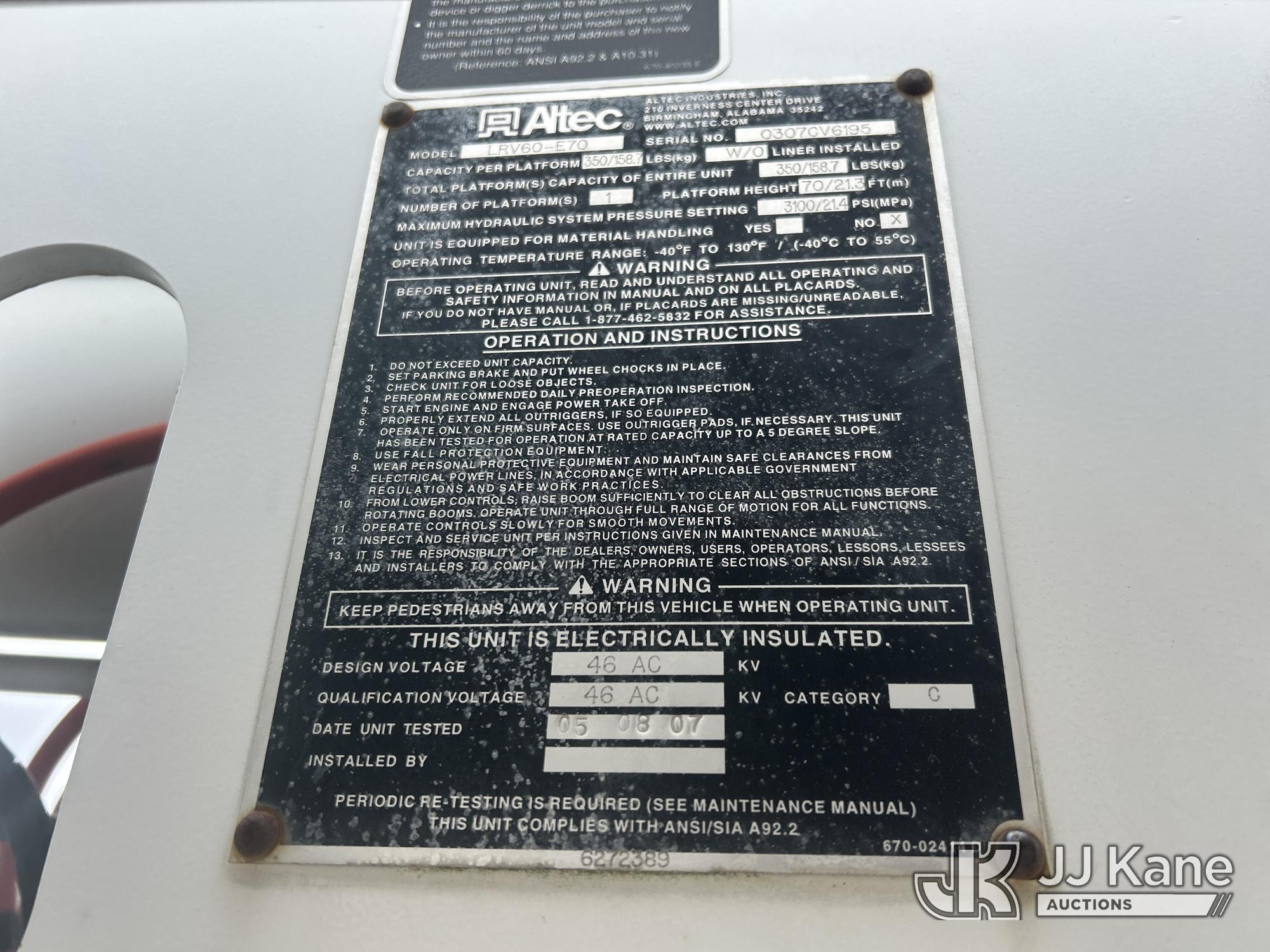 Altec LRV-60E70, 75 ft, Over-Center Elevator Bucket Truck s/n 0307CV6195, with Single-Man Bucket, 4 hydraulic outriggers, rear mounted on 2006 GMC C7C042 Flatbed/Service Truck, 7.2L L6 TURBO DIESEL 4X2, manual, A/C, (Exempt from Odometer Disclosure - Reads 122,009 miles) (Runs, Moves & Upper Condition Unknown) (Outriggers Condition Unknown, PTO Grinds, Jump To Start) This is a Titled Item*
