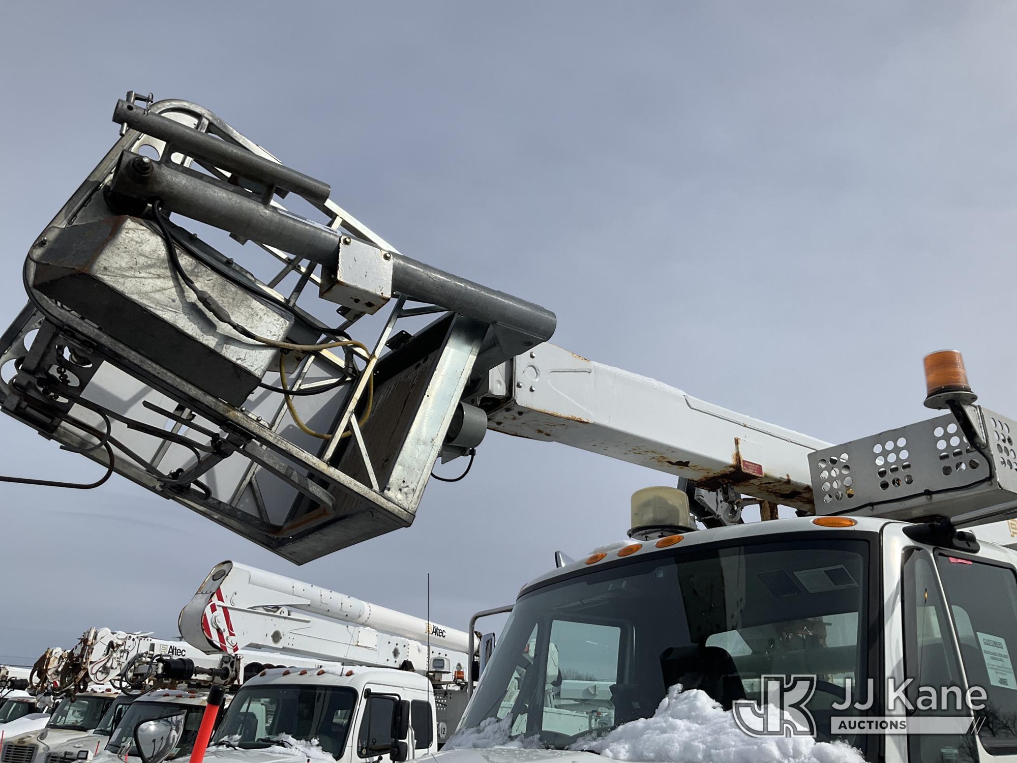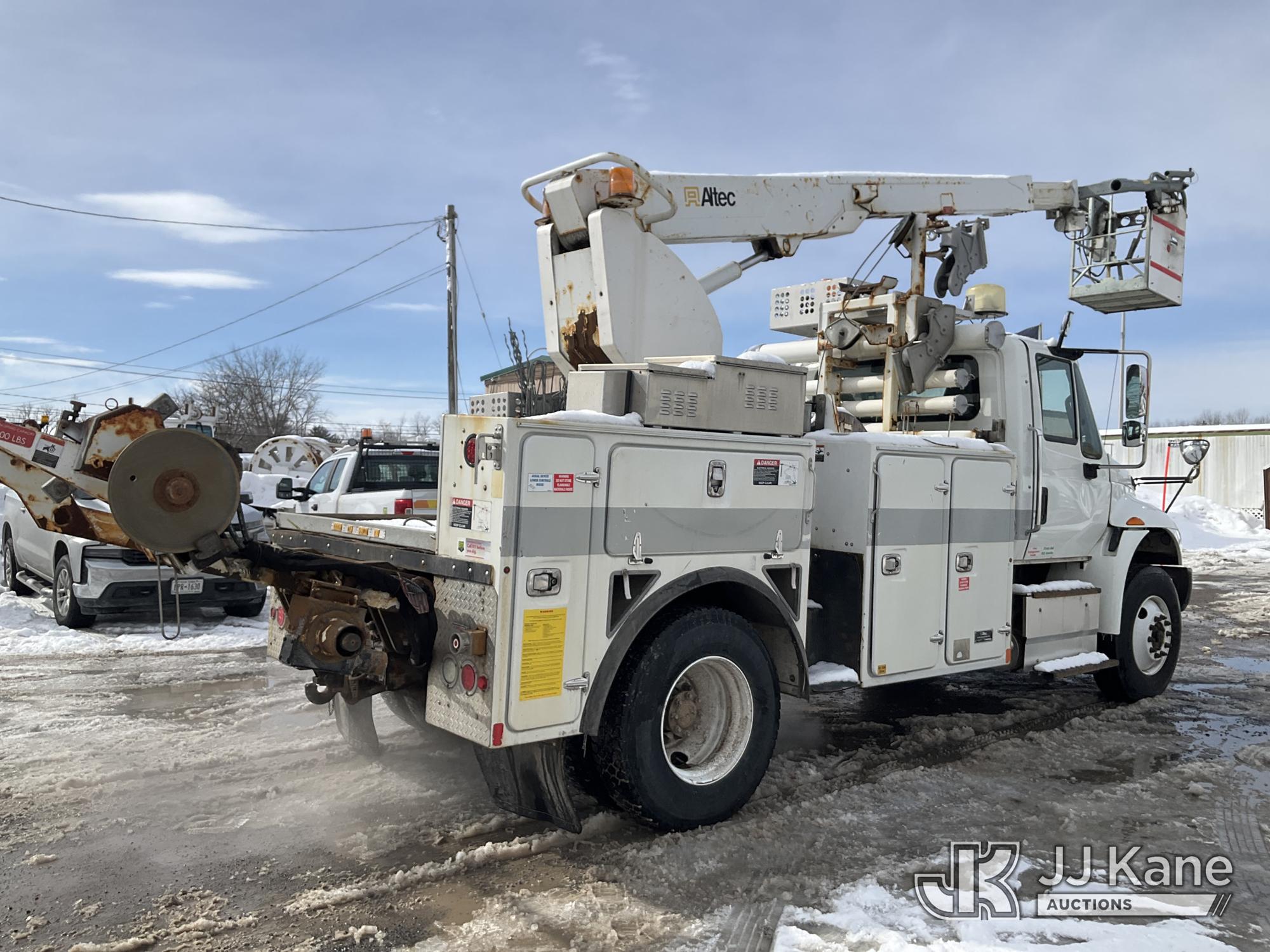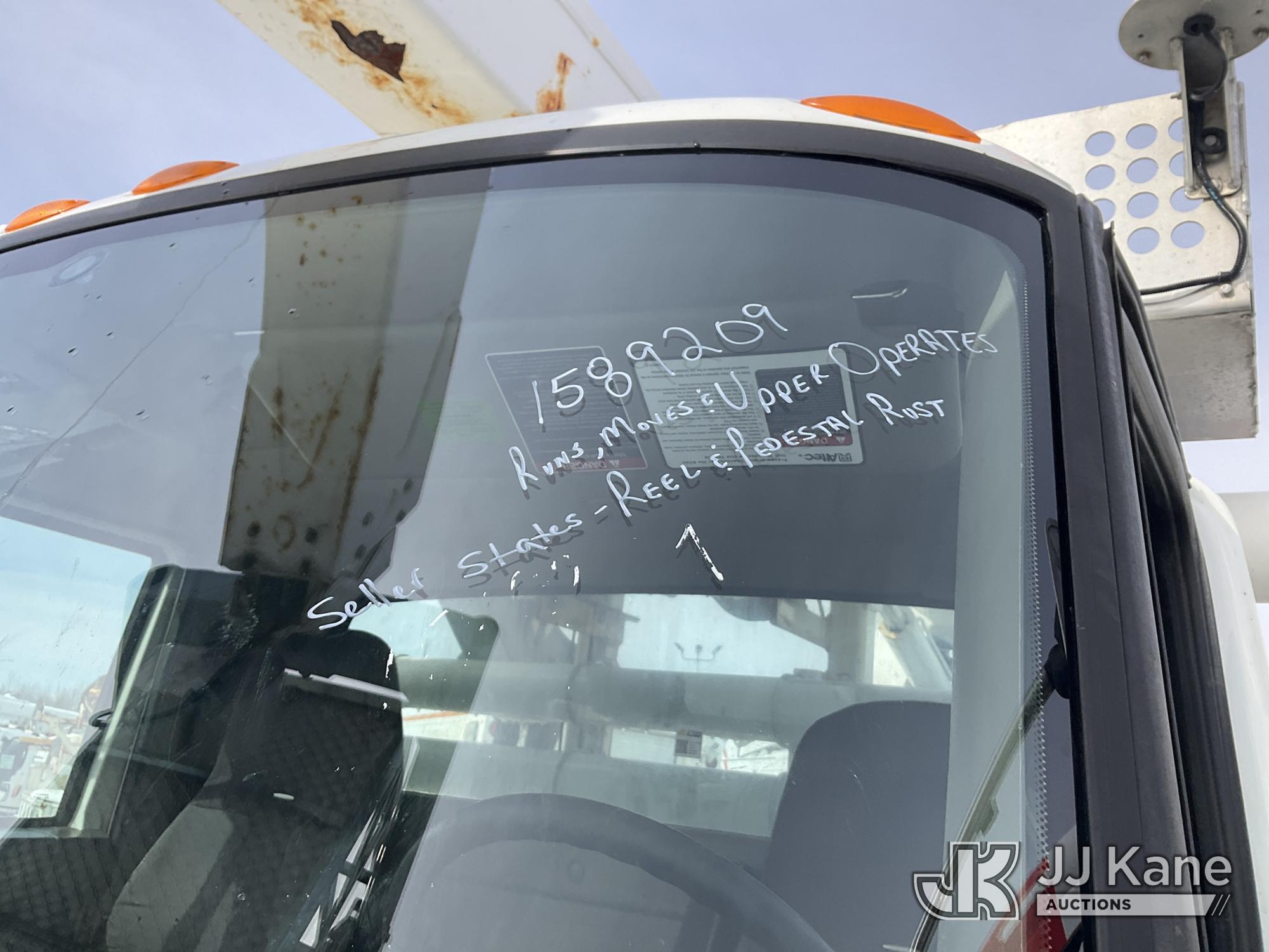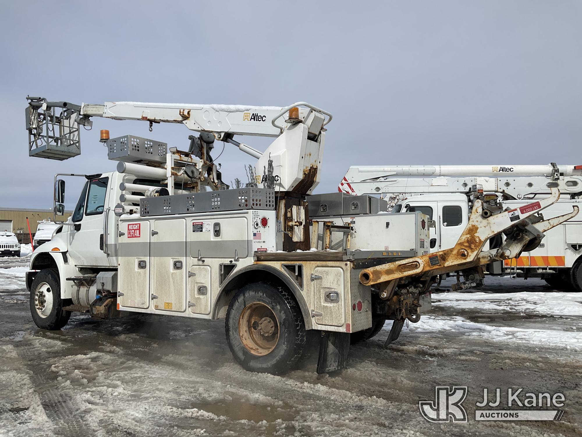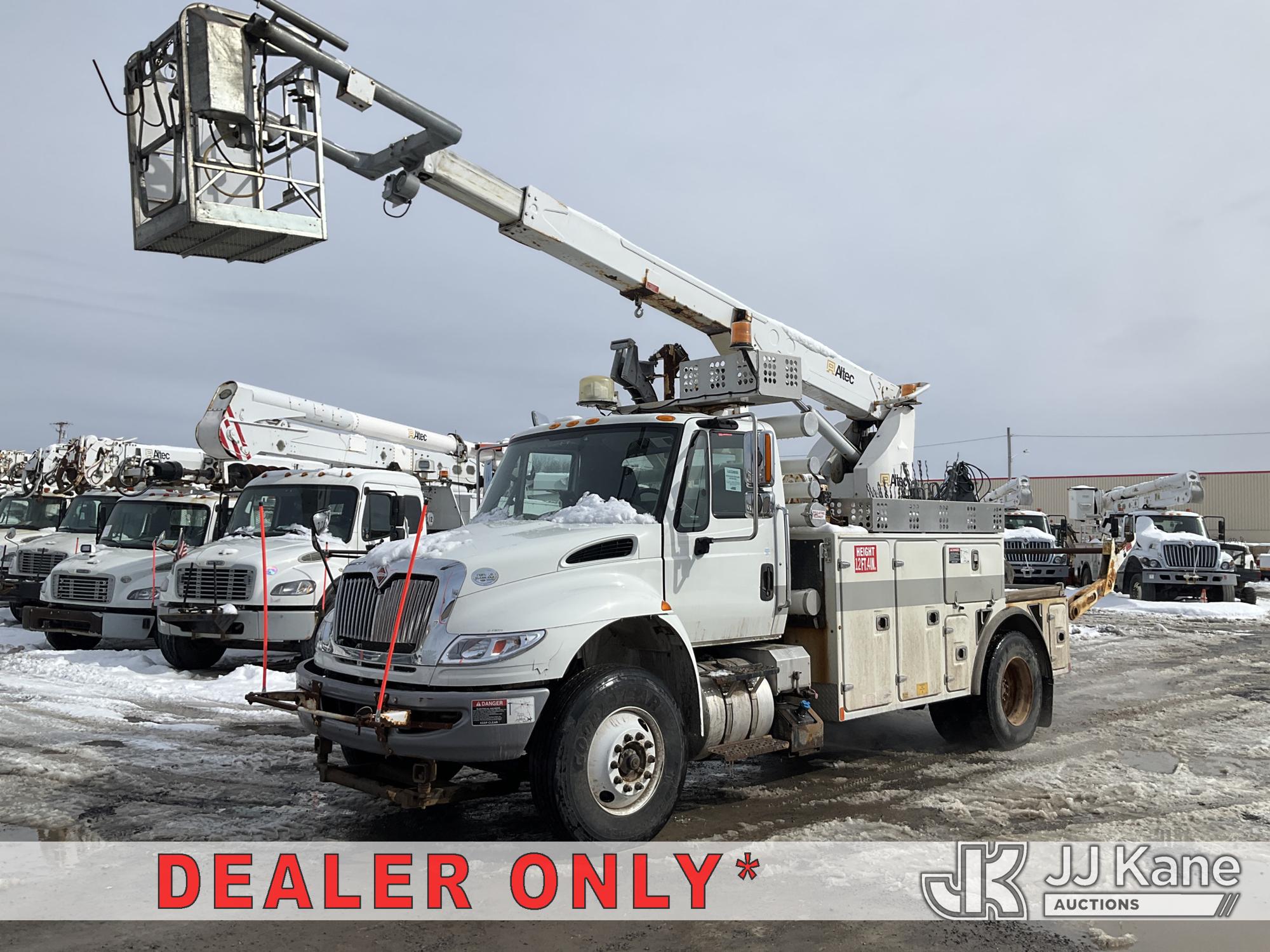 Altec A-T40C, 40 ft, Telescopic Cable Placing Bucket Truck s/n 0516GG0281, with Single Man Basket, center mounted on 2016 International 4400 Utility Truck, MaxxForce 10 9.3L diesel, Auto, A/C, (102,924 miles) (Runs, Moves & Upper Operates, No Upper Plate.**Dealer Only** This item has been removed from service due to the listed safety repairs that were not completed. The safety items below must be completed by an approved OEM facility before the unit can return to service: RUST DAMAGE ON REEL LIFTER ARMS - RUST HOLES IN TOP AND BOTTOM; REQUIRES ANSI INSPECTION FOR COMPLETE REPAIR/REPLACEMENT REQUIREMENTS; COMPLETE ANY REQUIRED TESTING AND REPAIRS AFTER INSPECTIONS ARE COMPLETED) (Bidding Restricted to Licensed Vehicle Dealers Only), This is a Titled Item*
