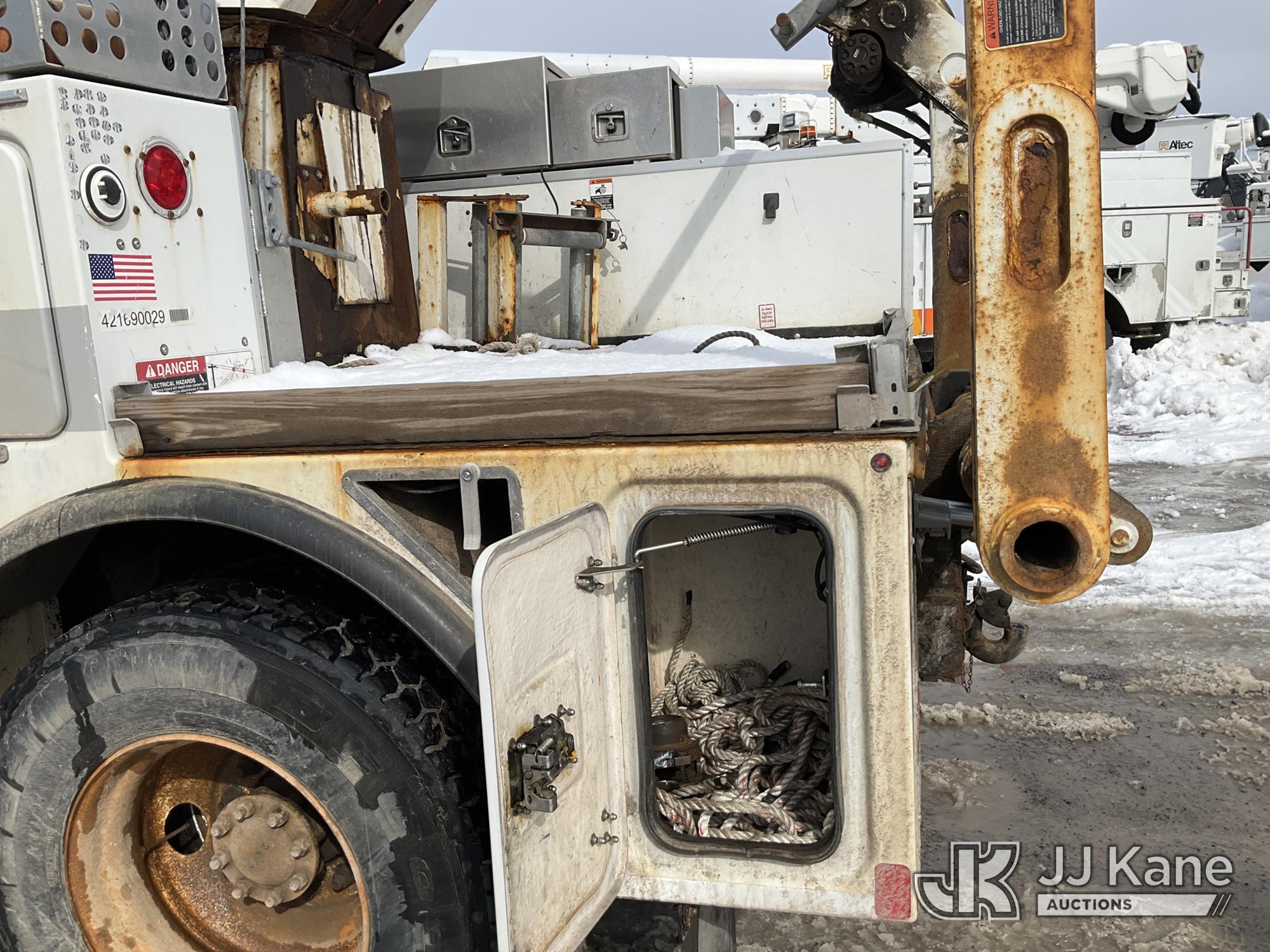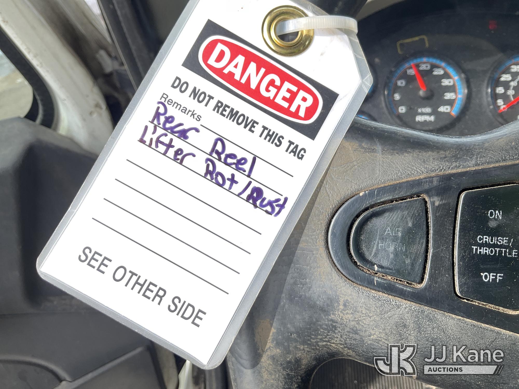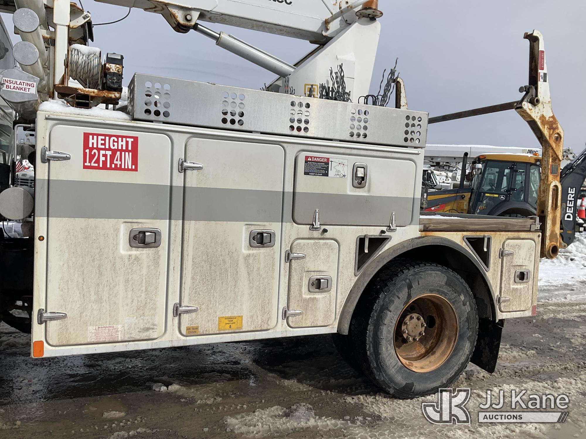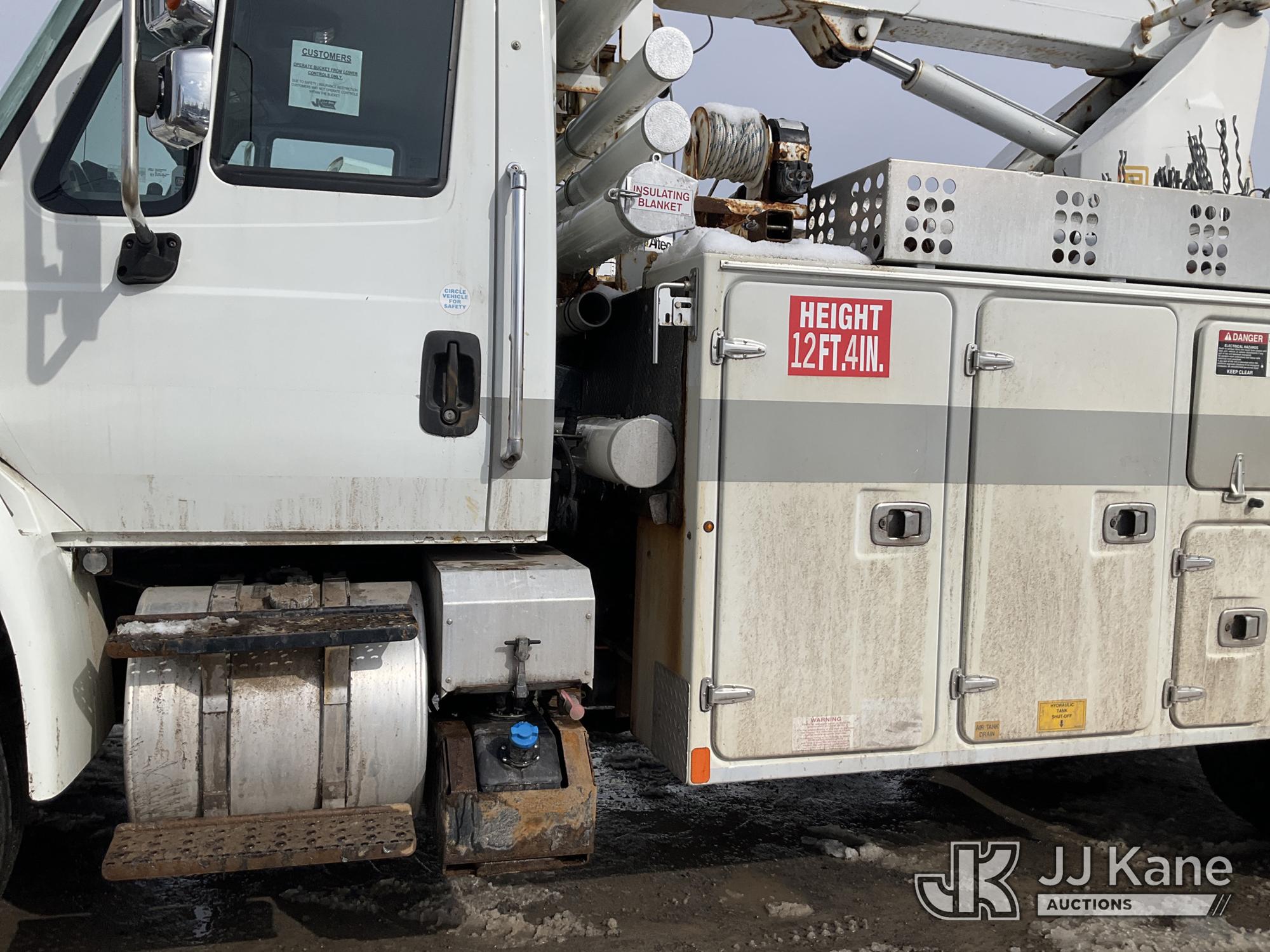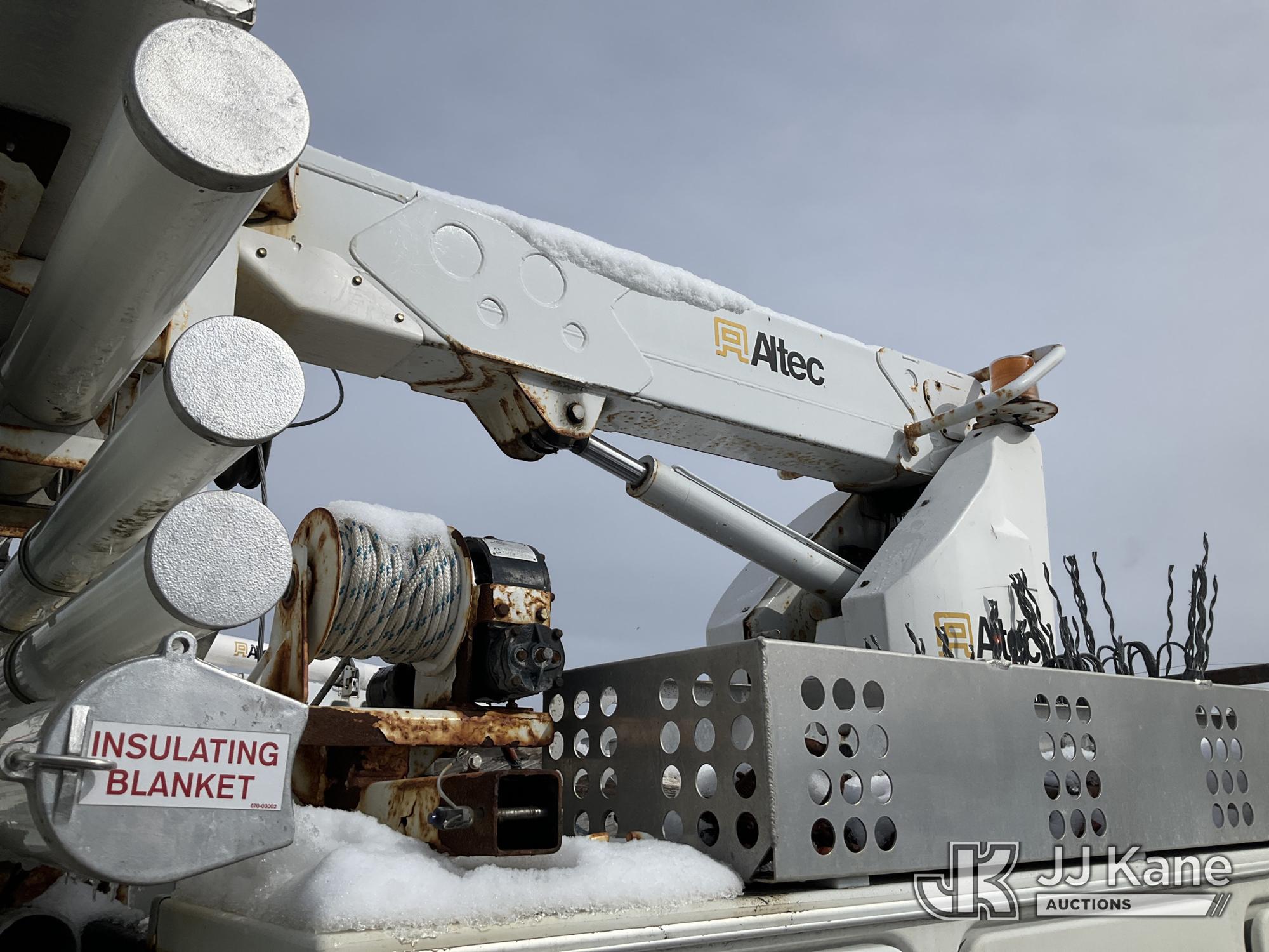 Altec A-T40C, 40 ft, Telescopic Cable Placing Bucket Truck s/n 0516GG0281, with Single Man Basket, center mounted on 2016 International 4400 Utility Truck, MaxxForce 10 9.3L diesel, Auto, A/C, (102,924 miles) (Runs, Moves & Upper Operates, No Upper Plate.**Dealer Only** This item has been removed from service due to the listed safety repairs that were not completed. The safety items below must be completed by an approved OEM facility before the unit can return to service: RUST DAMAGE ON REEL LIFTER ARMS - RUST HOLES IN TOP AND BOTTOM; REQUIRES ANSI INSPECTION FOR COMPLETE REPAIR/REPLACEMENT REQUIREMENTS; COMPLETE ANY REQUIRED TESTING AND REPAIRS AFTER INSPECTIONS ARE COMPLETED) (Bidding Restricted to Licensed Vehicle Dealers Only), This is a Titled Item*