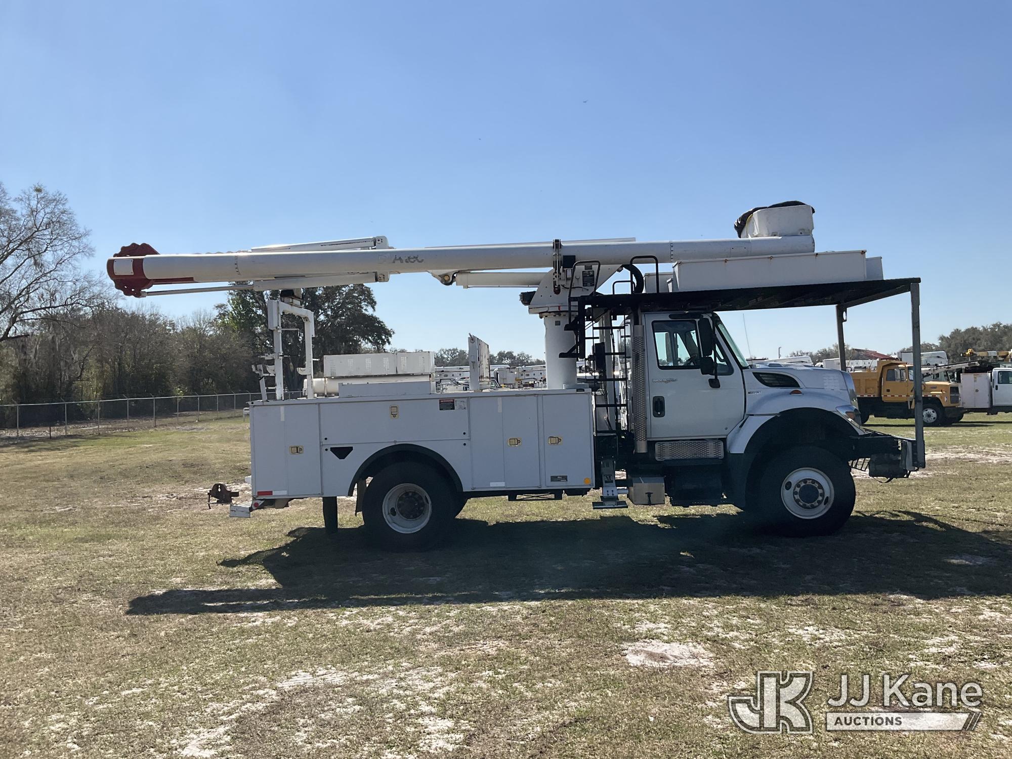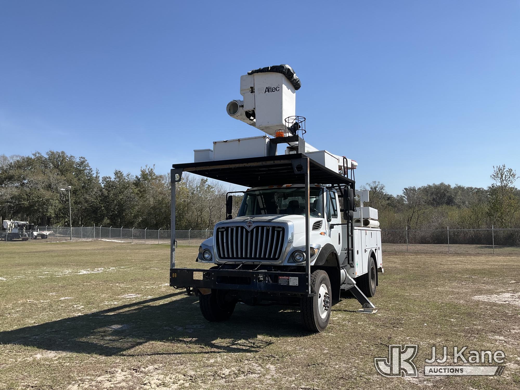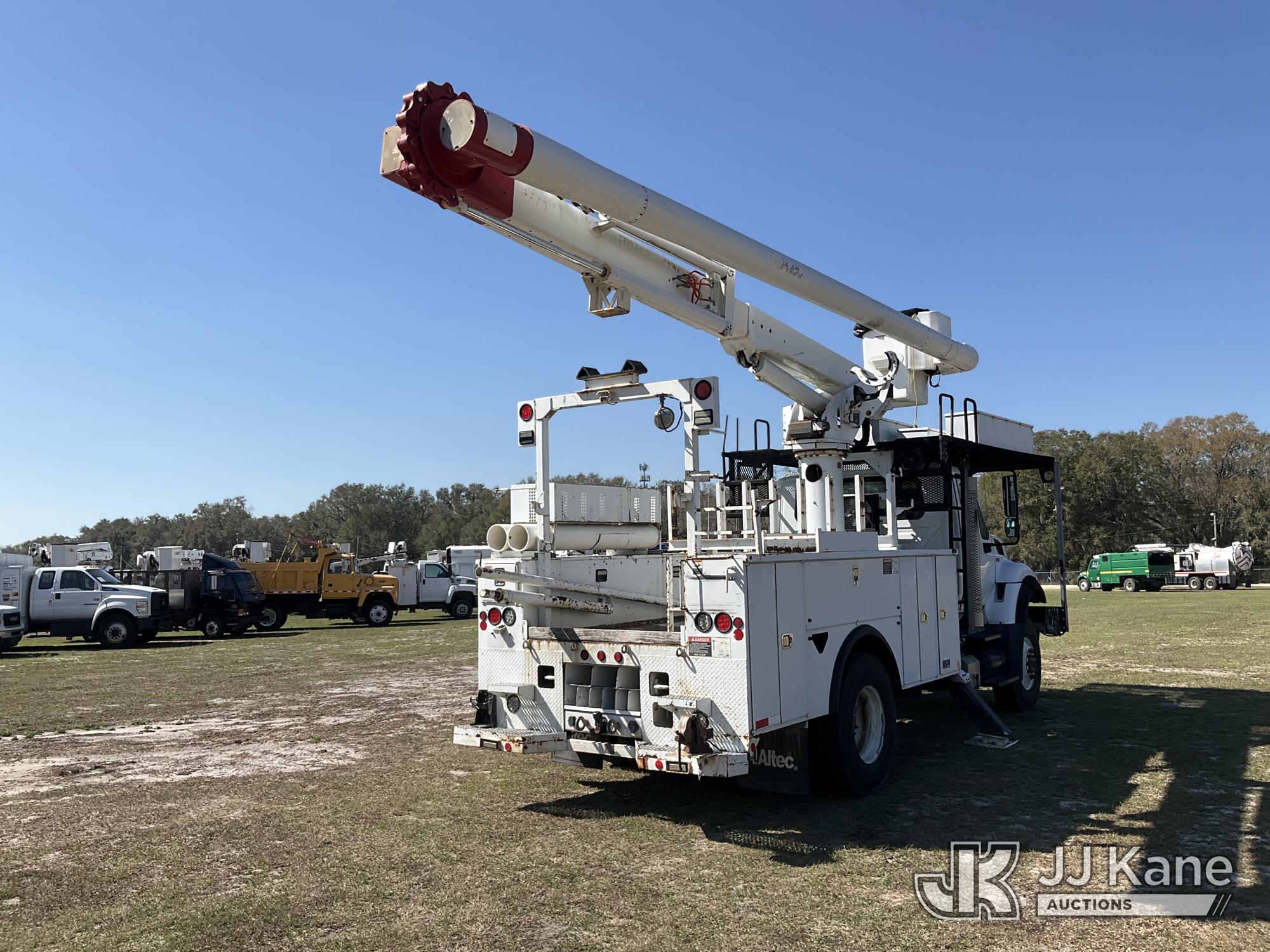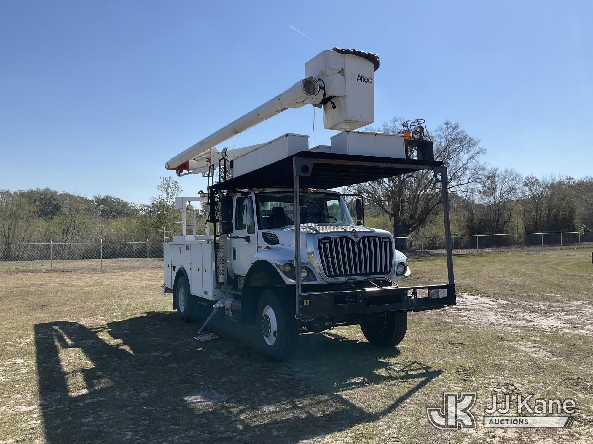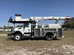 Altec LR758, 63 ft, Over-Center Bucket Truck s/n 0612FF0112, with single-man bucket & 2 hyd outriggers, mounted behind cab on 2013 International 7300 4x4 Utility Truck, 7.6L L6 diesel, Auto, A/C, (56,392 miles) (Runs, Moves, Upper Operates) (Radio Not Included)) (Reads 8,734 hours) This is a Titled Item*