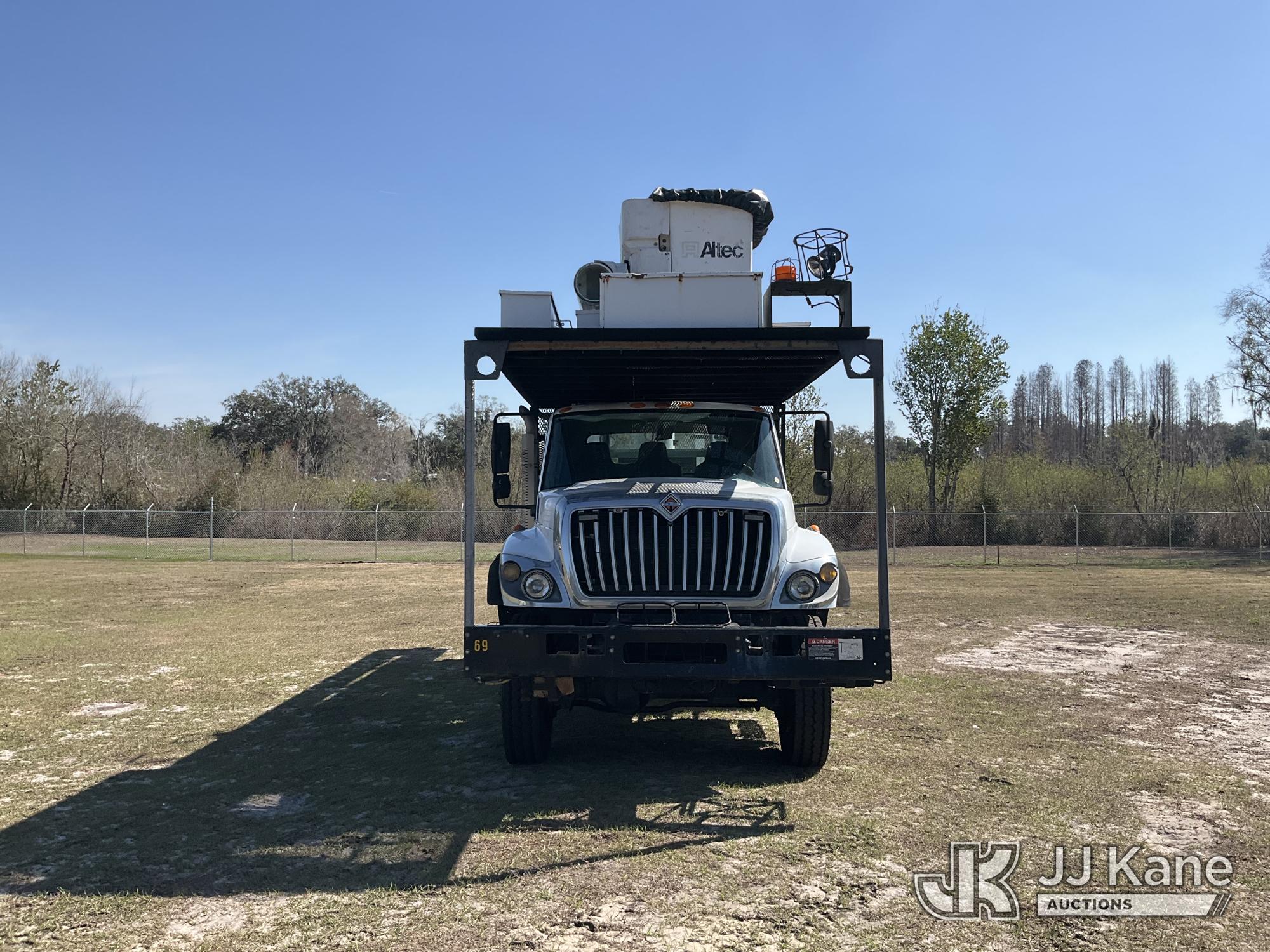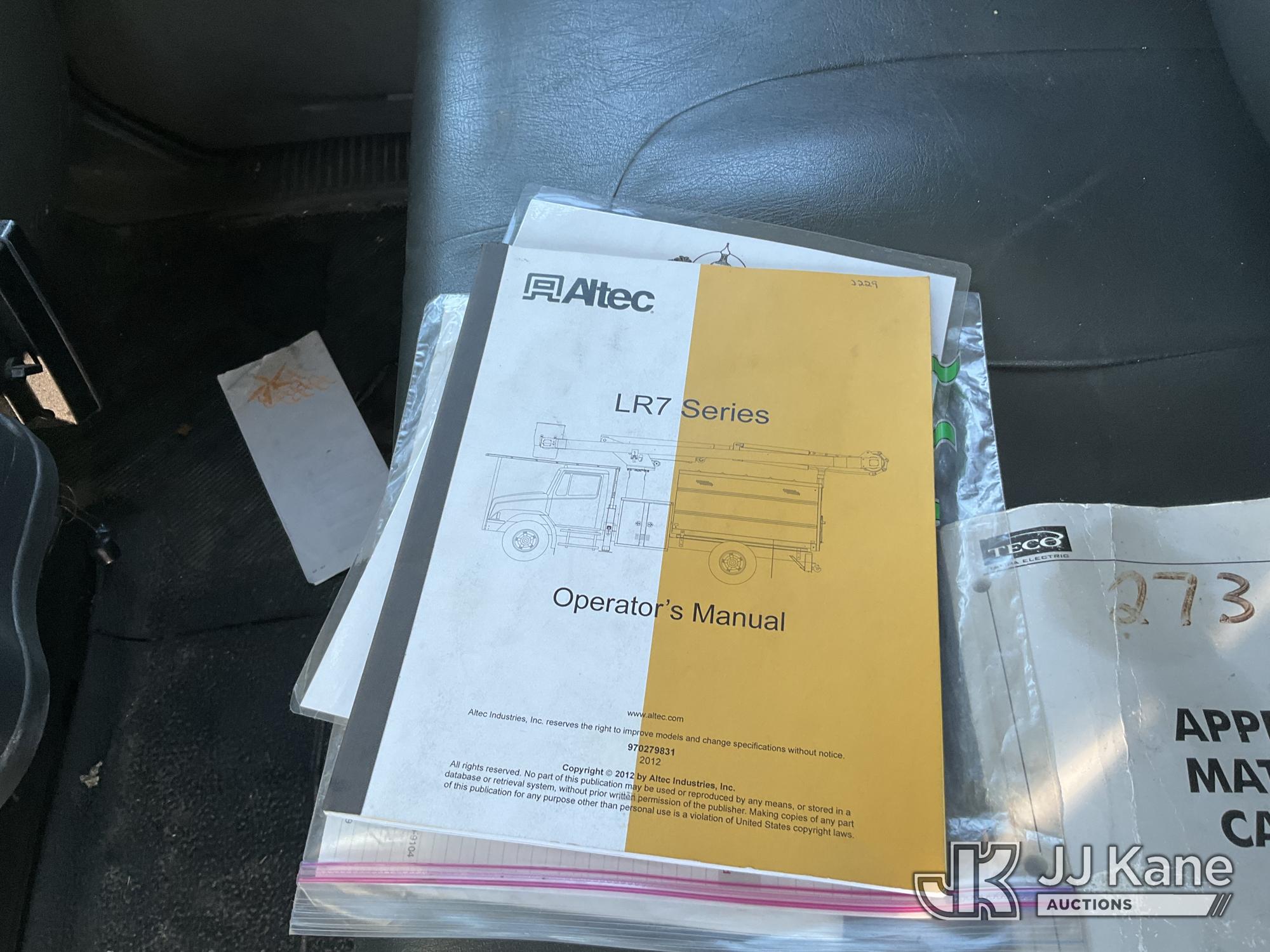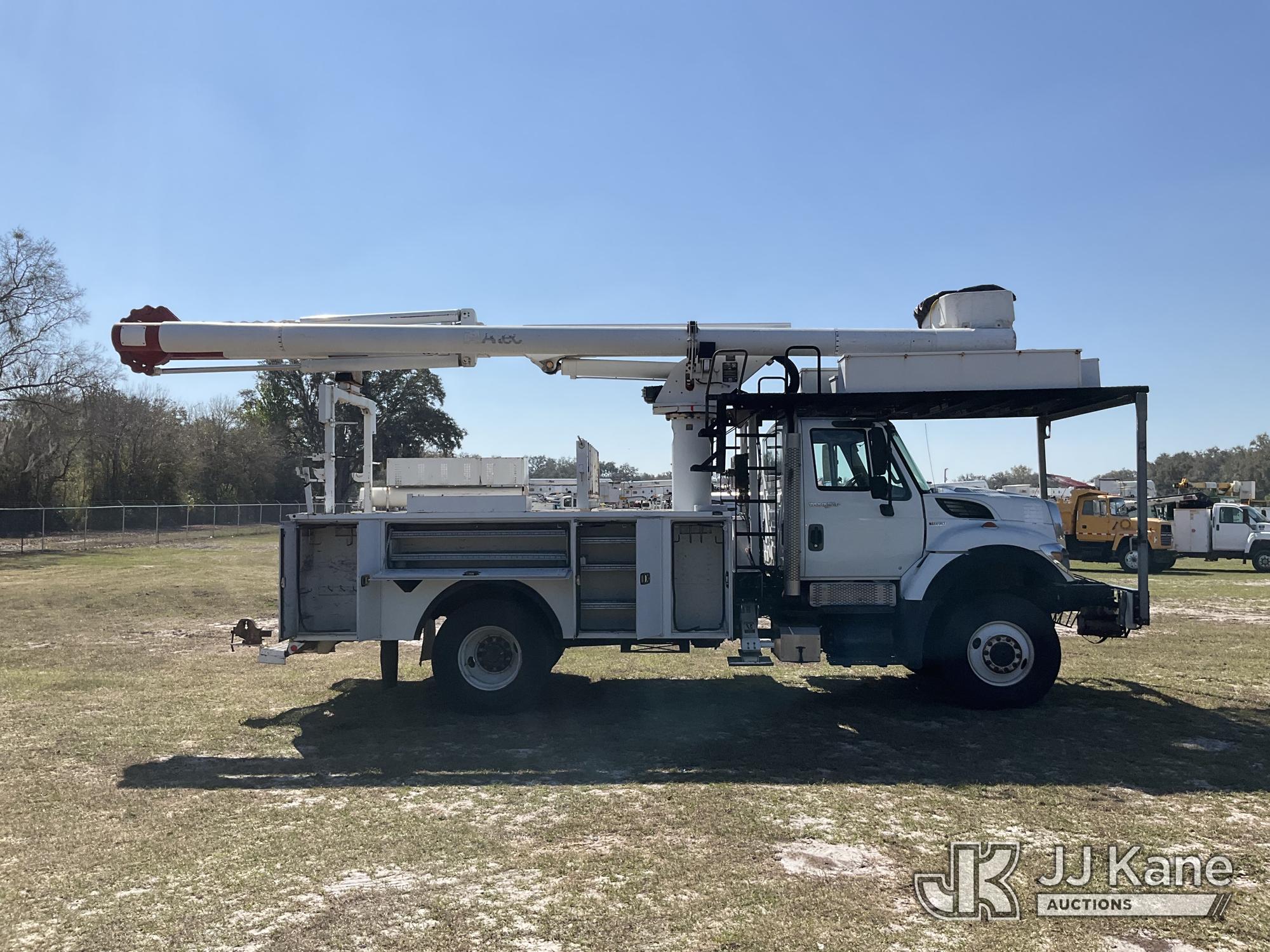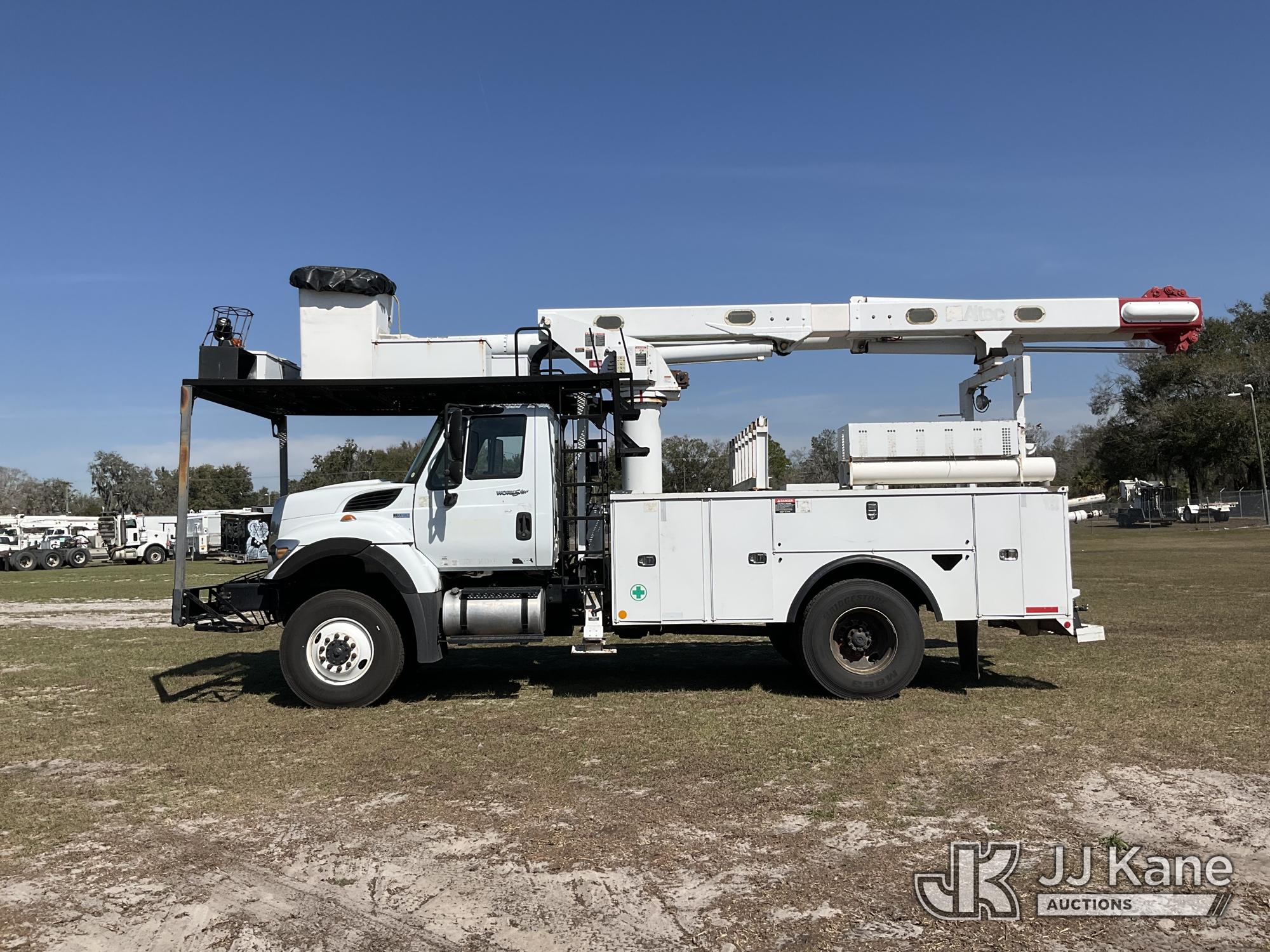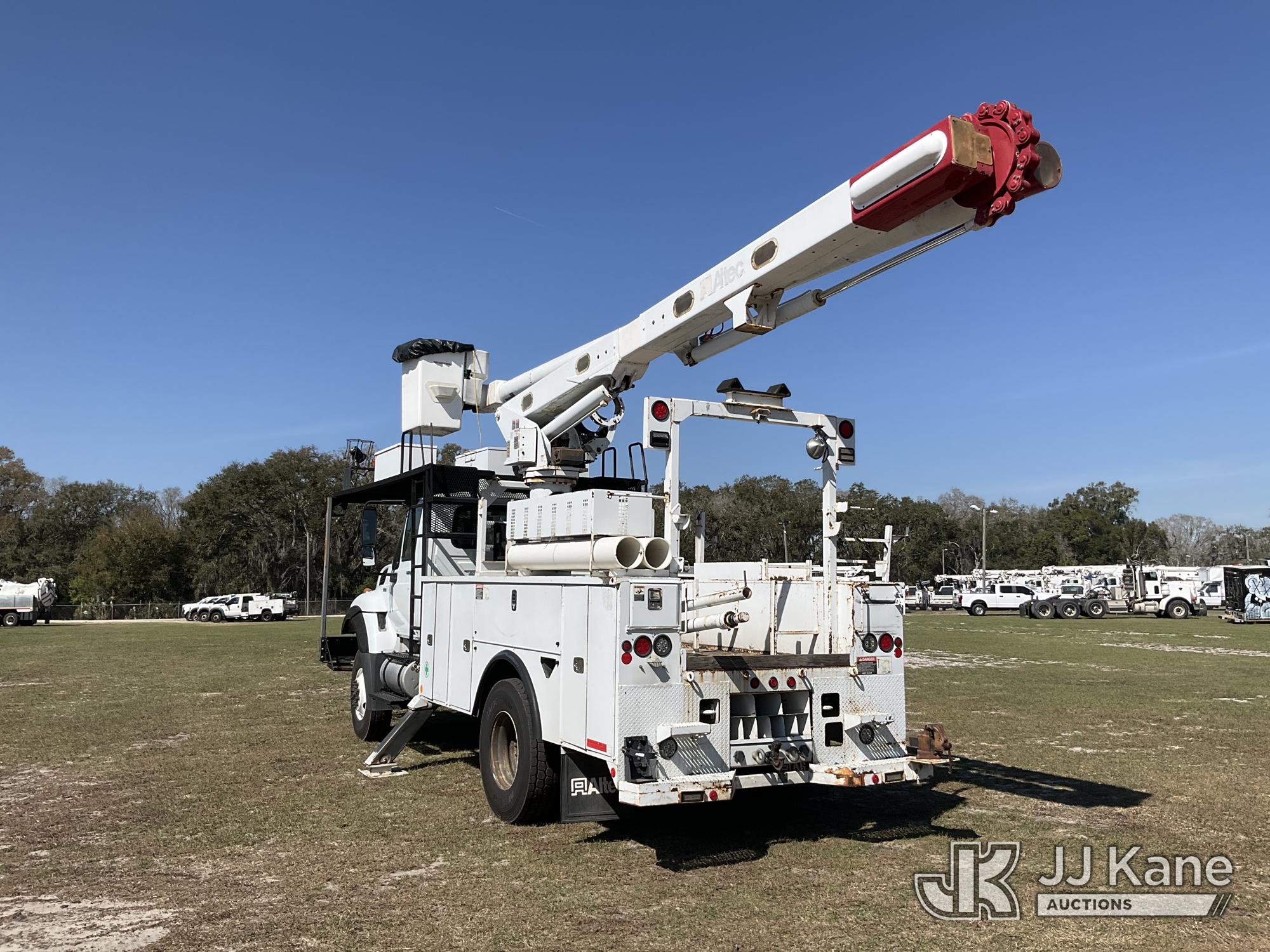 Altec LR758, 63 ft, Over-Center Bucket Truck s/n 0612FF0112, with single-man bucket & 2 hyd outriggers, mounted behind cab on 2013 International 7300 4x4 Utility Truck, 7.6L L6 diesel, Auto, A/C, (56,392 miles) (Runs, Moves, Upper Operates) (Radio Not Included)) (Reads 8,734 hours) This is a Titled Item*