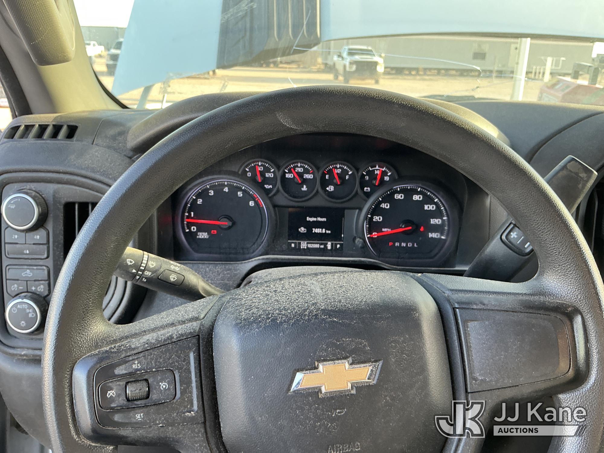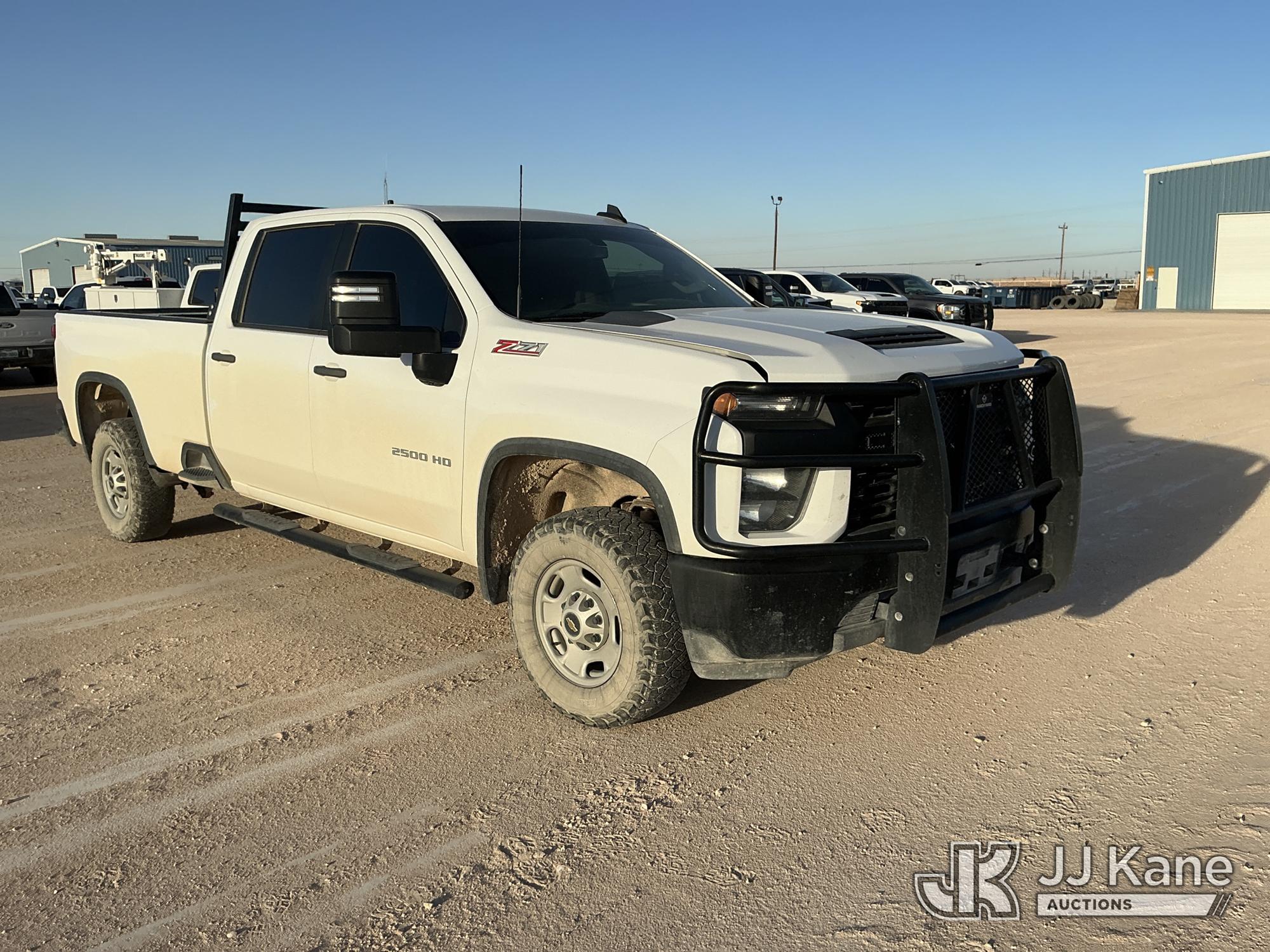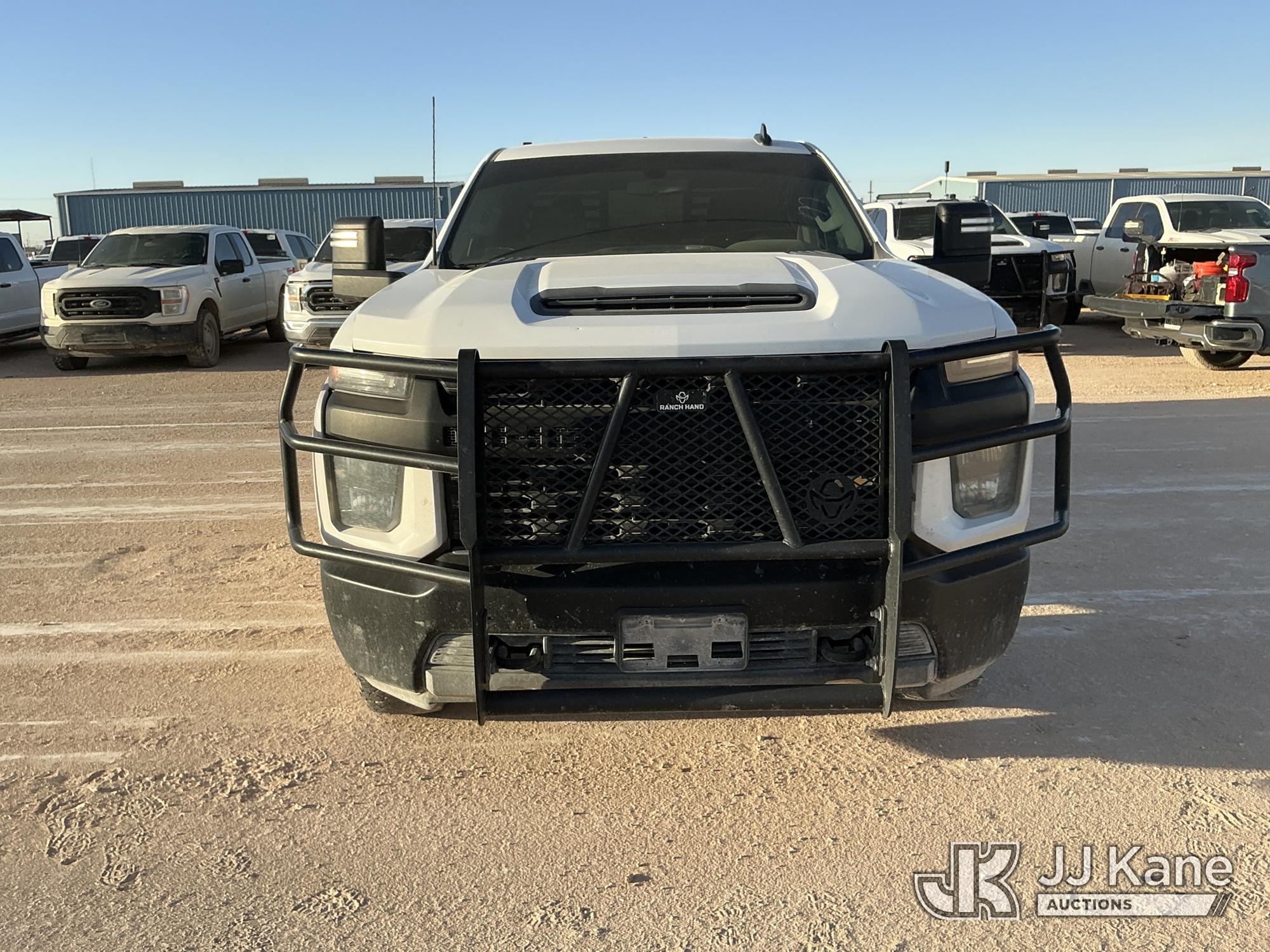 2021 Chevrolet Silverado 2500HD Crew-Cab Pickup Truck, 8-cyl gas, 4WD, 6-Speed Automatic, A/C, with Front Bumper Brush Guard & Rear Window Brush Guard , (102,080 miles) (Runs & Moves) (Jump To Start, Truck Shuts Off As Soon As Battery Jumppack Is Disconnected, Check Engine Light Is On, Battery System Light Is On, Windshield Is Cracked, Passenger Front Tire Well Area Has Scratched, Passenger Side Rear Tire Well Black Plastic Guard Is Damaged, Tailgate Has Scratches, Driver Side Rear Tire Well Area Has Scratches) (Reads 7,451 hours) This is a Titled Item*