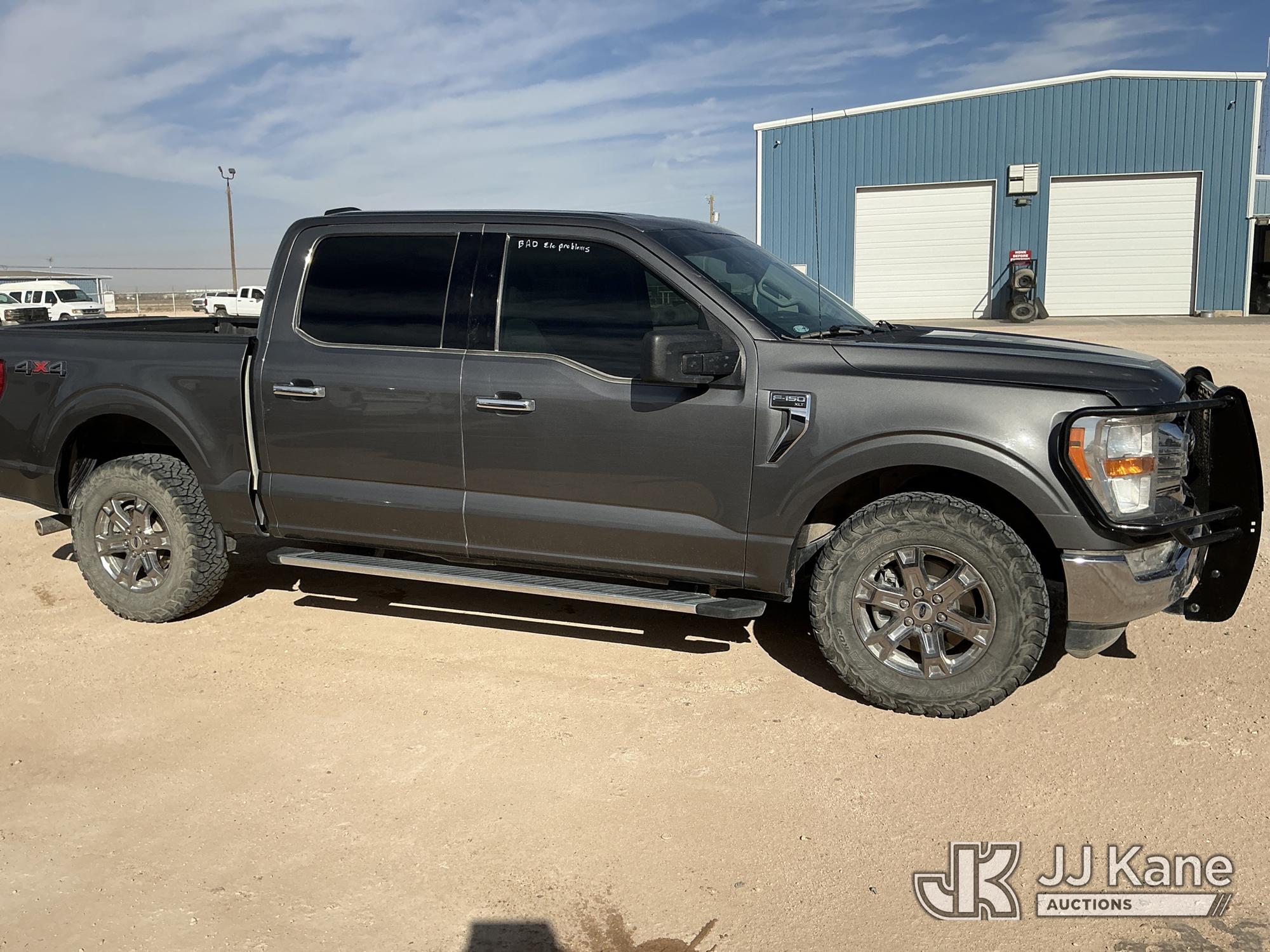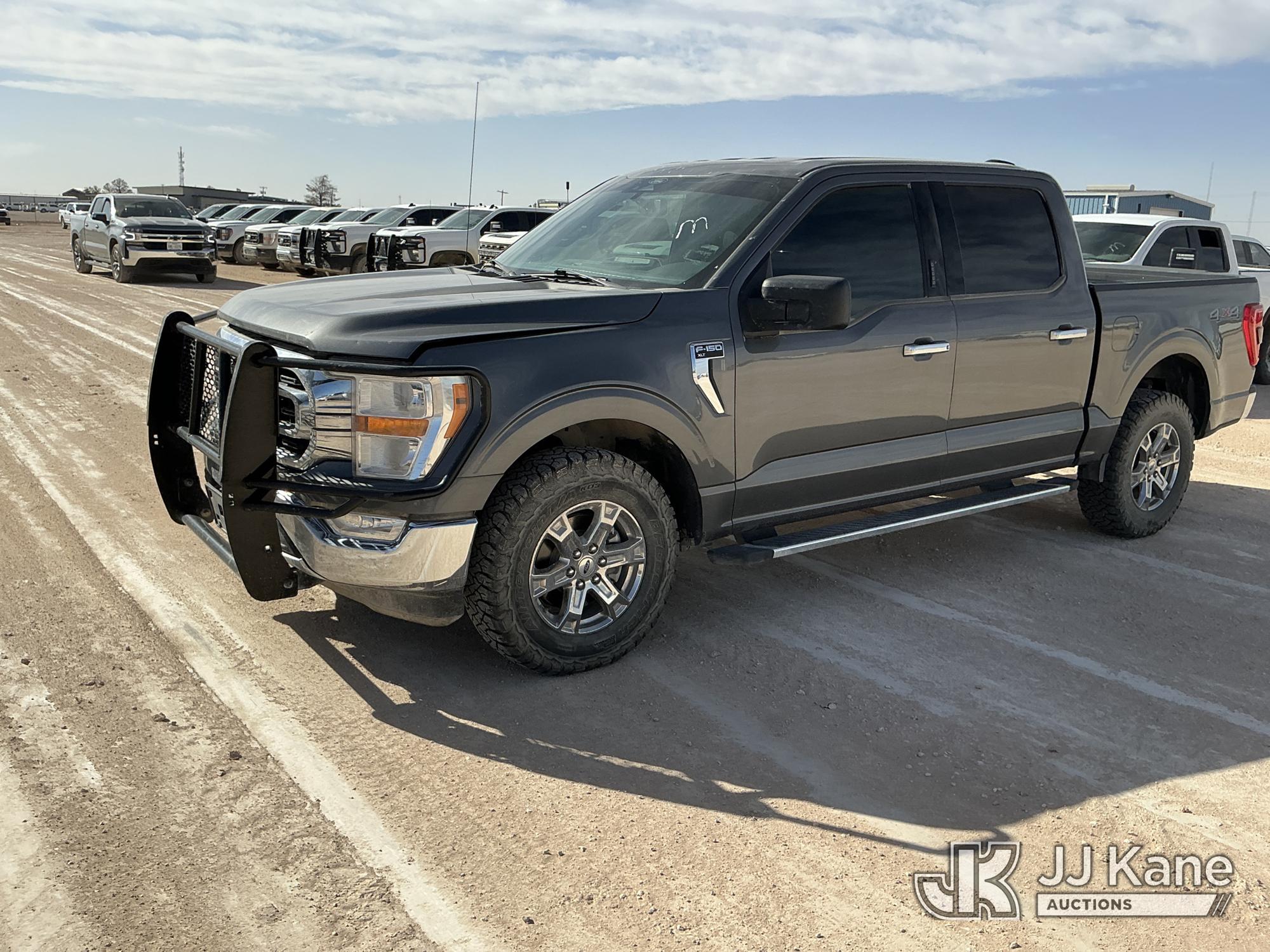 2022 Ford F-150 Crew-Cab Pickup Truck, 8-cyl gas, 4WD, 6-Speed Automatic, A/C, with Front Bumper Brush Guard , (102,411 miles) (Runs & Moves) (Per Seller: Has Electrical Problems, Windshield Is Cracked) (Reads 3,909 hours) This is a Titled Item*