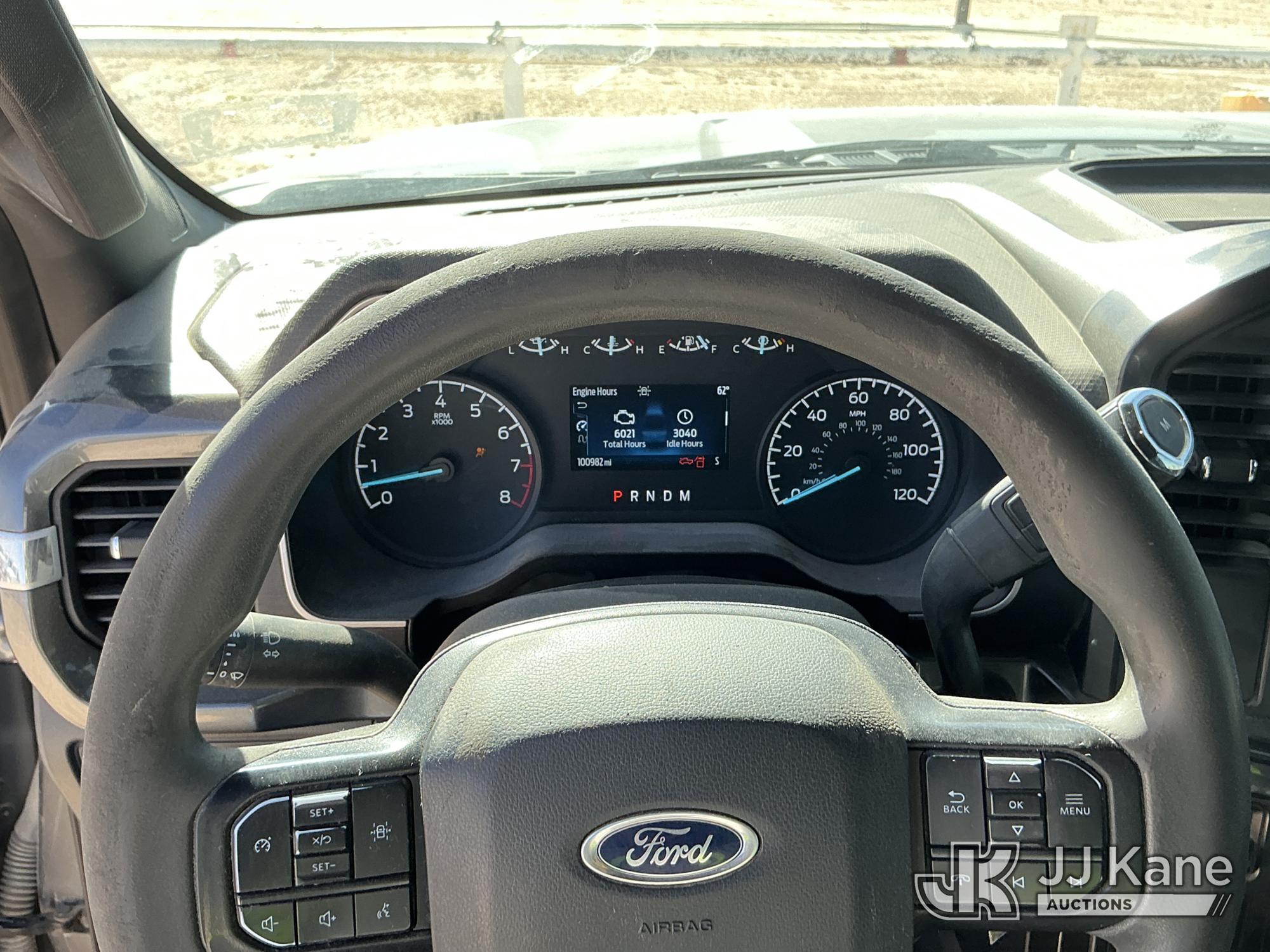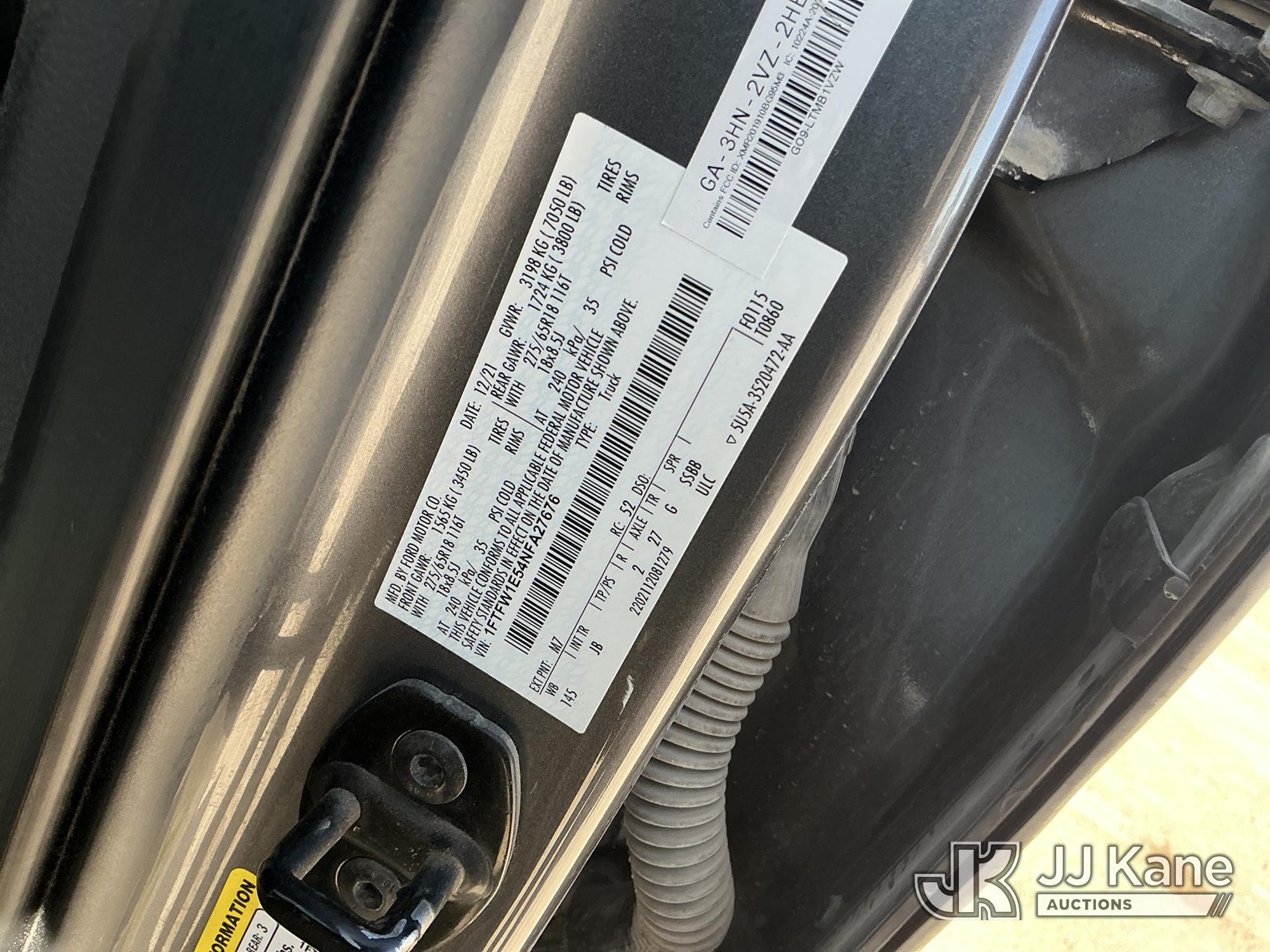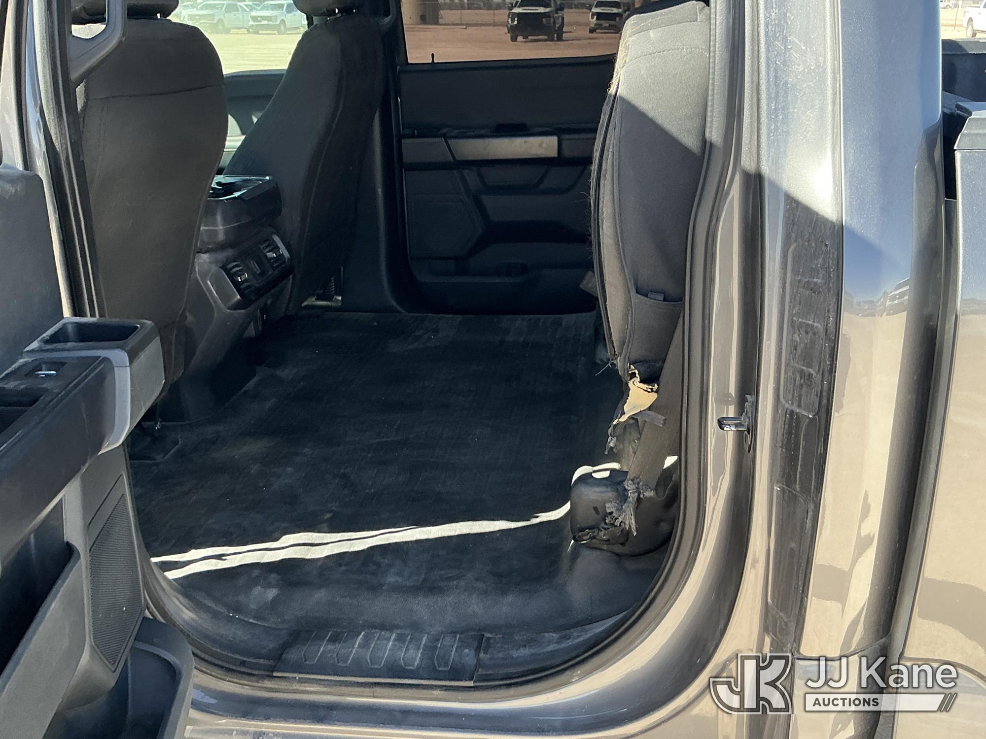 2022 Ford F-150 Crew-Cab Pickup Truck, 8-cyl gas, 4WD, 6-Speed Automatic, A/C, with Front Bumper Brush Guard , (100,982 miles) (Runs & Moves) (Per Seller: 4x4 Is Bad, Windshield Is Cracked, Rear Bumper Has Scratches, Passenger Side Rear Fender Area Black Plastic Guard Is Coming Apart Unattached, Front Bumper Right Bottom Area Is Coming Apart Unattached, Passenger Mirror Assembly Is Scratched) (Reads 6,021 hours) This is a Titled Item*