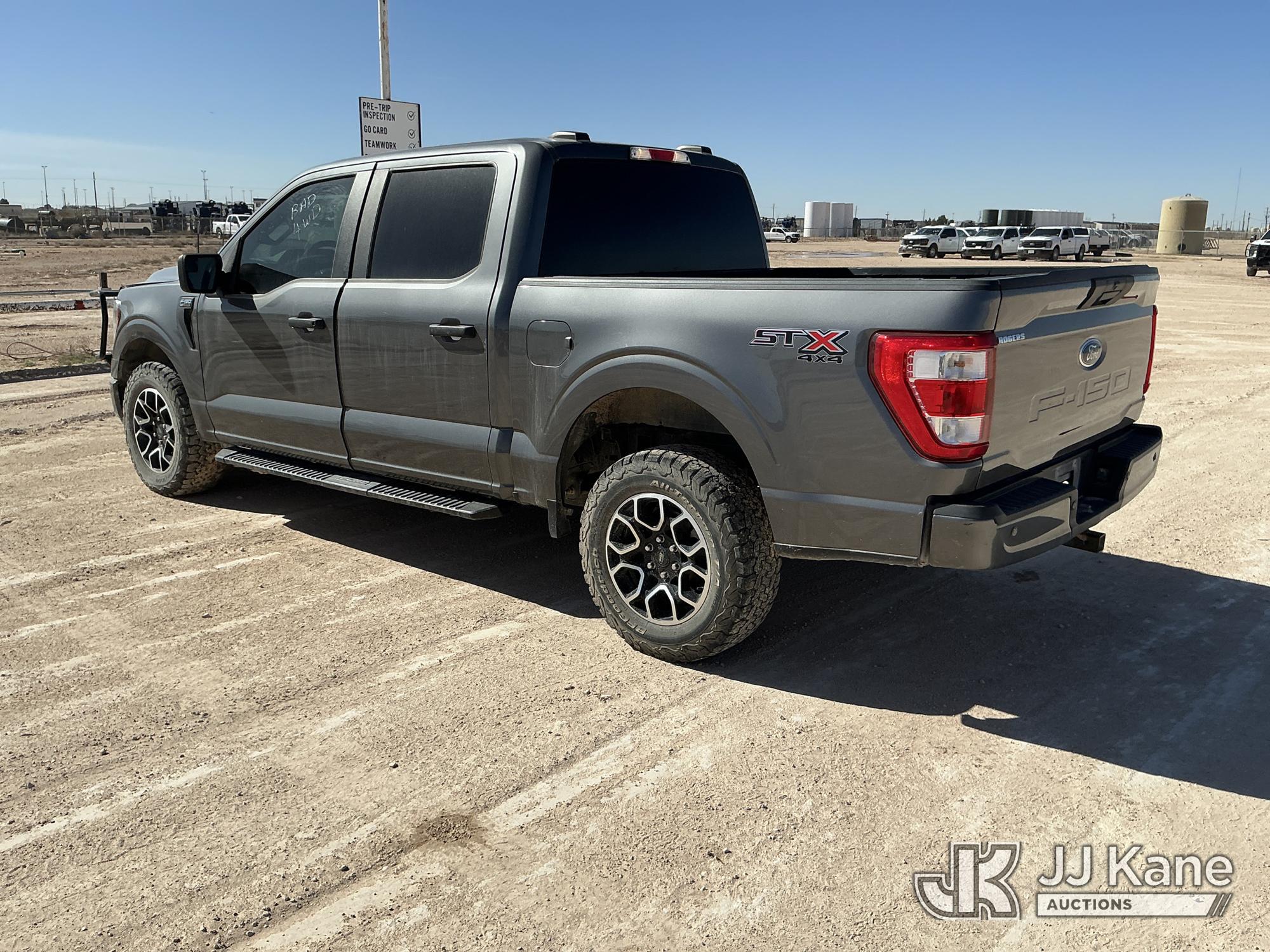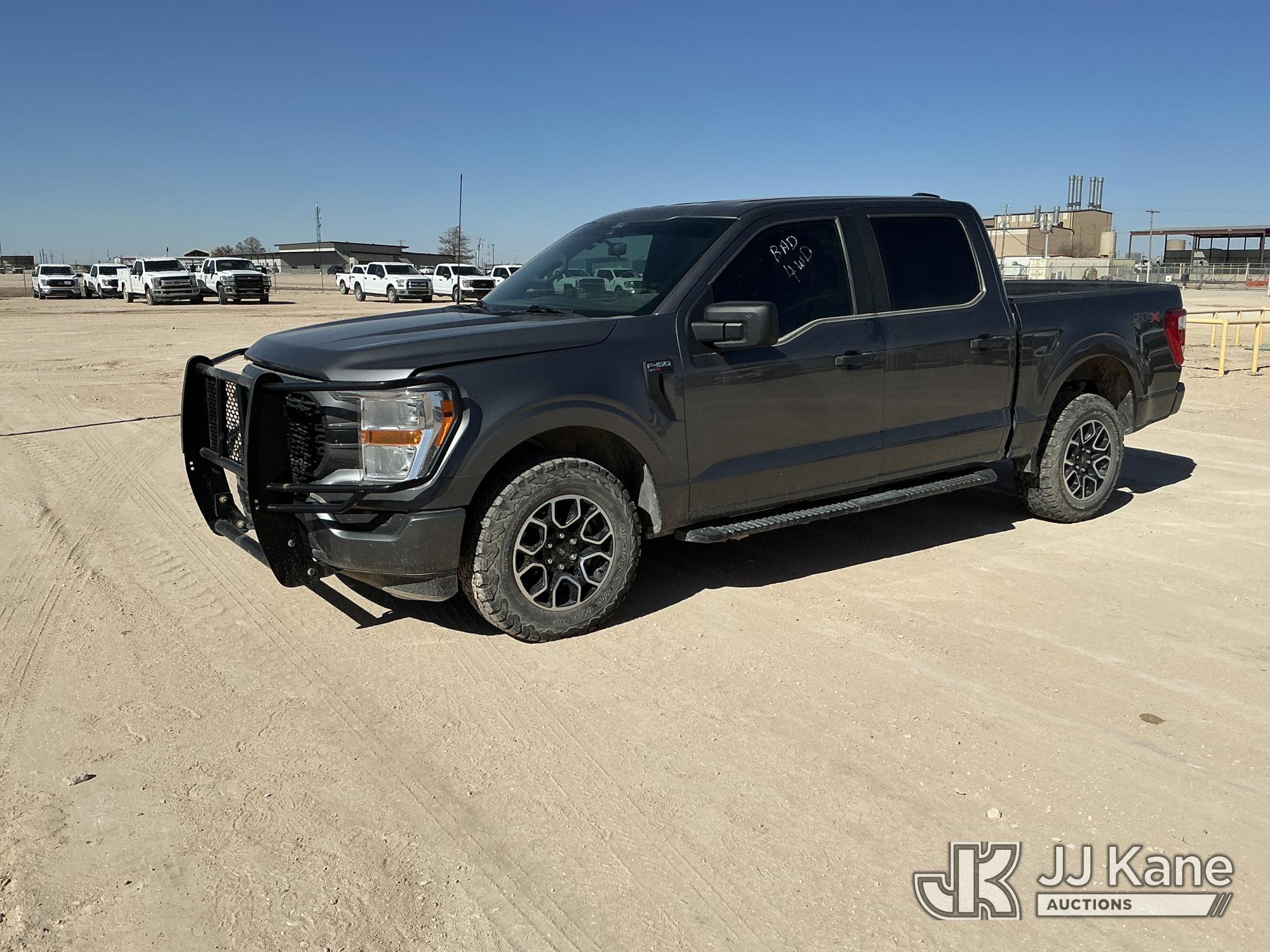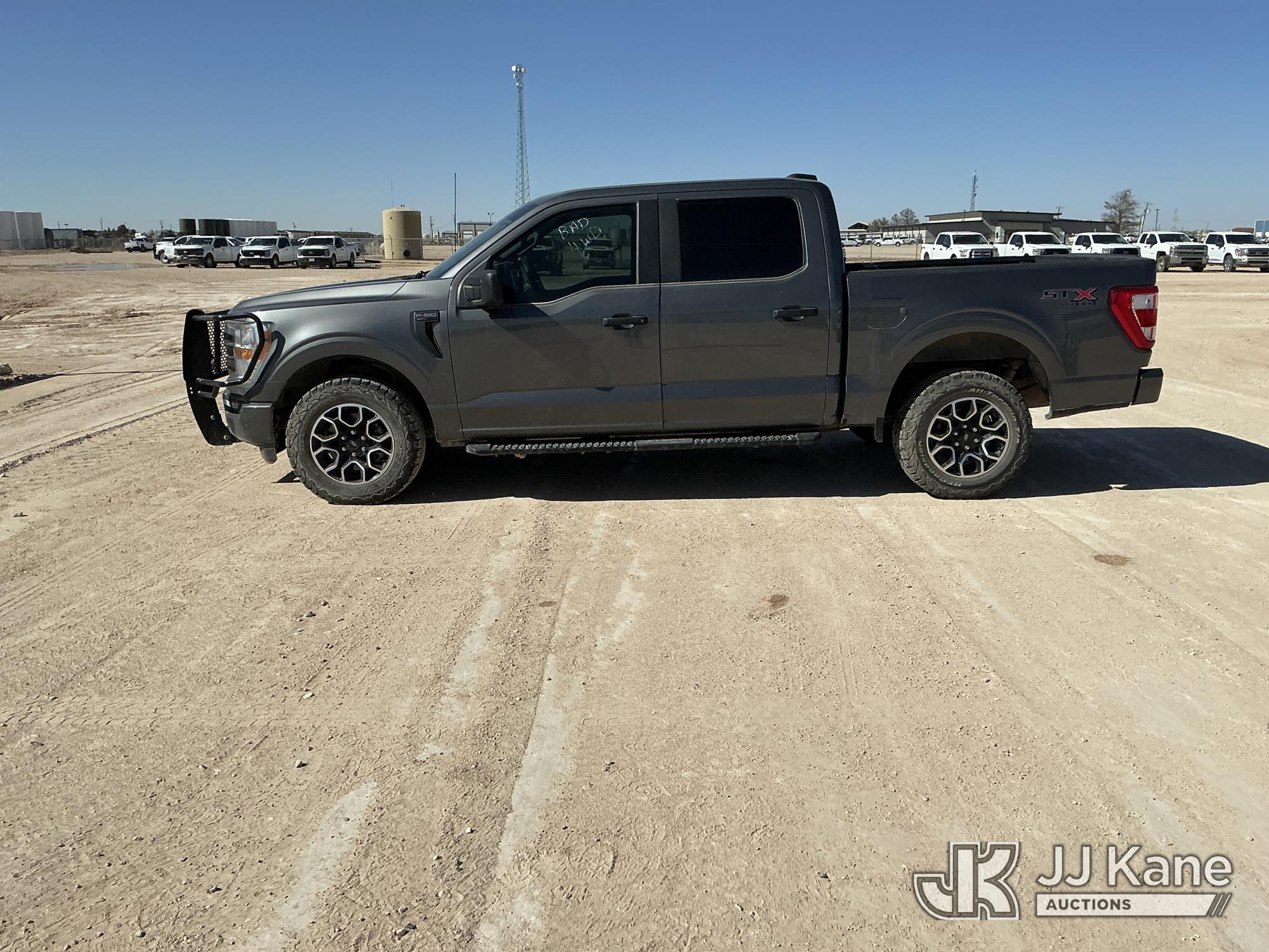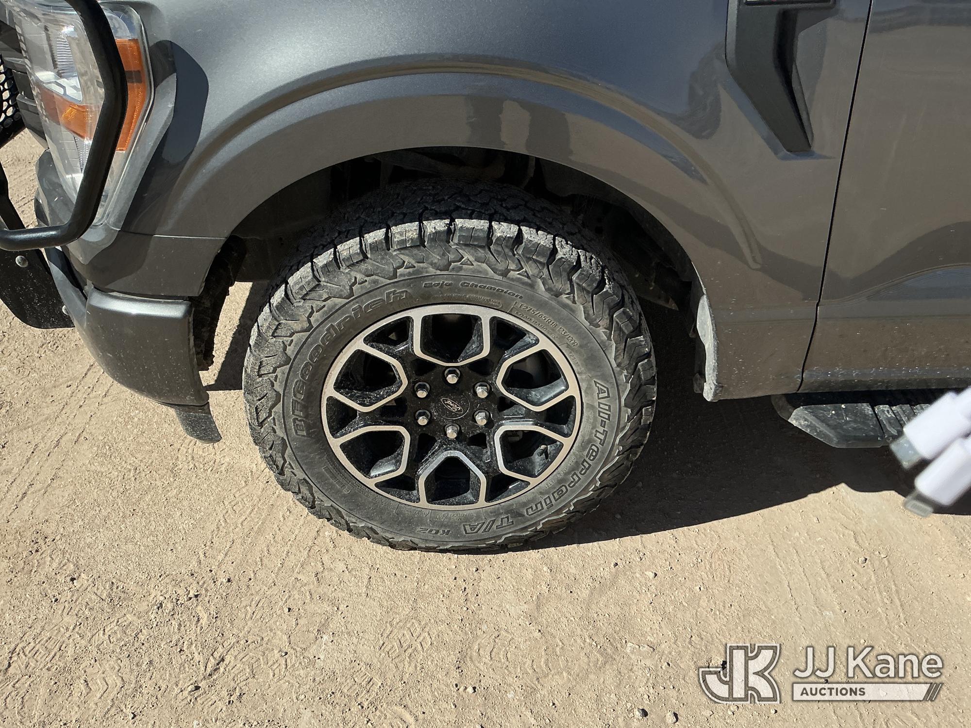 2022 Ford F-150 Crew-Cab Pickup Truck, 8-cyl gas, 4WD, 6-Speed Automatic, A/C, with Front Bumper Brush Guard , (100,982 miles) (Runs & Moves) (Per Seller: 4x4 Is Bad, Windshield Is Cracked, Rear Bumper Has Scratches, Passenger Side Rear Fender Area Black Plastic Guard Is Coming Apart Unattached, Front Bumper Right Bottom Area Is Coming Apart Unattached, Passenger Mirror Assembly Is Scratched) (Reads 6,021 hours) This is a Titled Item*