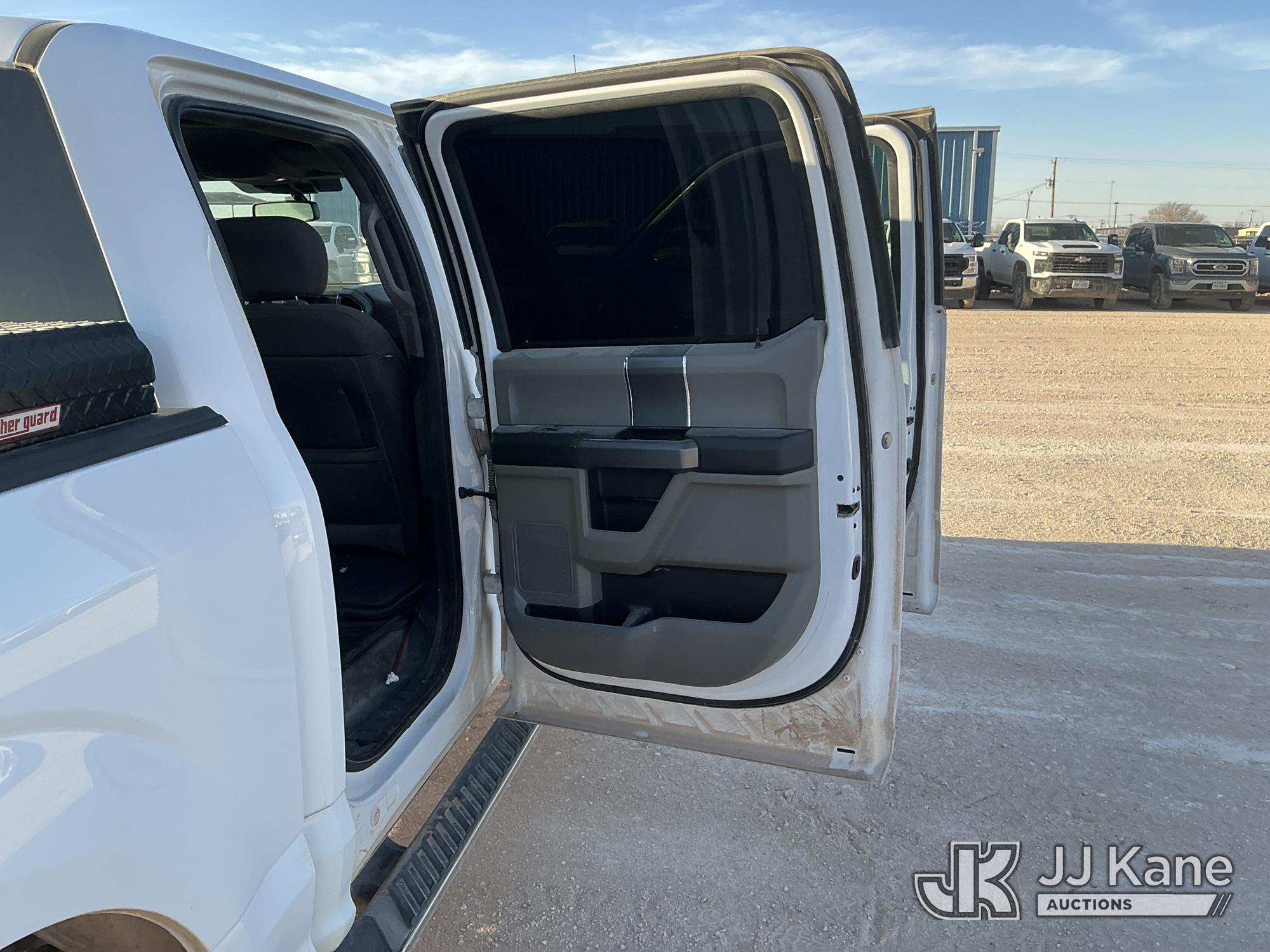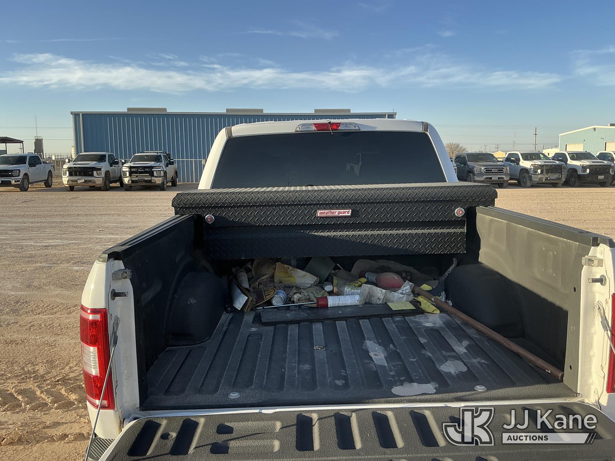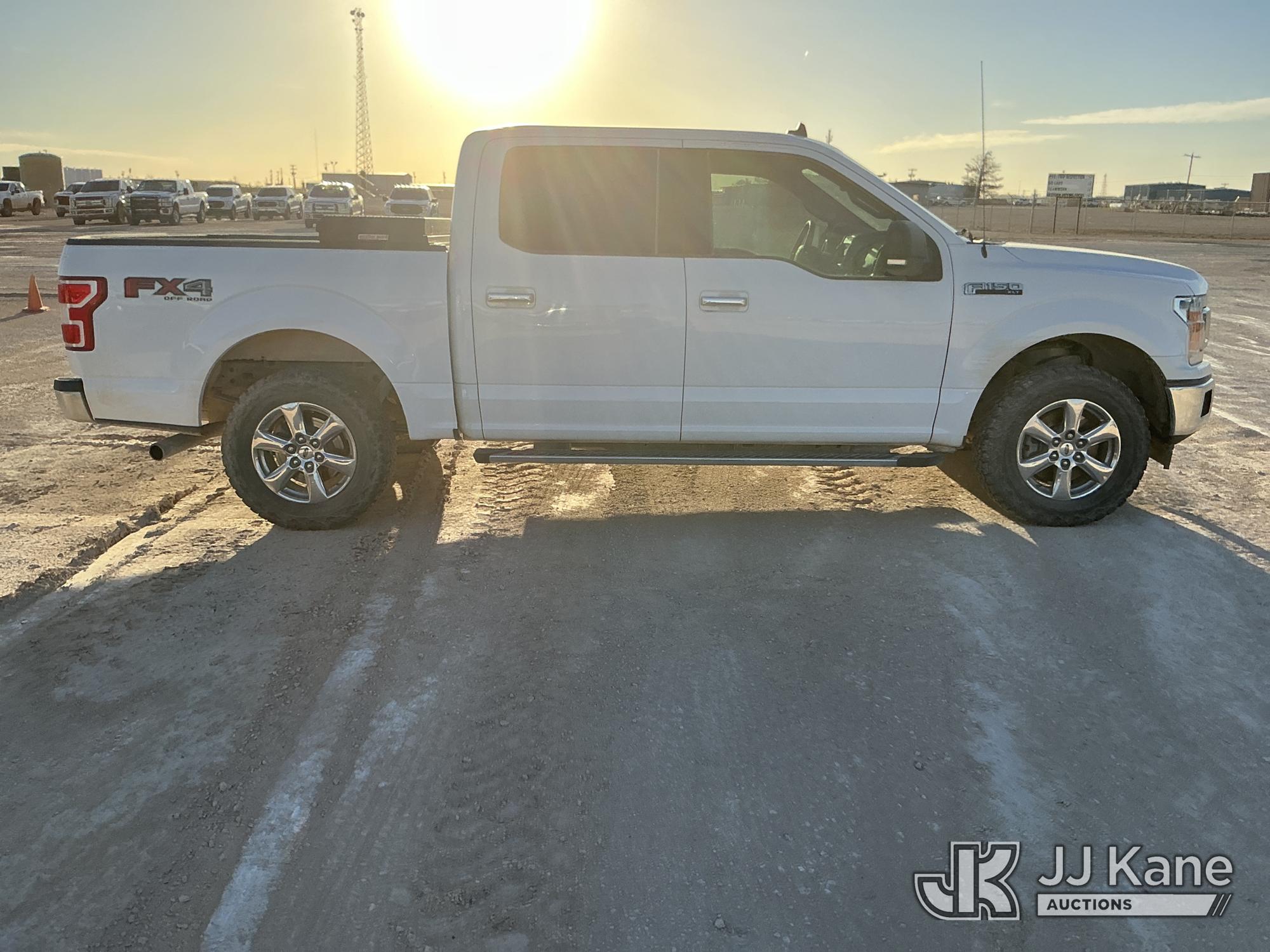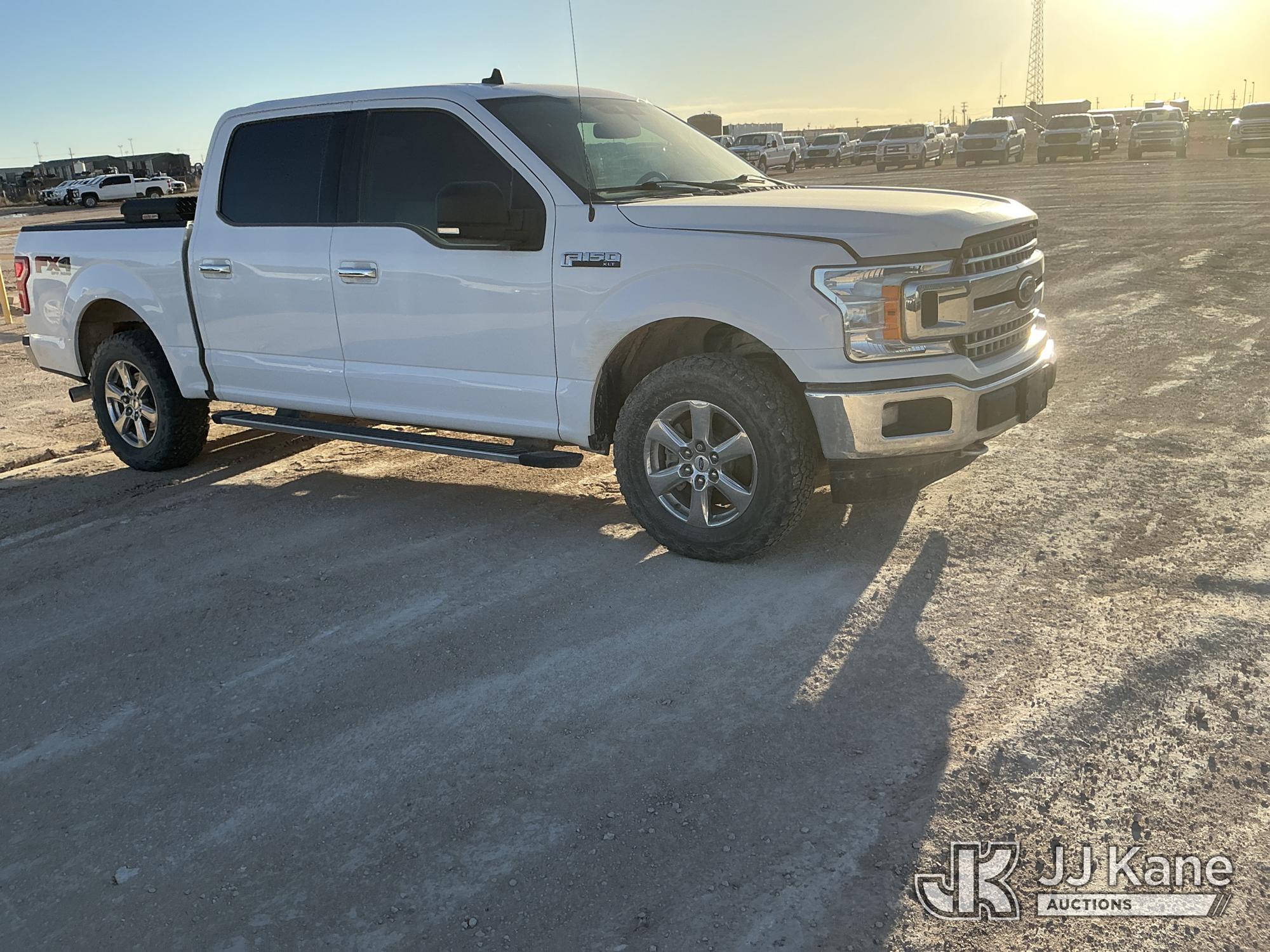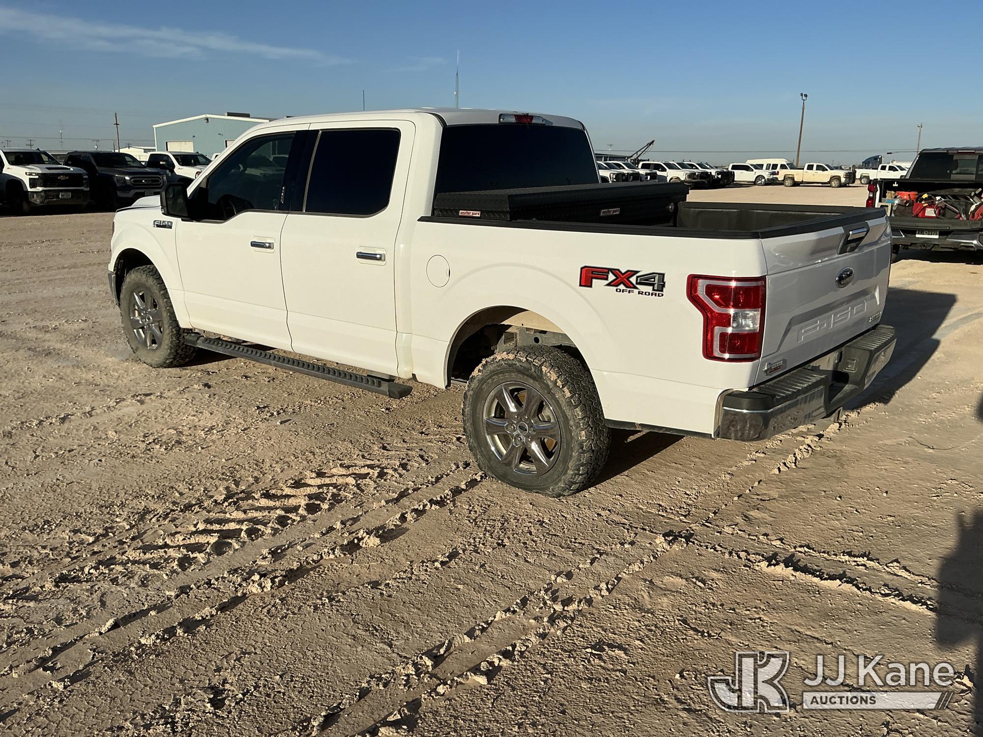 2019 Ford F-150 Crew-Cab Pickup Truck, 8-cyl gas, 4WD, 6-Speed Automatic, A/C, with Bed Mounted Toolbox , (101,009 miles) (Runs & Moves) (Windshield Is Cracked, Minor Body Damage Dents & Scratches All Around, Driver Side Rear Tire Is Flat, Passenger Side Front Tire Has Two Cuts On The Outer Wall) (Reads 5,821 hours) This is a Titled Item*