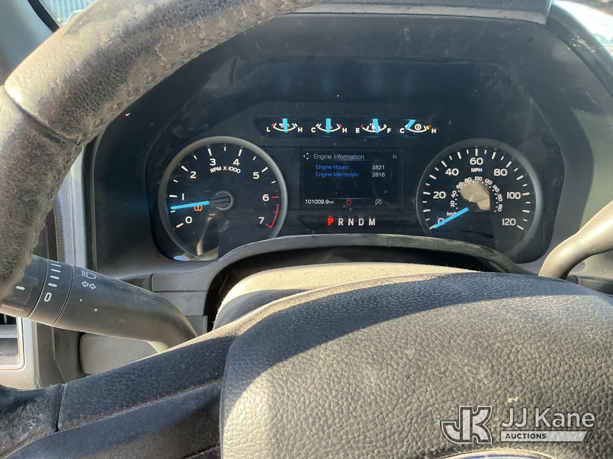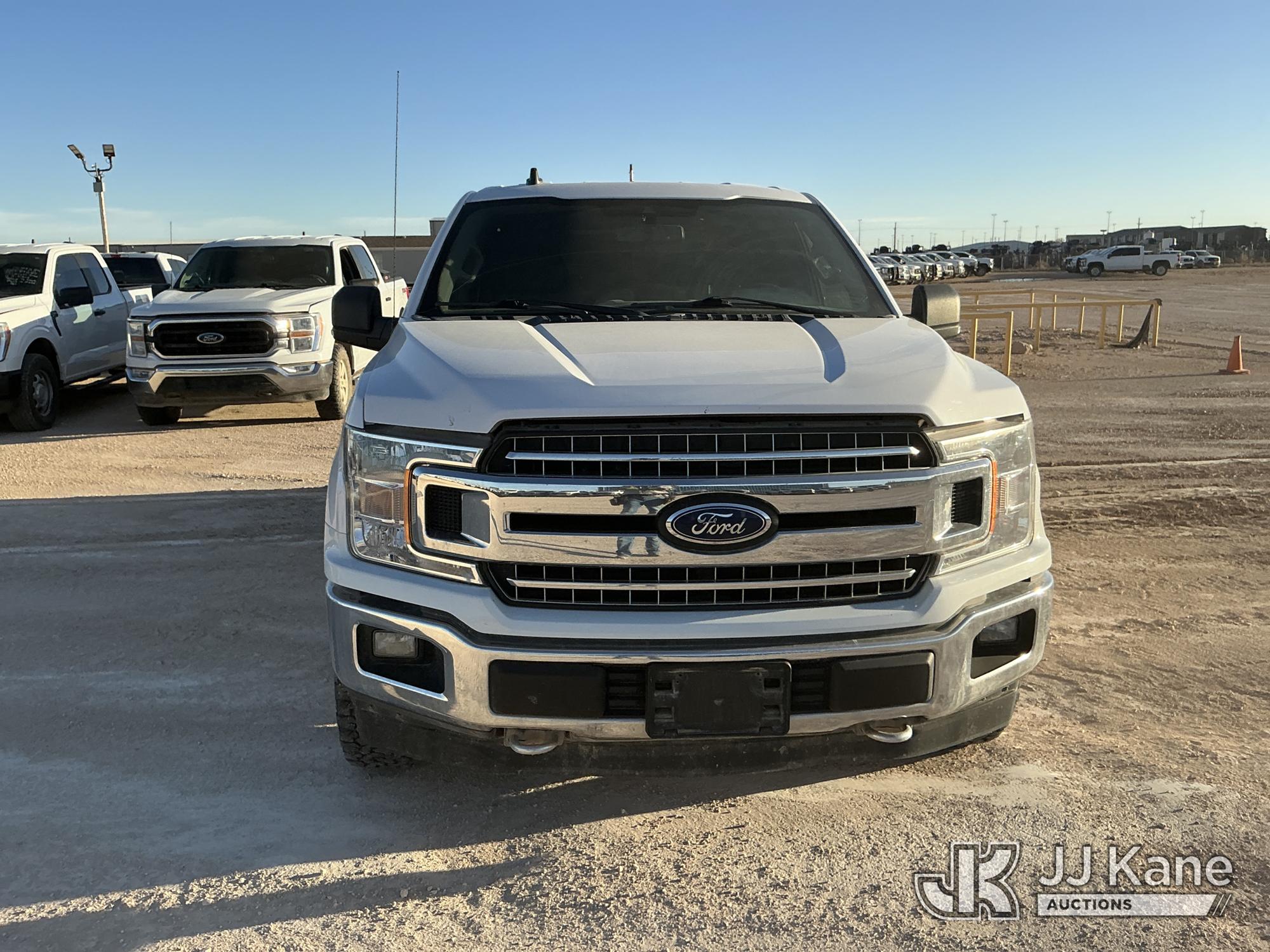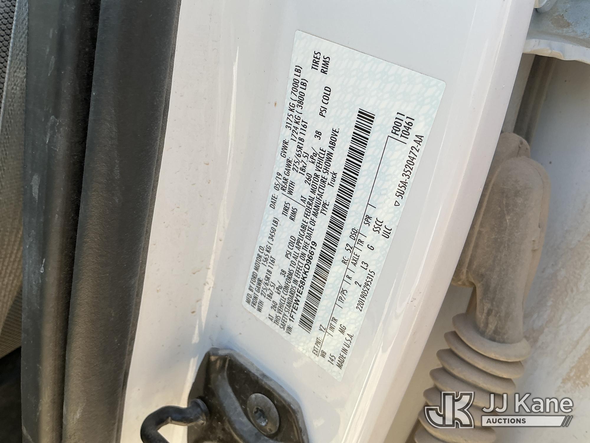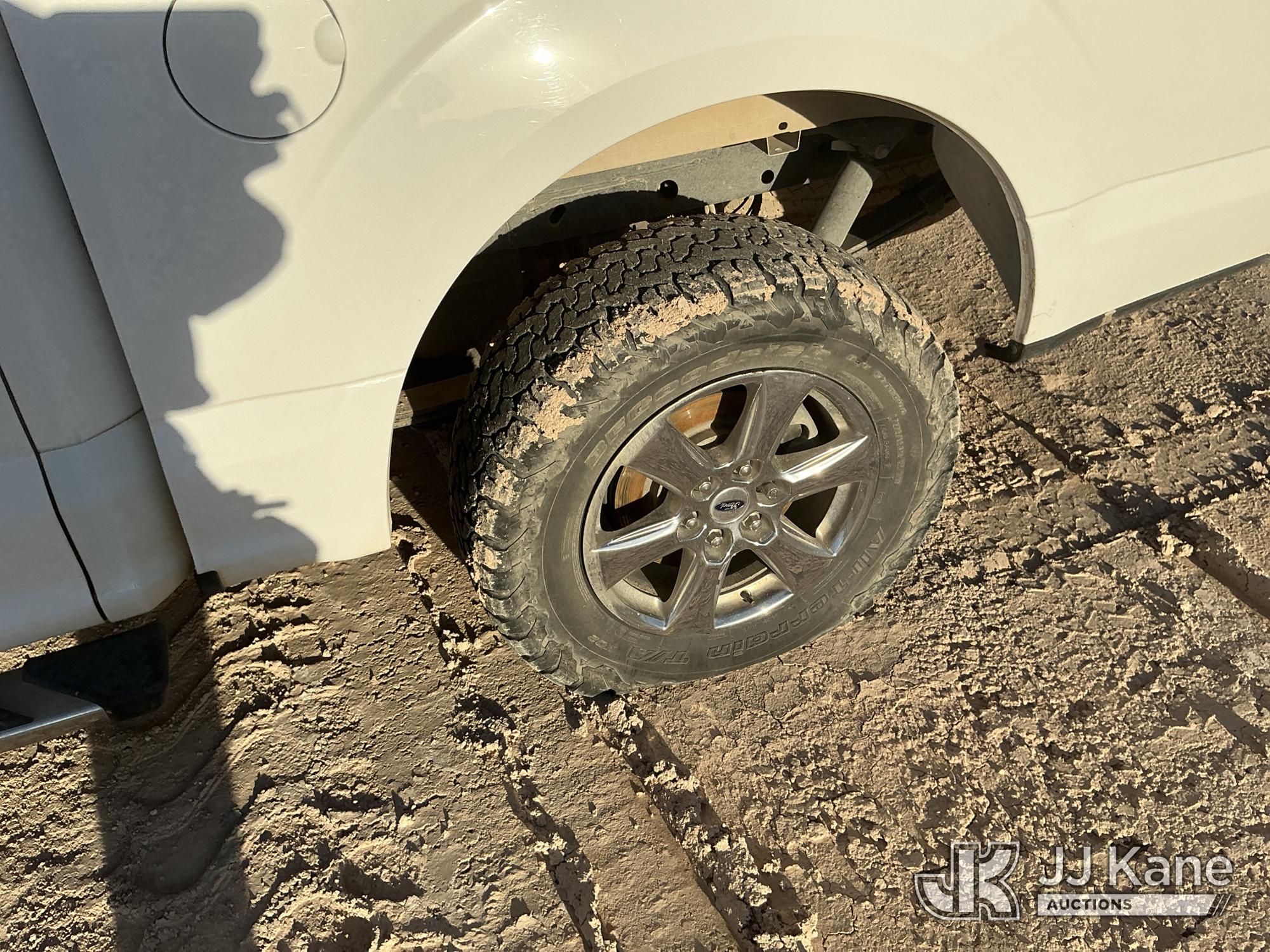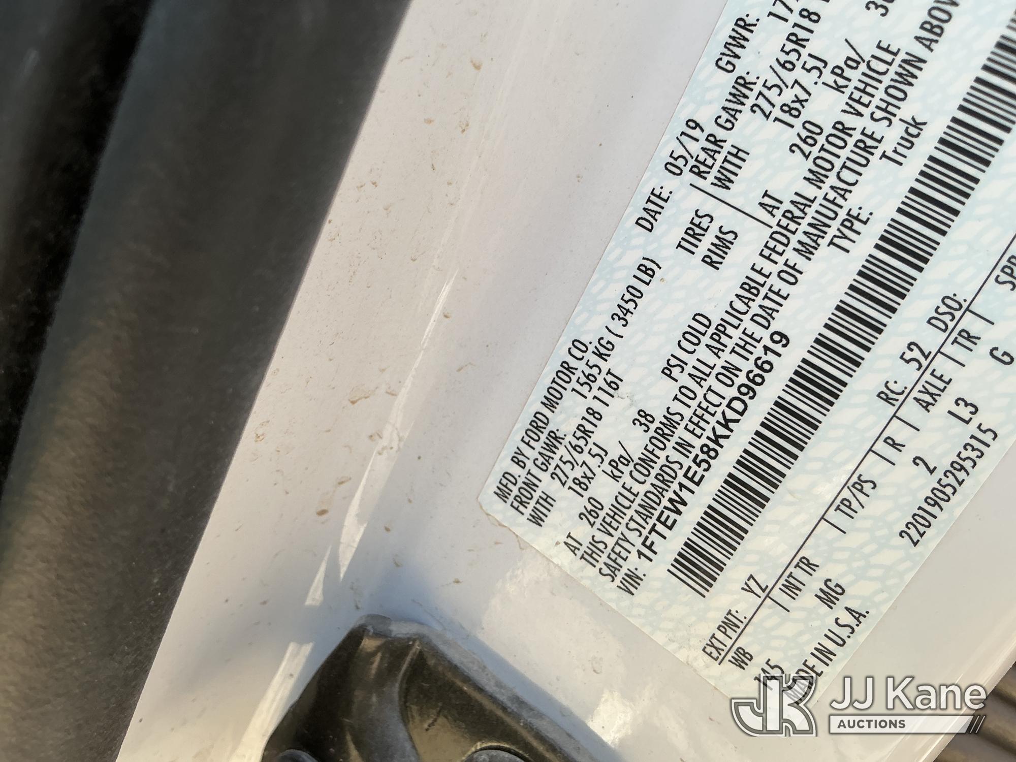 2019 Ford F-150 Crew-Cab Pickup Truck, 8-cyl gas, 4WD, 6-Speed Automatic, A/C, with Bed Mounted Toolbox , (101,009 miles) (Runs & Moves) (Windshield Is Cracked, Minor Body Damage Dents & Scratches All Around, Driver Side Rear Tire Is Flat, Passenger Side Front Tire Has Two Cuts On The Outer Wall) (Reads 5,821 hours) This is a Titled Item*