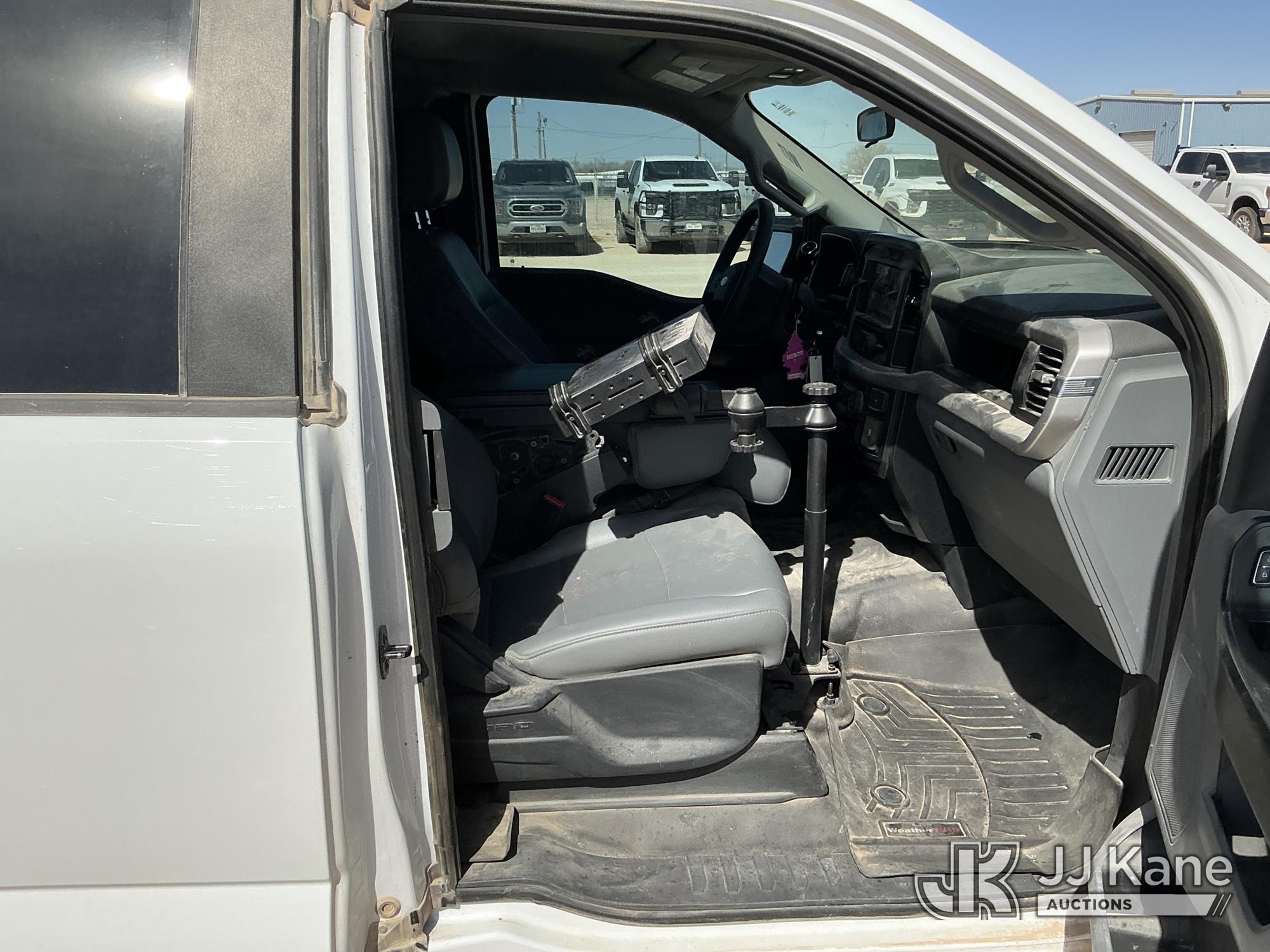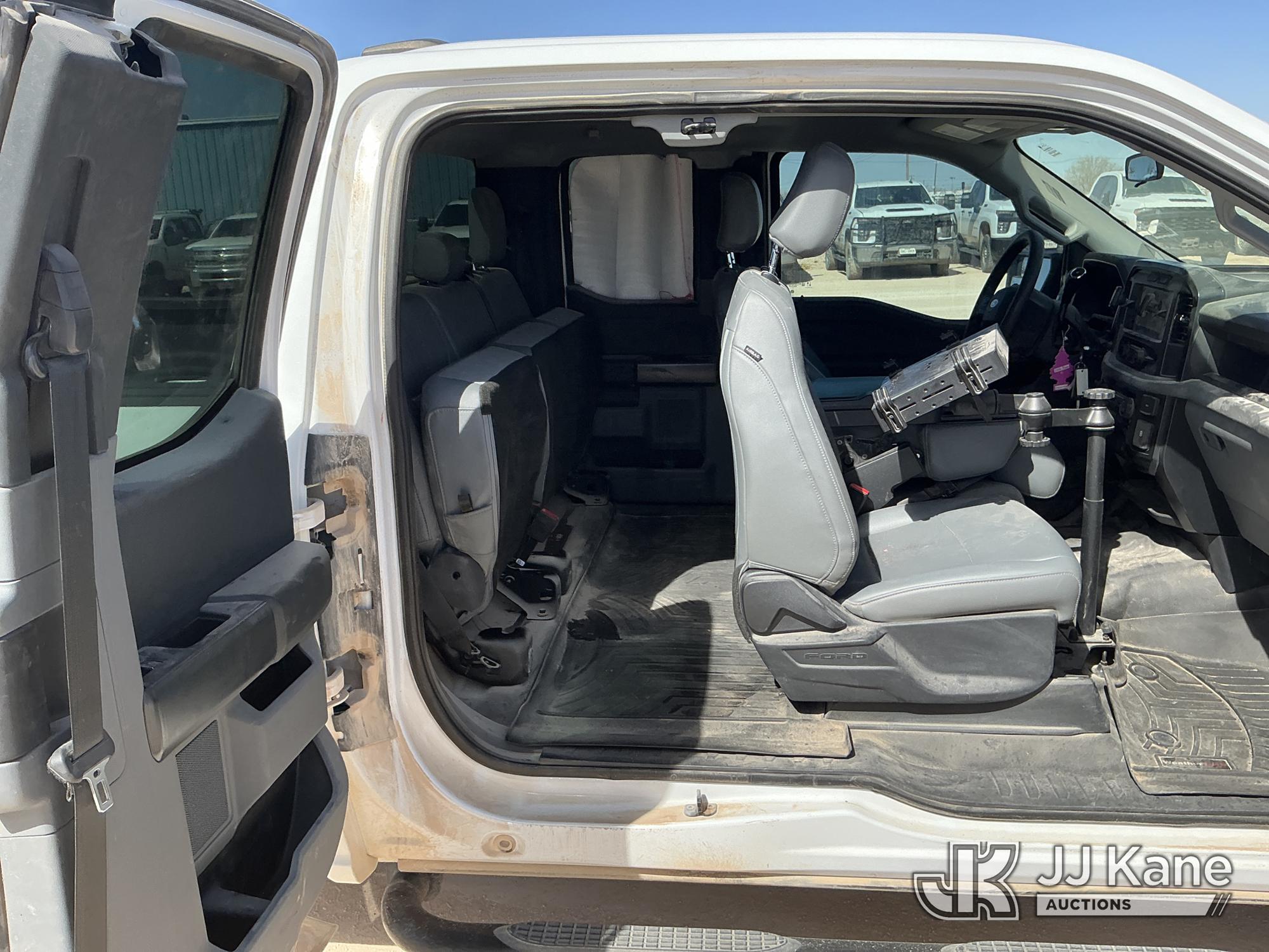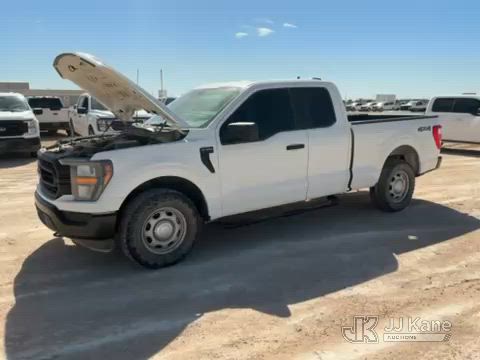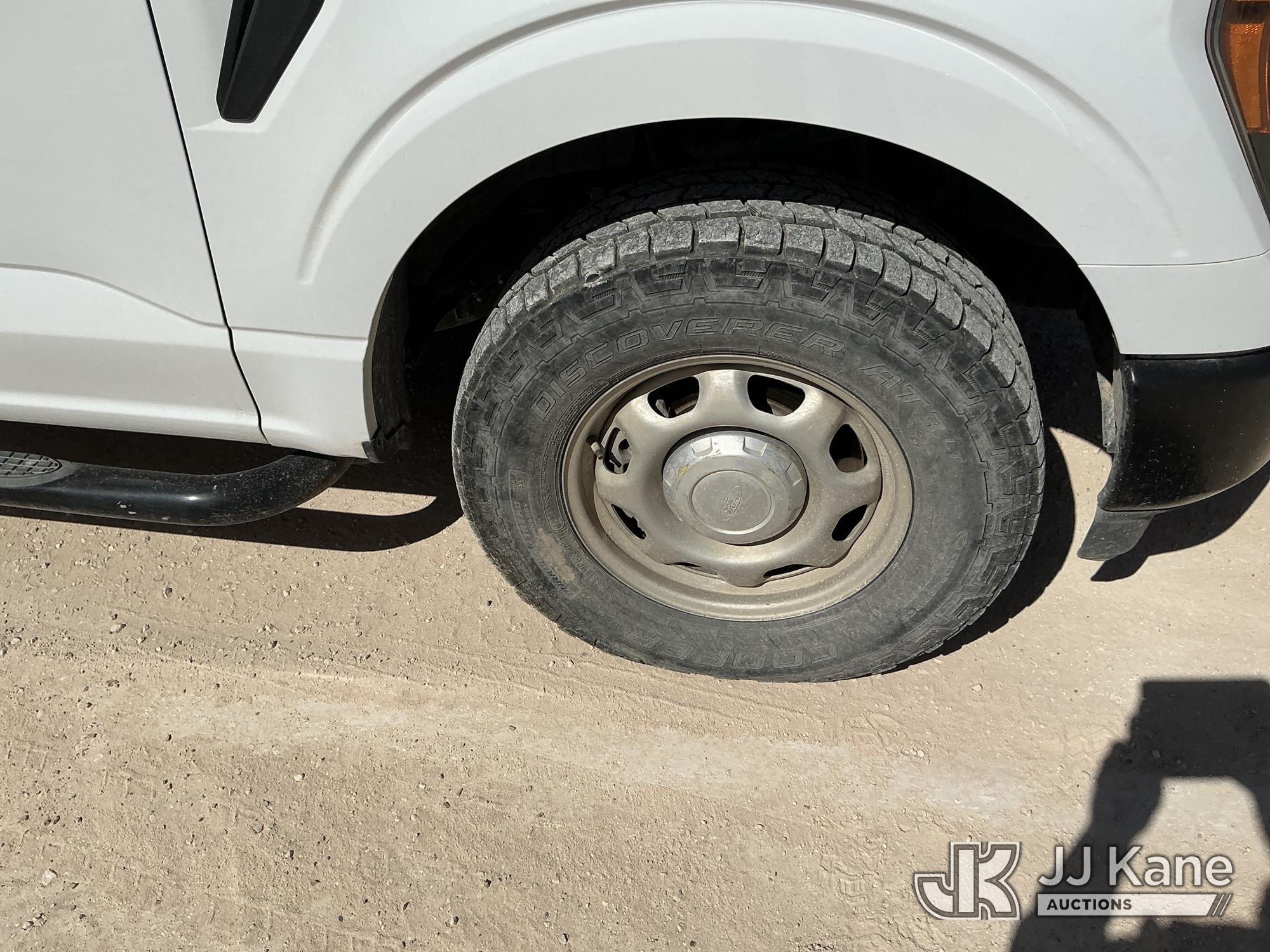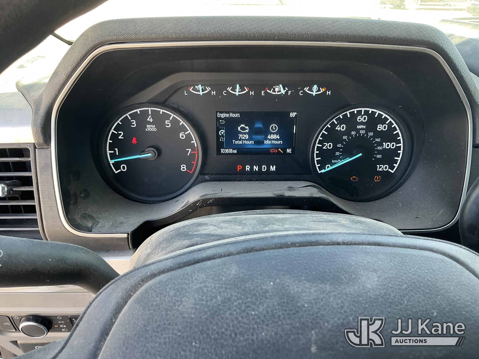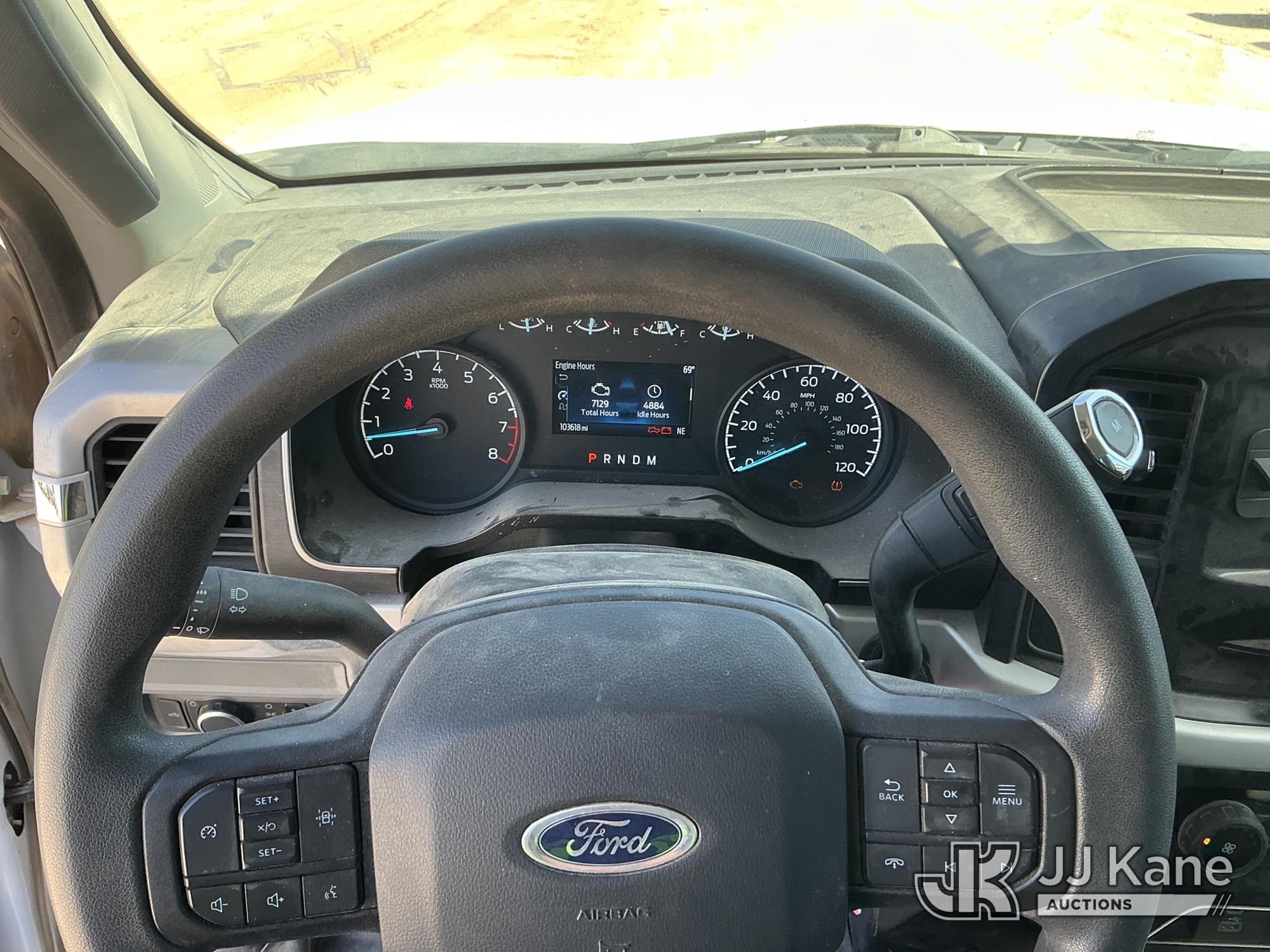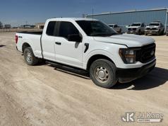 2023 Ford F-150 Extended-Cab Pickup Truck, 8-cyl gas, 4WD, 6-Speed Automatic, A/C, with Cab Mounted Computer Stand, Bed Mounted Toolbox , (103,618 miles) (Runs & Moves) (Jump To Start, Check Engine Light Is On, Transmission Shift System Fault Message Alert, Transmission Shifts Rough, Engine Idles Rough, Service Light Is On, Body Damage Dents & Scratches All Around) (Reads 7,129 hours) This is a Titled Item*