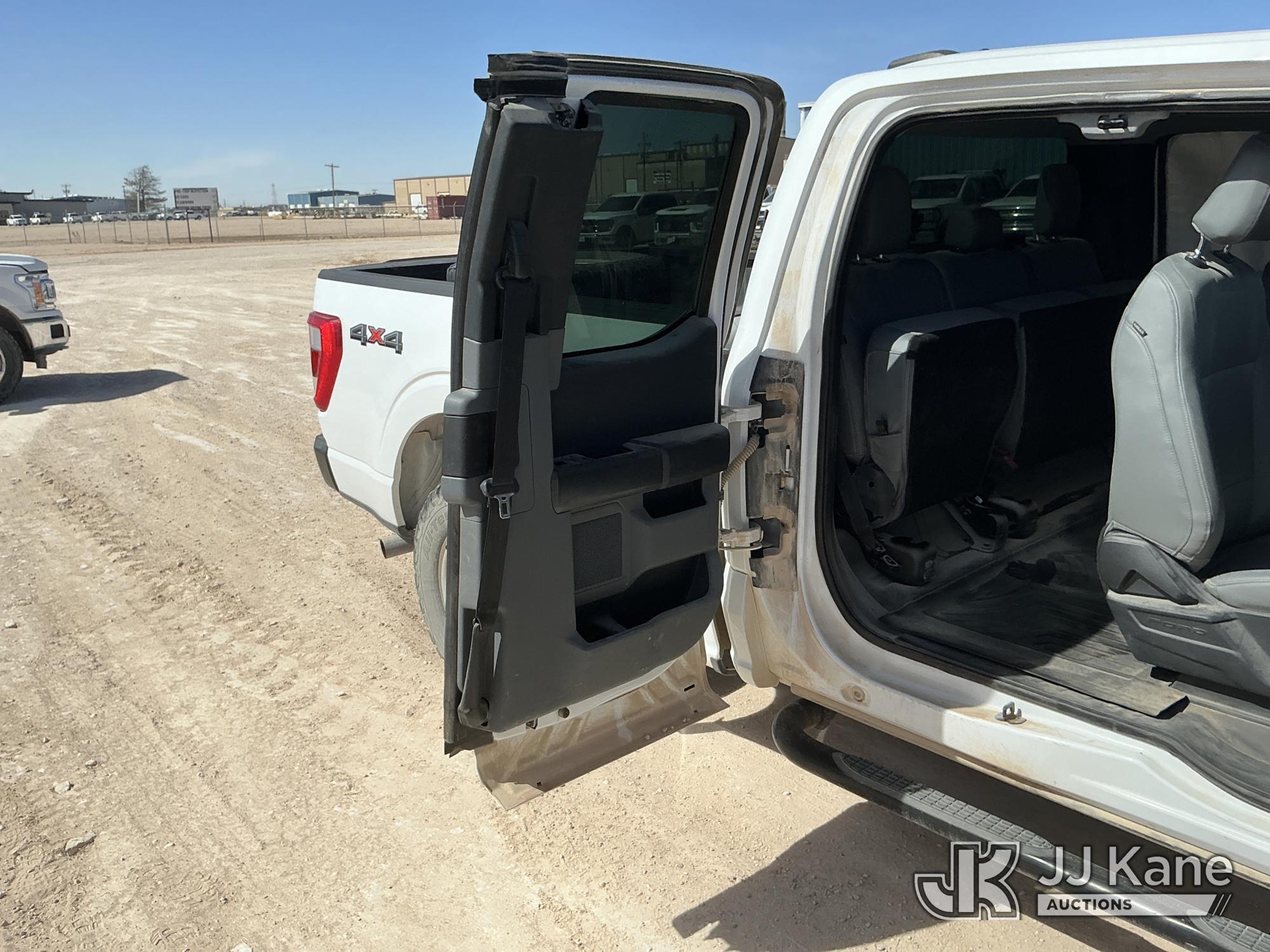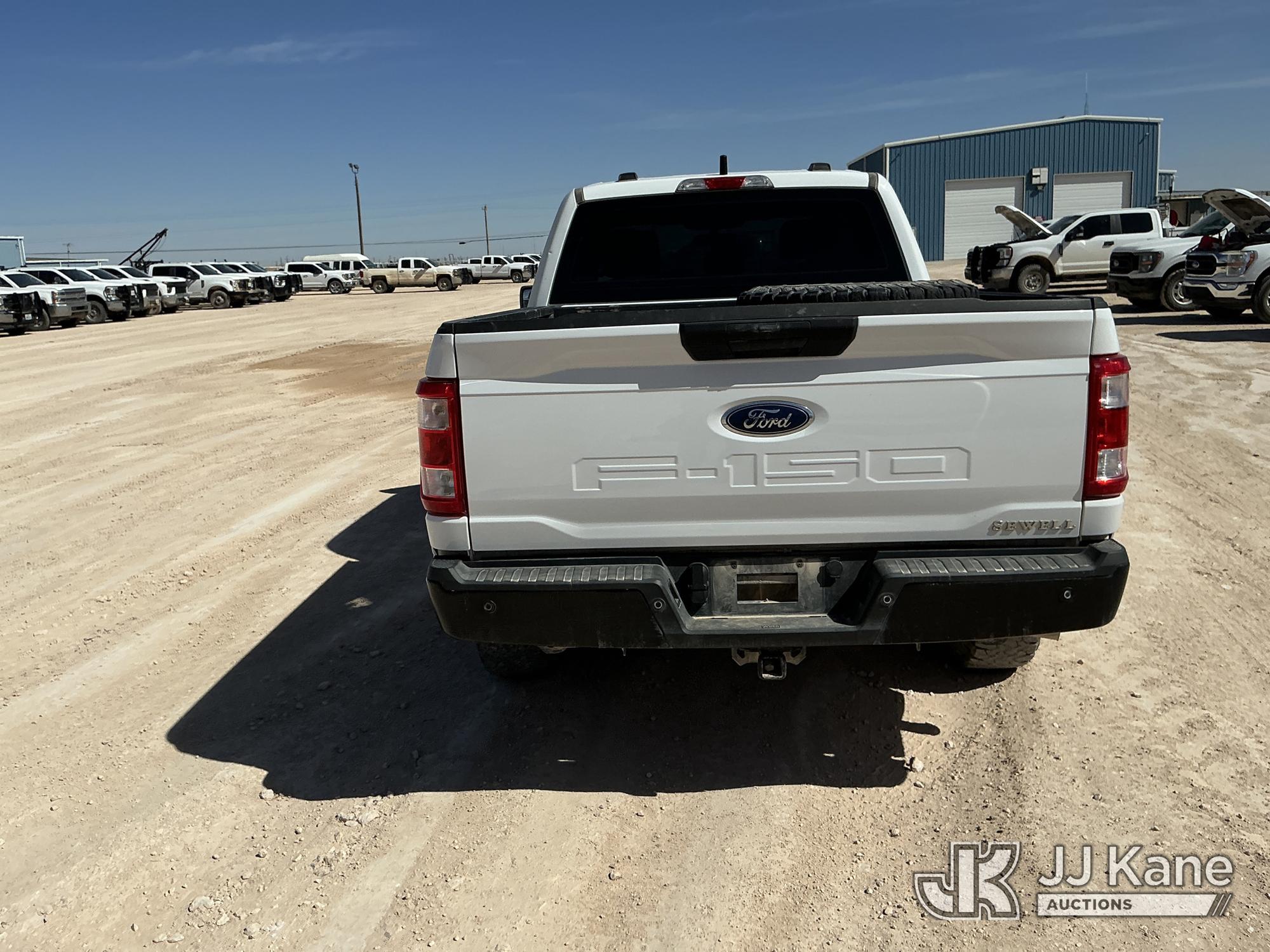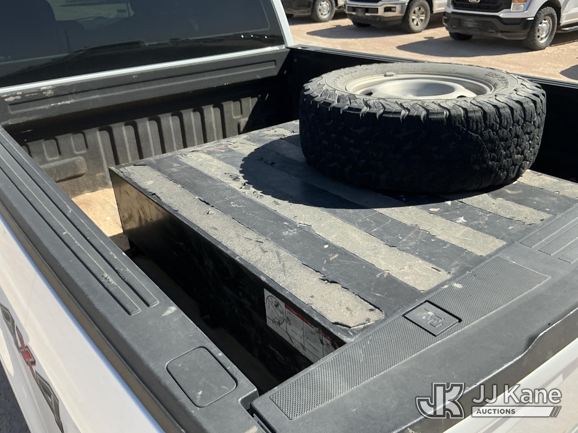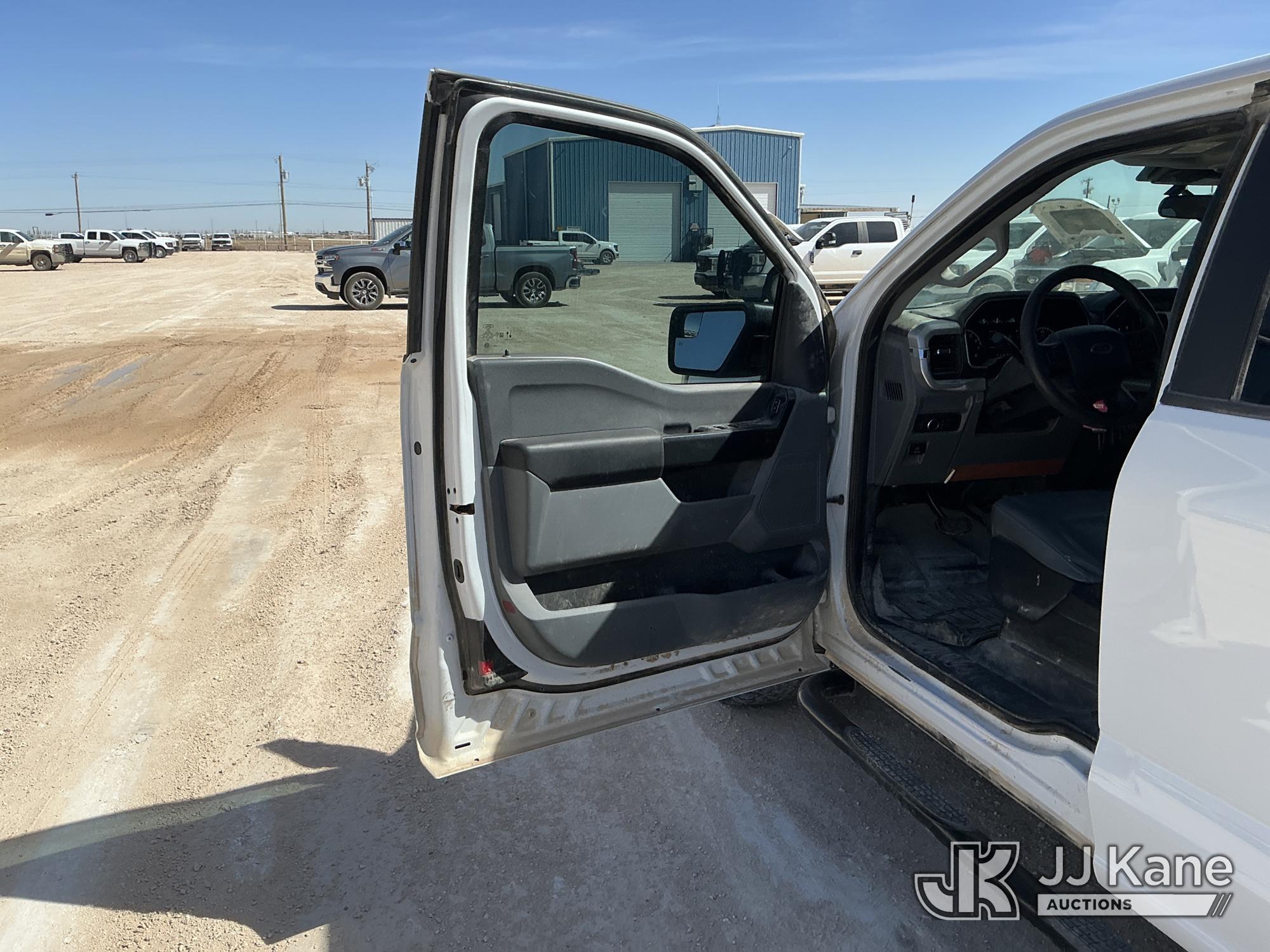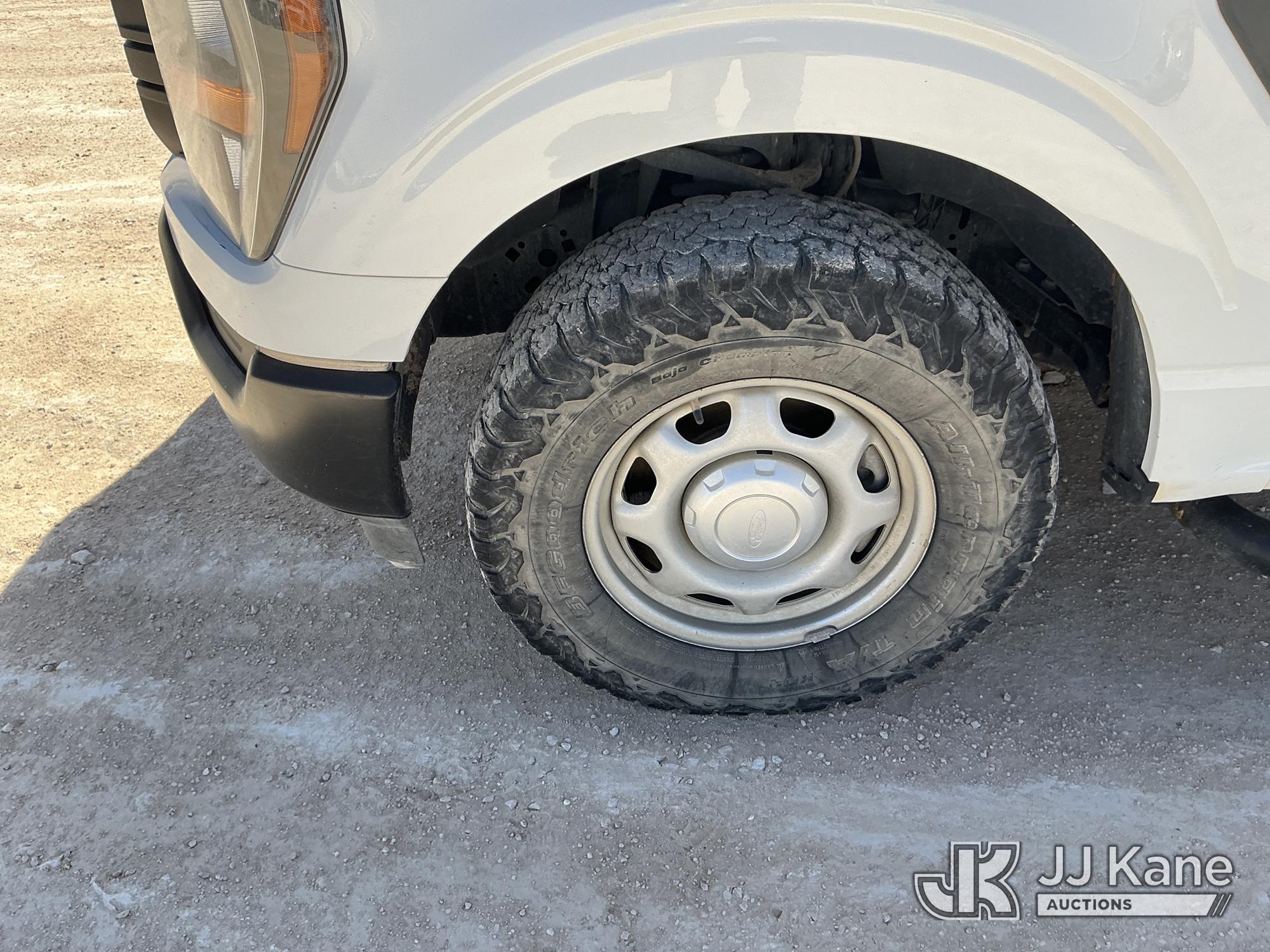 2023 Ford F-150 Extended-Cab Pickup Truck, 8-cyl gas, 4WD, 6-Speed Automatic, A/C, with Cab Mounted Computer Stand, Bed Mounted Toolbox , (103,618 miles) (Runs & Moves) (Jump To Start, Check Engine Light Is On, Transmission Shift System Fault Message Alert, Transmission Shifts Rough, Engine Idles Rough, Service Light Is On, Body Damage Dents & Scratches All Around) (Reads 7,129 hours) This is a Titled Item*